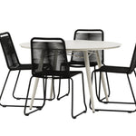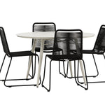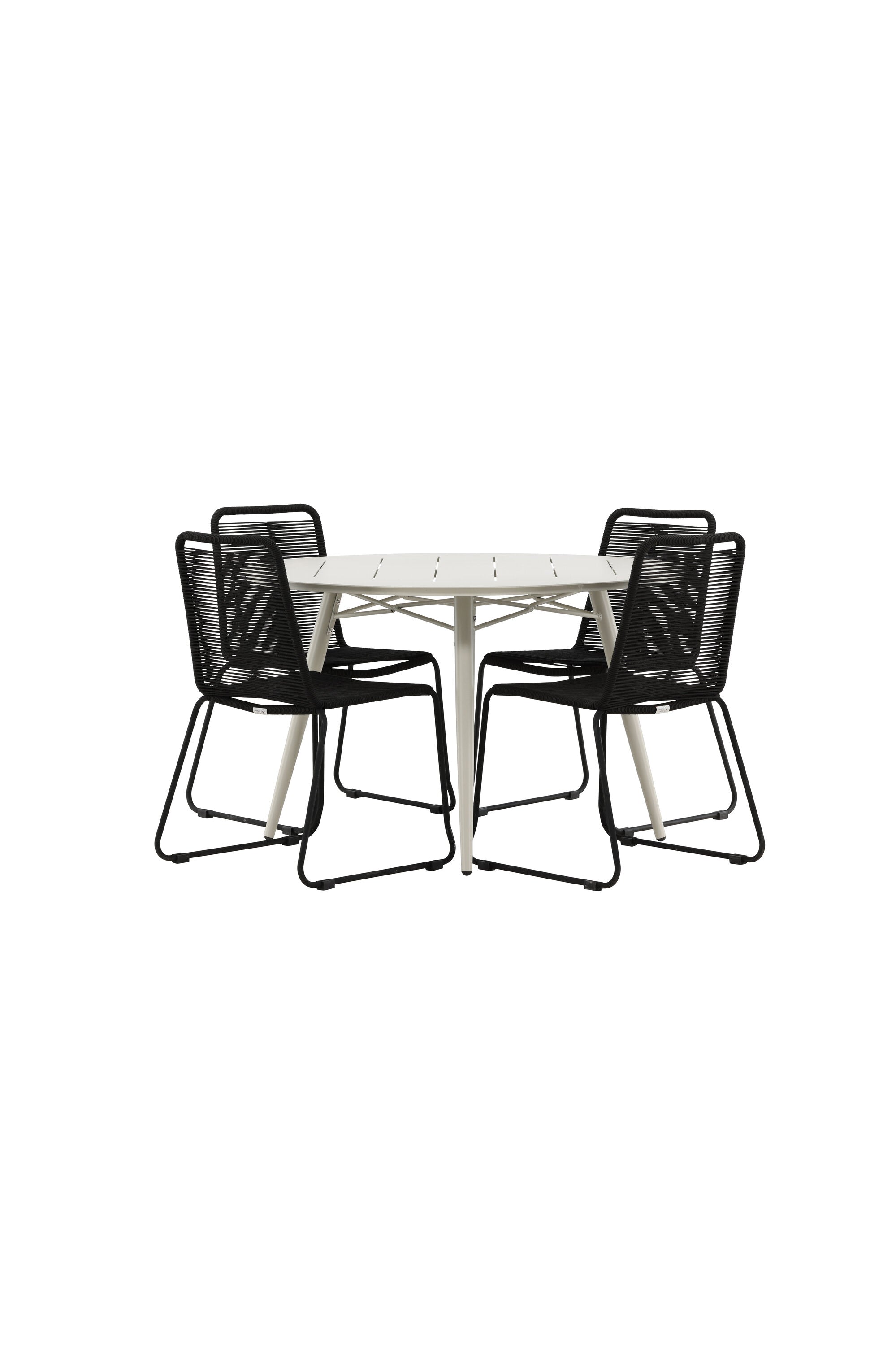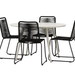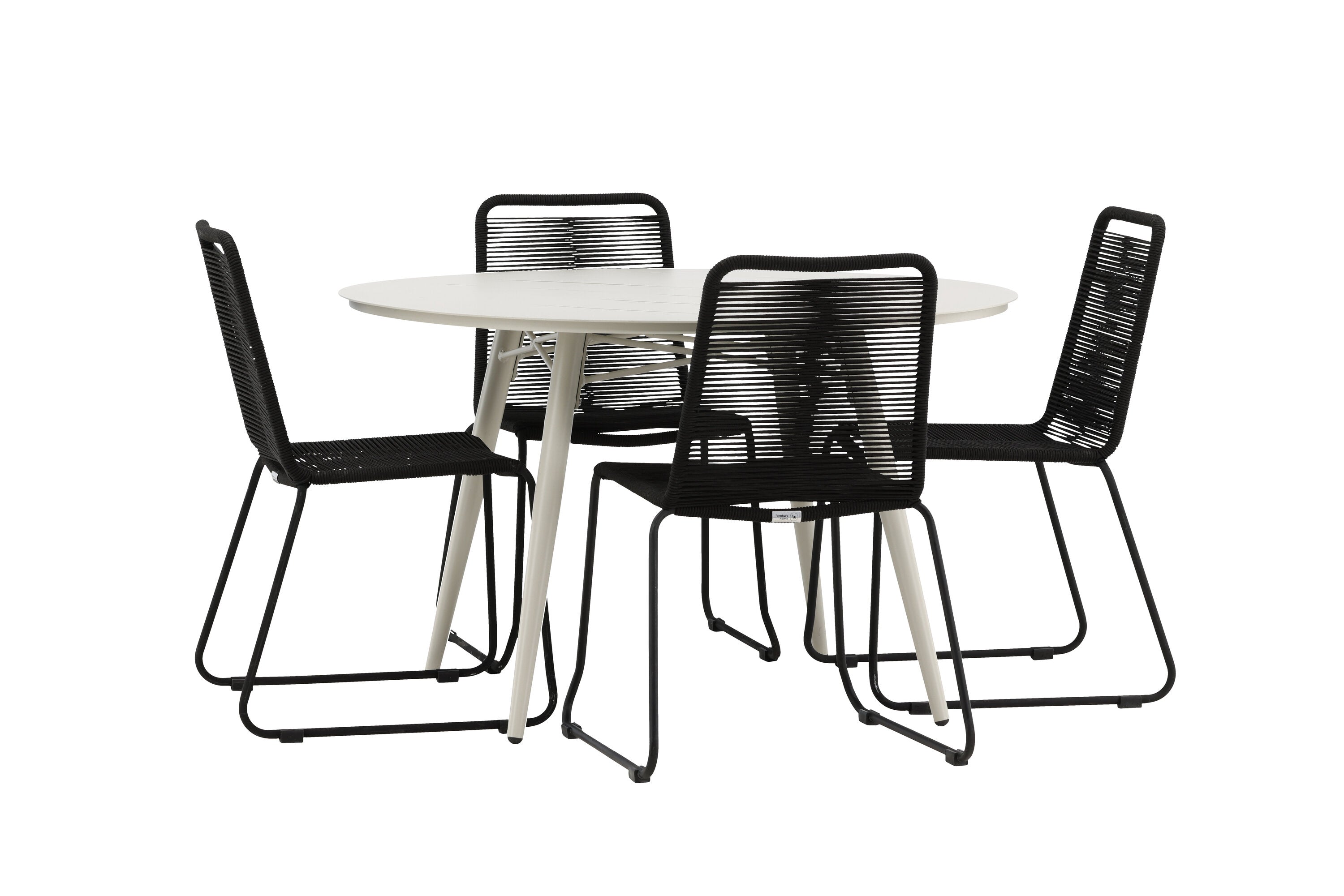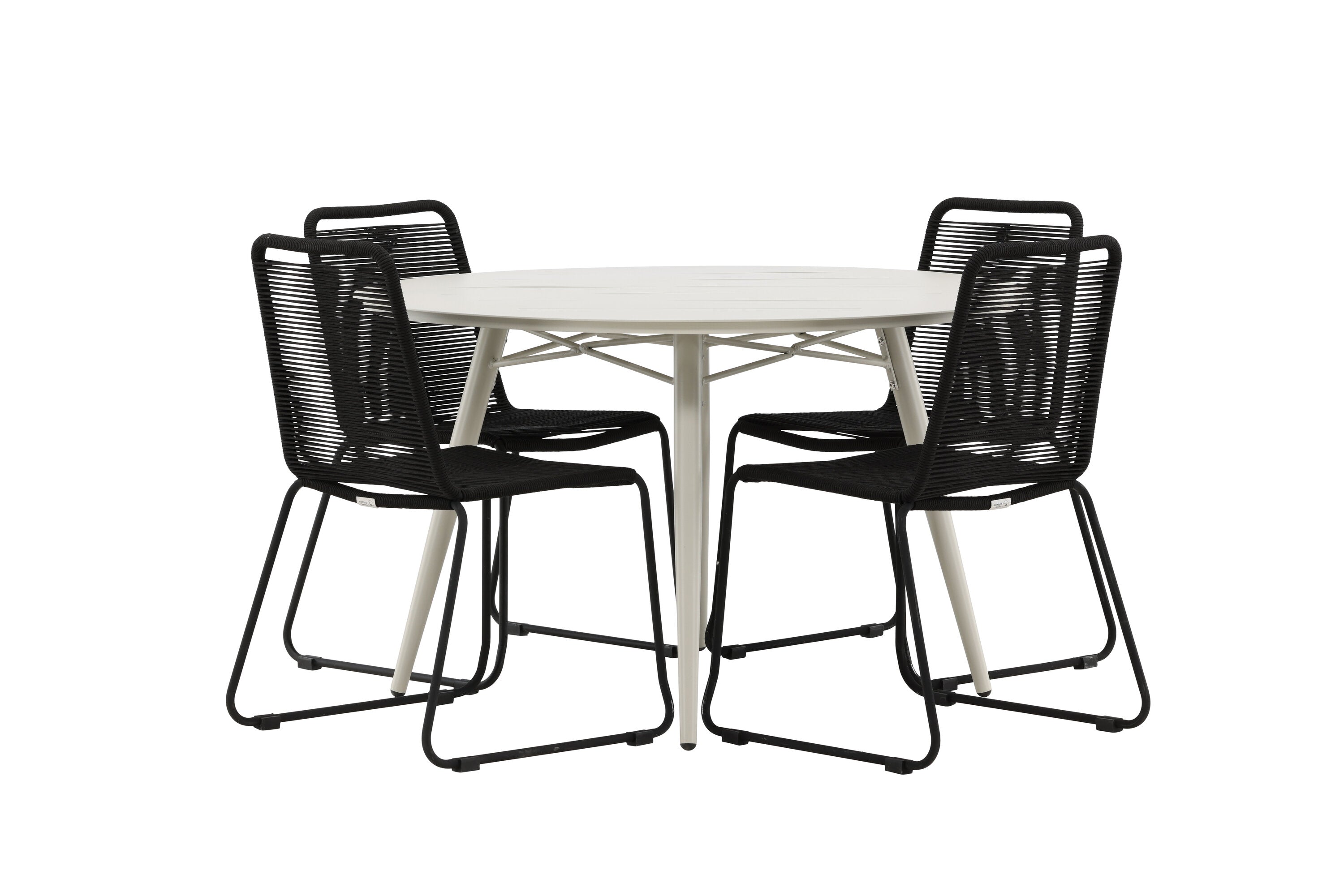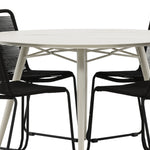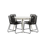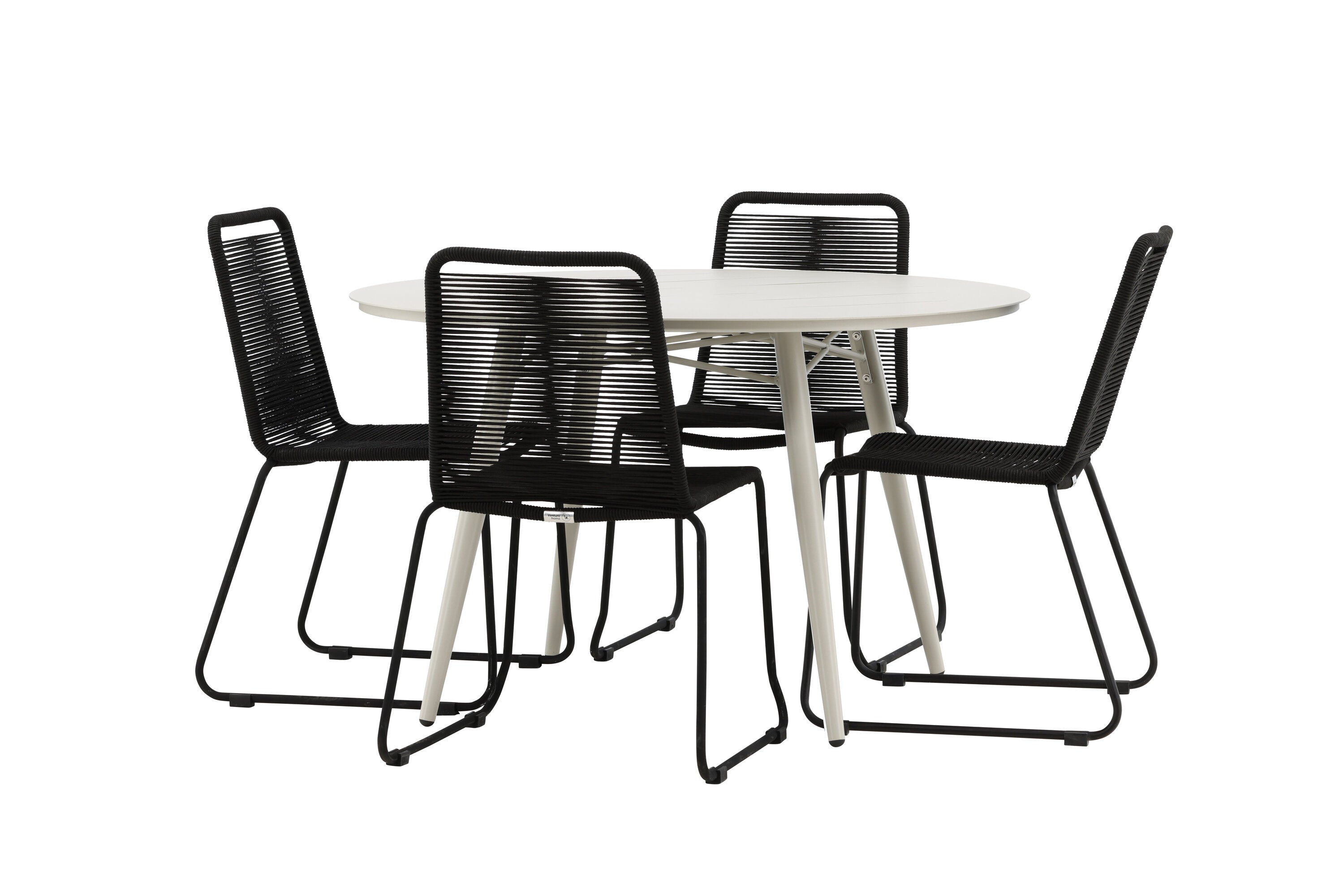 Lina Jídelní stůl - Béžový - Kulatý 120 cm _1+ Lindos Stohovací židle - Black Alu / Black Rope _4