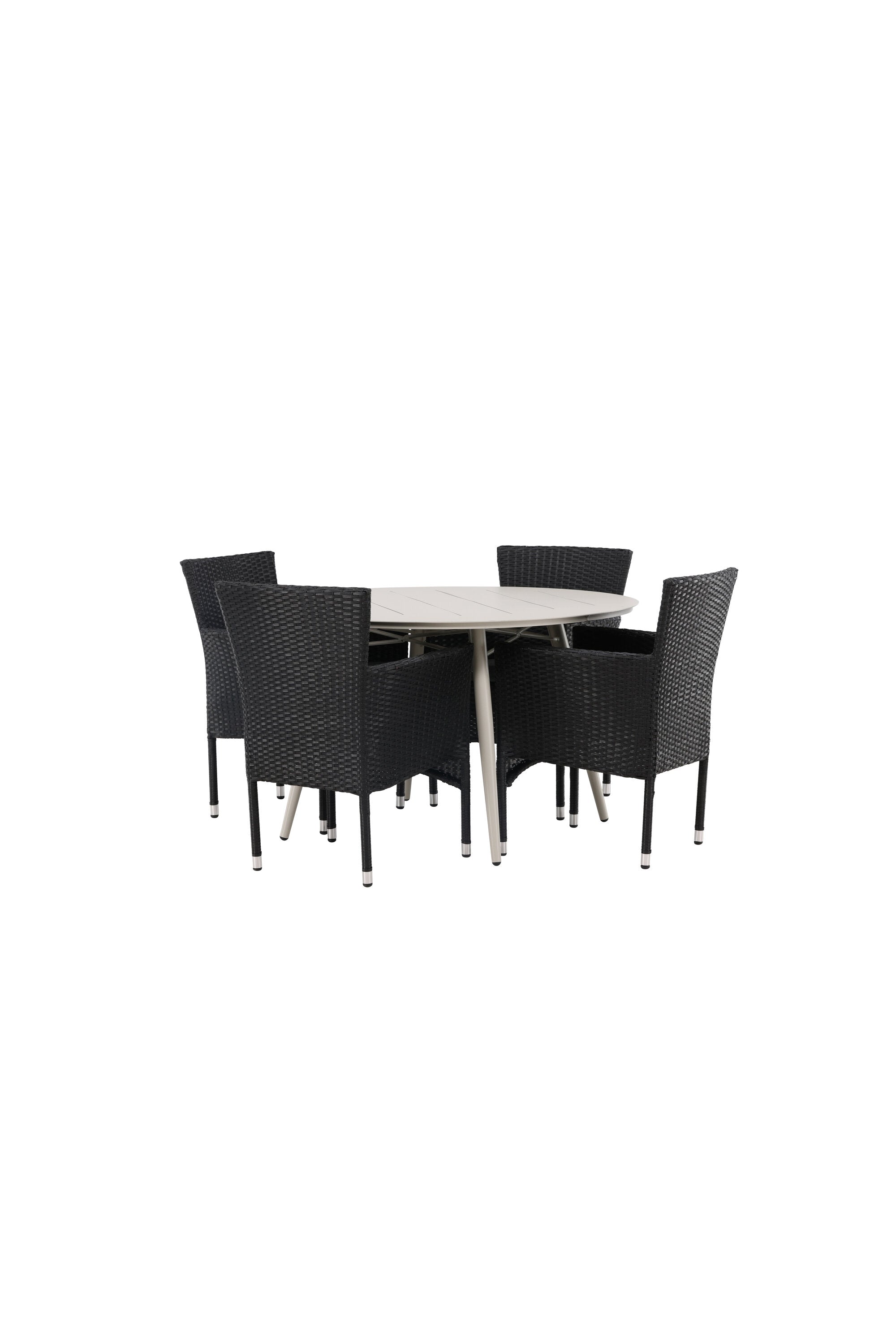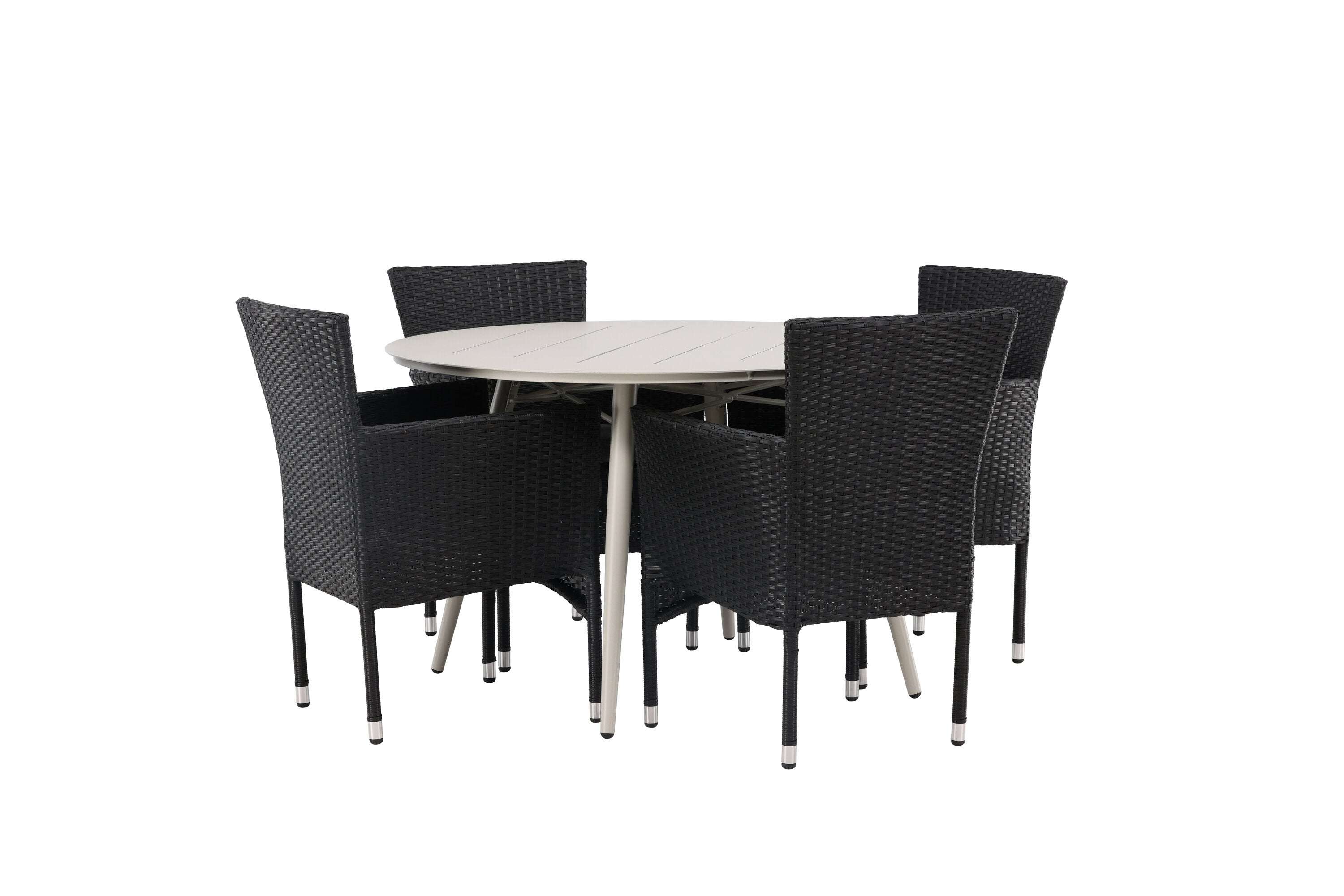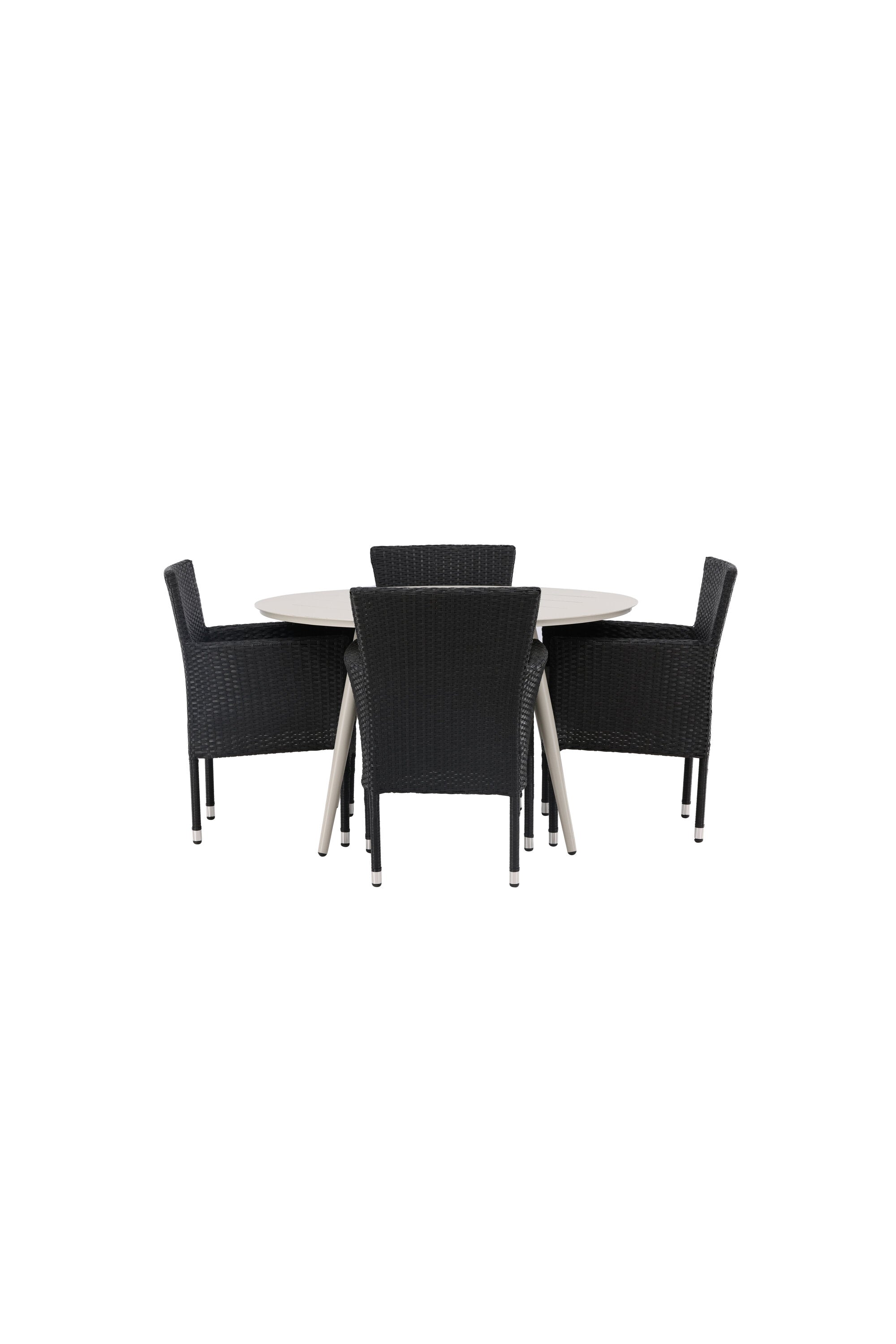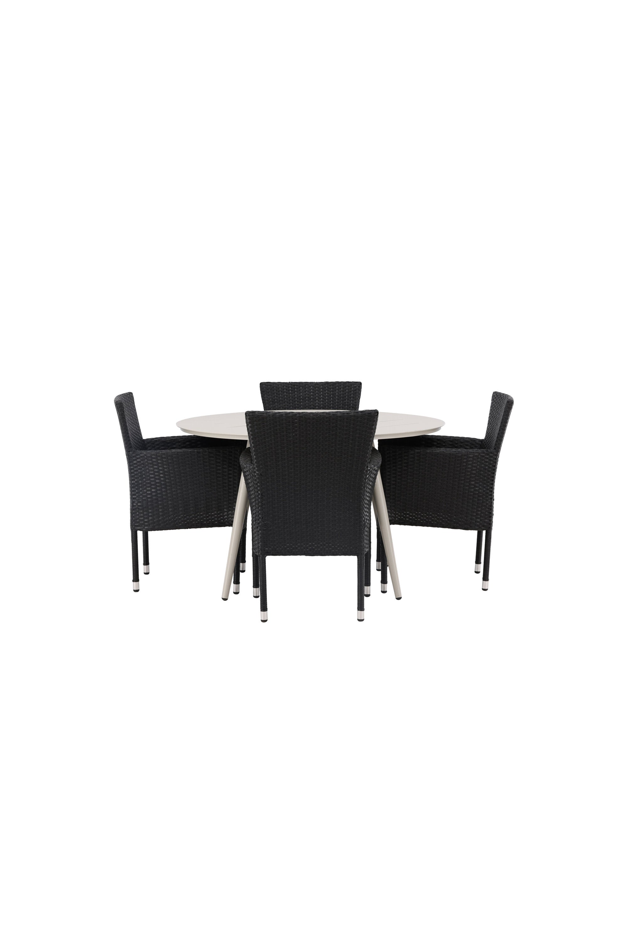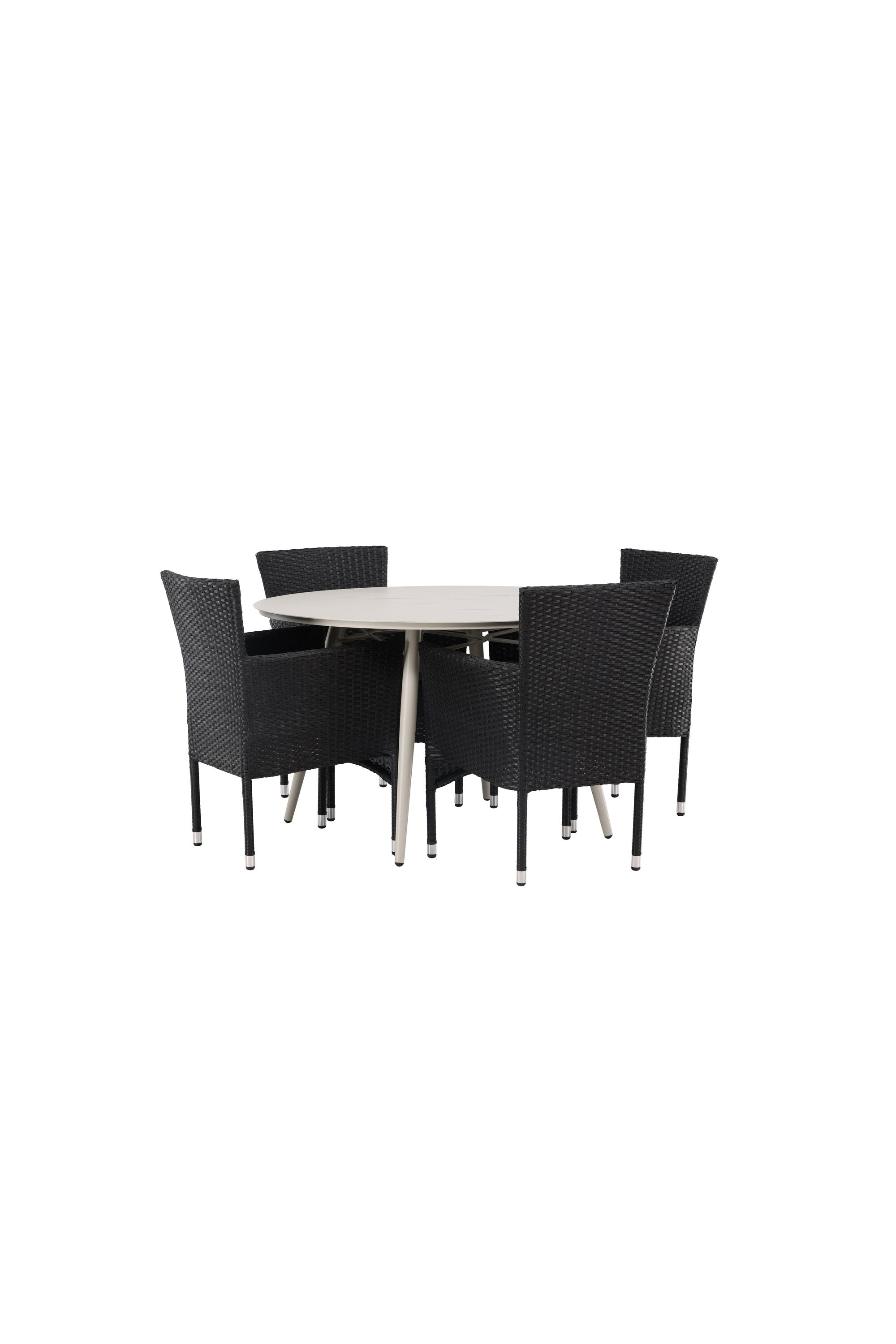 Lina Jídelní stůl - Béžový - Kulatý 120 cm +Malina Jídelní židle Alumnium - Černá / Proutěný _4