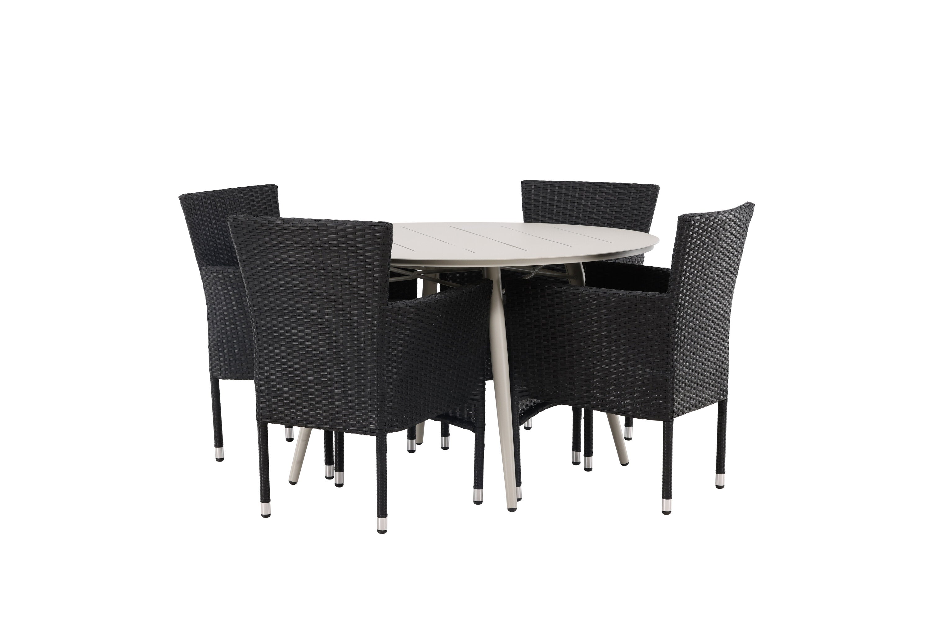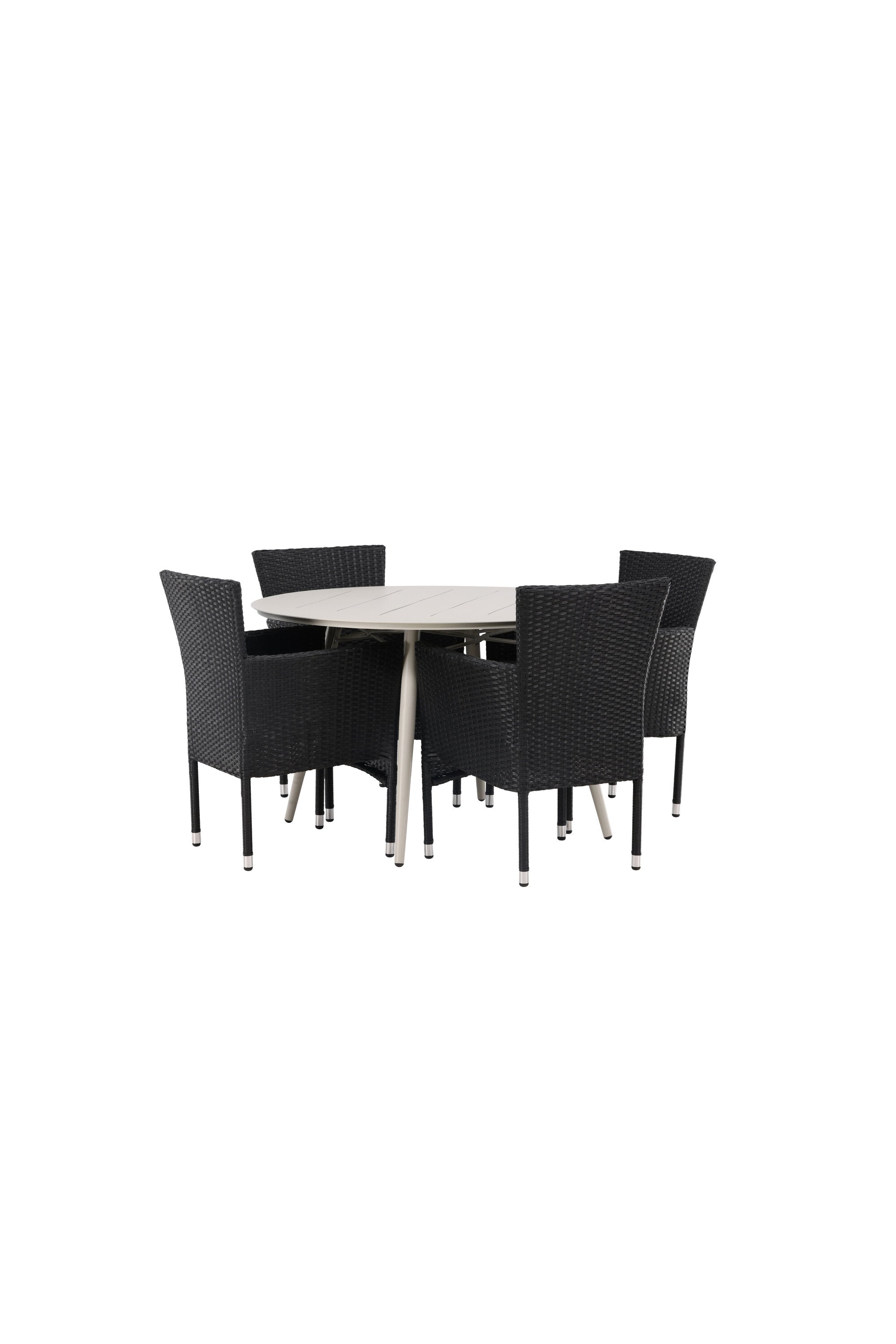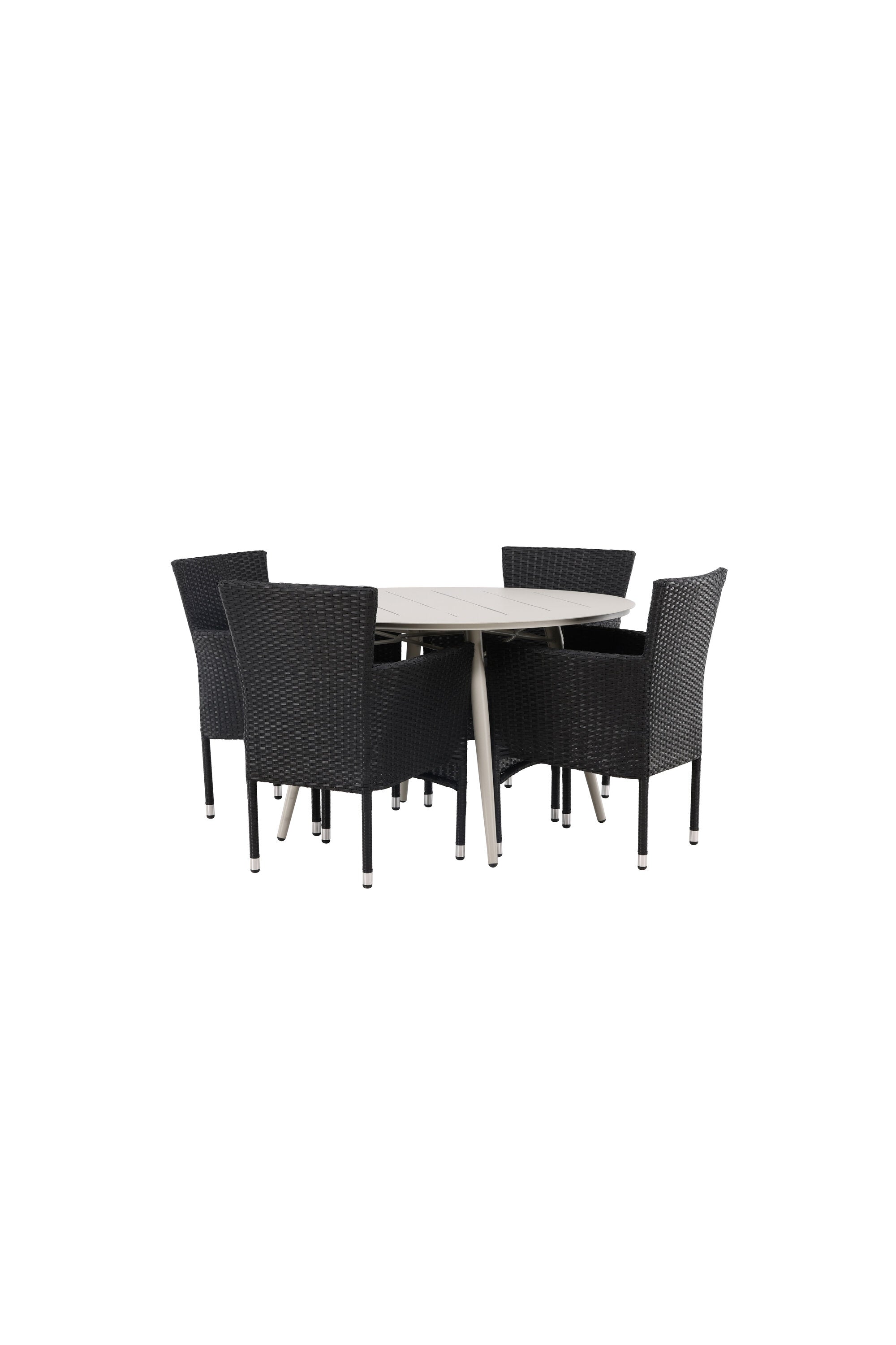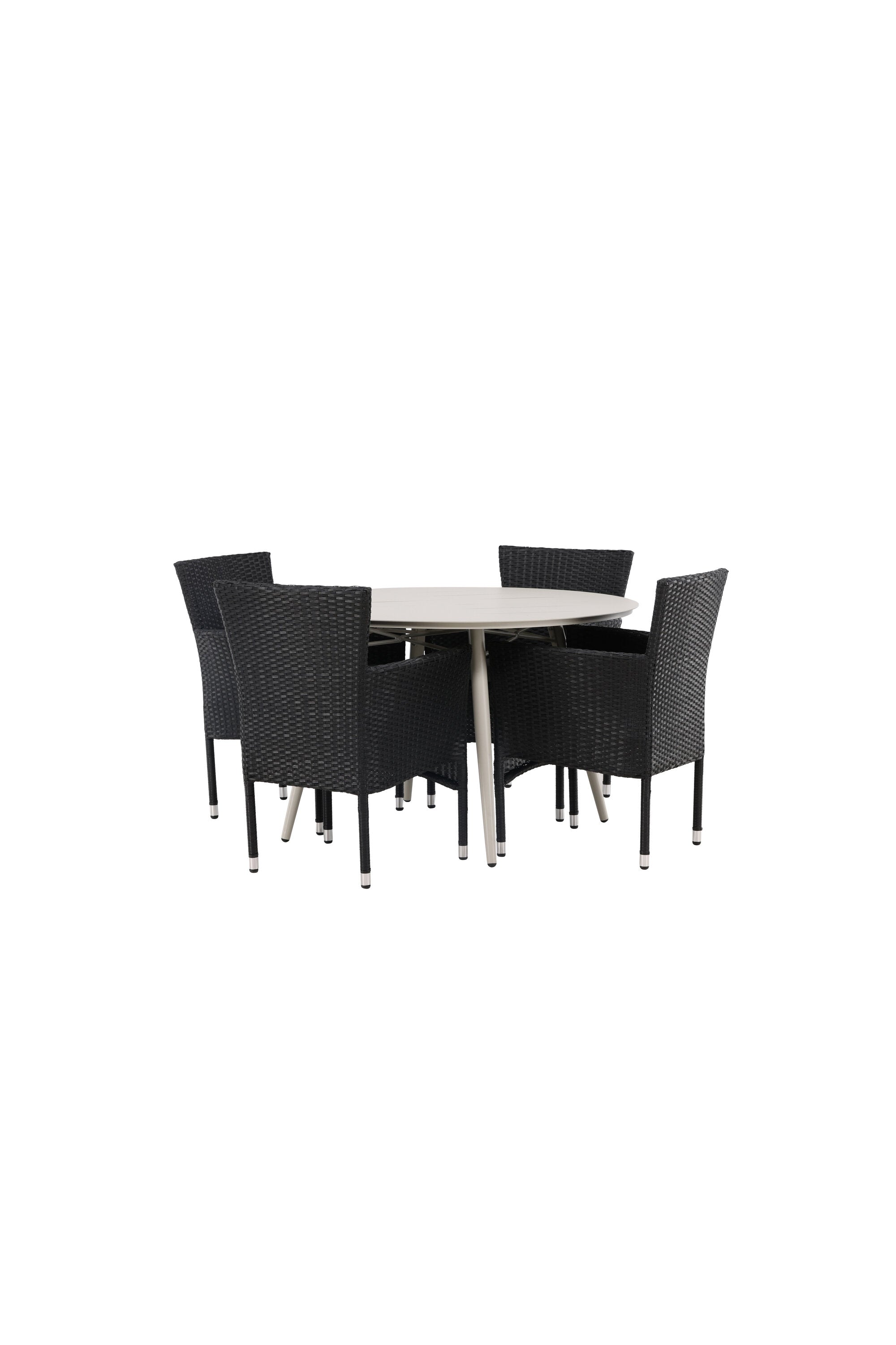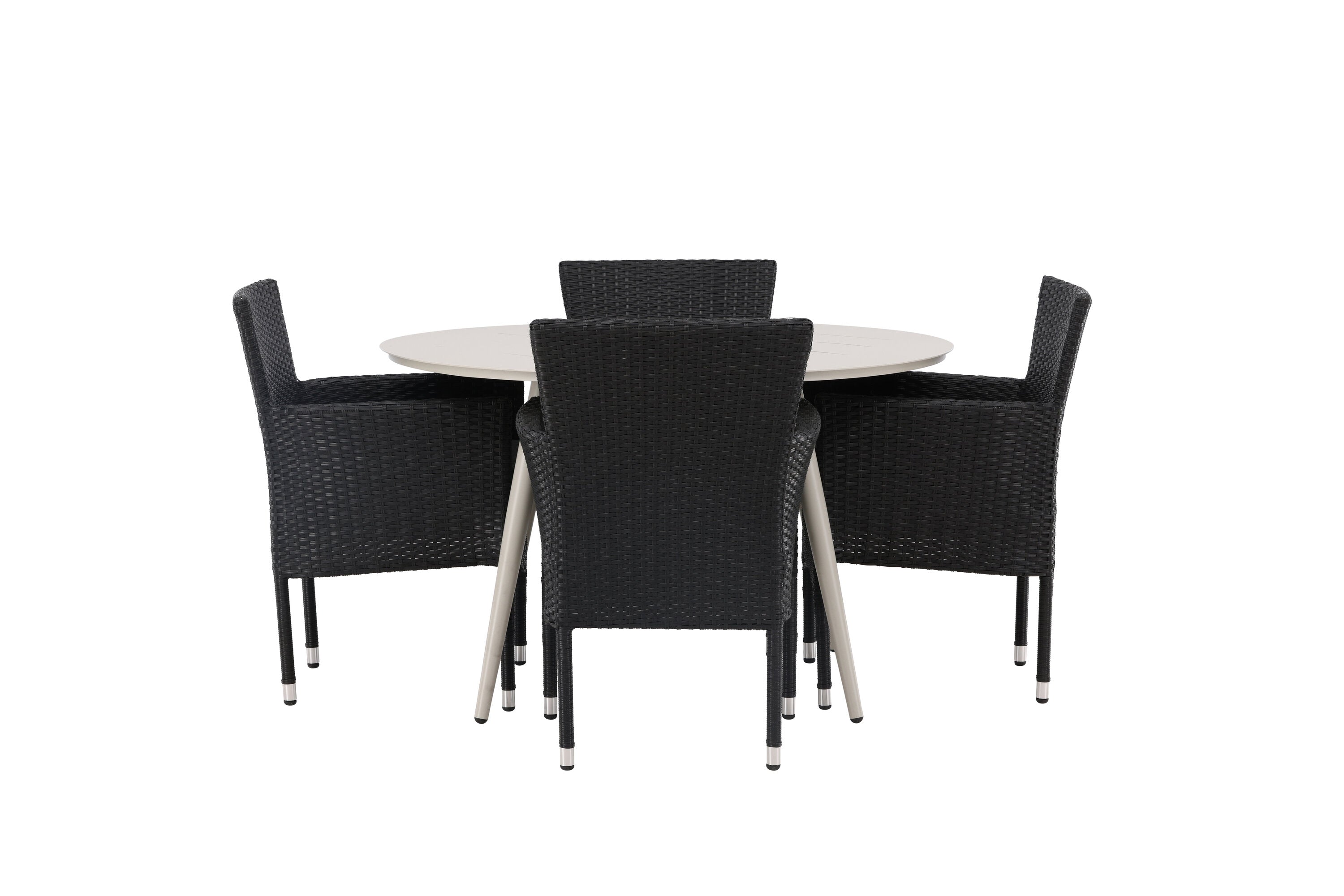 Lina Jídelní stůl - Béžový - Kulatý 120 cm +Malina Jídelní židle Alumnium - Černá / Proutěný _4