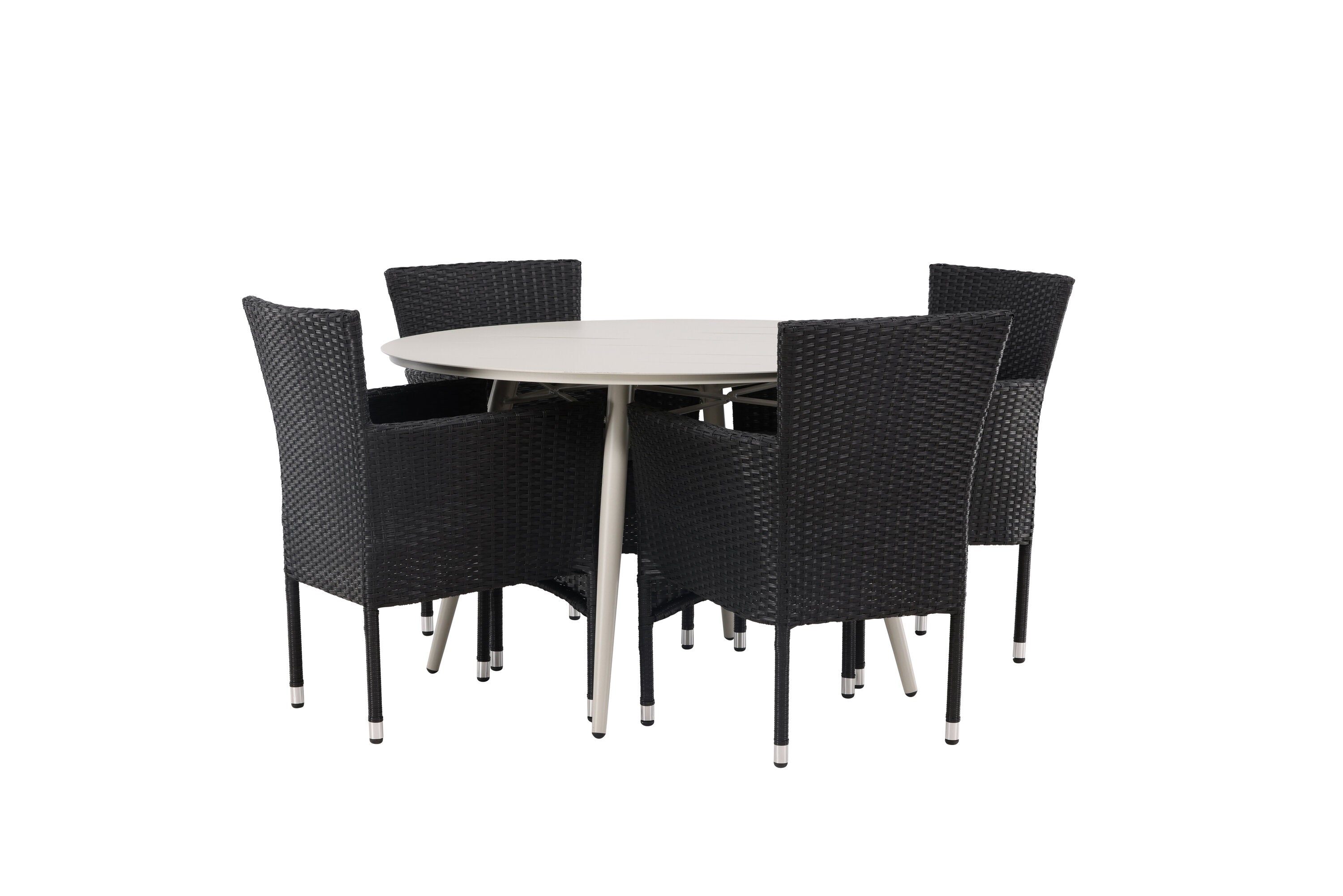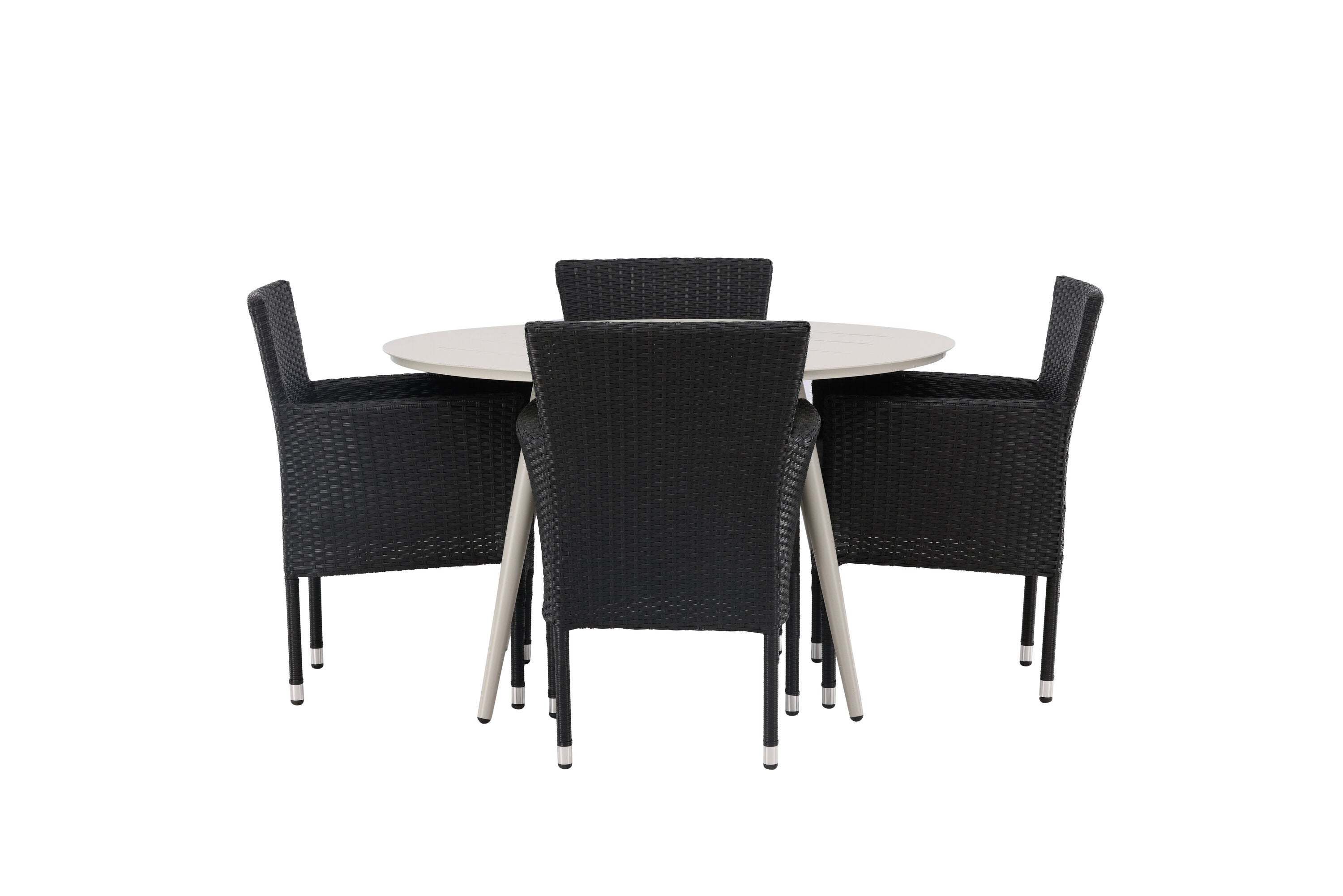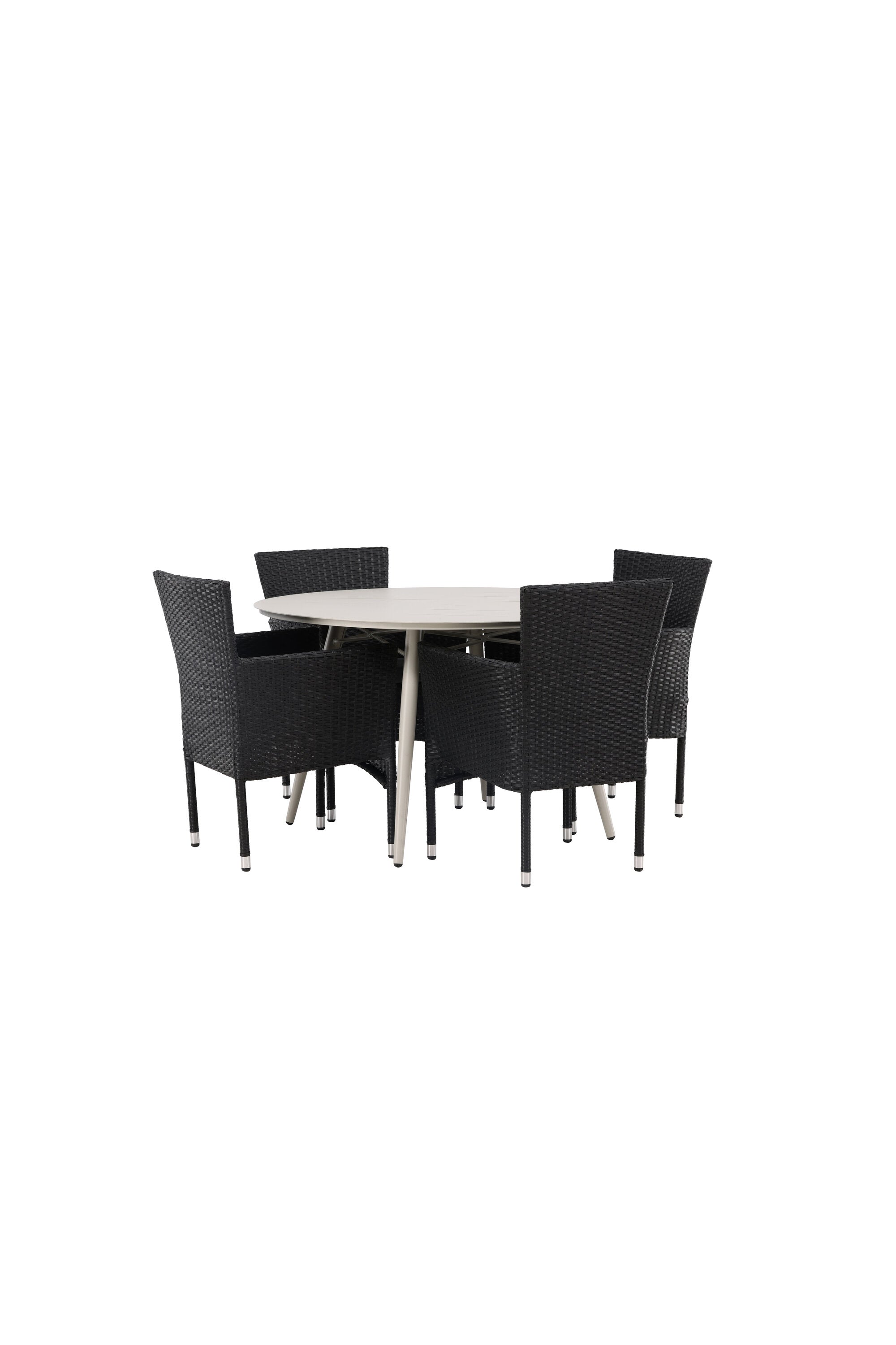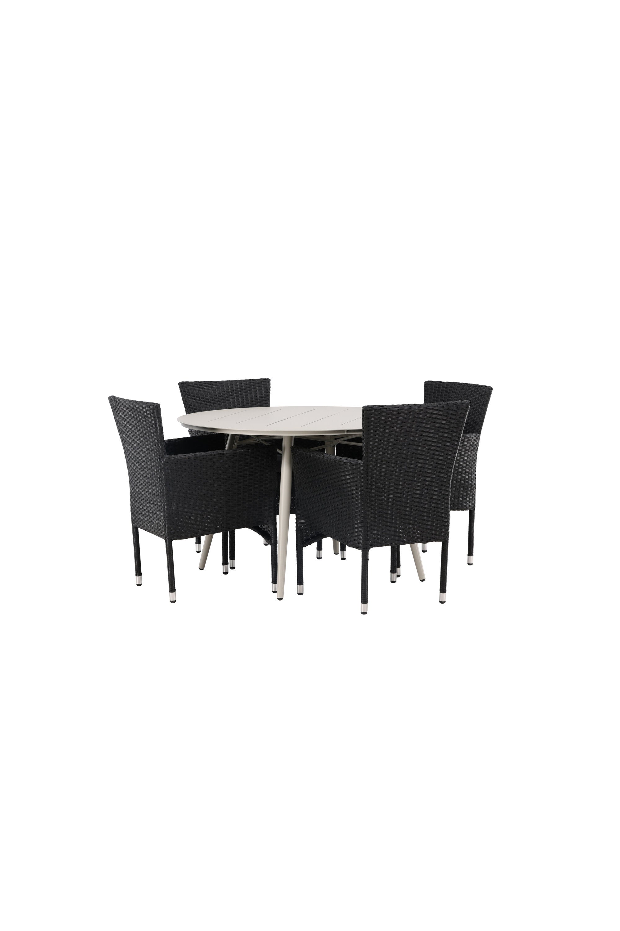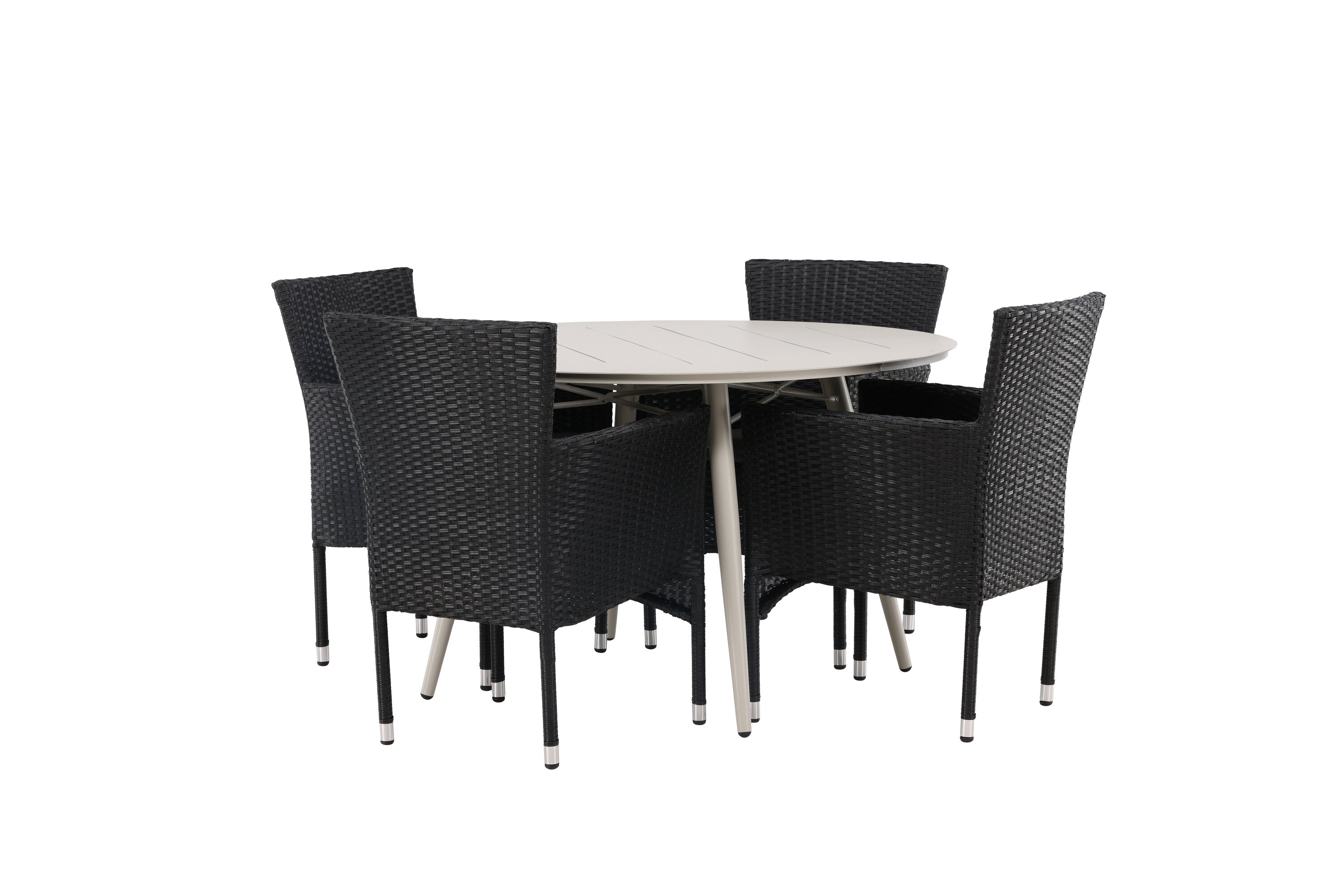 Lina Jídelní stůl - Béžový - Kulatý 120 cm +Malina Jídelní židle Alumnium - Černá / Proutěný _4