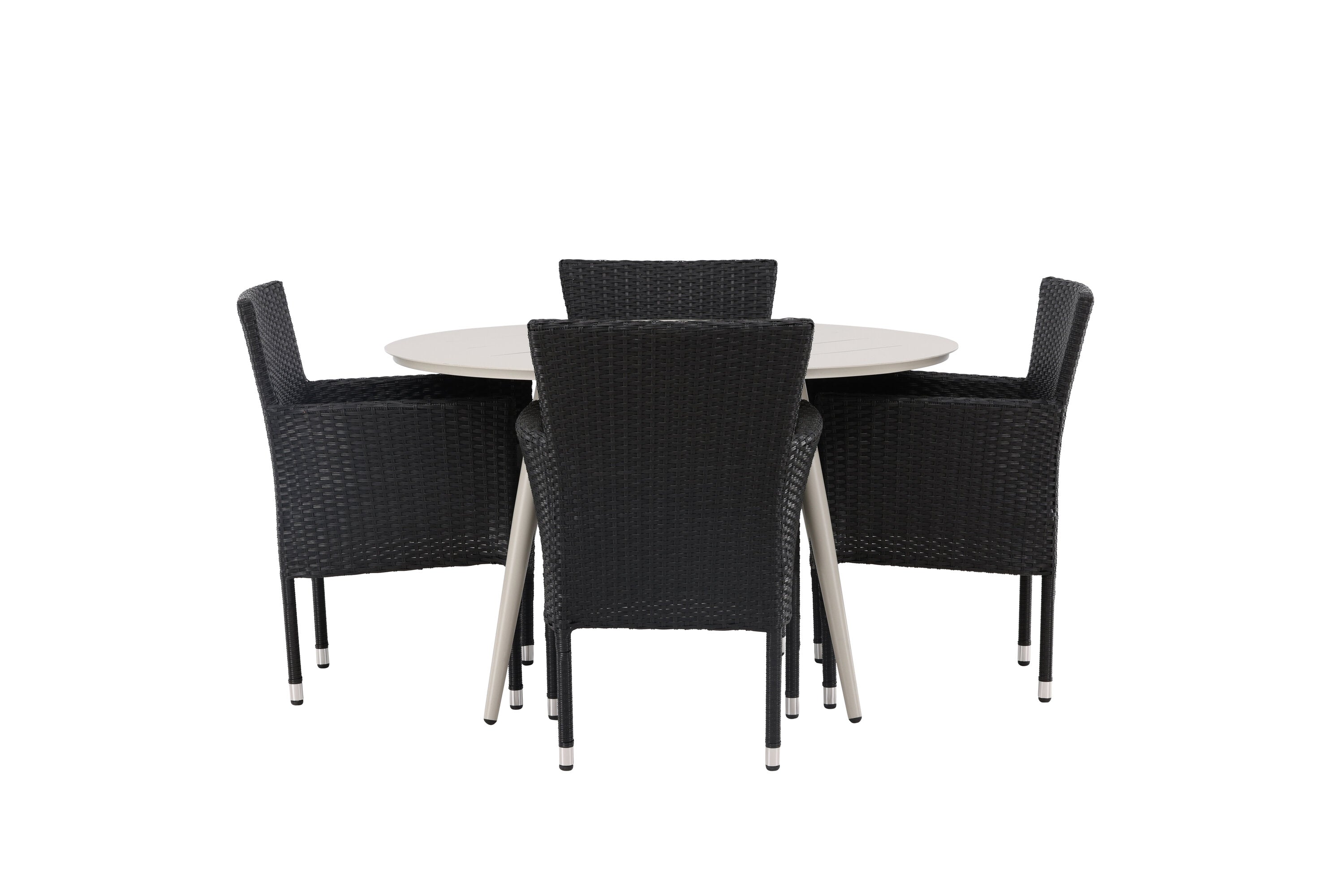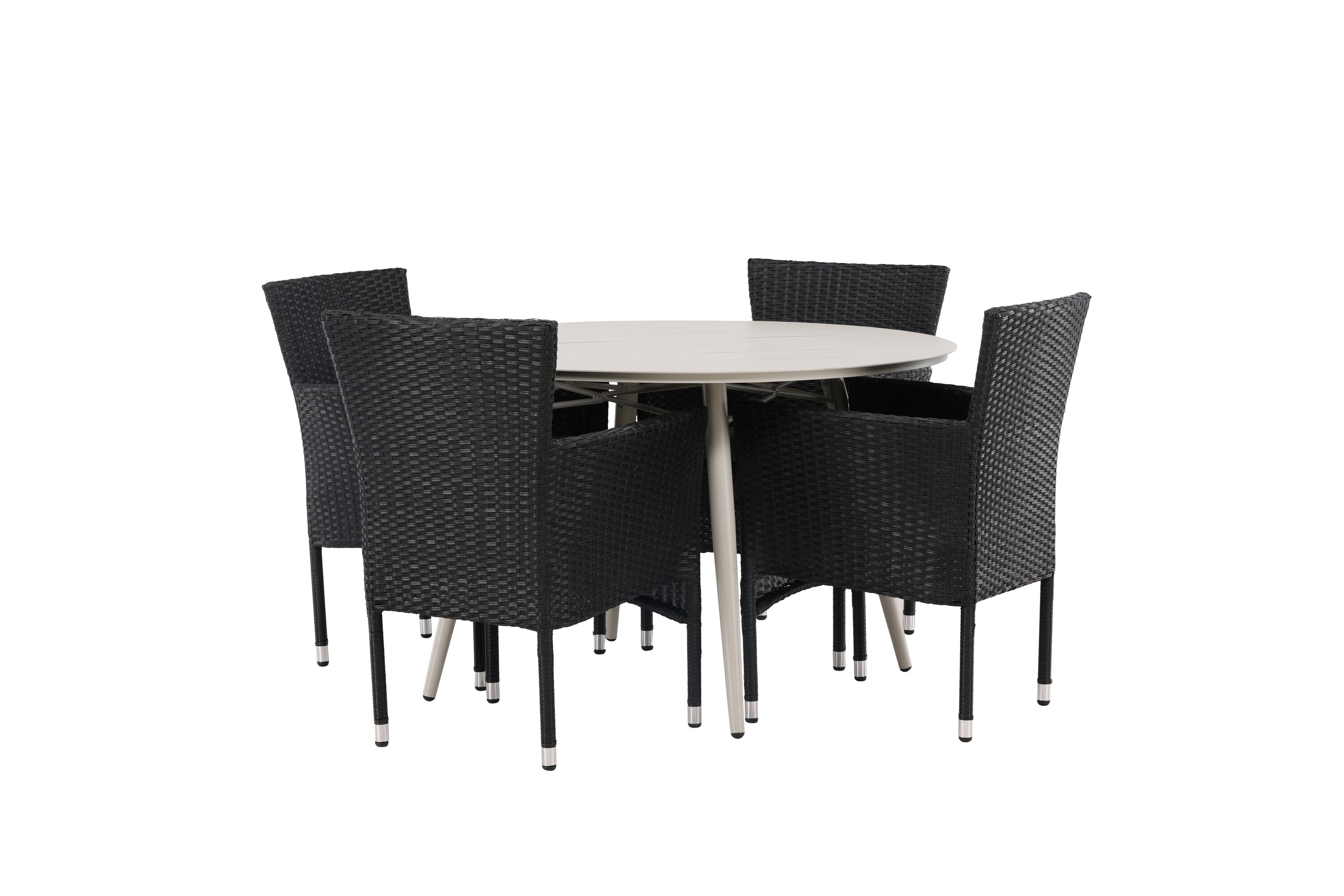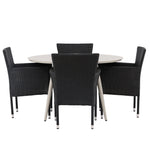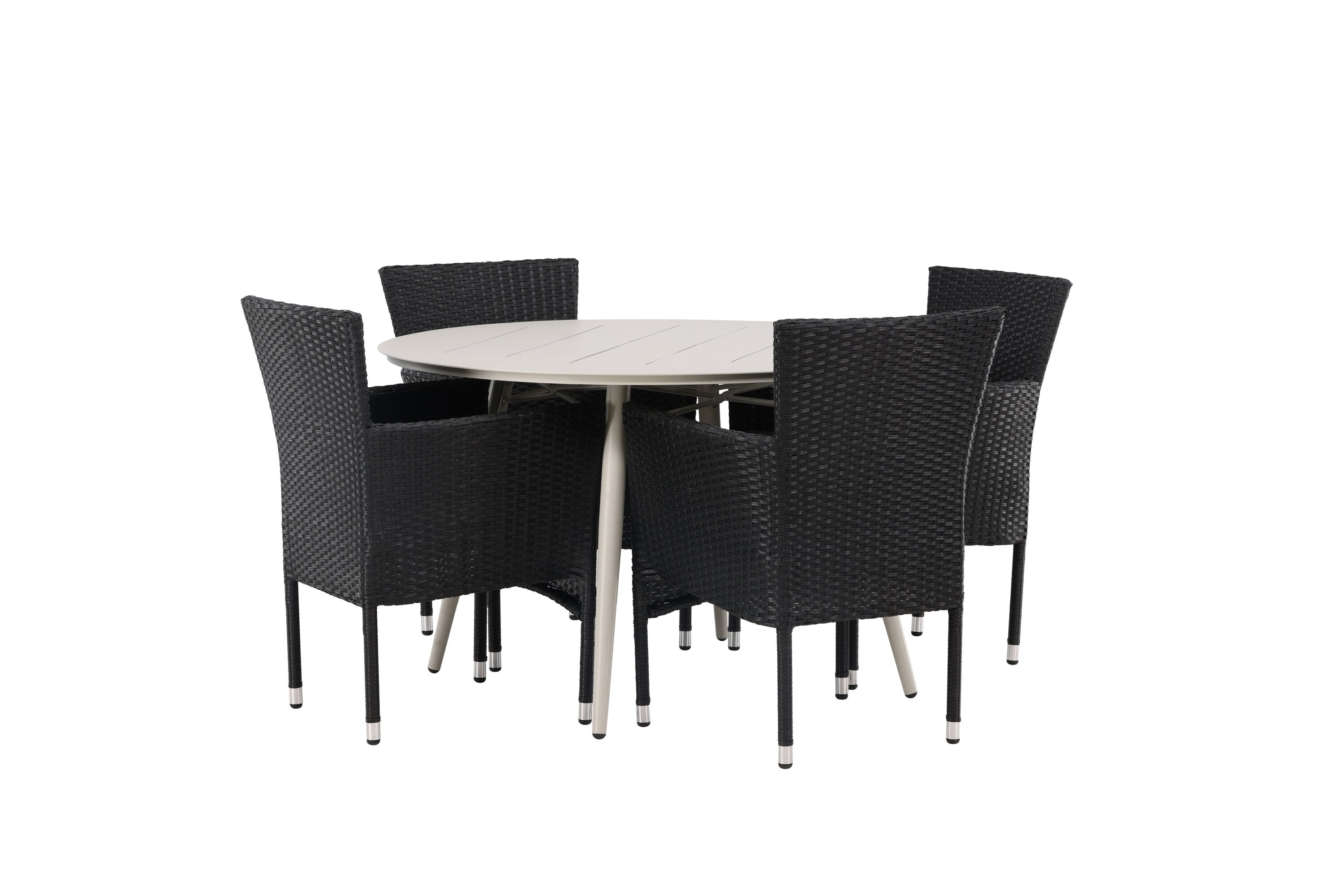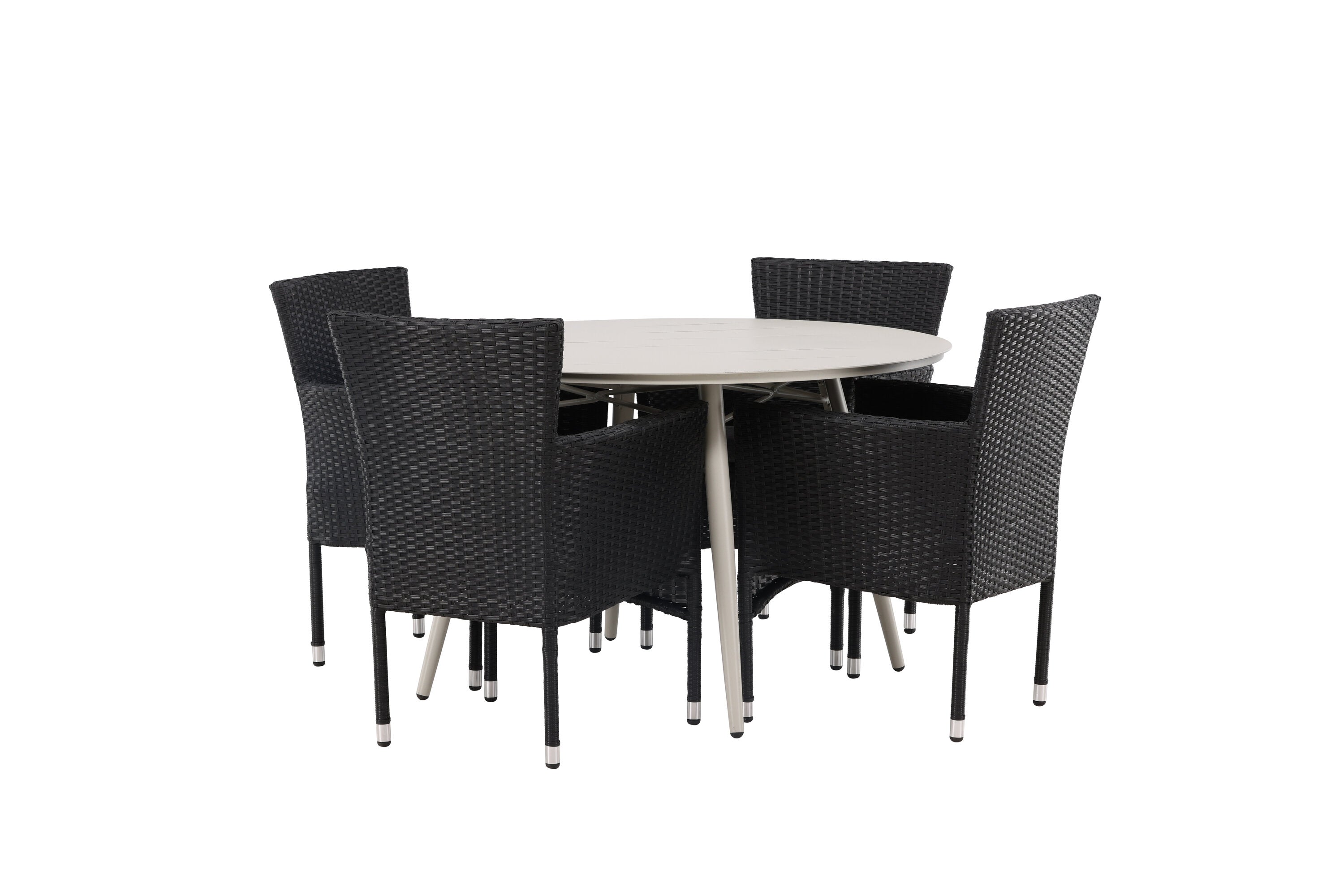 Lina Jídelní stůl - Béžový - Kulatý 120 cm +Malina Jídelní židle Alumnium - Černá / Proutěný _4