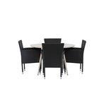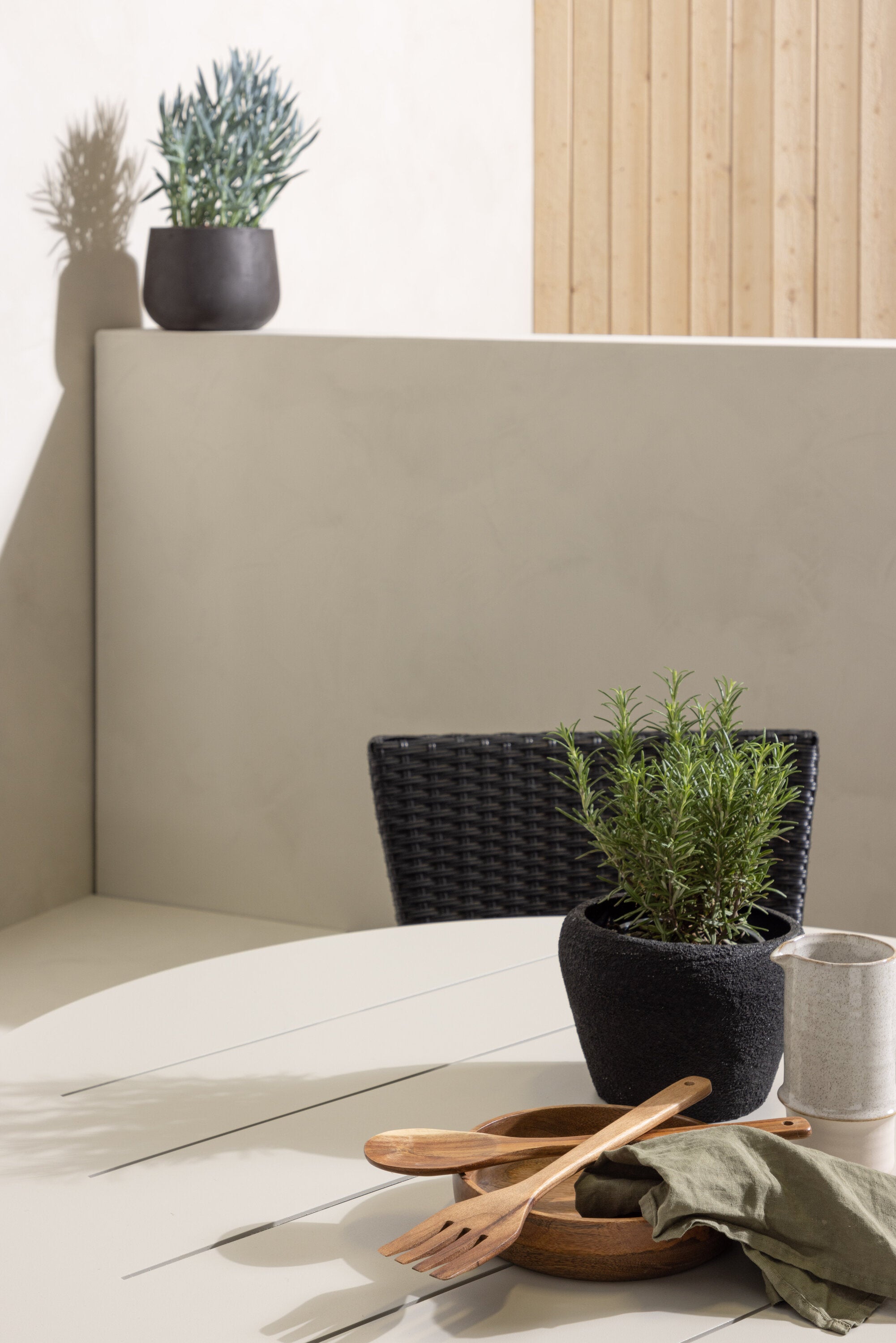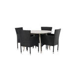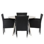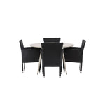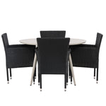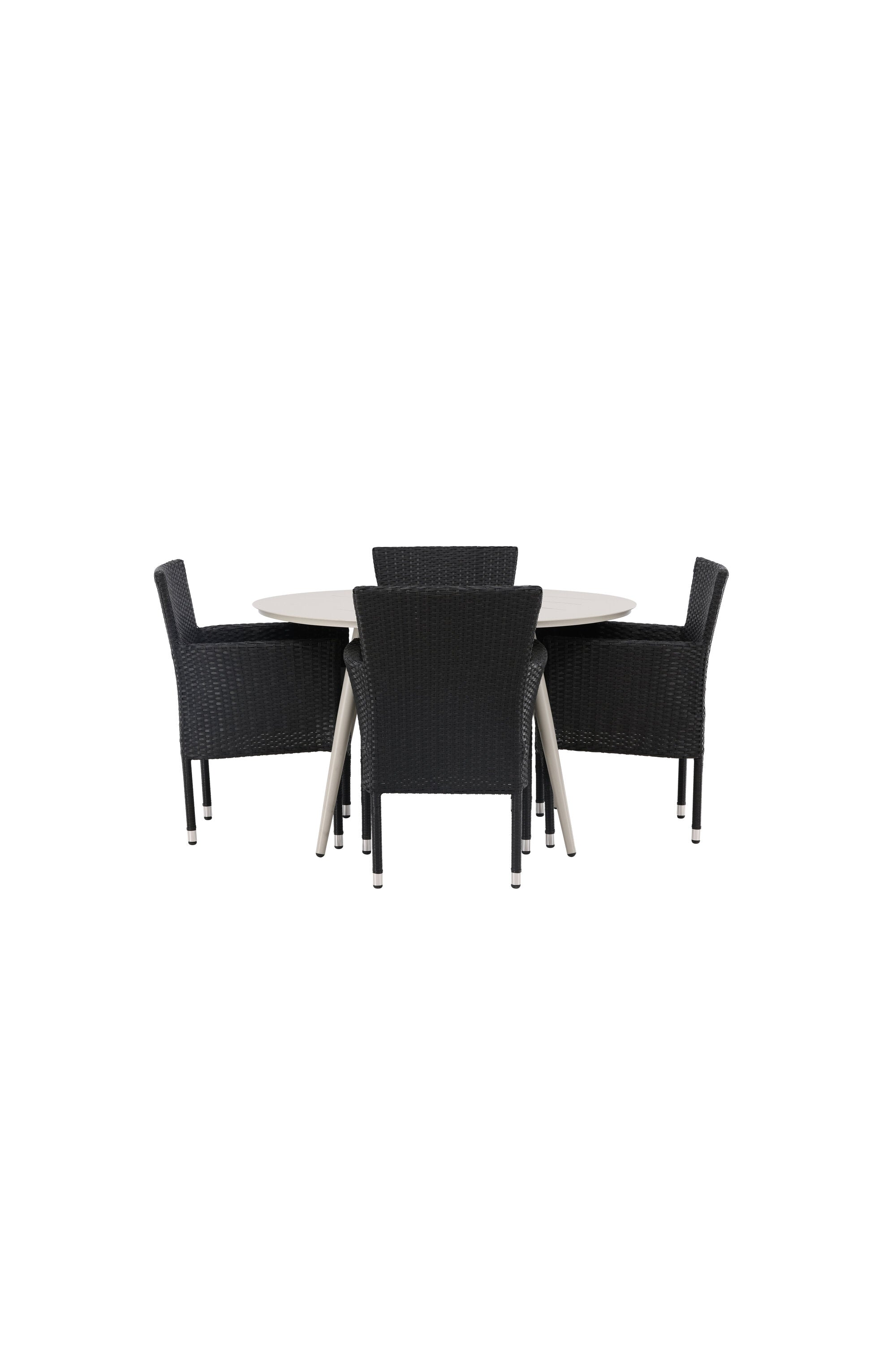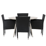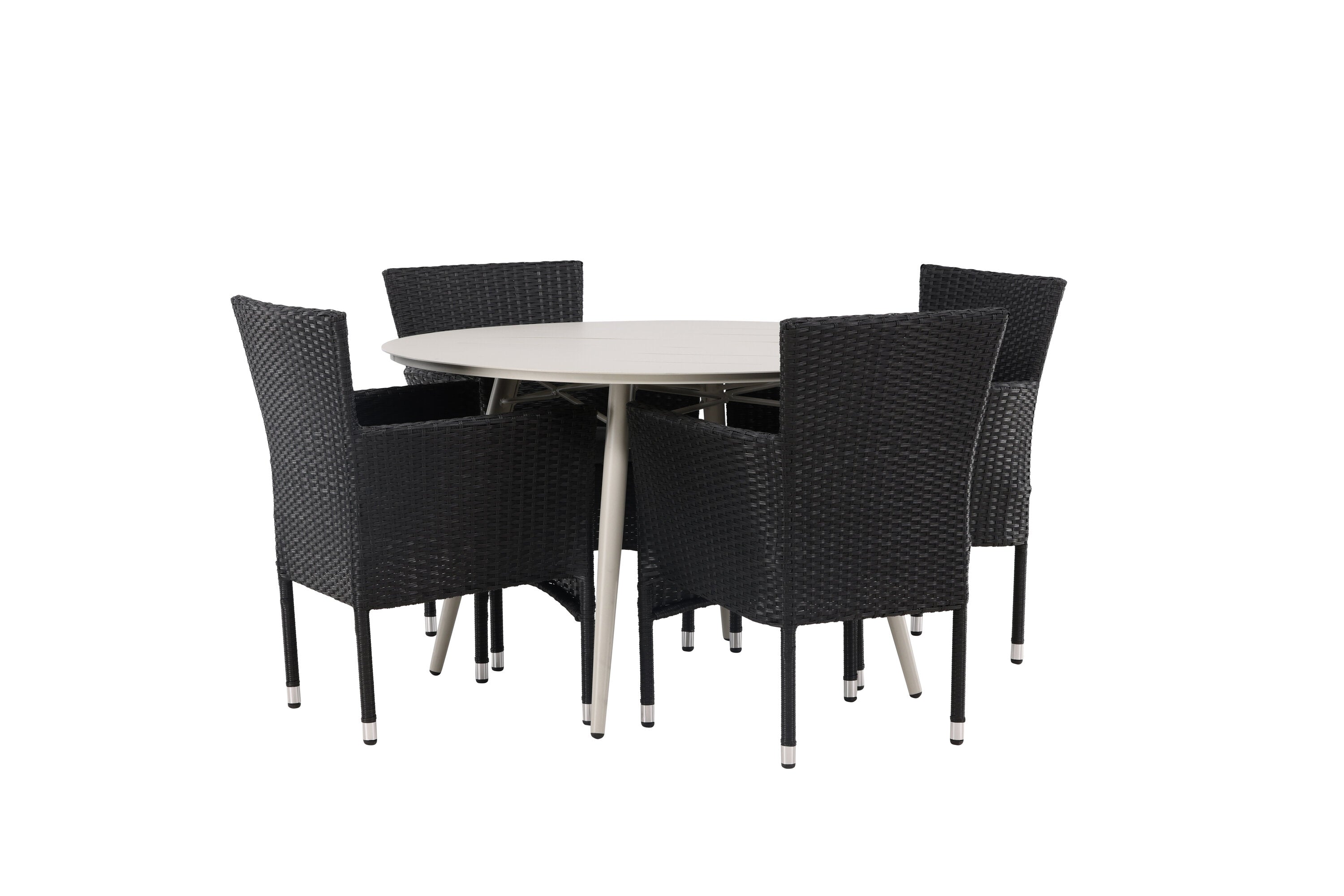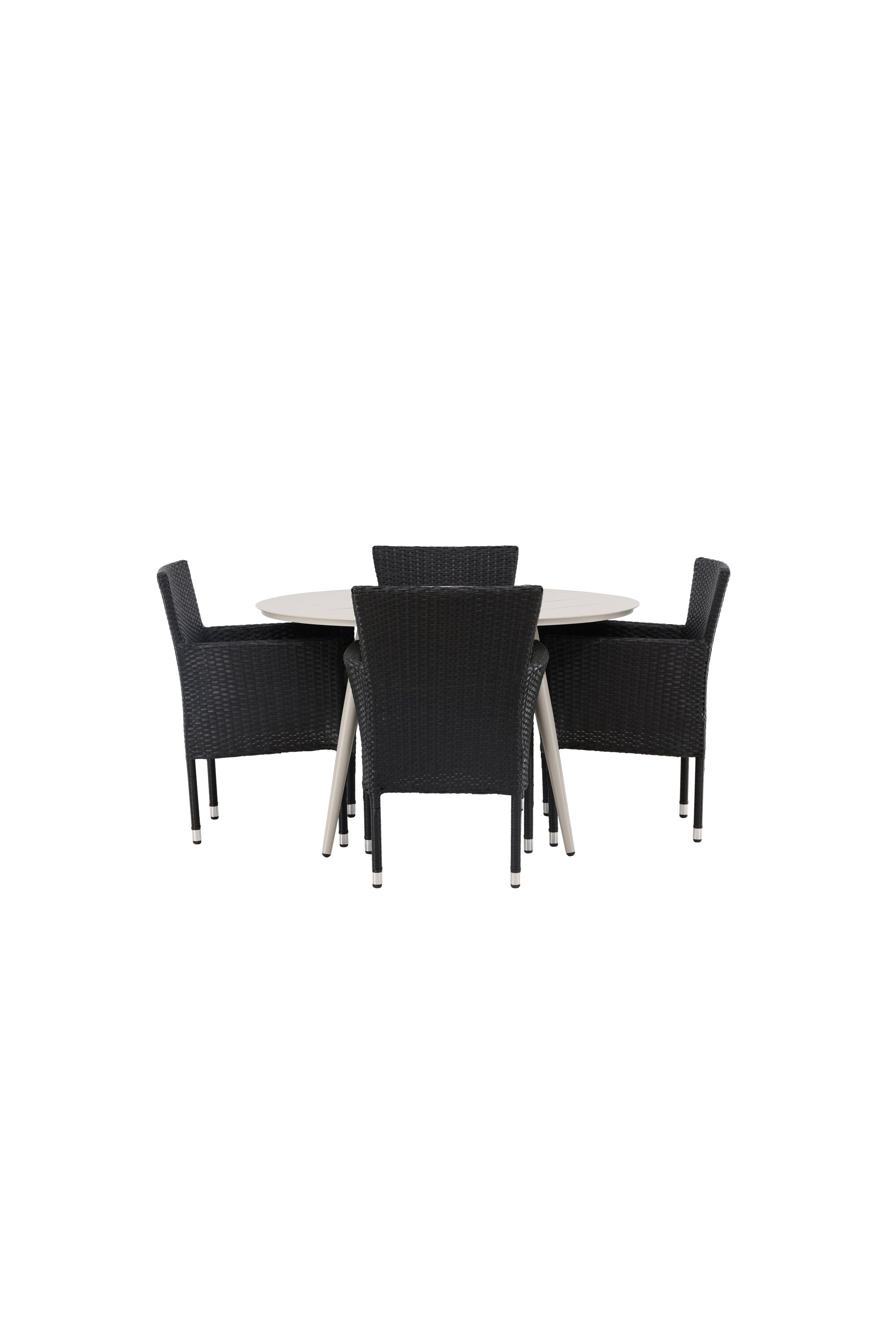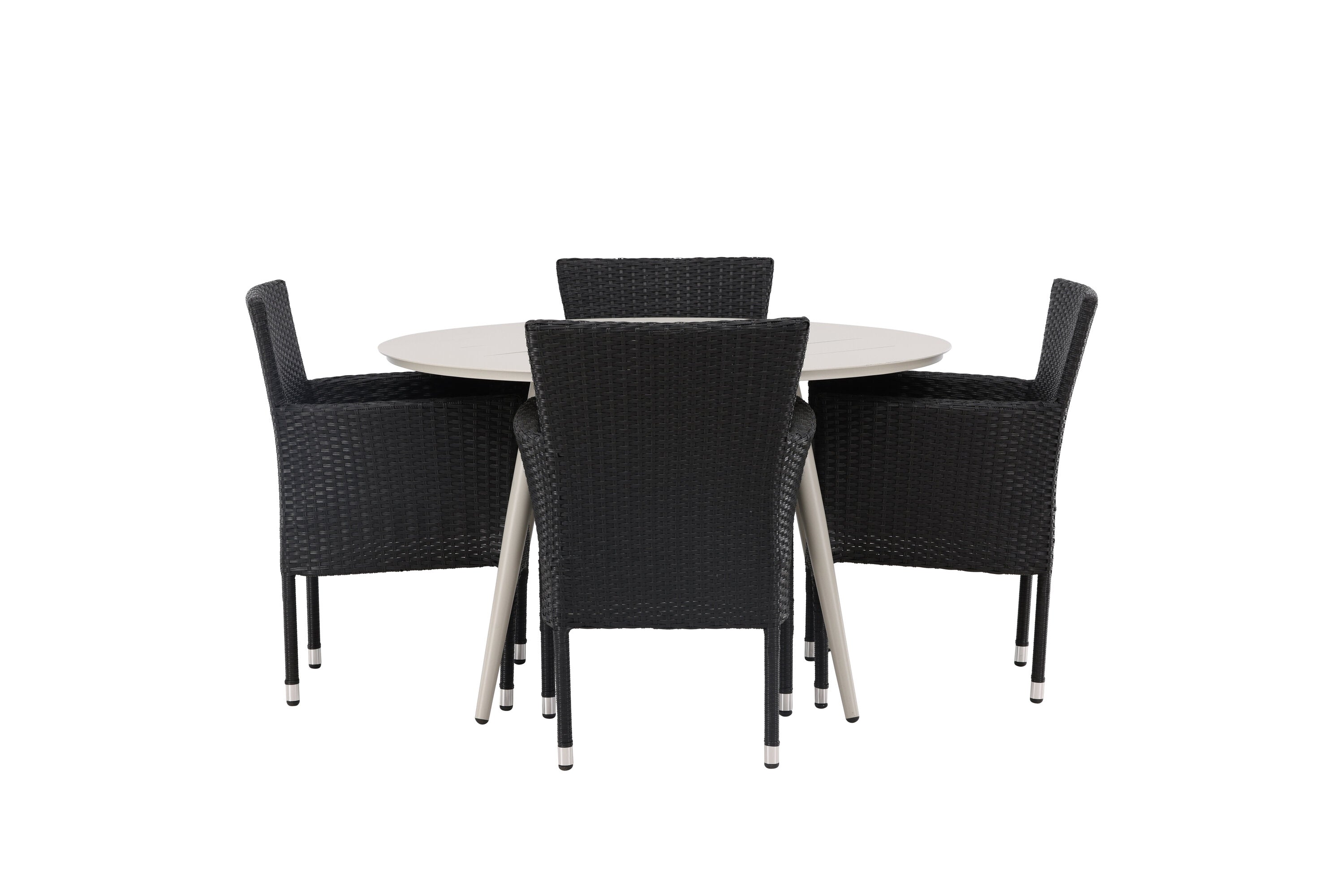 Lina Jídelní stůl - Béžový - Kulatý 120 cm +Malina Jídelní židle Alumnium - Černá / Proutěný _4