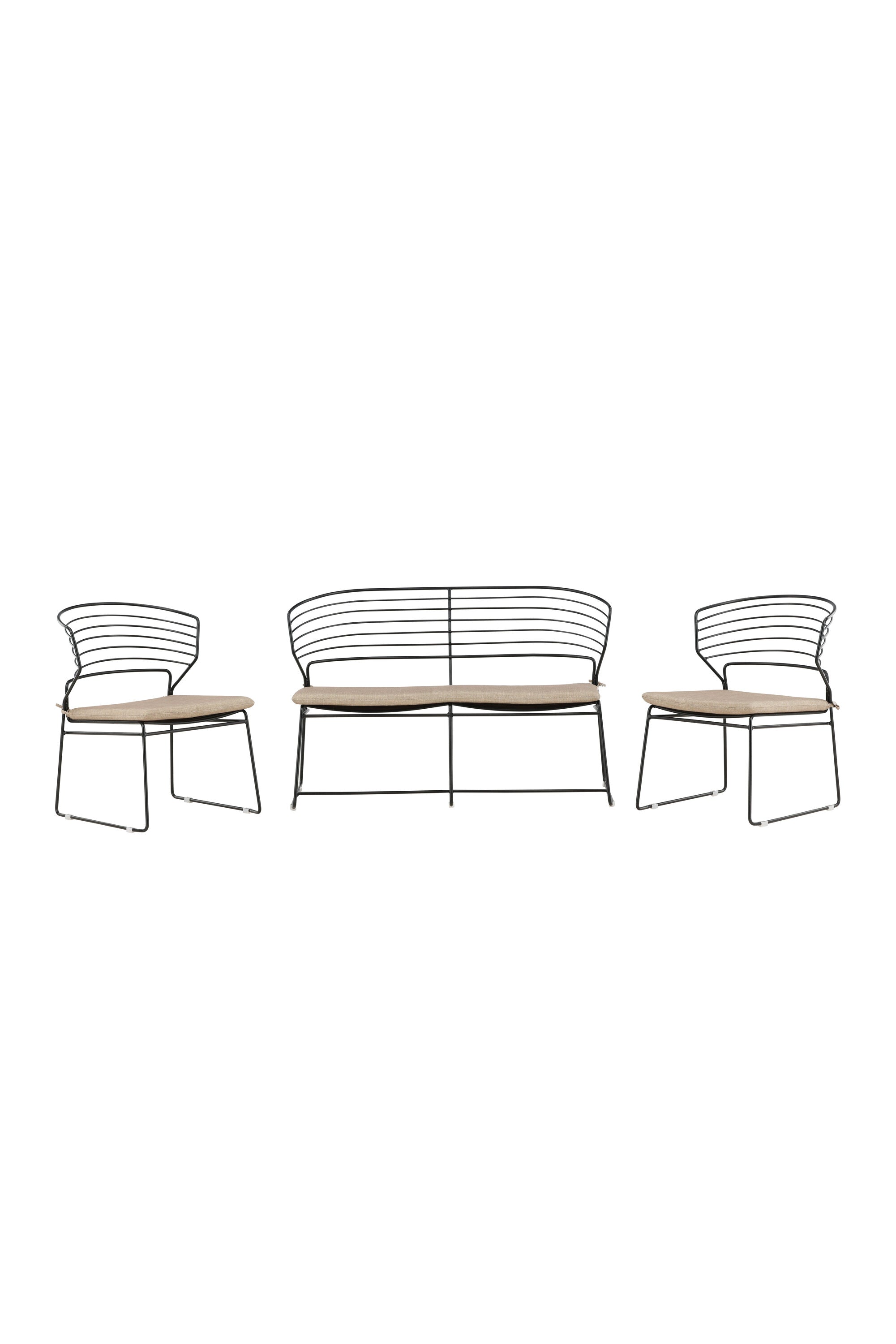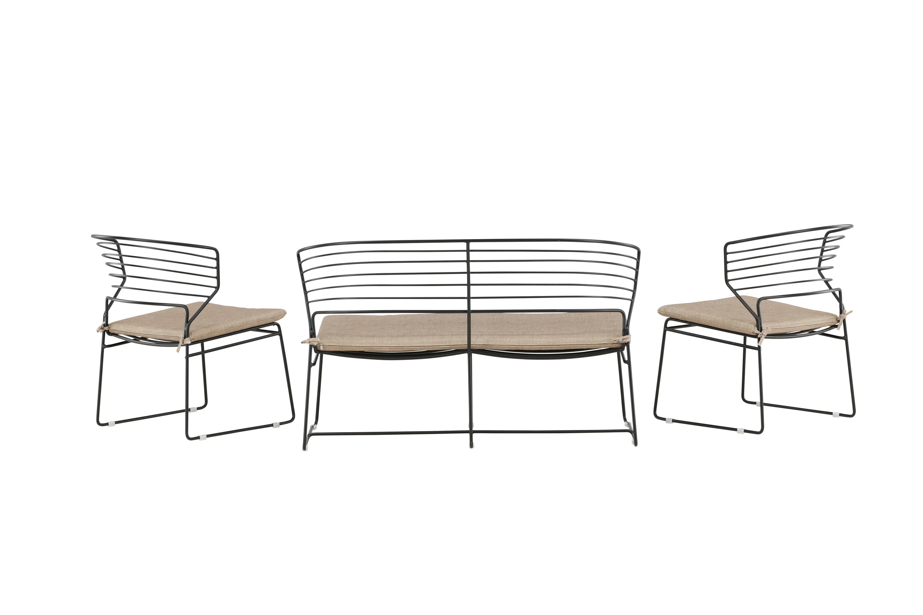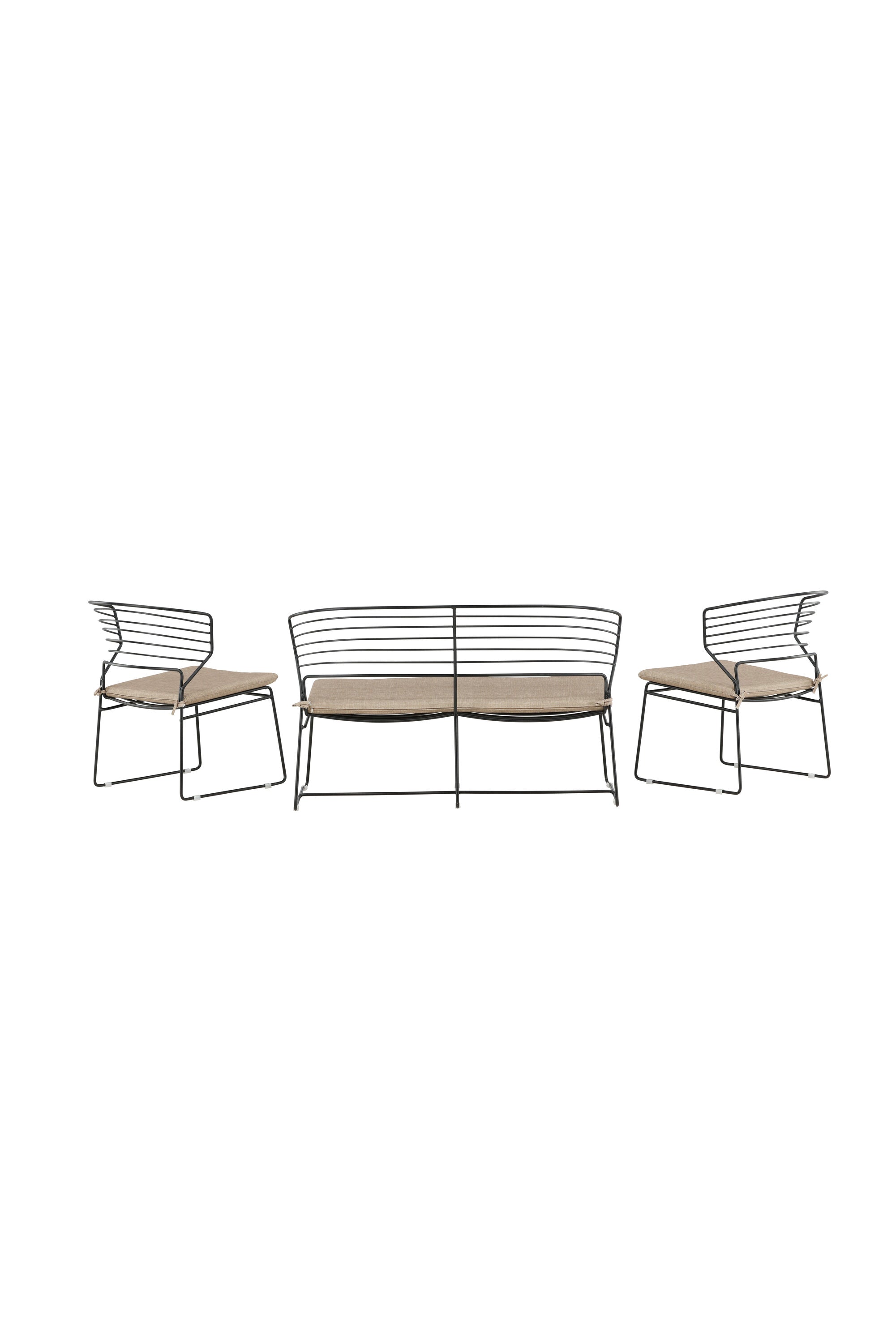 Tato skupina salonků ze série Milano udělá na vaší terase působivý dojem a rychle vytvoří moderní poutač! Skandinávský design je odolný vůči trendům se svými měkkými severskými tvary a minimalistickým štukem. Sedák je měkce čalouněný šedou polyesterovou tkaninou a rám nohou je stylově tenký v černé oceli se spodním opěradlem. Součástí setu je dvoumístná pohovka a dvě křesla. Shromážděte své blízké a užijte si společně pozdní letní večery v pohodlném salonku, který také zdobí vaši terasu!