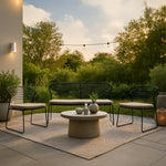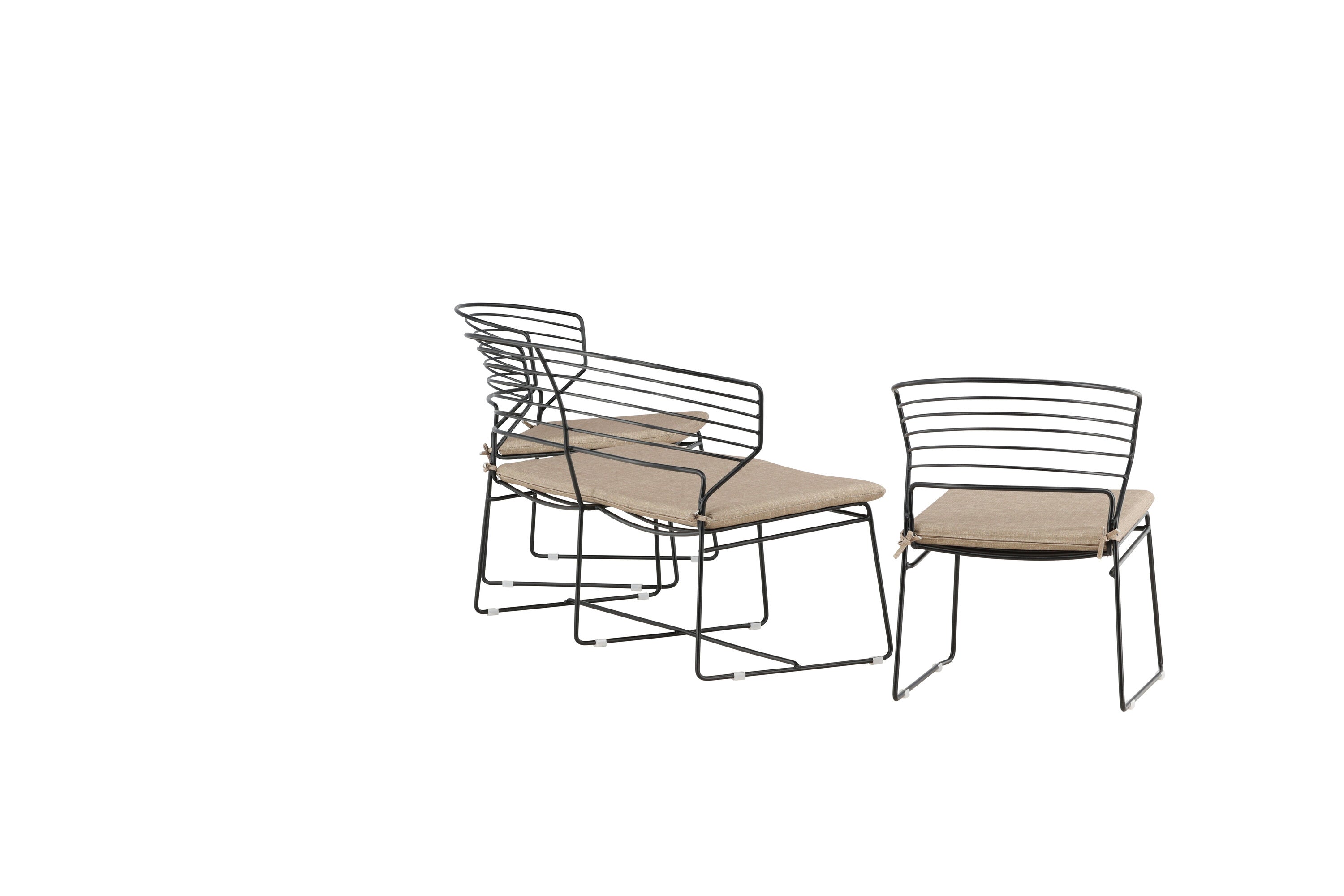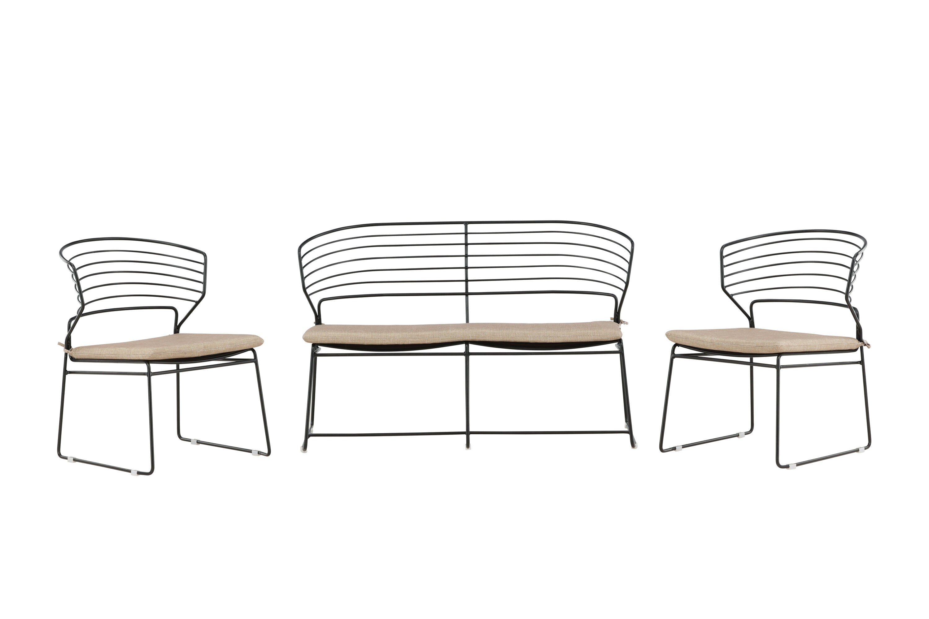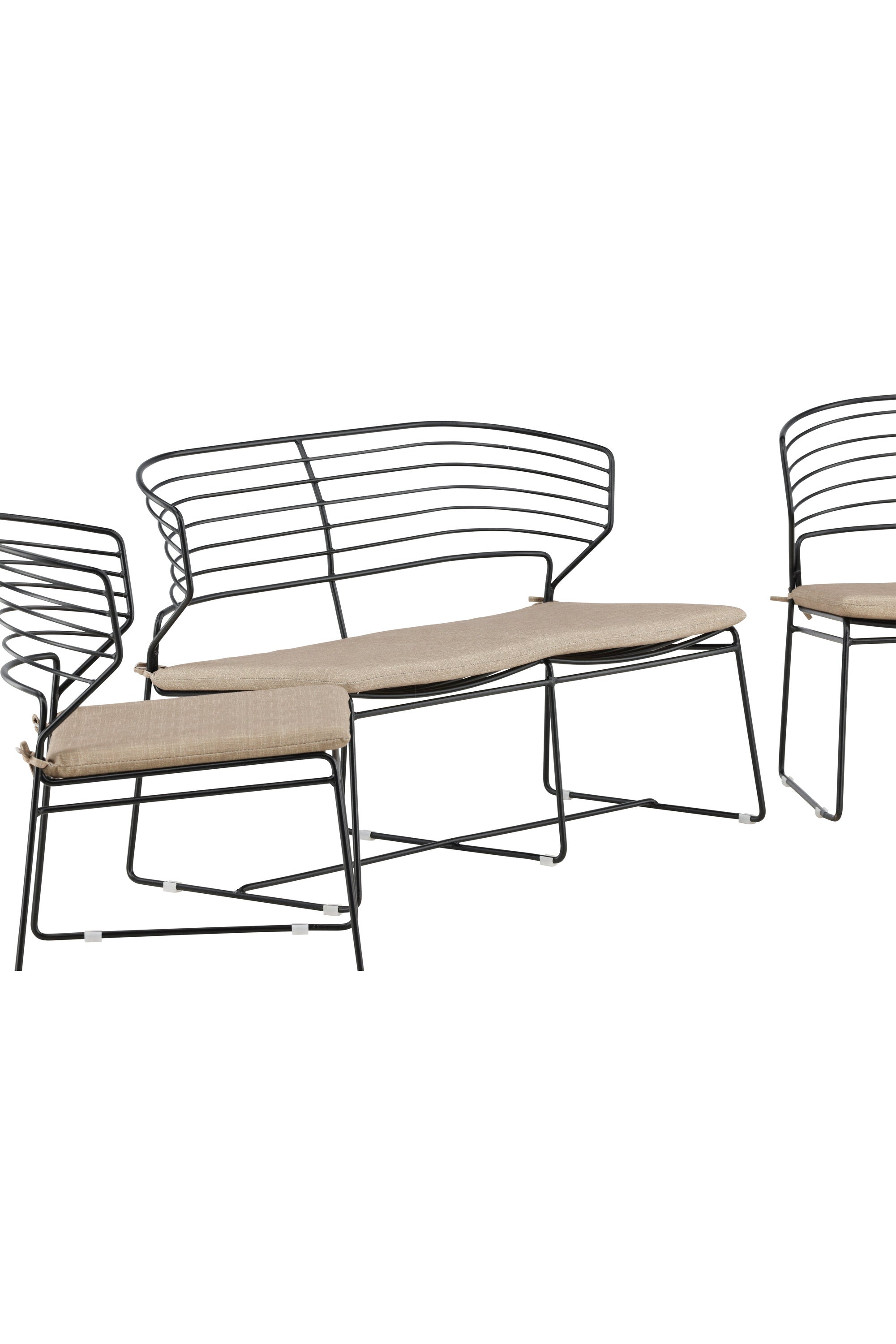 Tato skupina salonků ze série Milano udělá na vaší terase působivý dojem a rychle vytvoří moderní poutač! Skandinávský design je odolný vůči trendům se svými měkkými severskými tvary a minimalistickým štukem. Sedák je měkce čalouněný šedou polyesterovou tkaninou a rám nohou je stylově tenký v černé oceli se spodním opěradlem. Součástí setu je dvoumístná pohovka a dvě křesla. Shromážděte své blízké a užijte si společně pozdní letní večery v pohodlném salonku, který také zdobí vaši terasu!