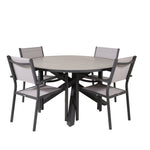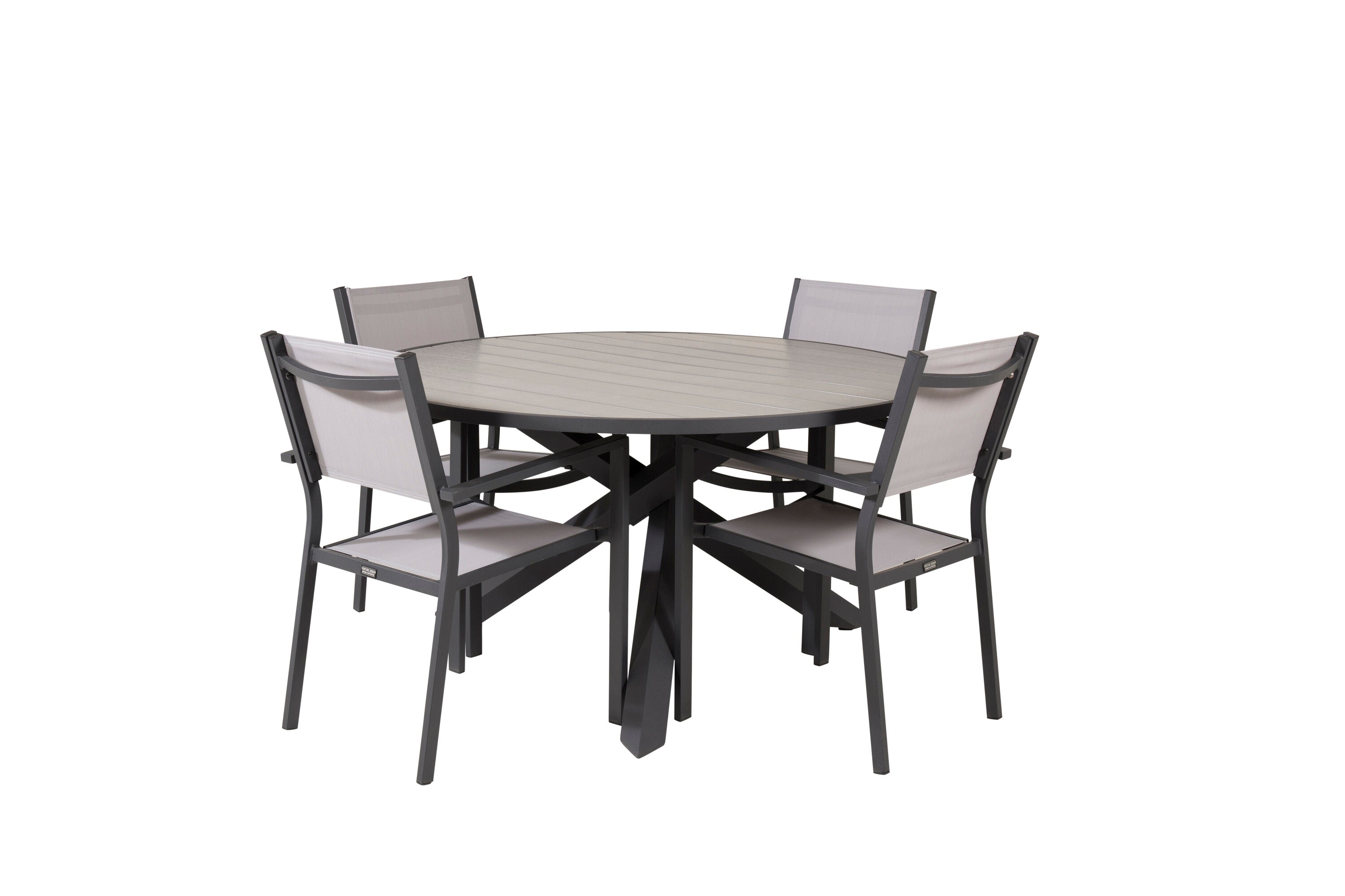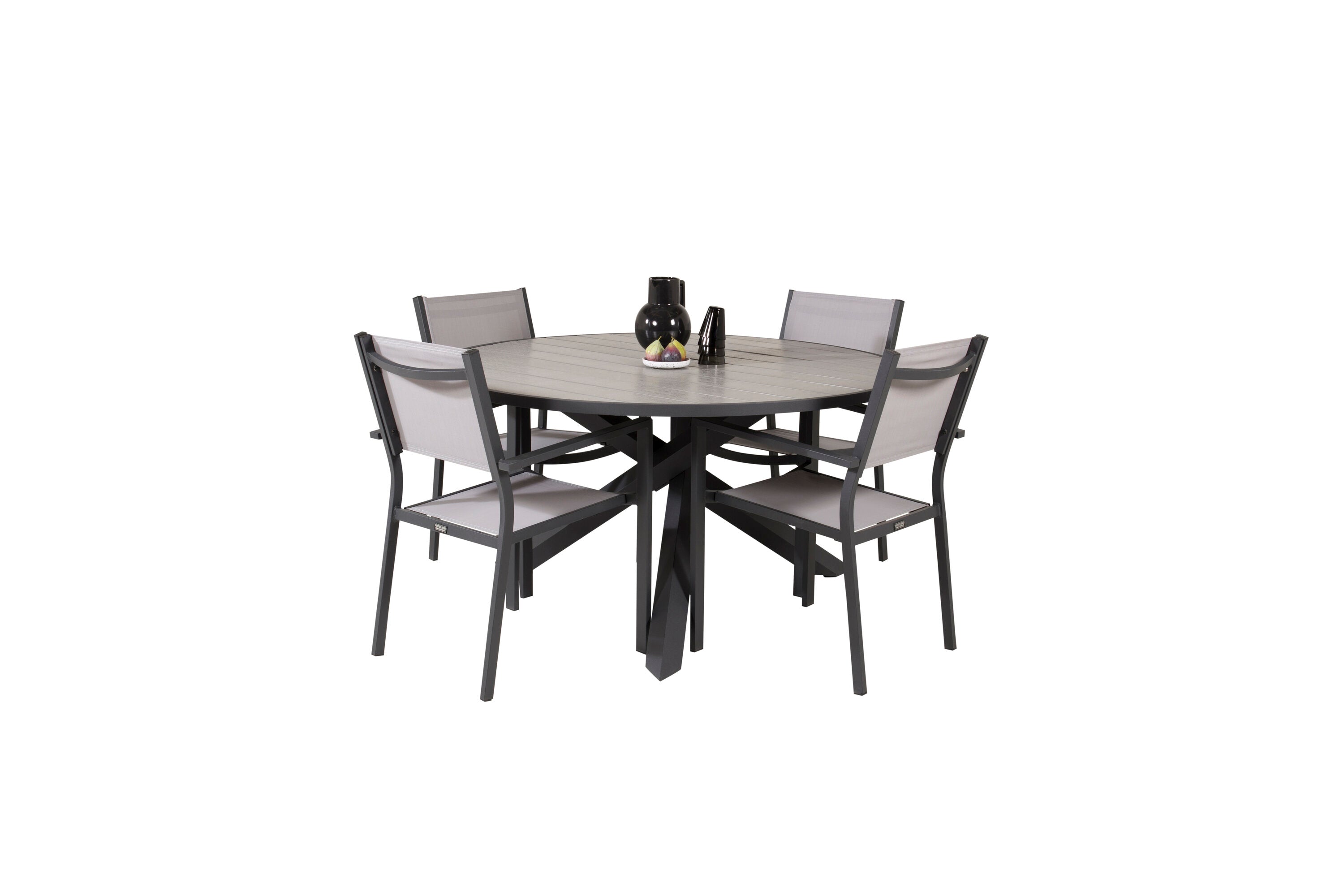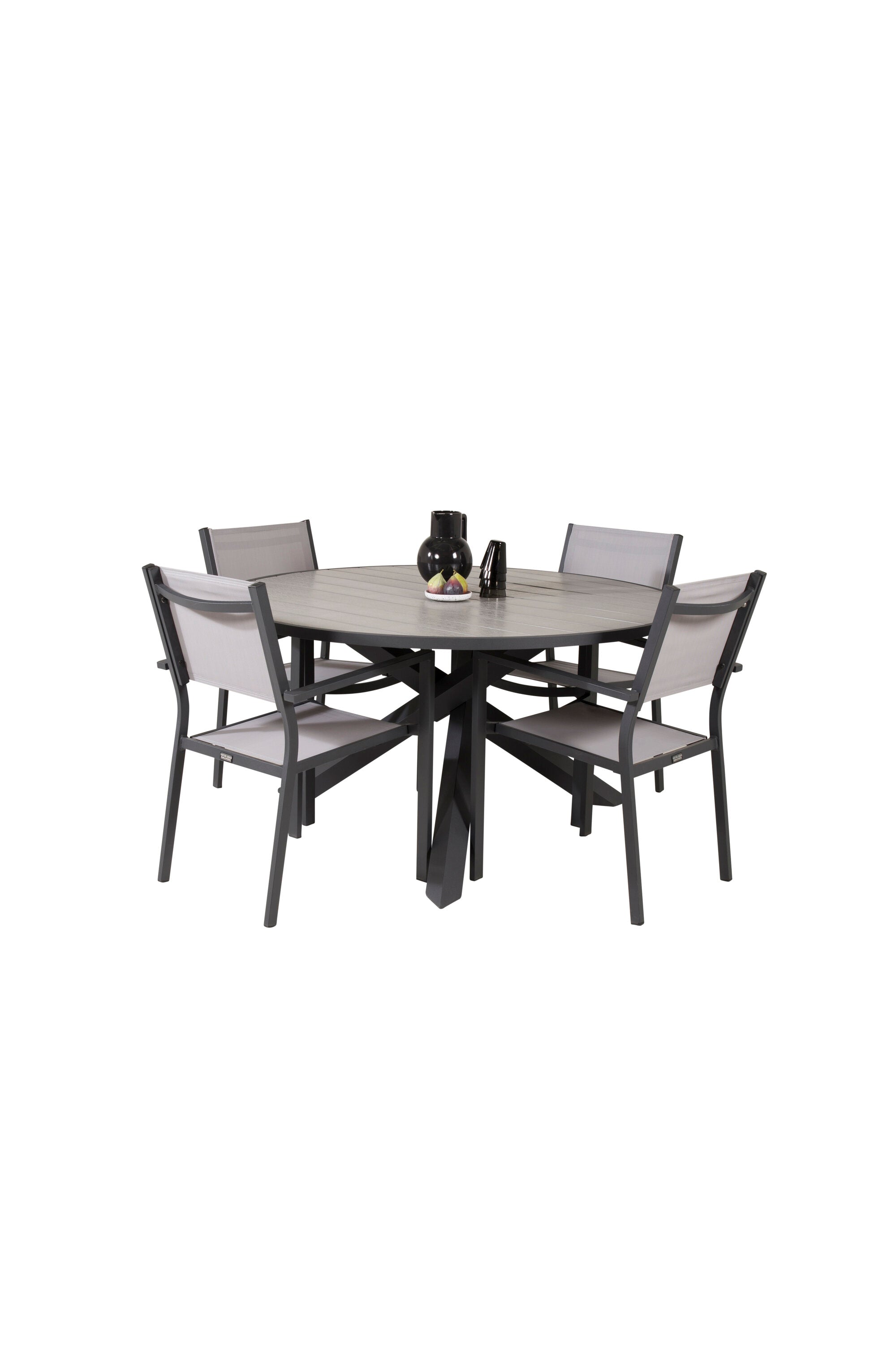 Parma - Stůl ø 140 - Černá Alu / šedá Aintwood+Copacabana křeslo (stohovatelné)