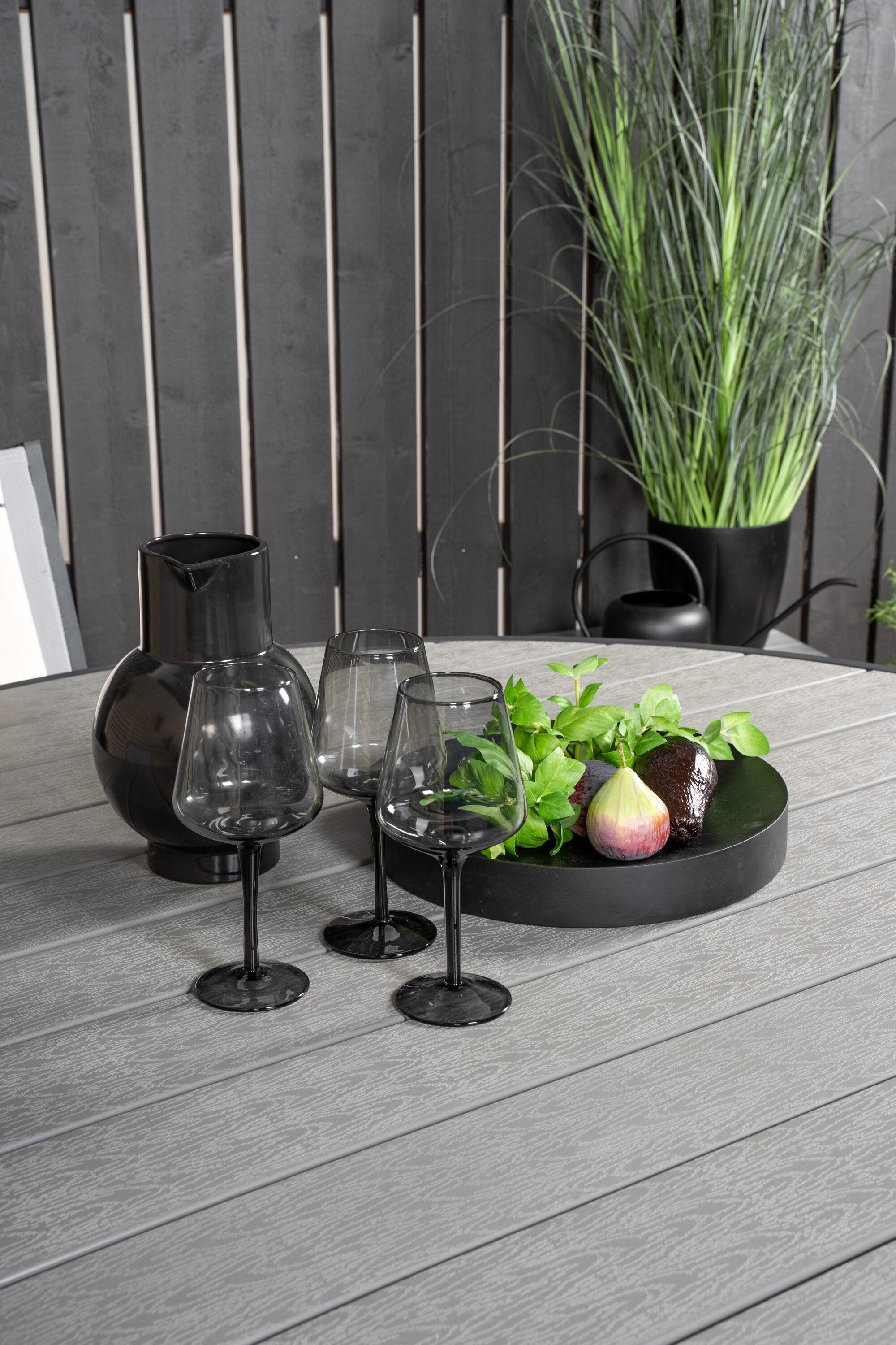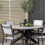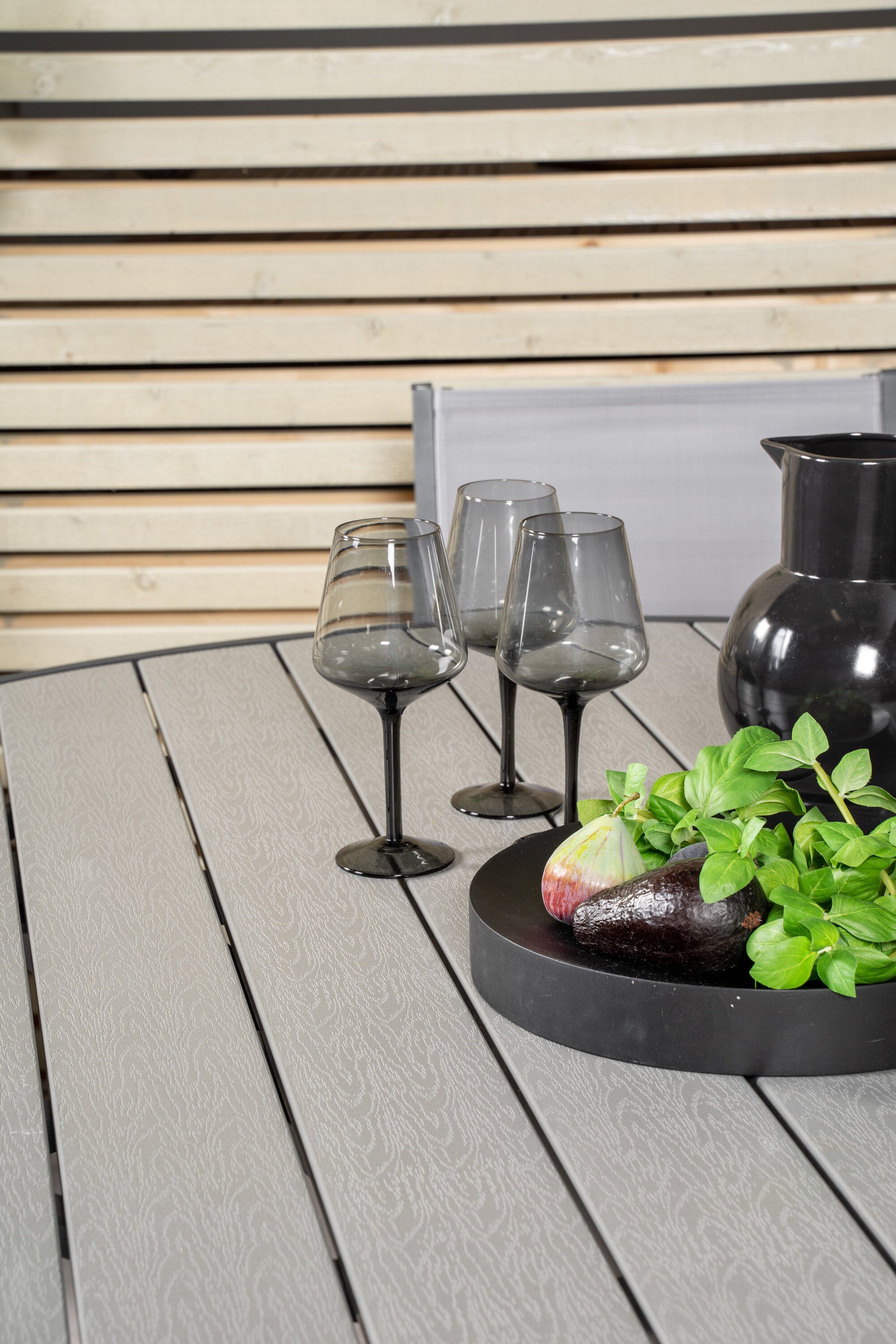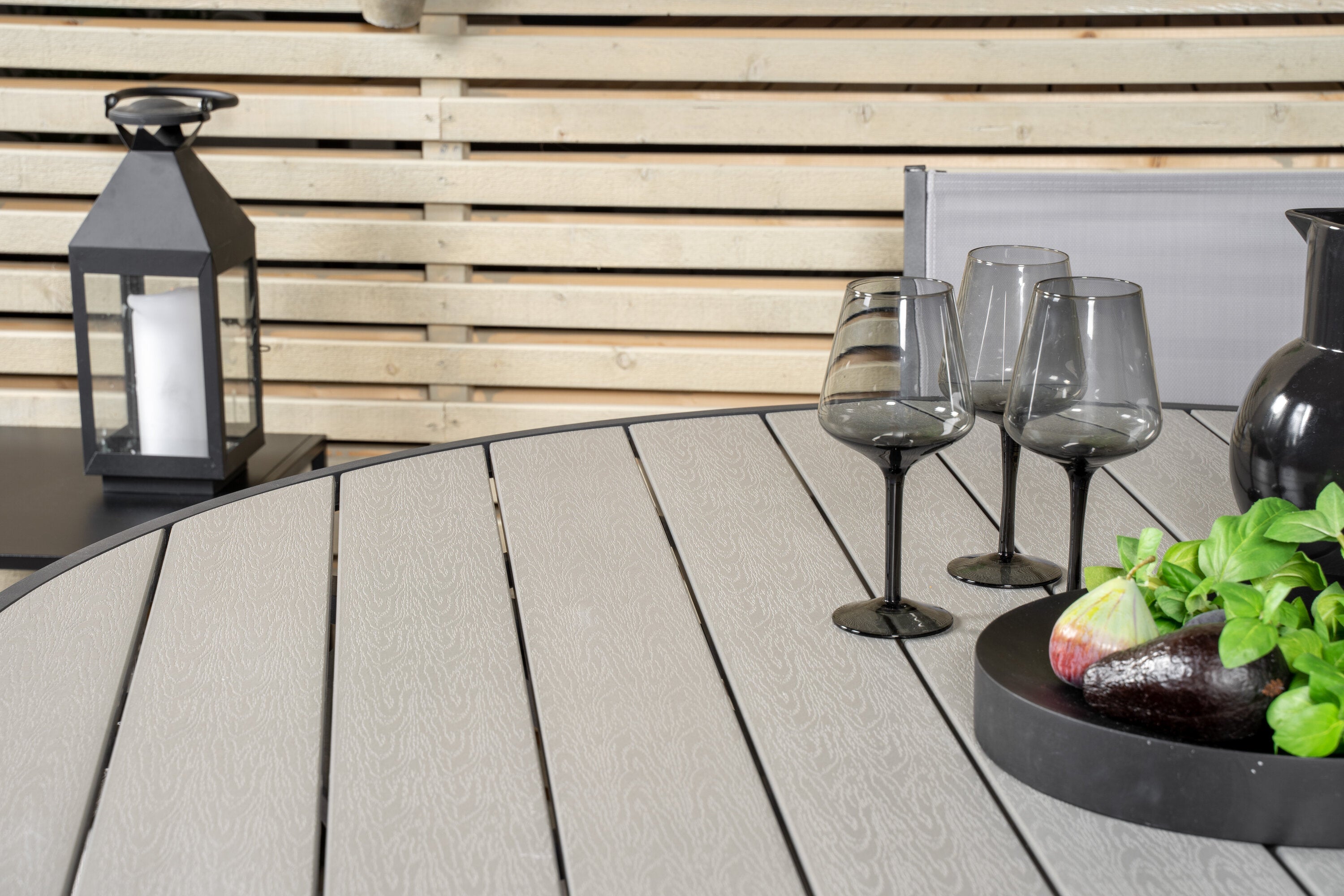 Parma - Stůl ø 140 - Černá Alu / šedá Aintwood+Copacabana křeslo (stohovatelné)