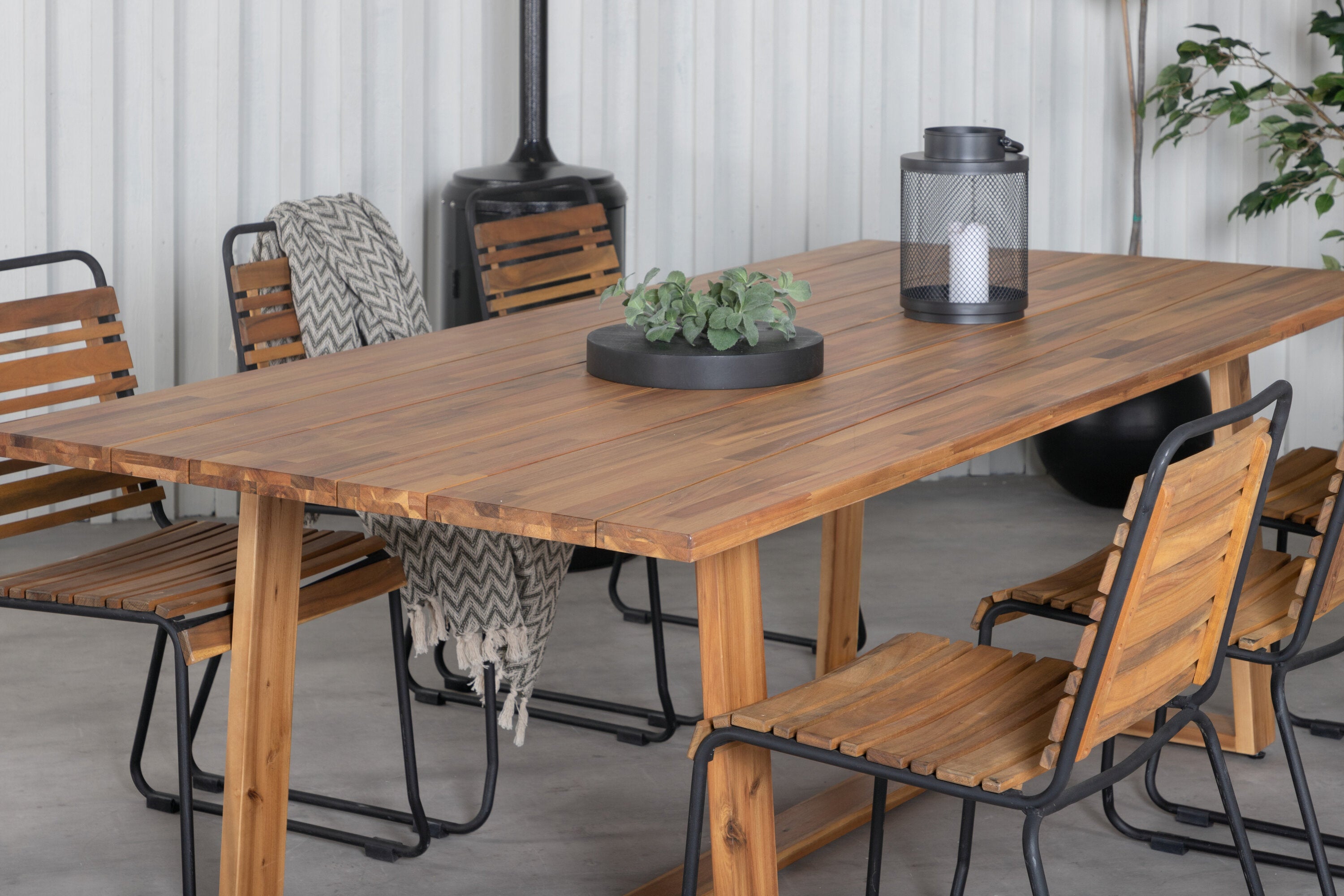 Plankton - Jídelní stůl akácie - 220*100+Bois Jídelní židle - Black Alu / Acacia_6
