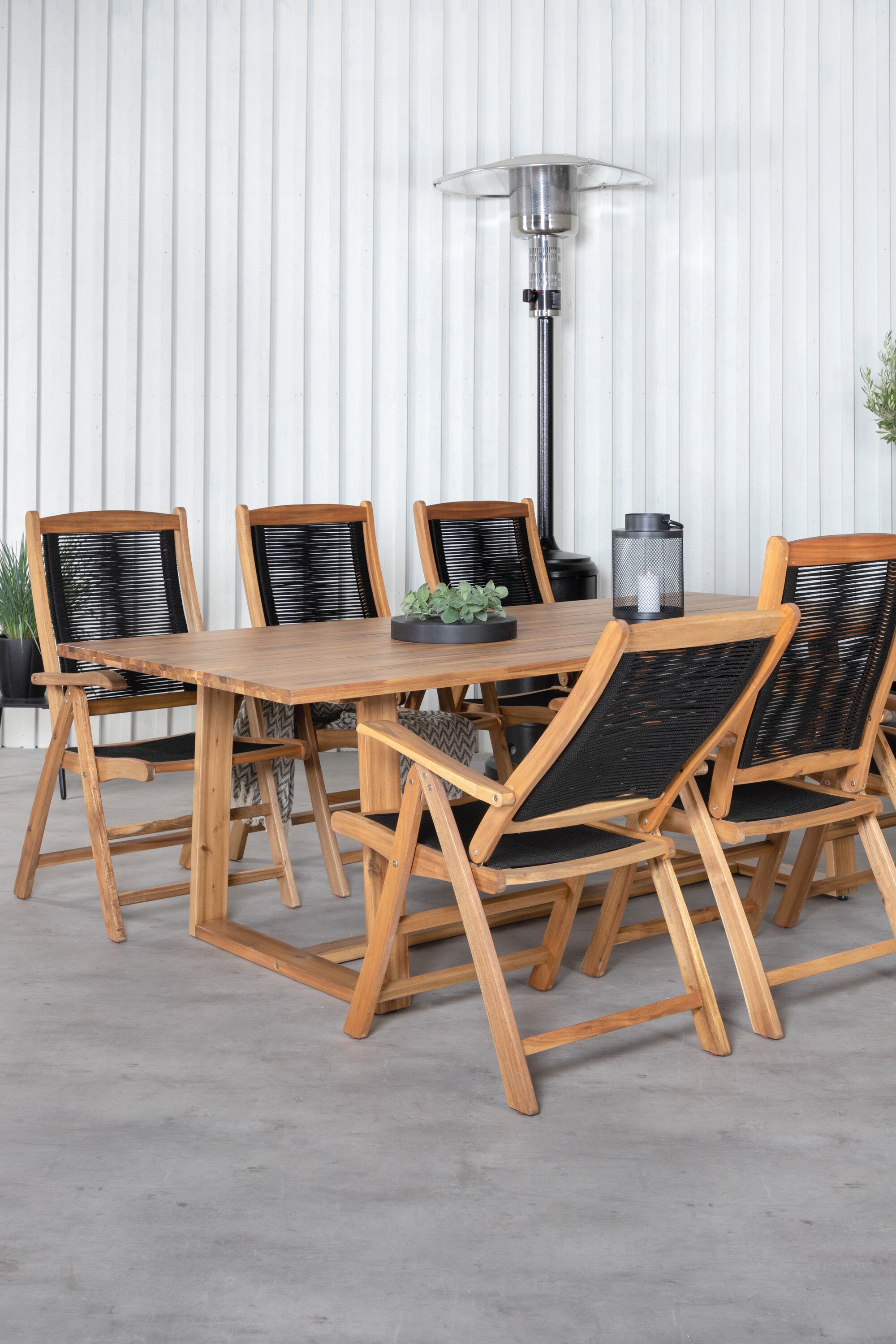 Plankton - Jídelní stůl akácie - 220*100+Peter 5:pos Židle - Černé lano / Akácie_6