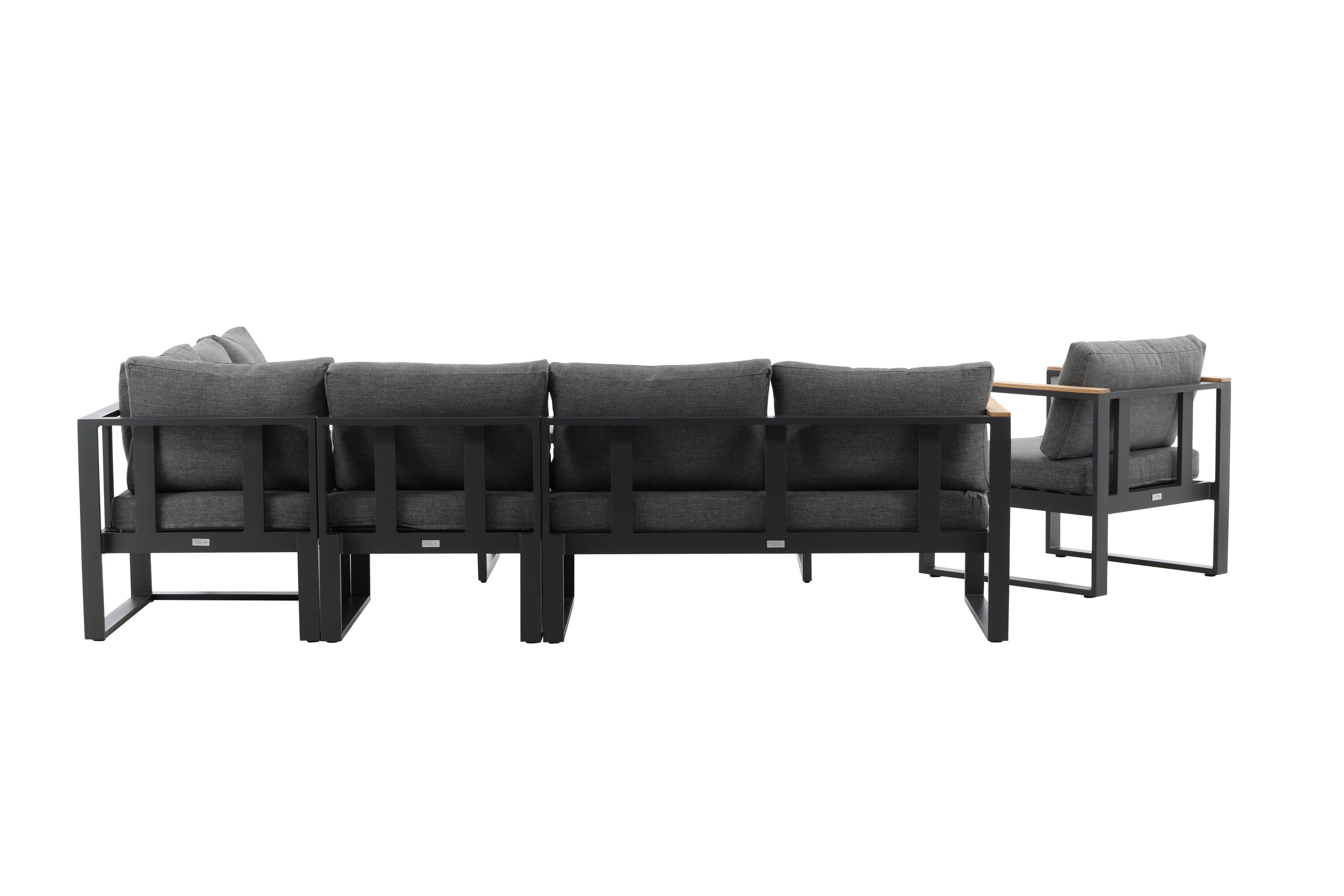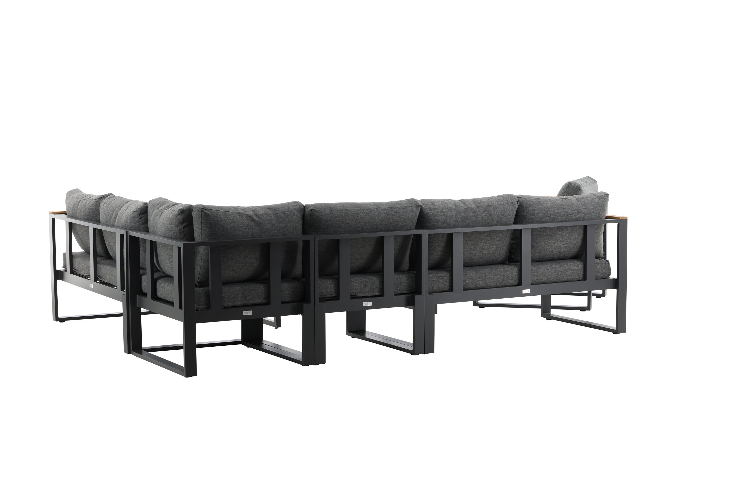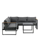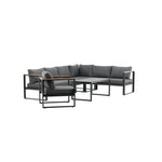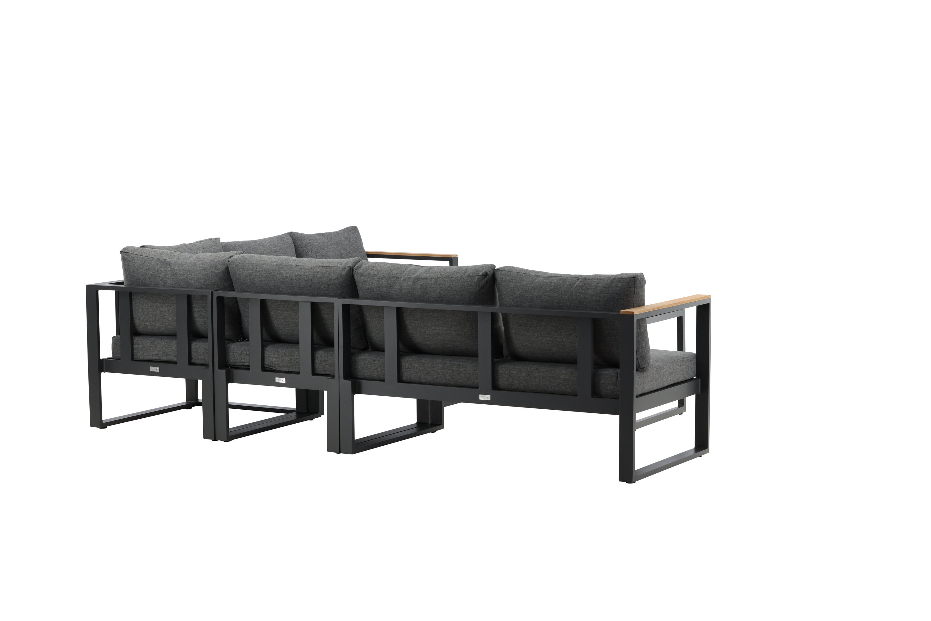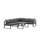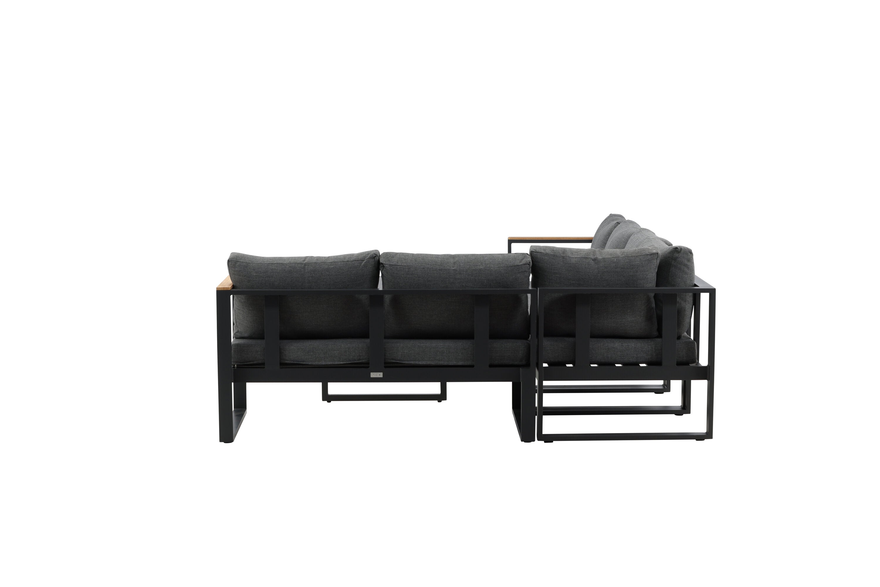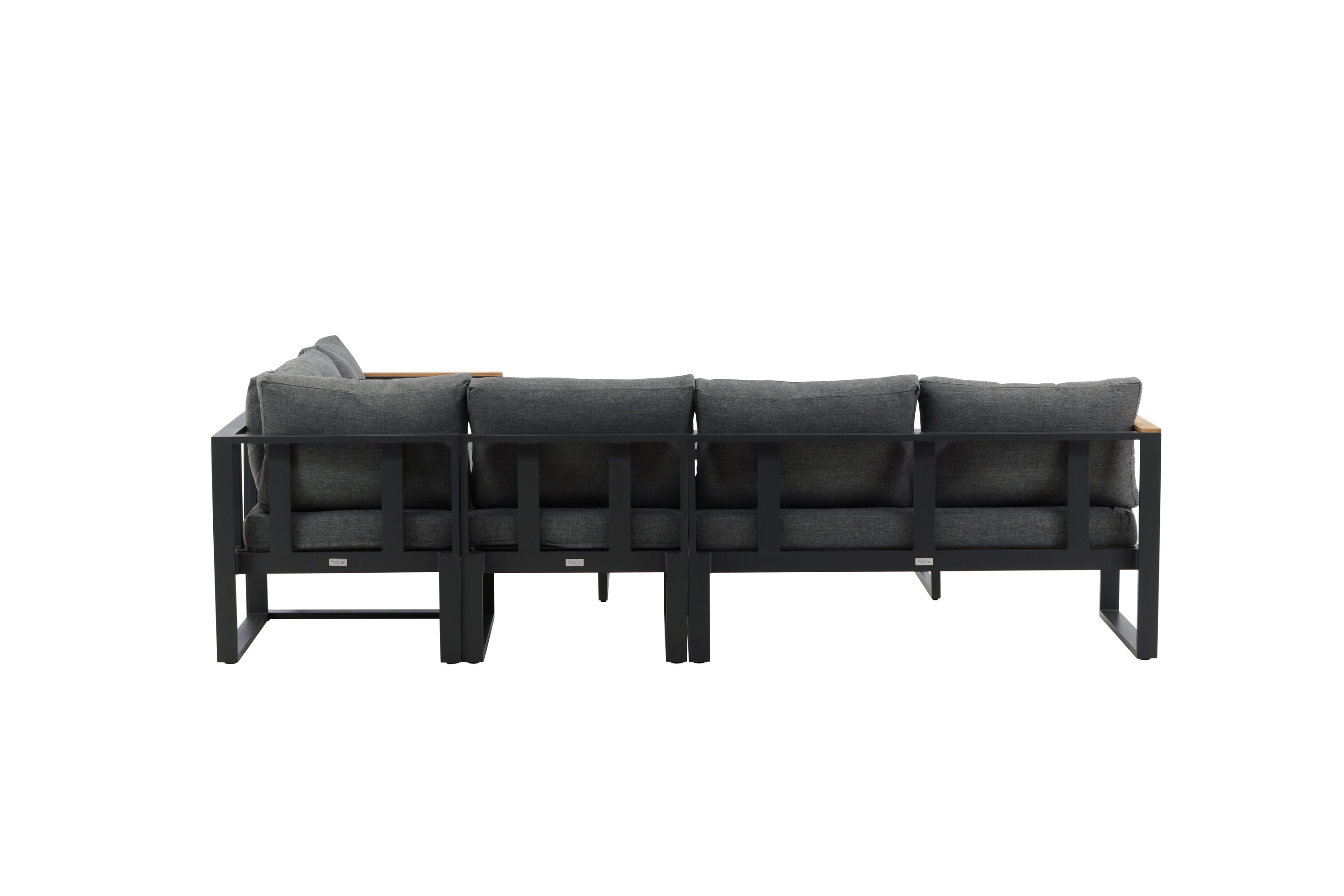 Rohová pohovka Texas - Černá Alu / Teak / Šedé polštáře
