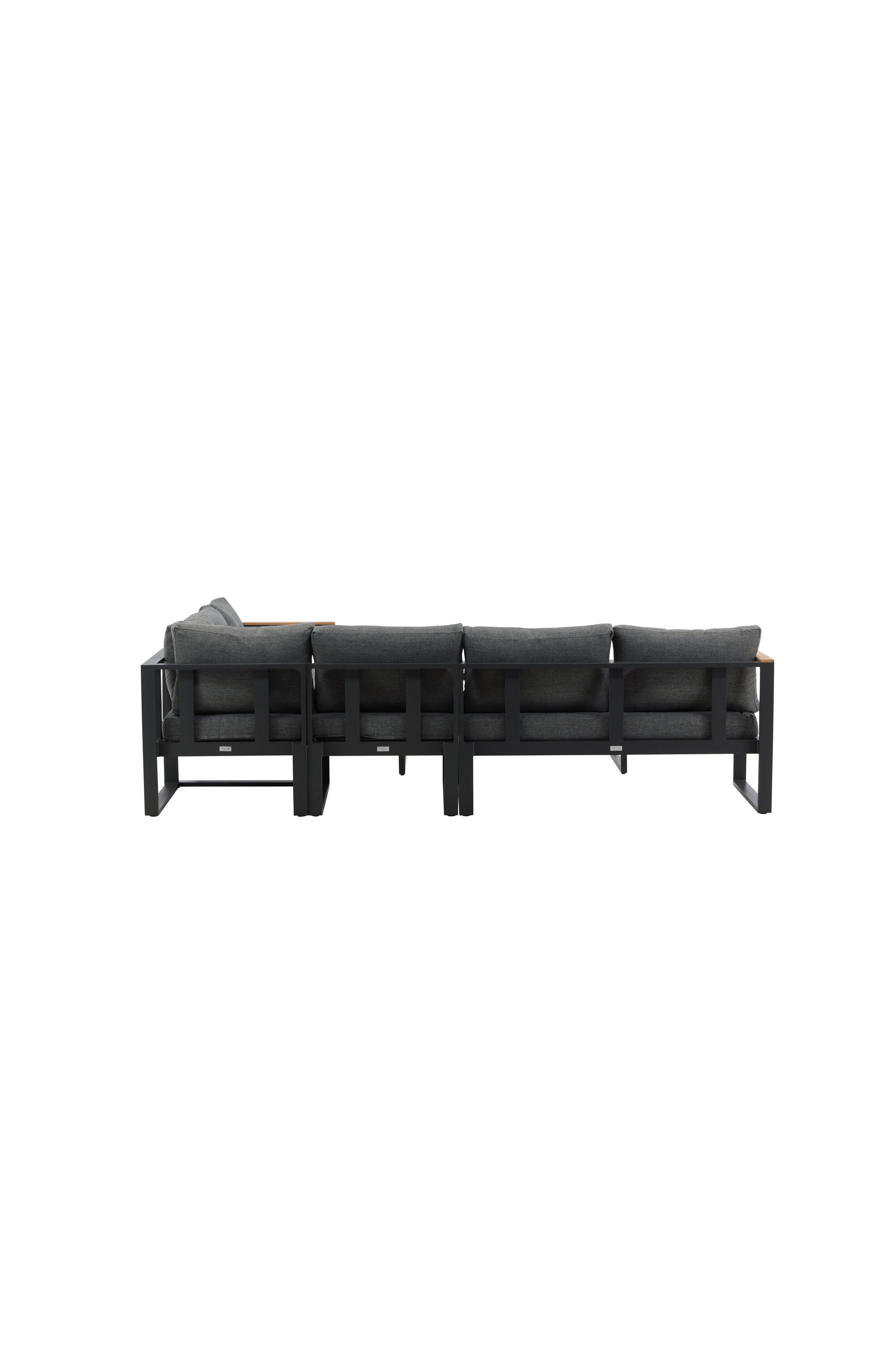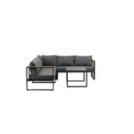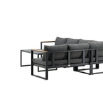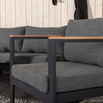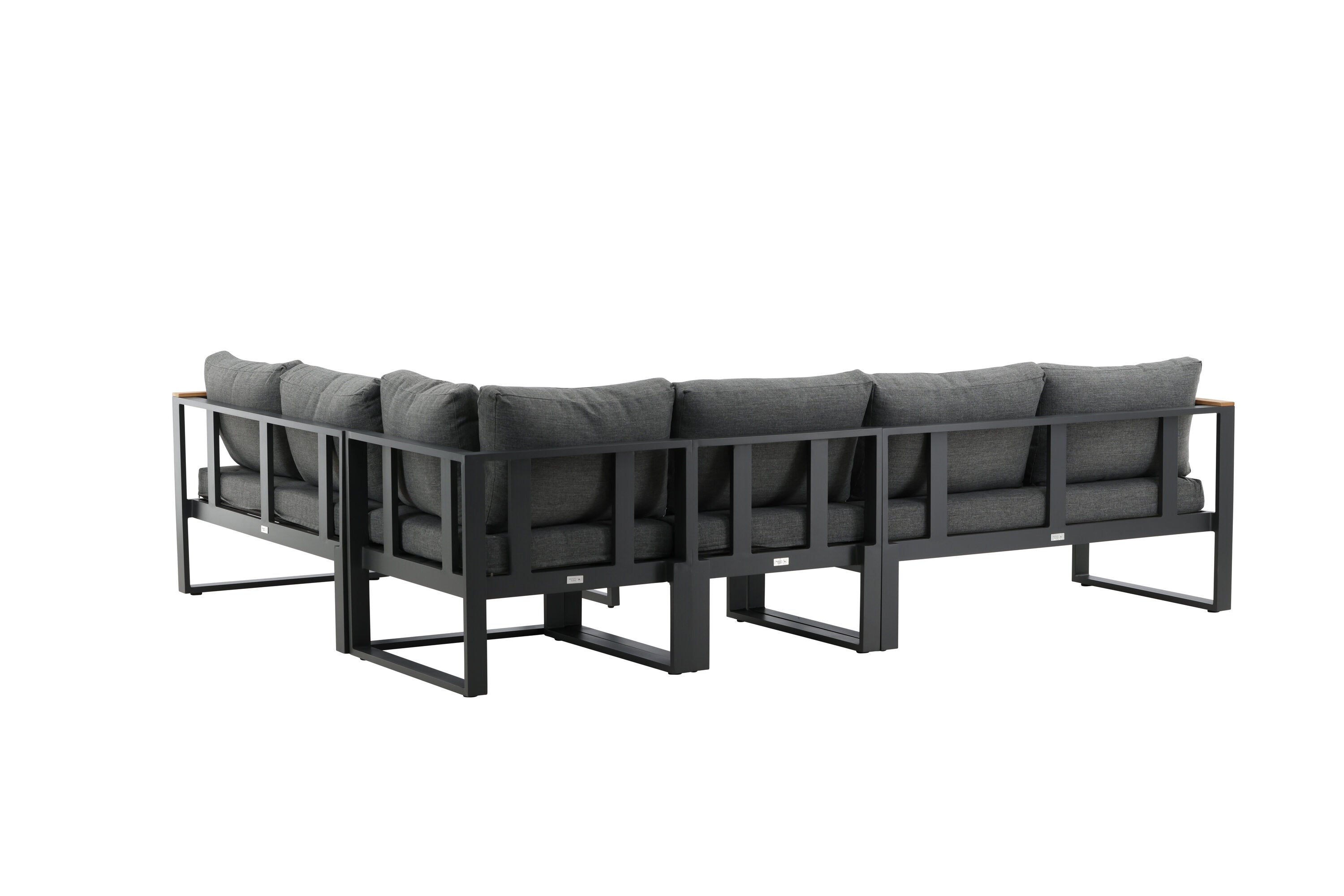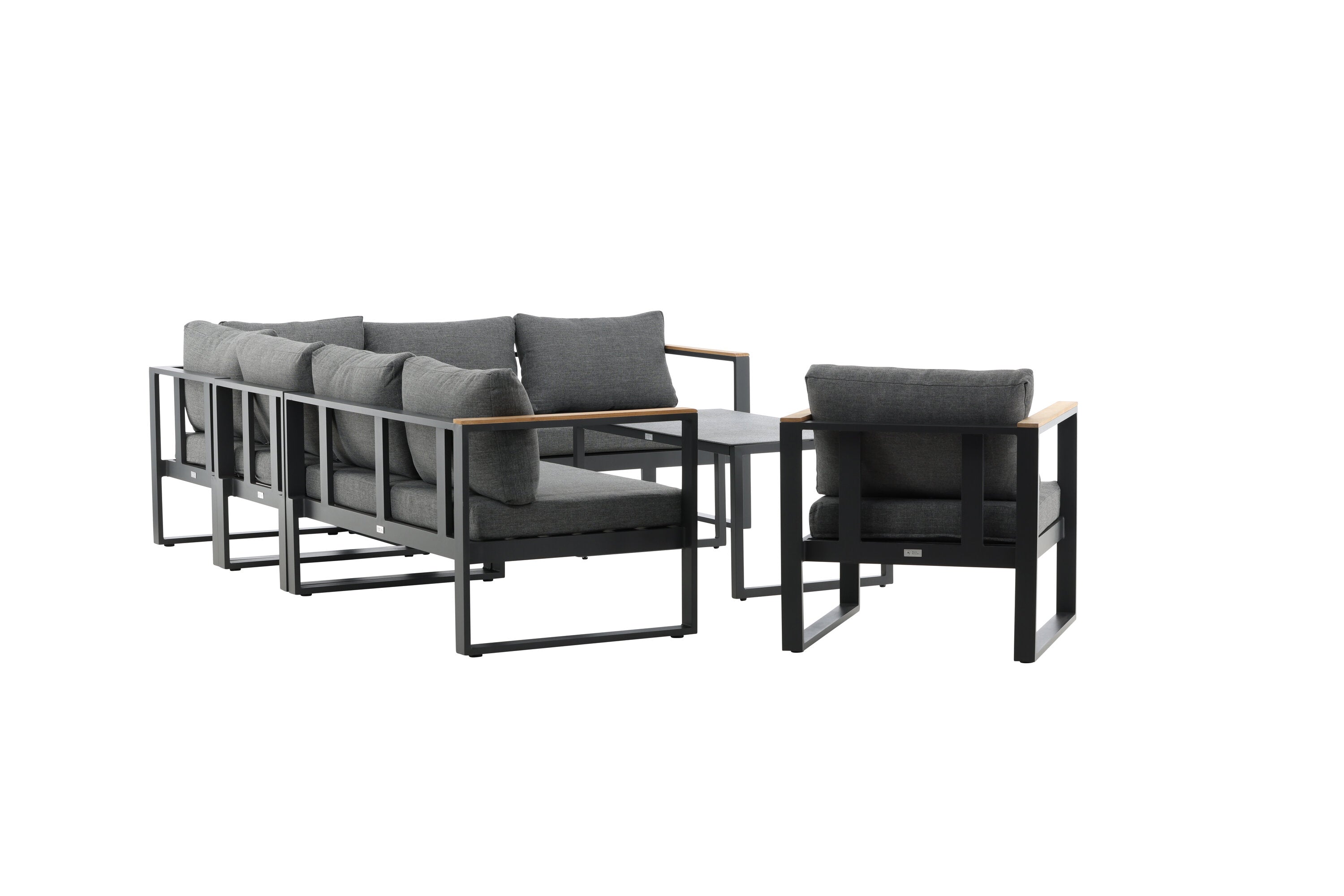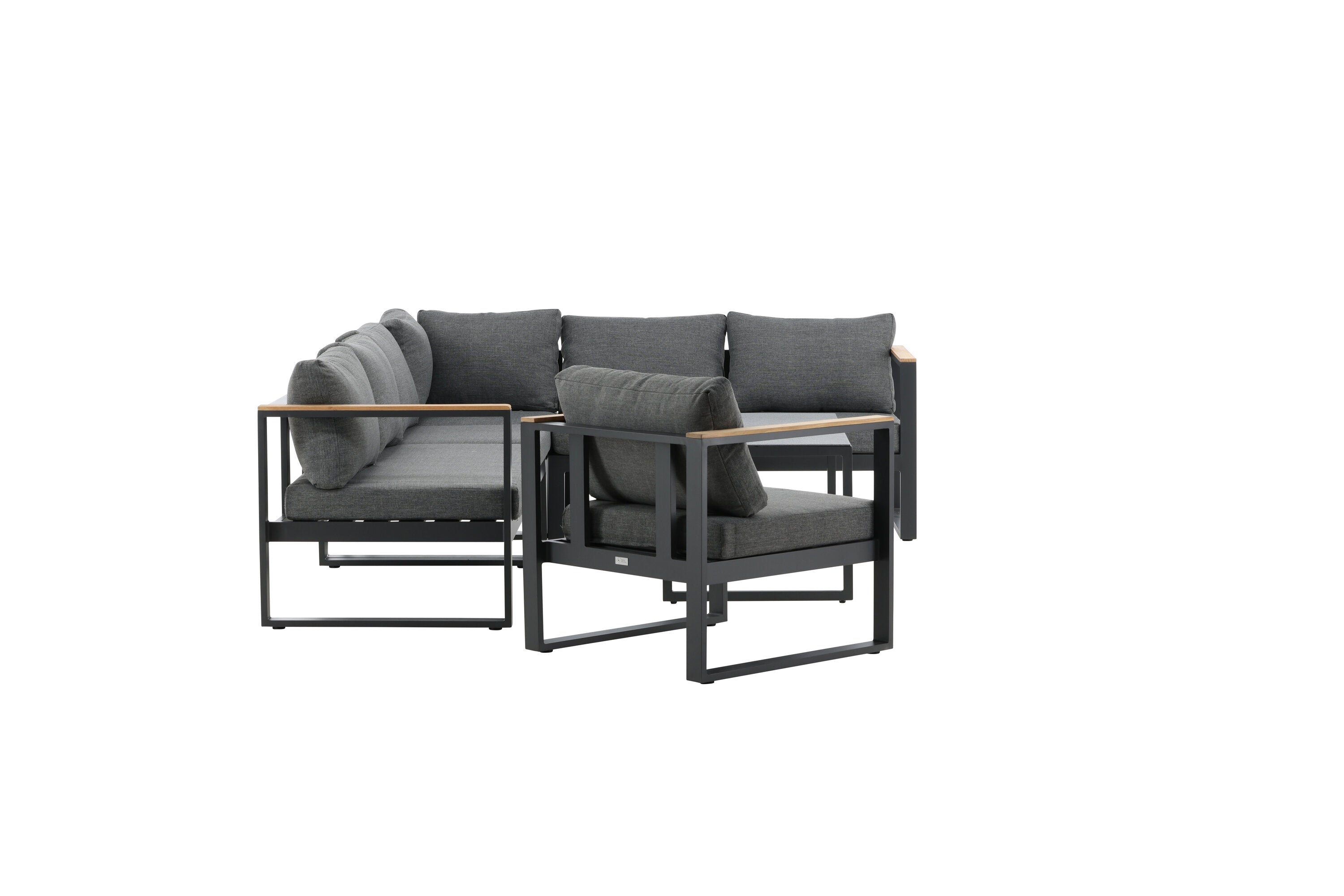 Rohová pohovka Texas - Černá Alu / Teak / Šedé polštáře