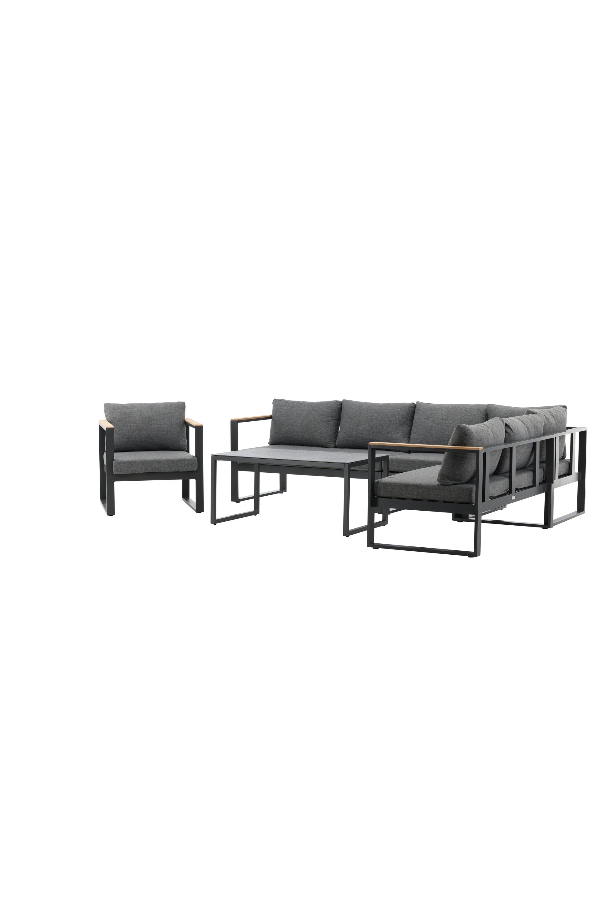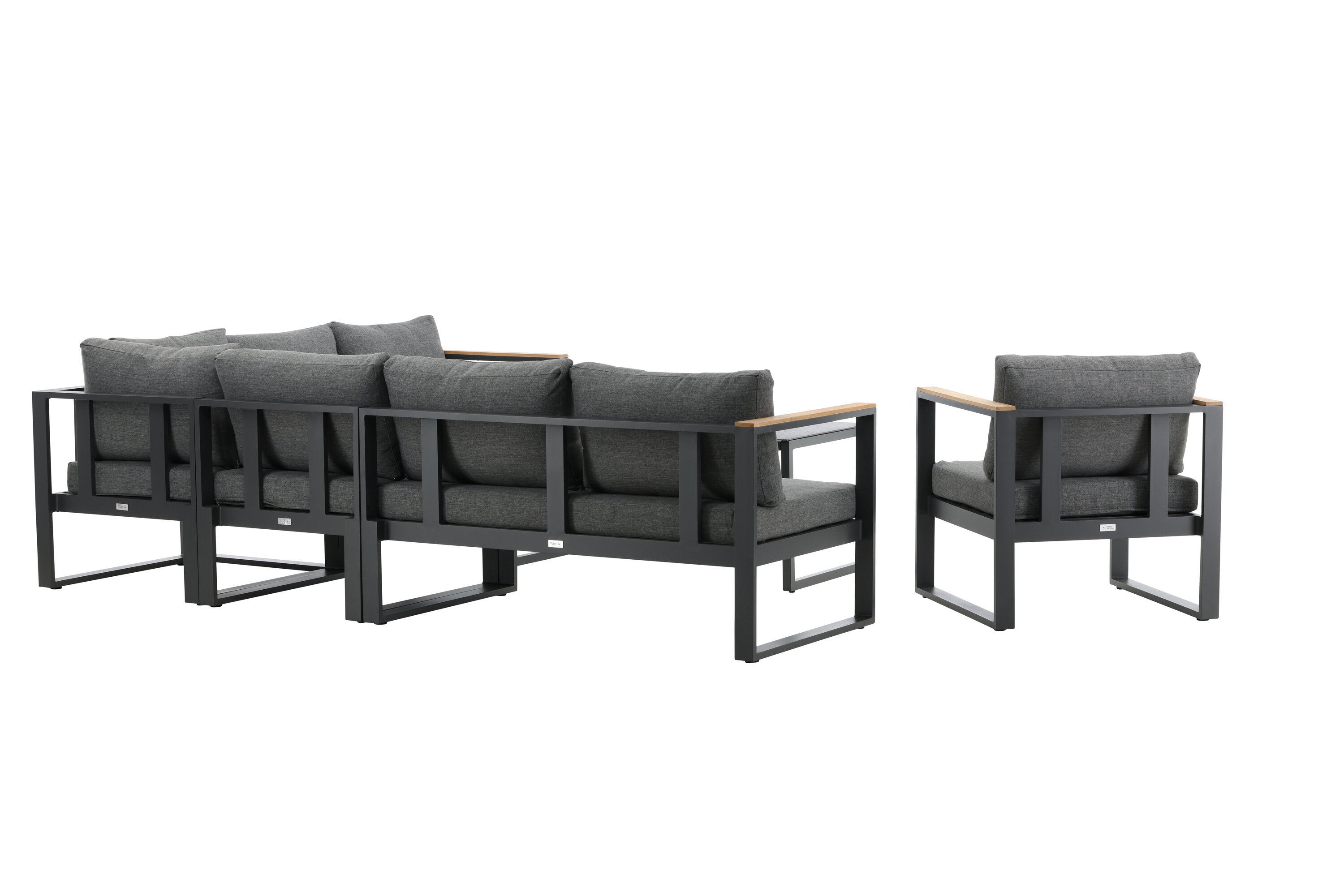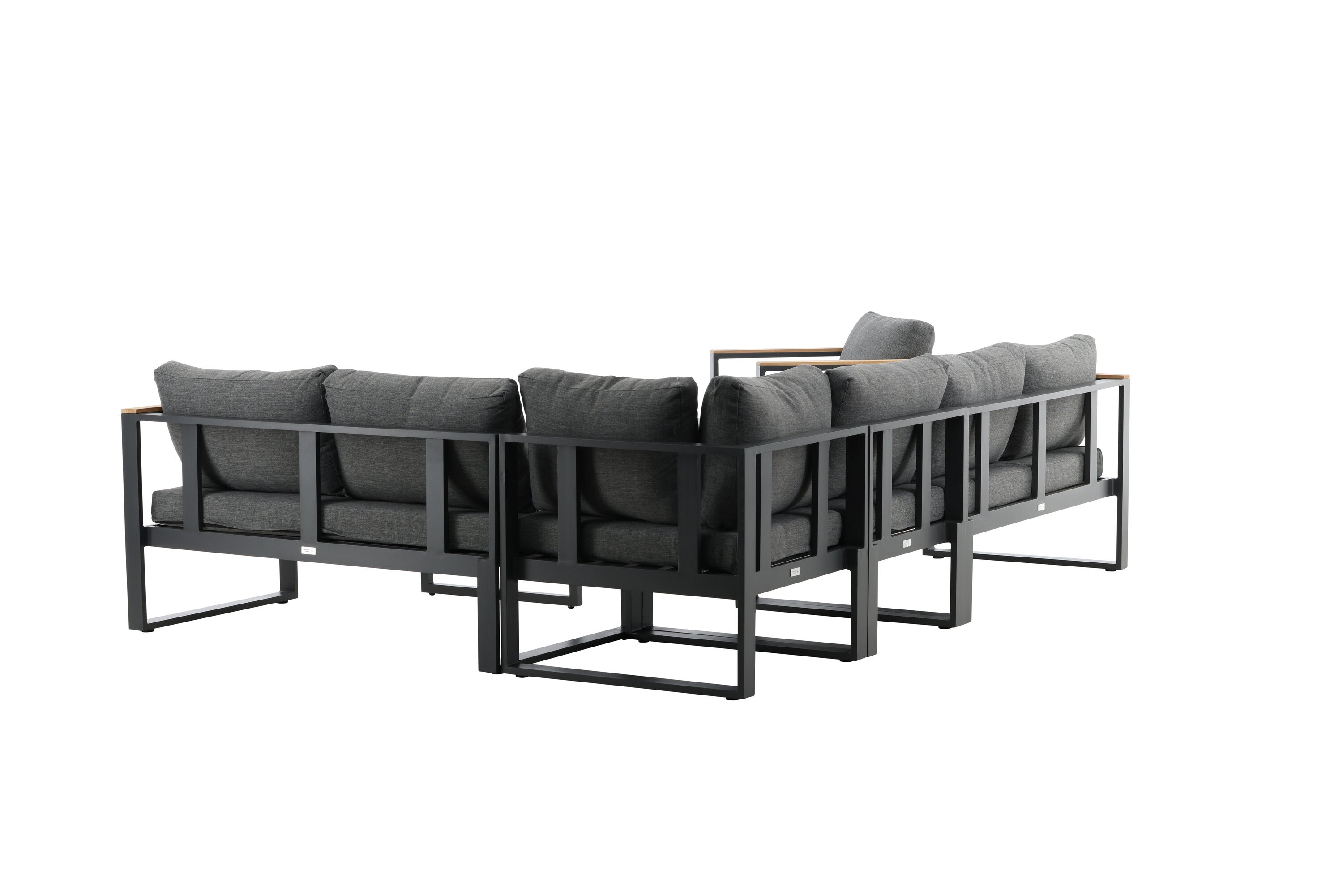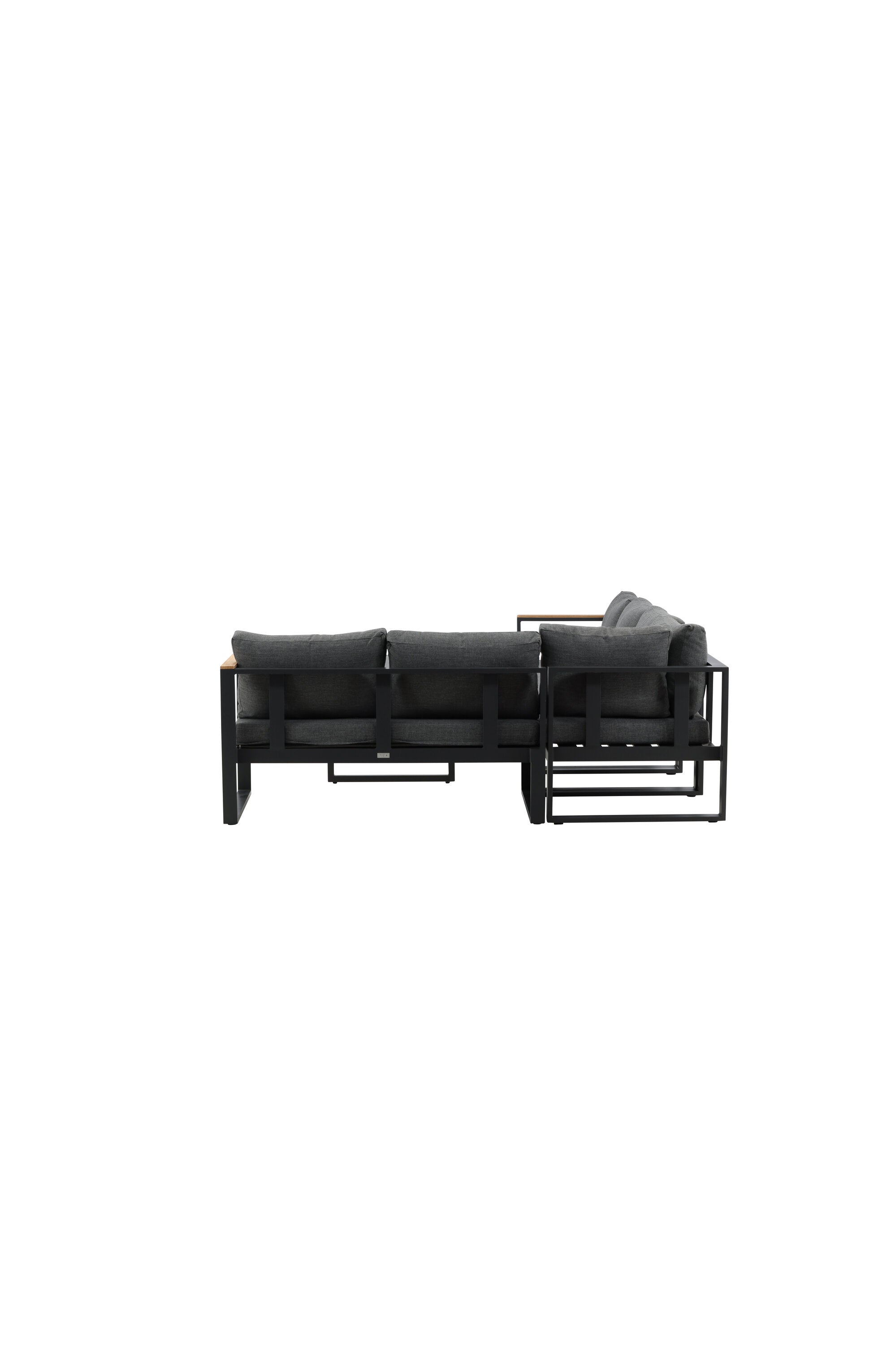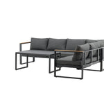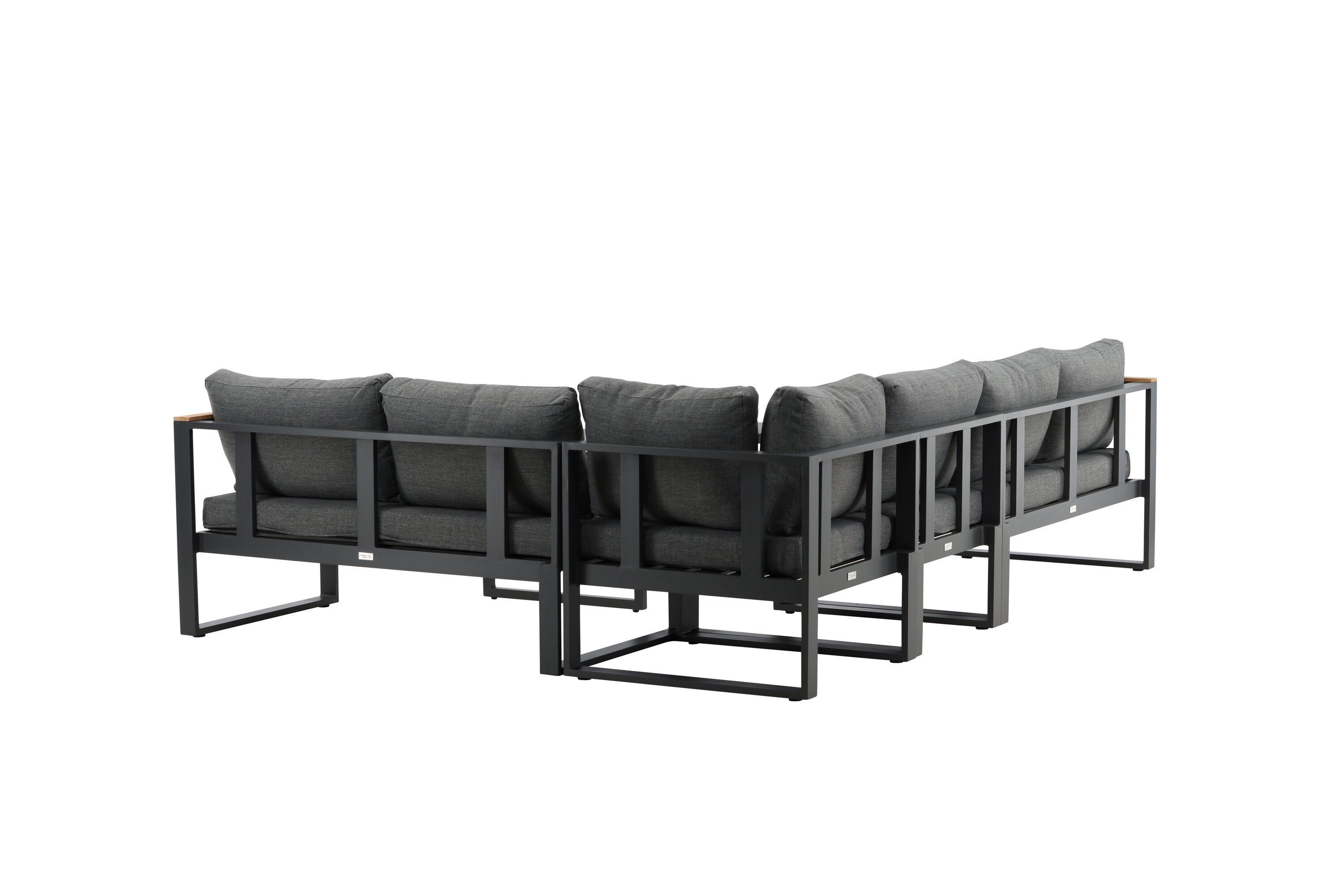 Rohová pohovka Texas - Černá Alu / Teak / Šedé polštáře