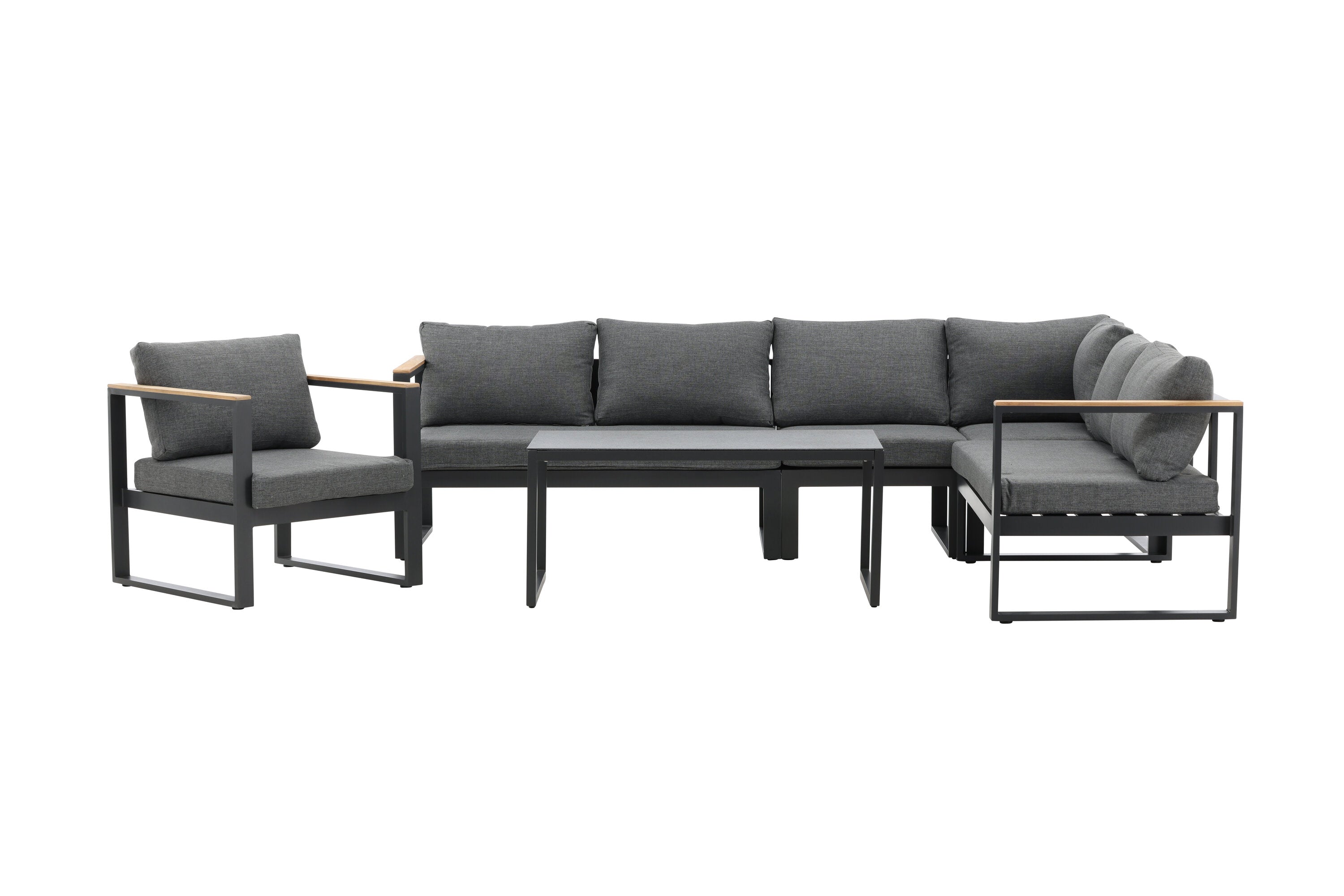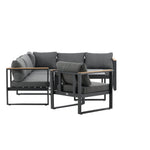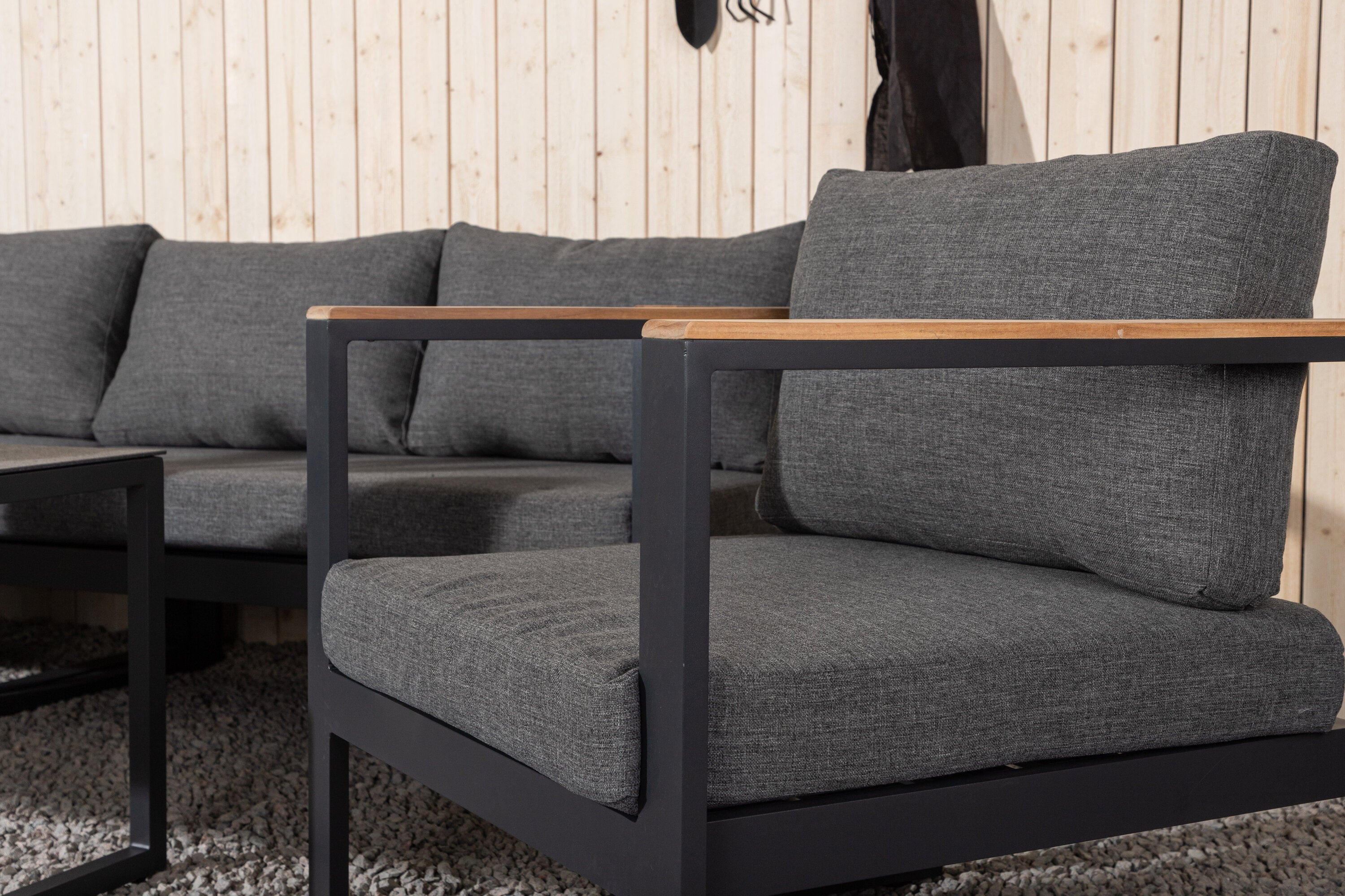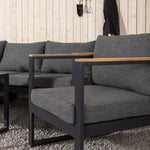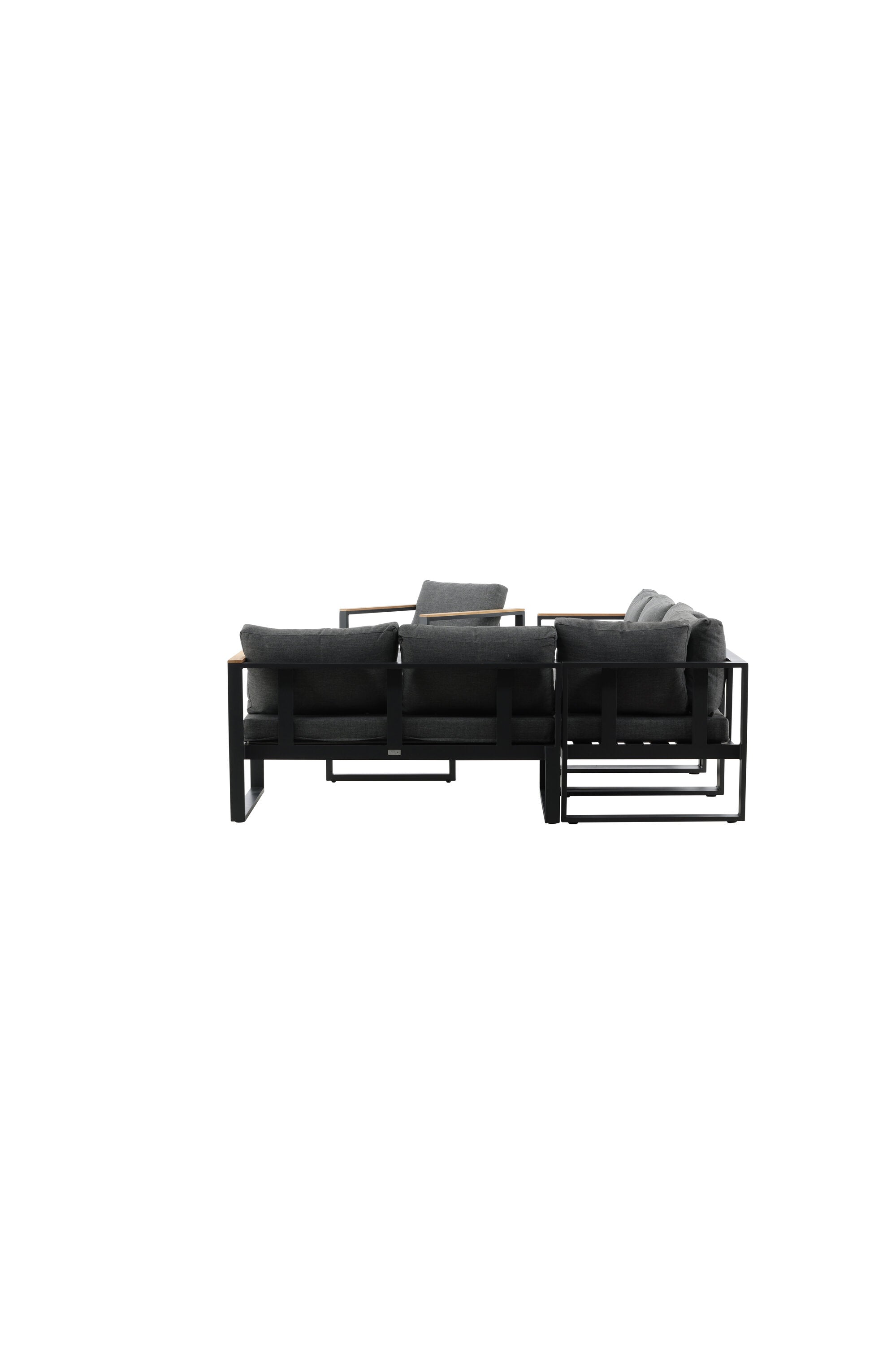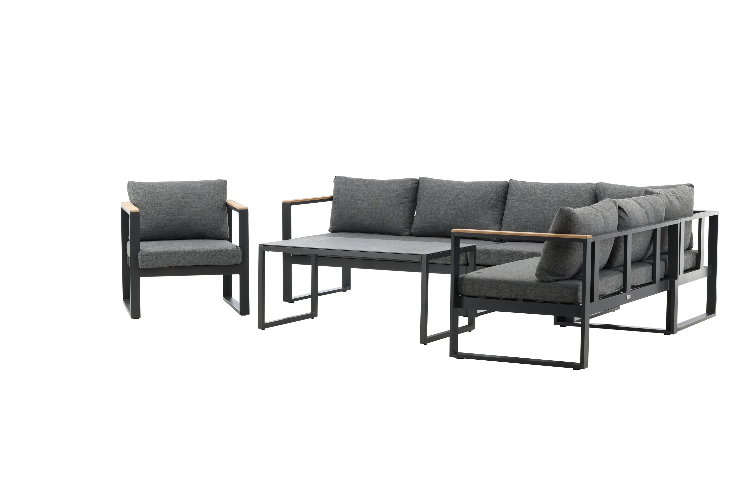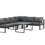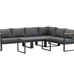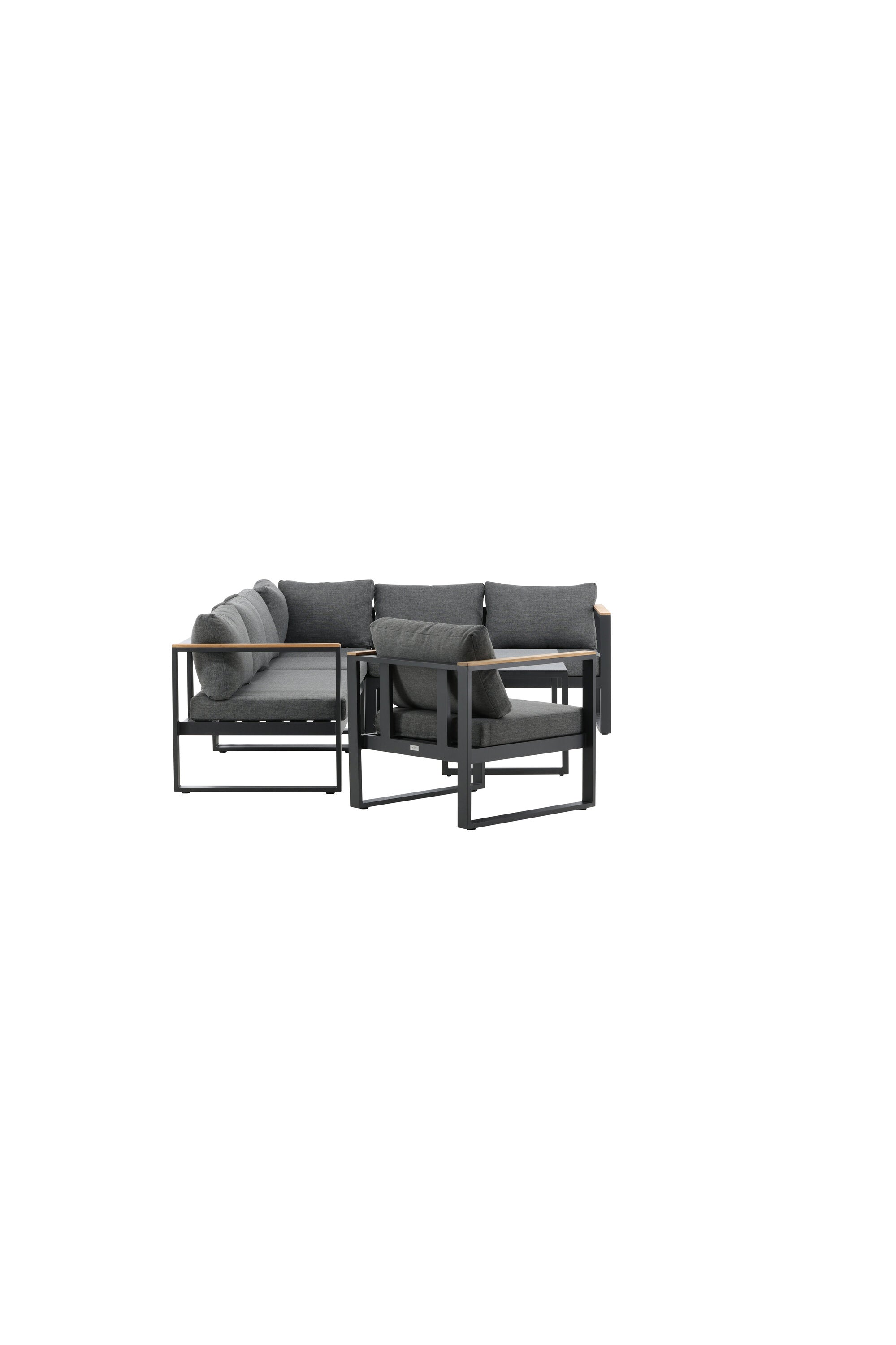 Rohová pohovka Texas - Černá Alu / Teak / Šedé polštáře