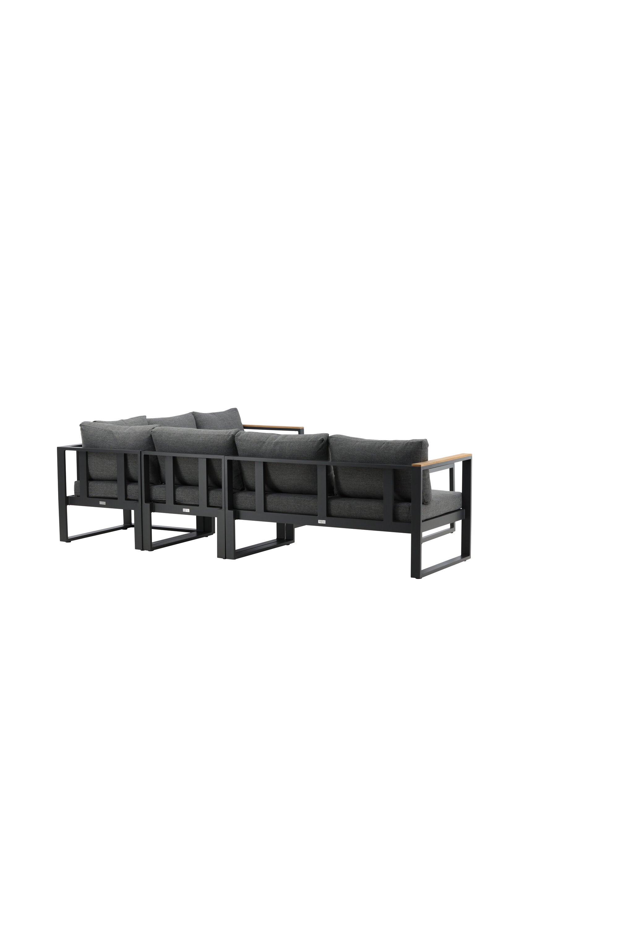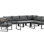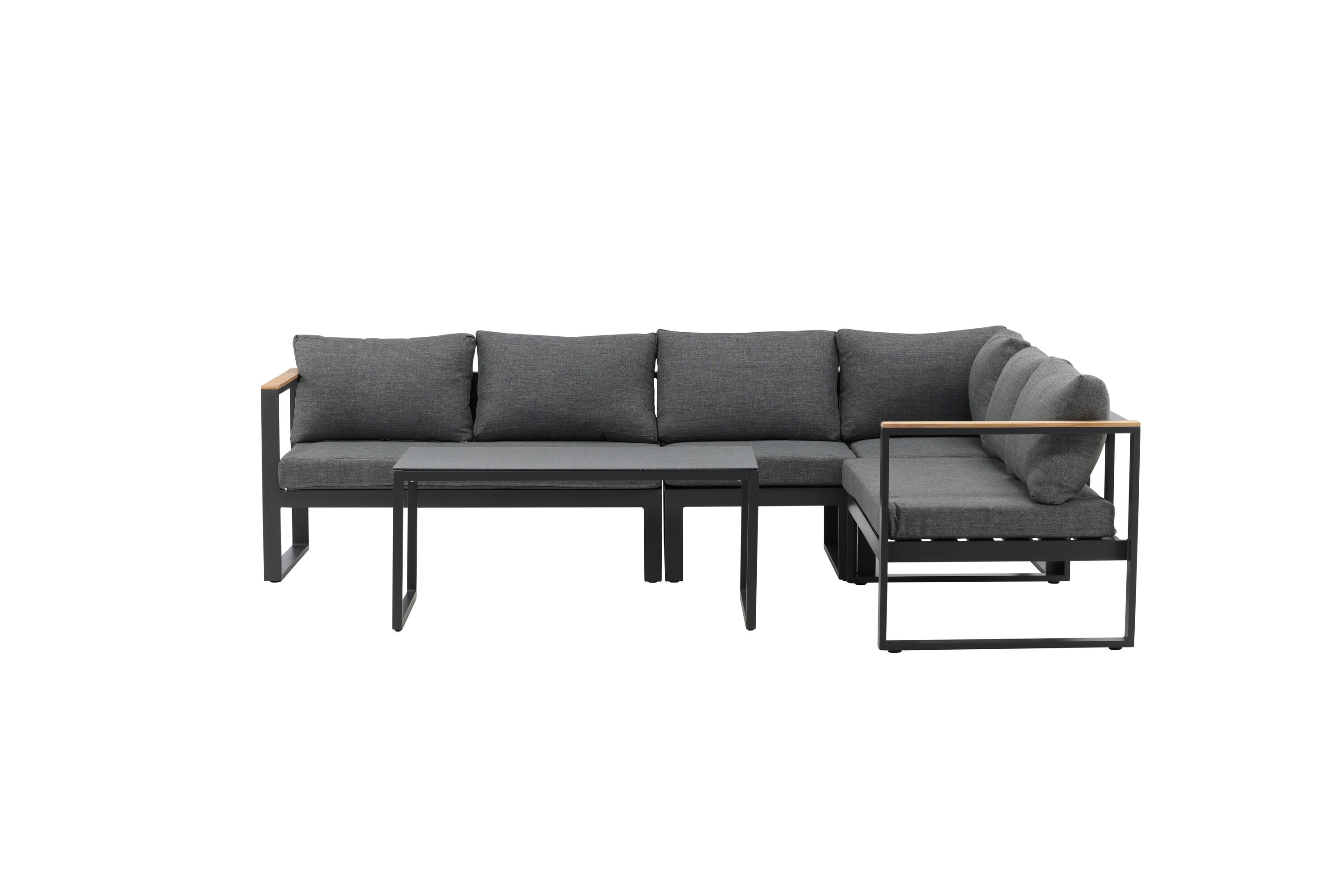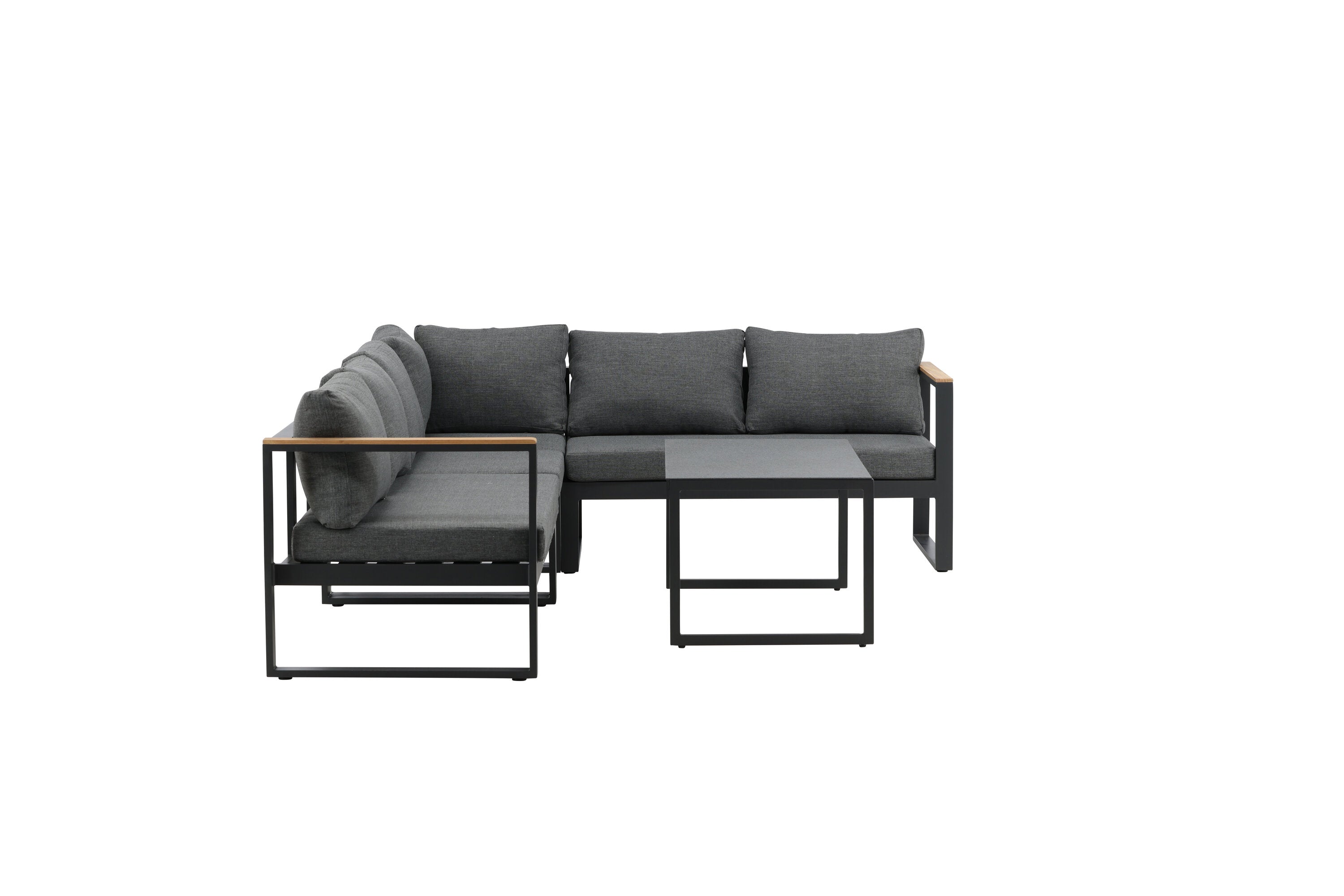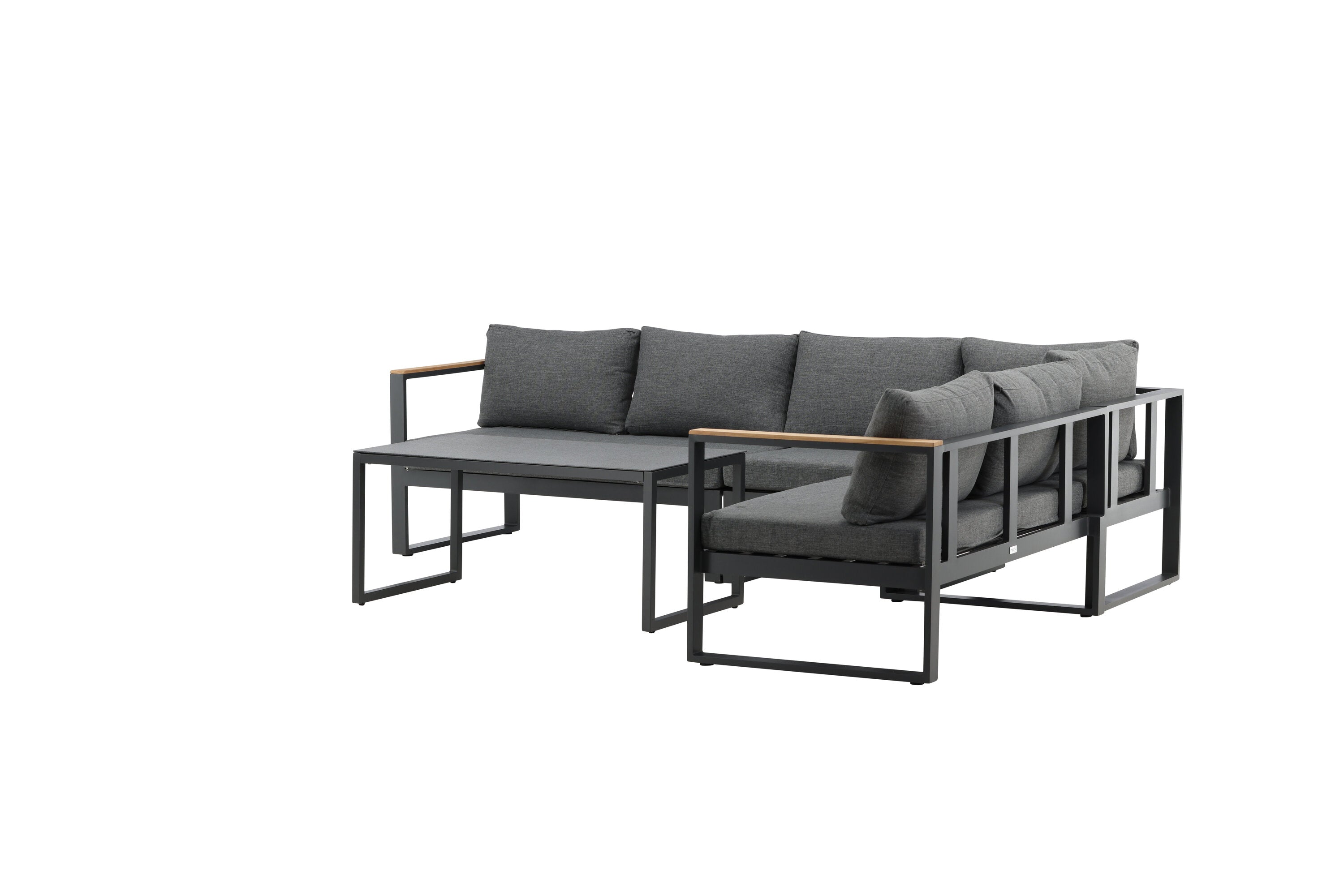 Rohová pohovka Texas - Černá Alu / Teak / Šedé polštáře
