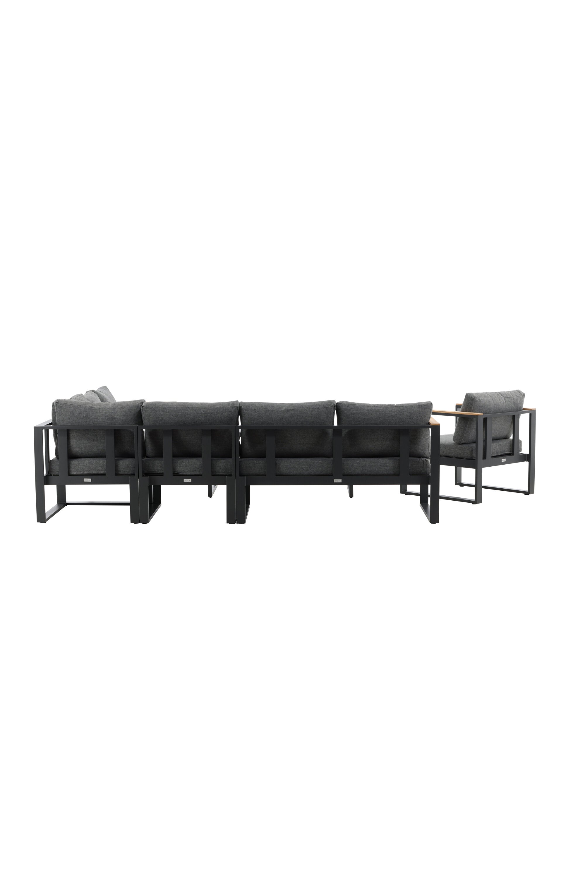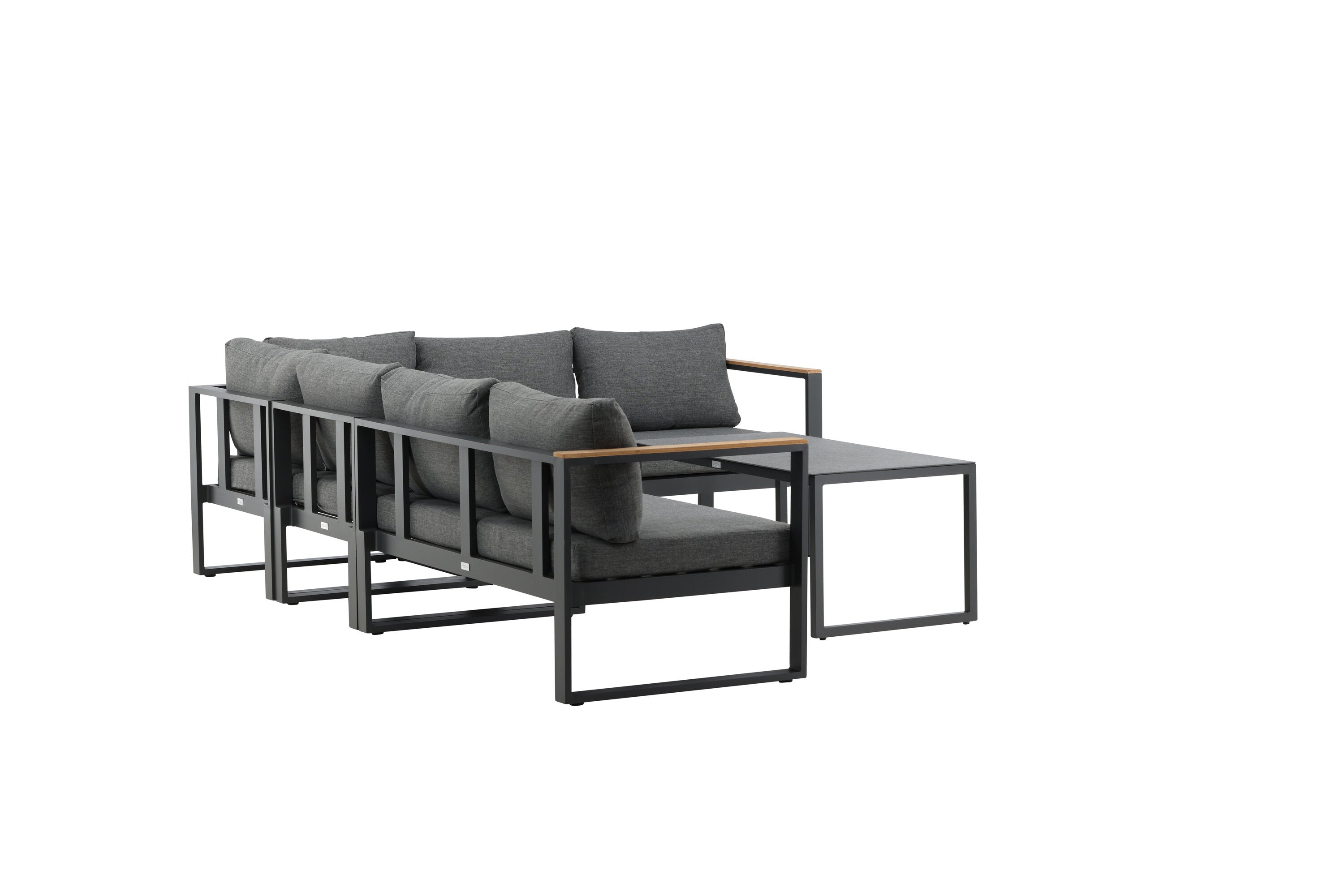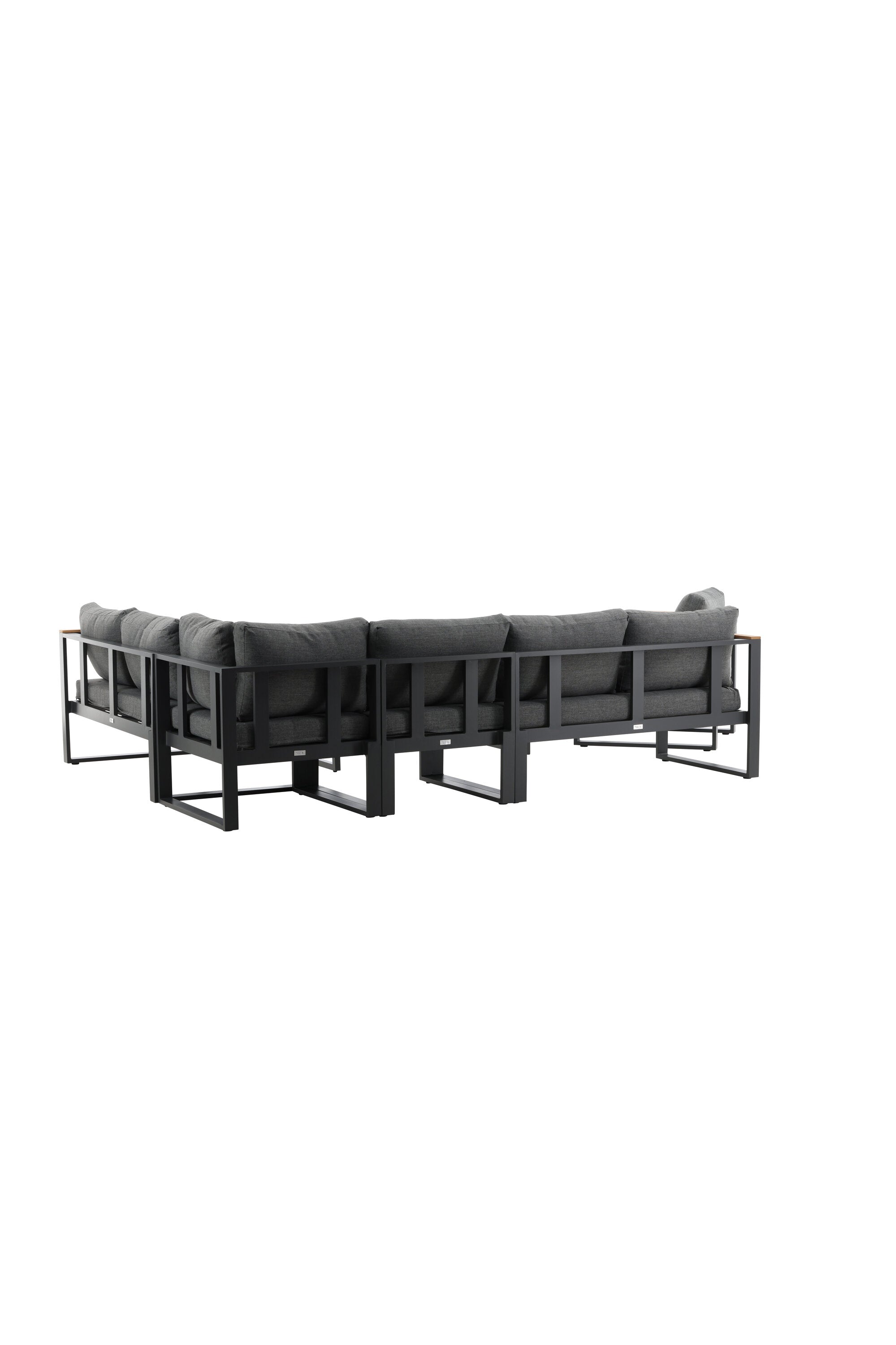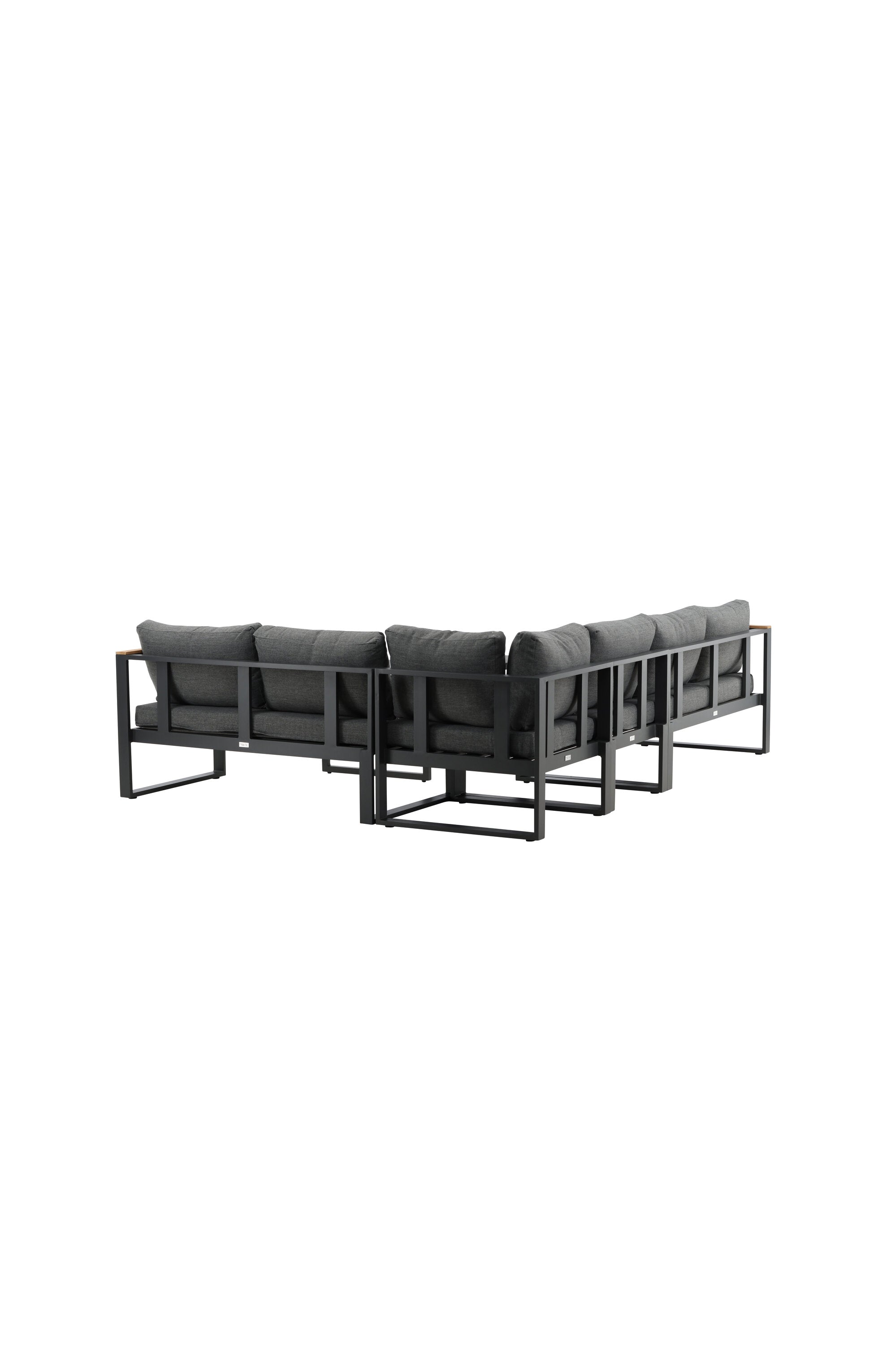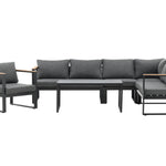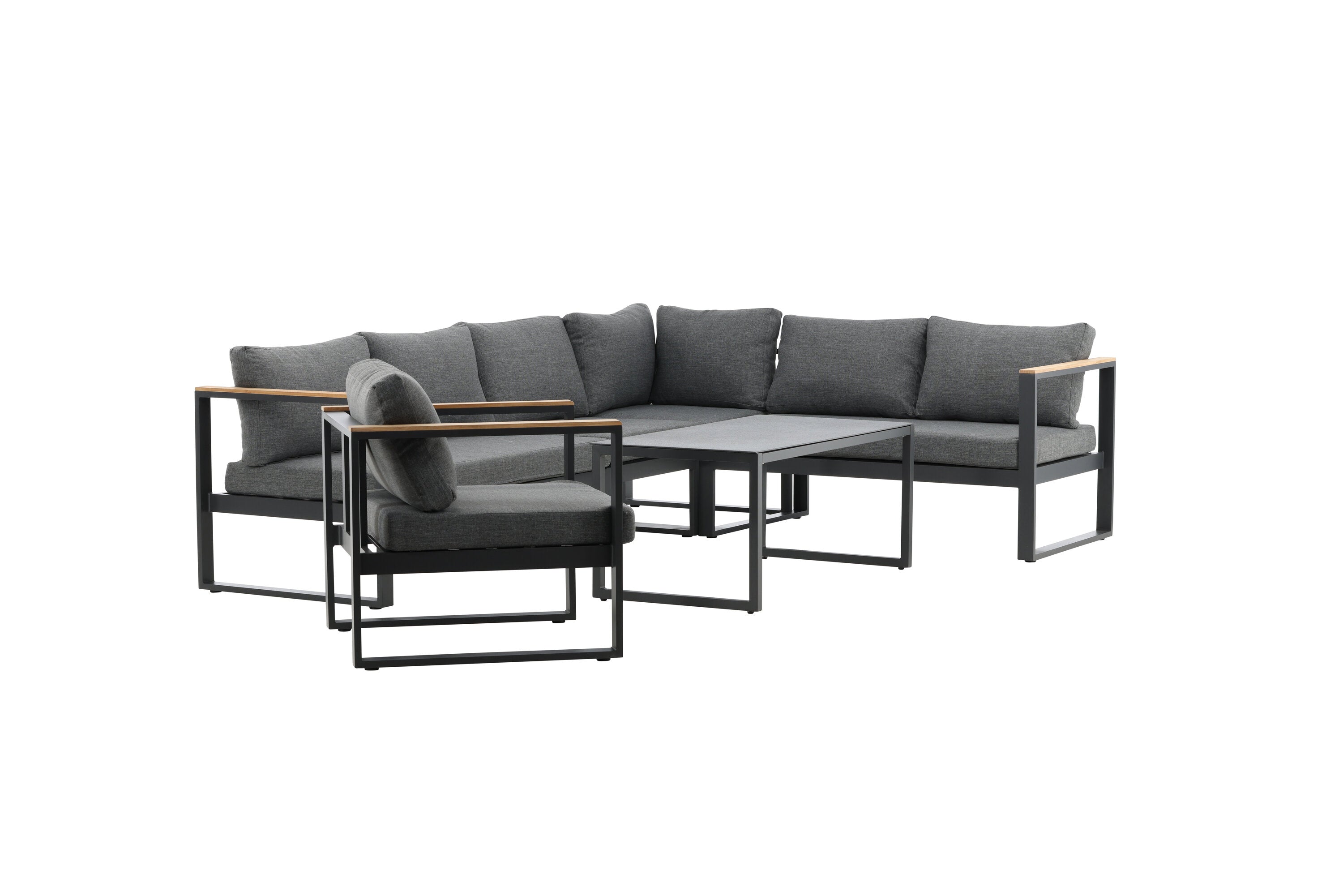 Rohová pohovka Texas - Černá Alu / Teak / Šedé polštáře