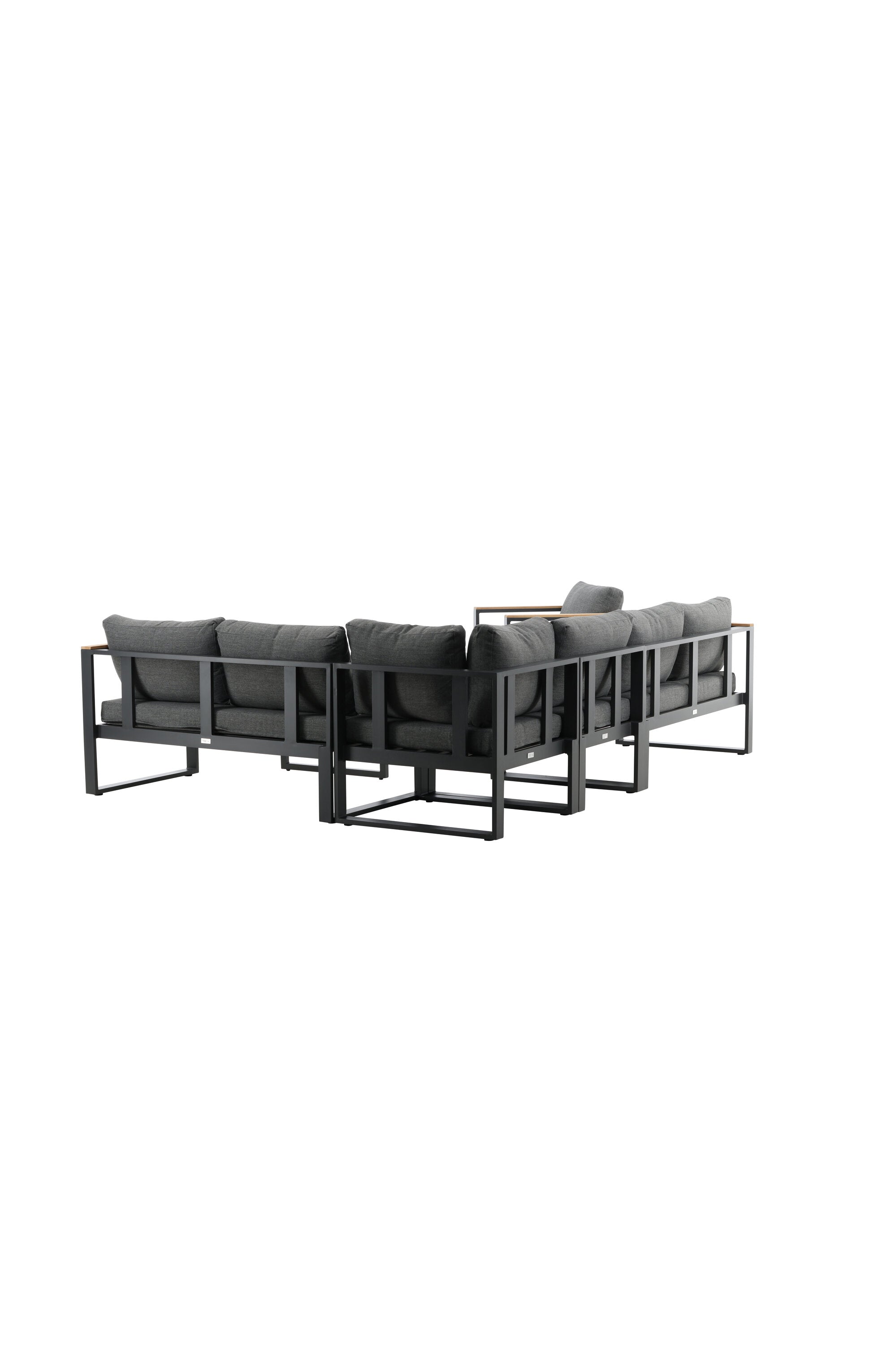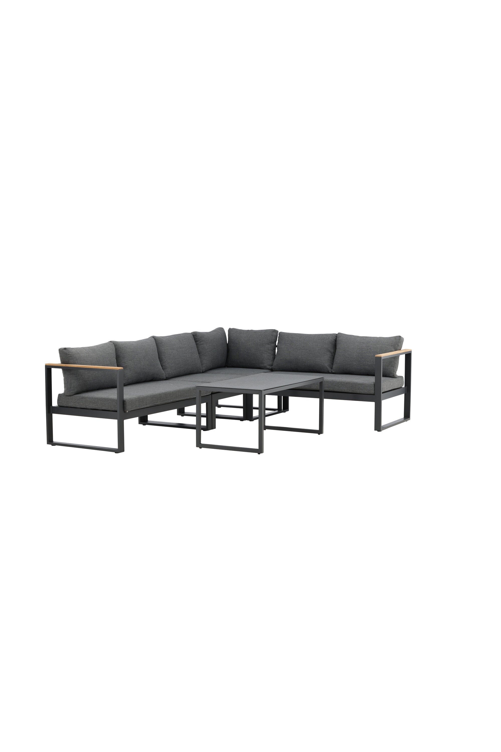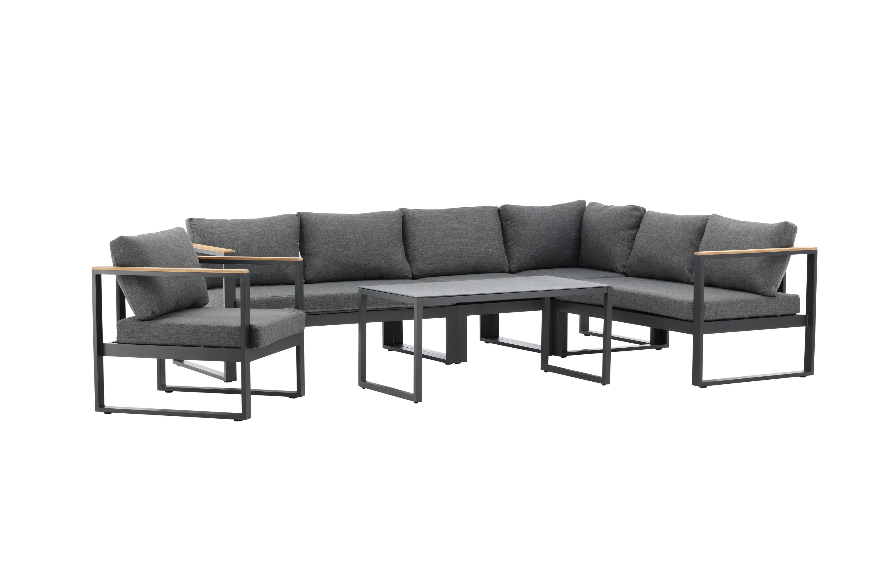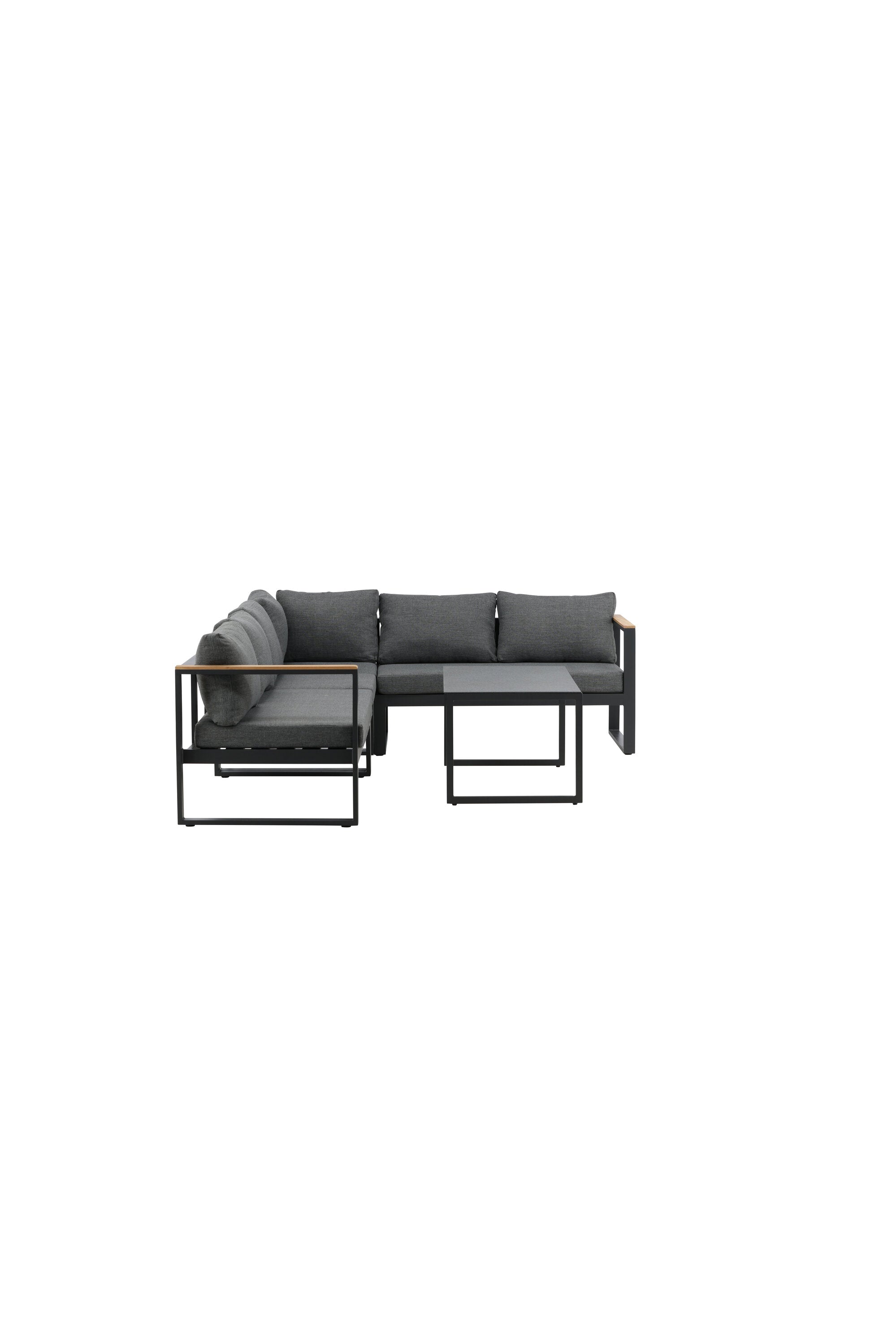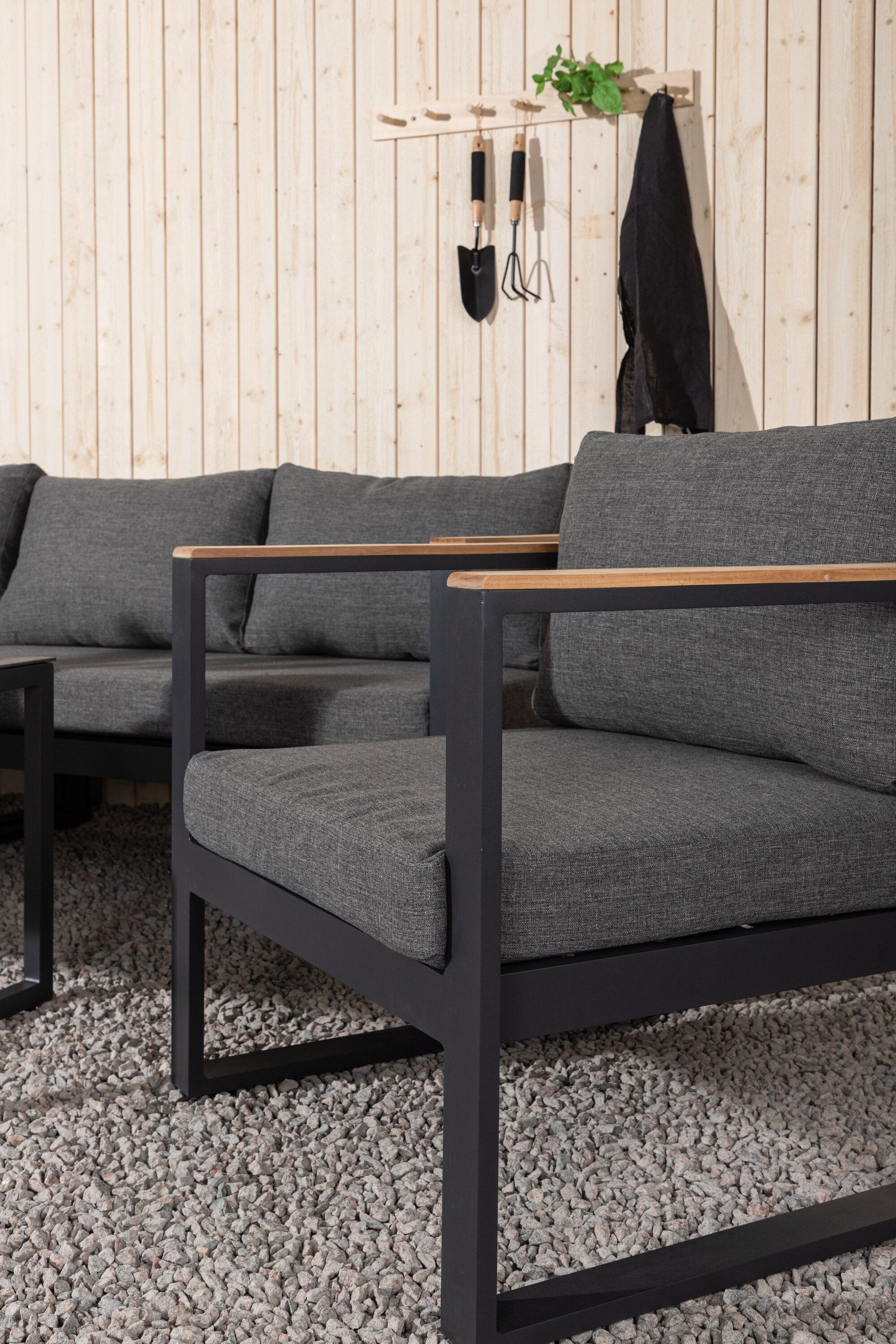 Rohová pohovka Texas - Černá Alu / Teak / Šedé polštáře