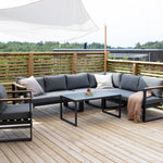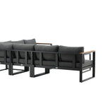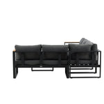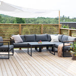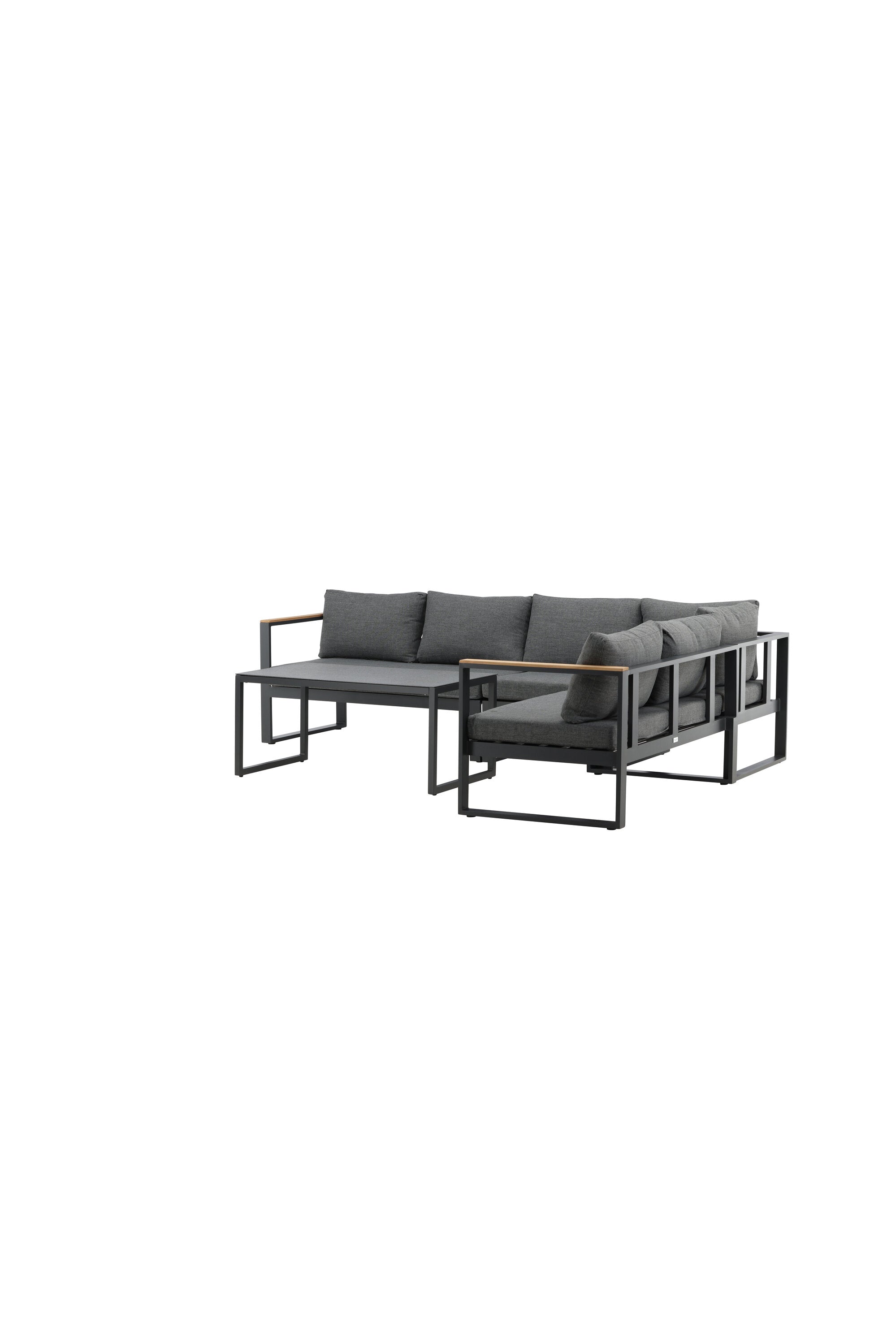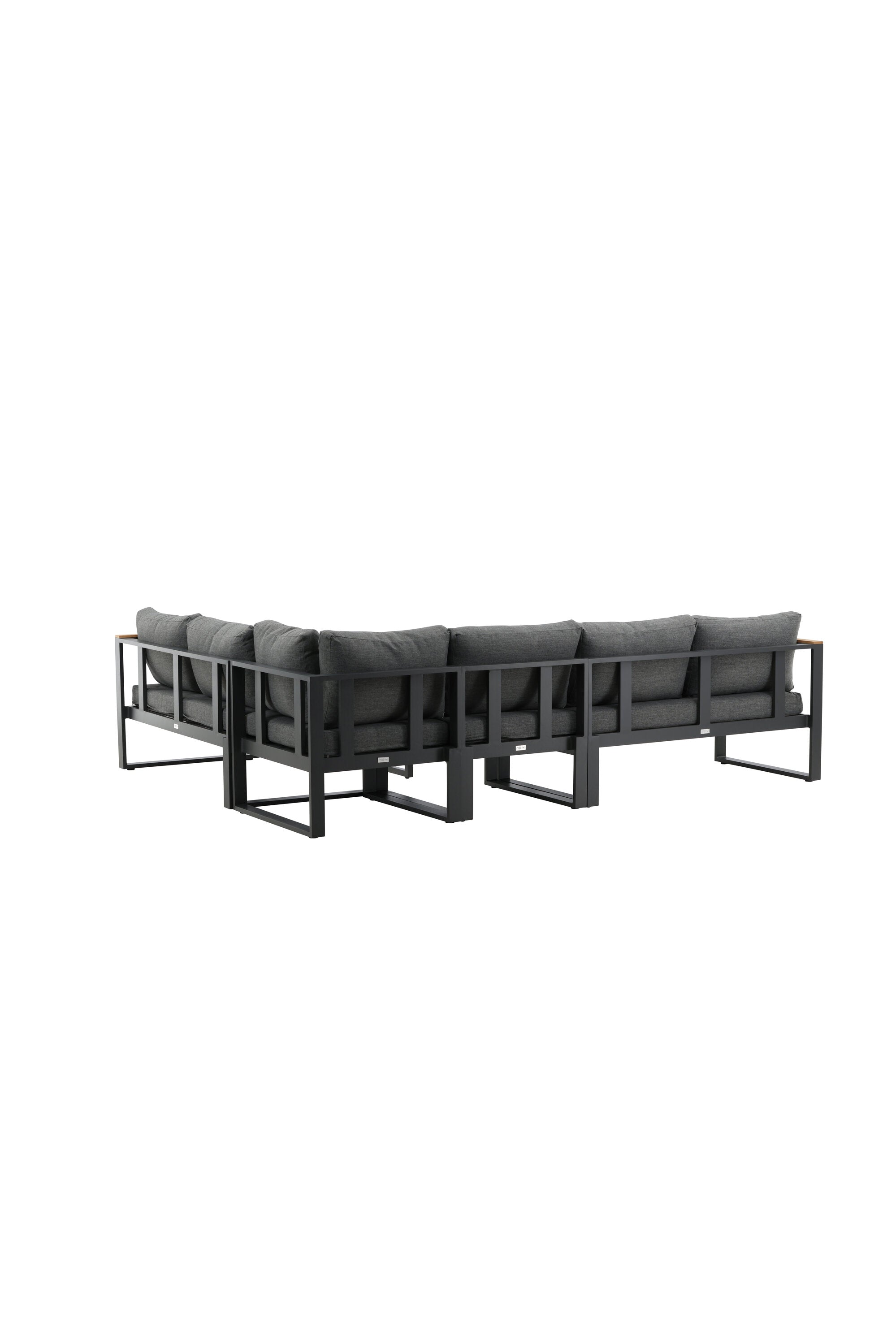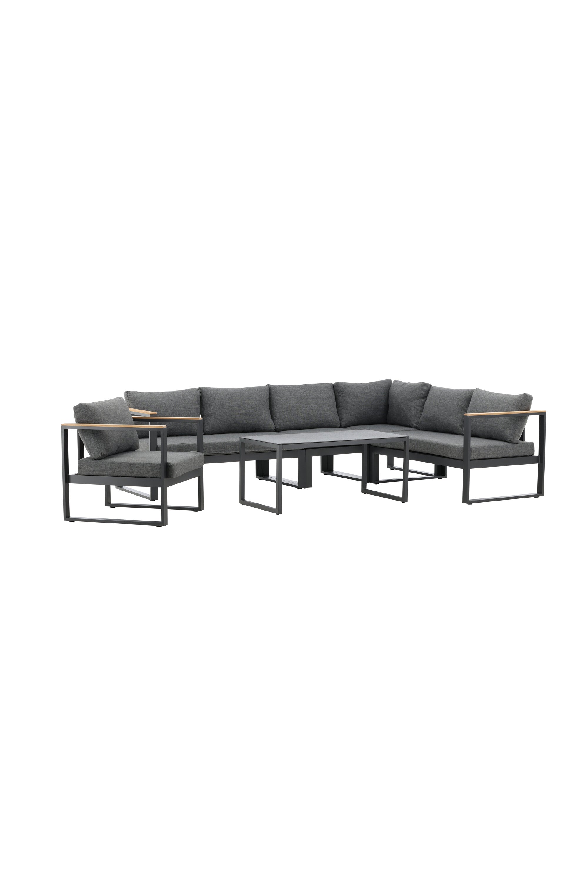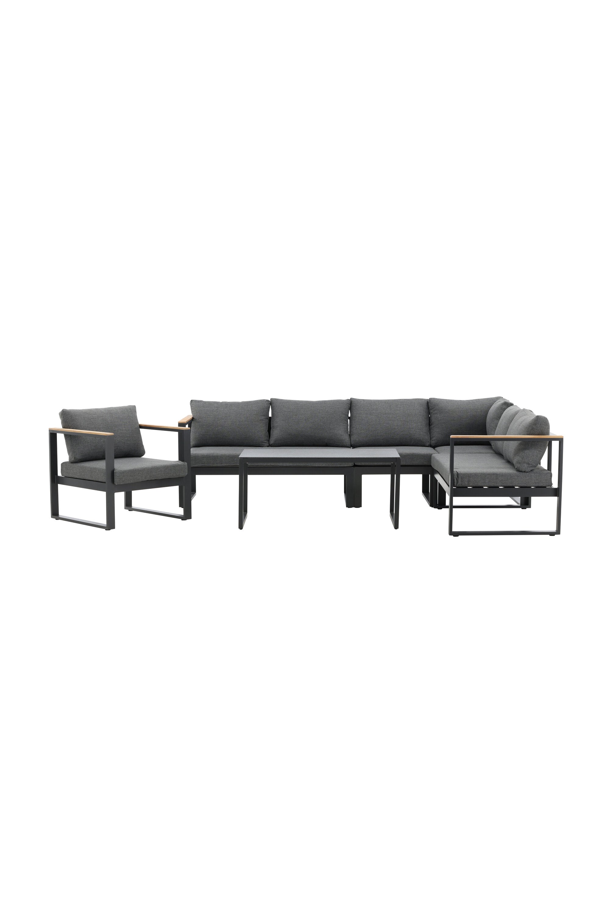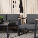 Rohová pohovka Texas - Černá Alu / Teak / Šedé polštáře