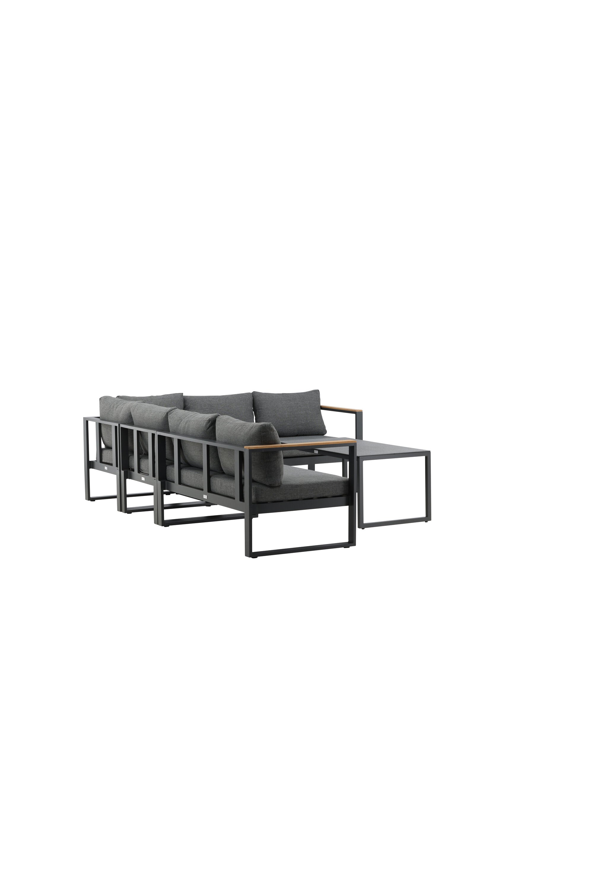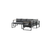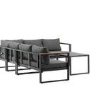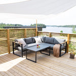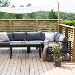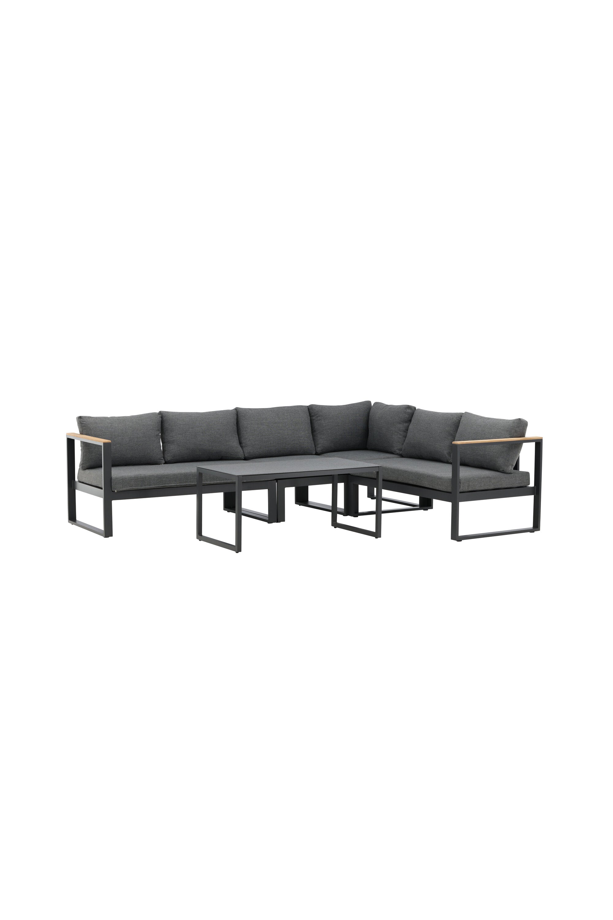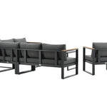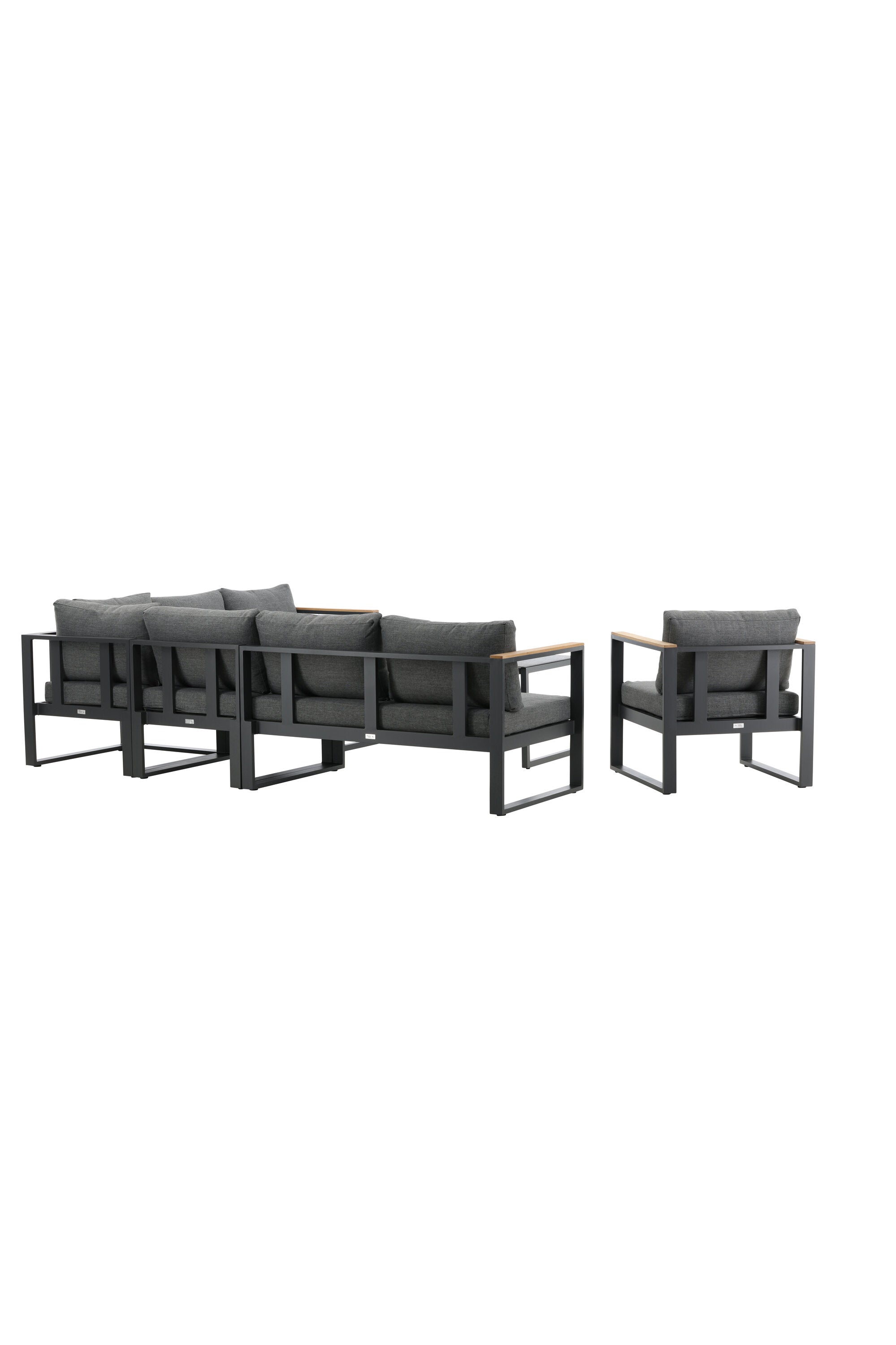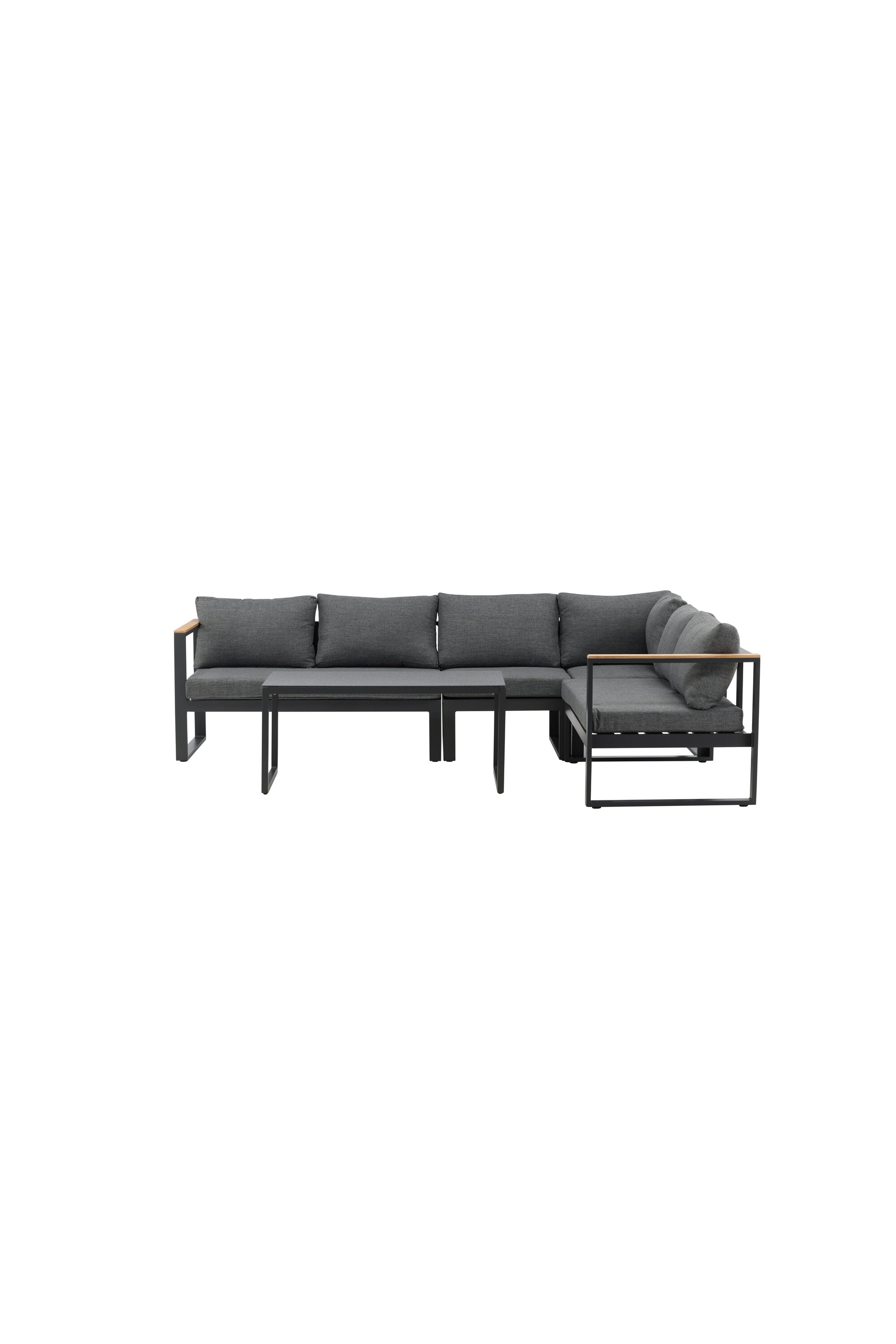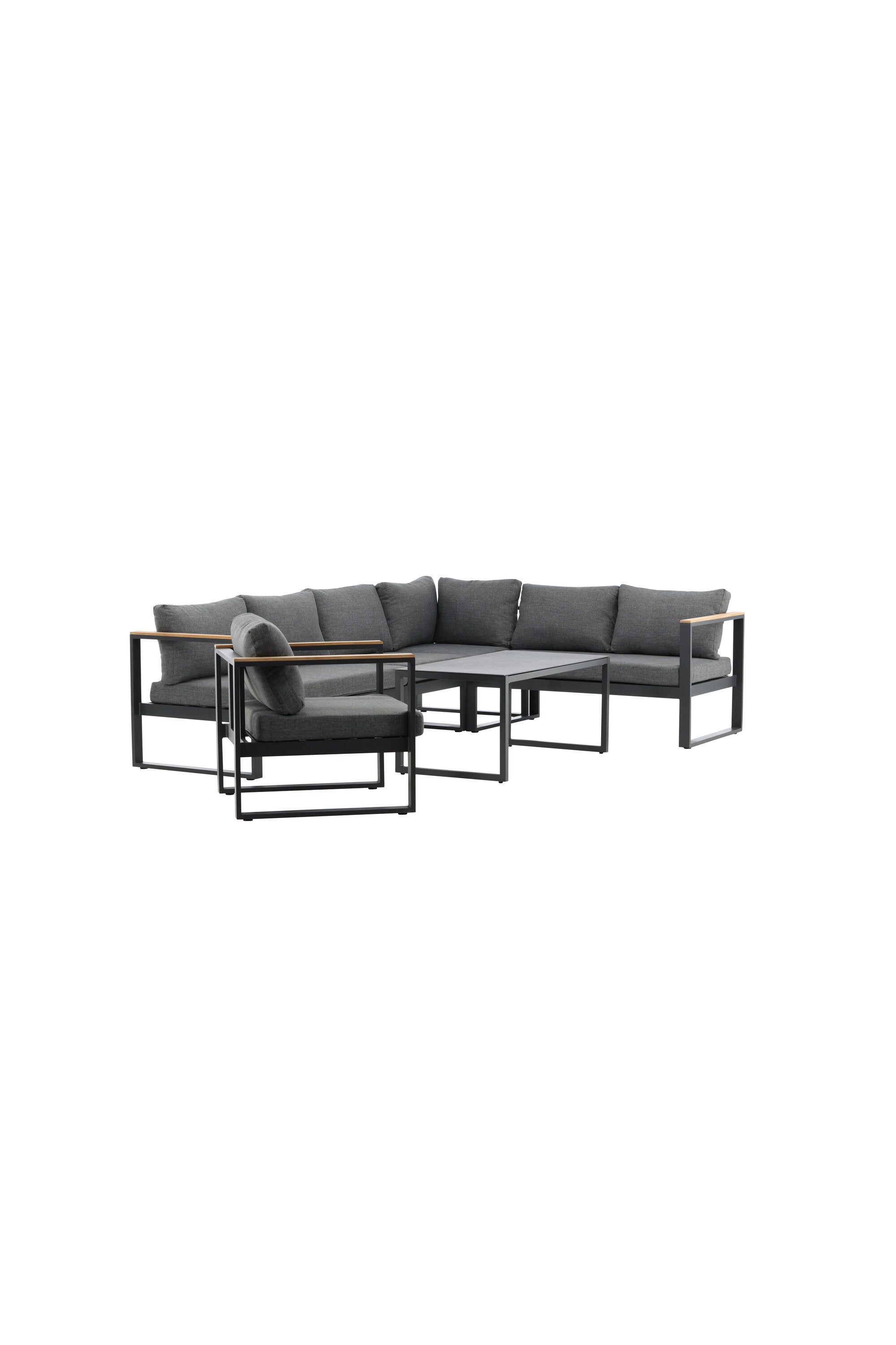 Rohová pohovka Texas - Černá Alu / Teak / Šedé polštáře