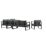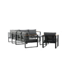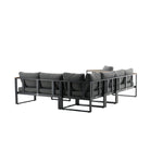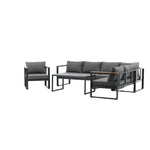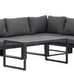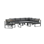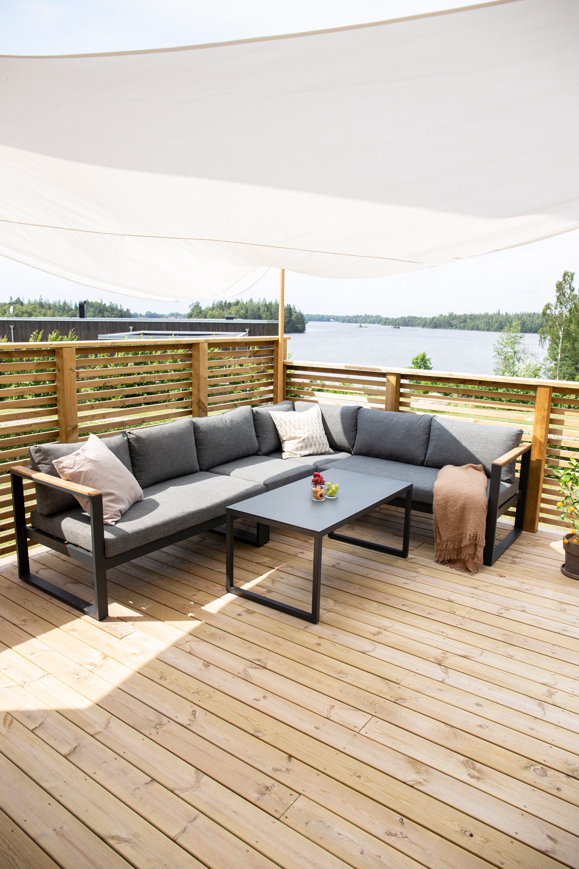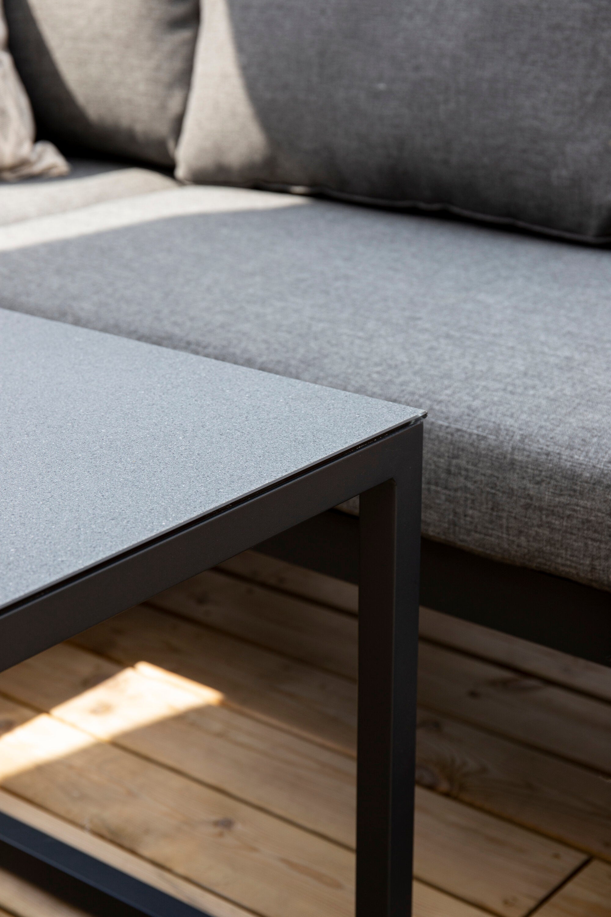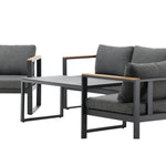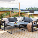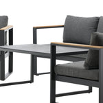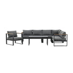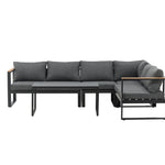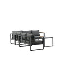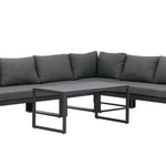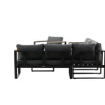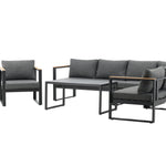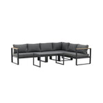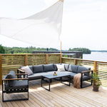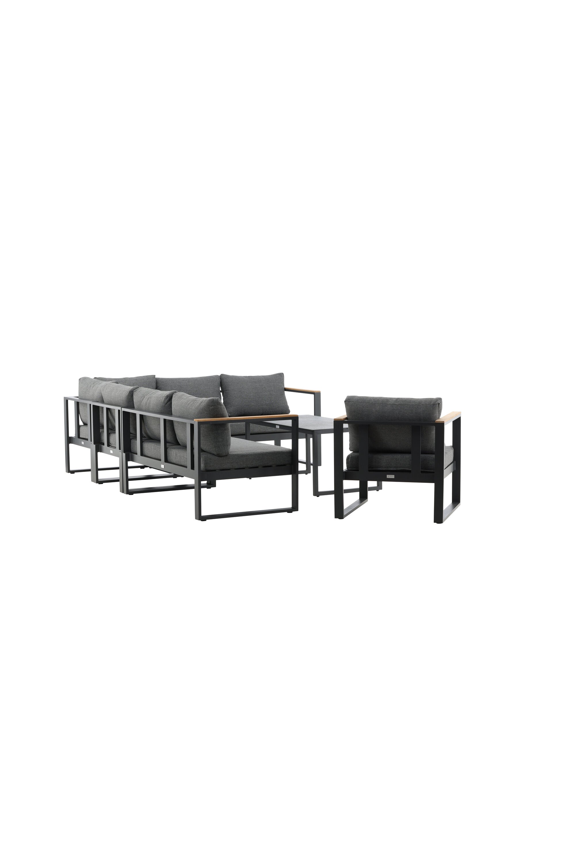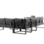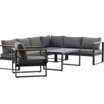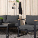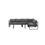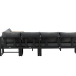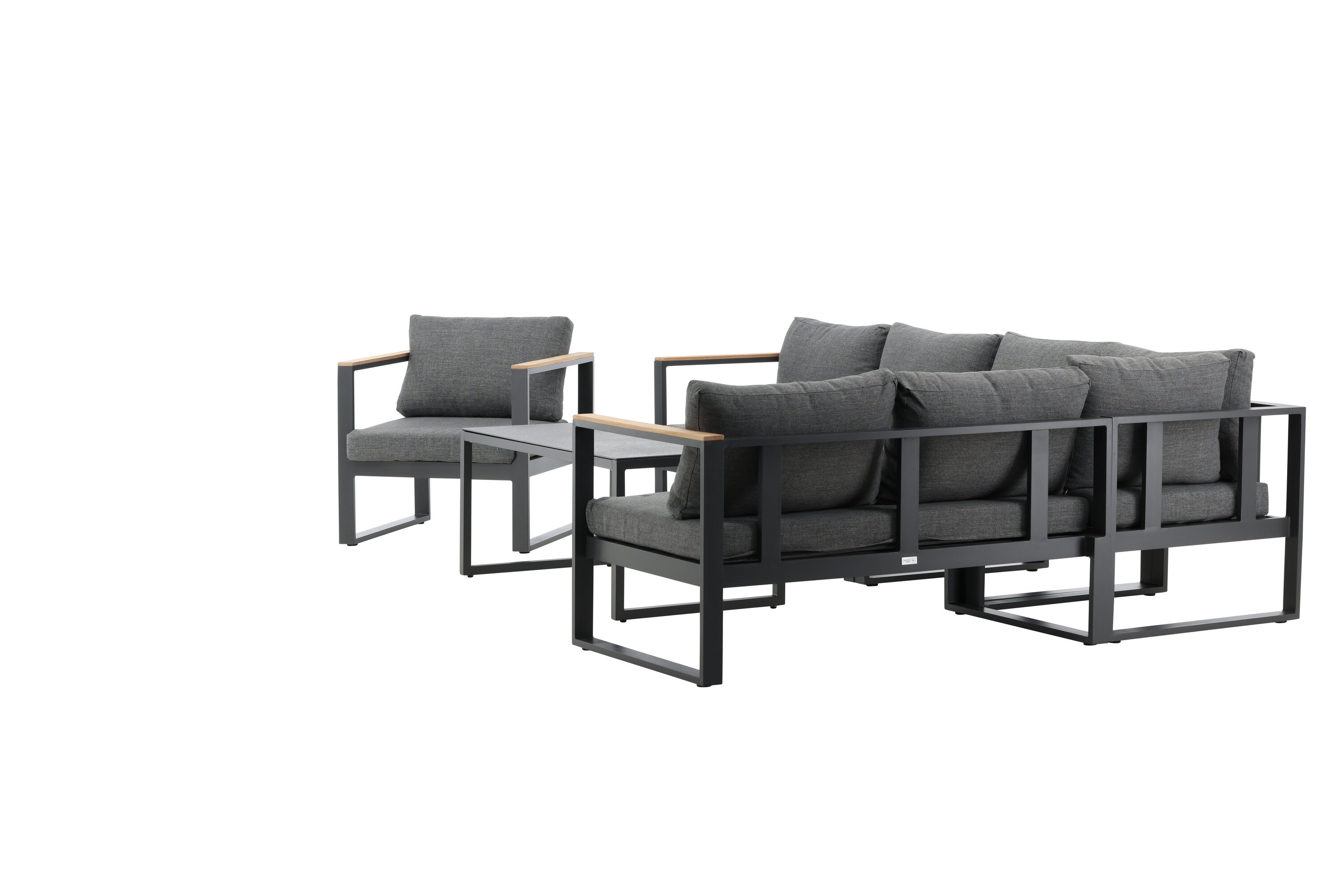 Rohová pohovka Texas - Černá Alu / Teak / Šedé polštáře