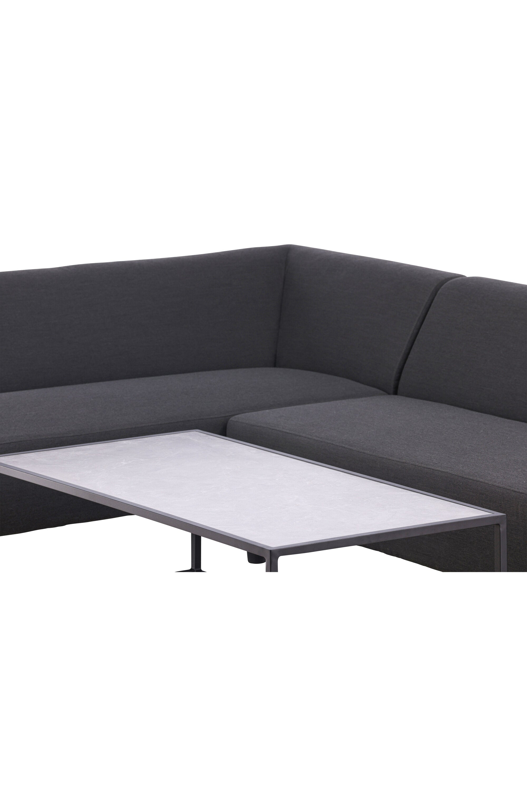 Rohová sedací souprava Mecka je pohodlná sedací souprava v nadčasovém designu. Hladká látka a velký divan znamenají, že rychle najdete klid. K pohovce je doplněn i praktický a stylový stolek. Sejděte se sousedy na kávu nebo pozvěte přátele na kocovinu na pohovce. Pohovka je voděodolná s rychleschnoucí pěnou a akrylovou látkou, které nevyblednou, a proto je ideální na terasu. Rozměry: Sedačka: Hloubka: 85cm, Šířka: 180cm, Výška: 70cm | Stůl: Šířka: 64,5 cm, Délka: 125 cm, Výška: 40 cm