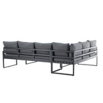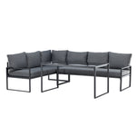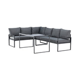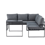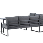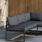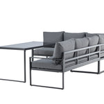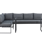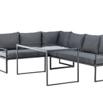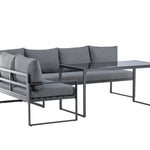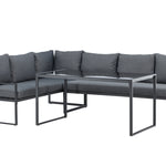Zingaro je sedací souprava, která kombinuje eleganci a funkčnost pro vaši terasu. S elegantním černým rámem a šedými polštáři vyrobenými z odolného polyesteru vytváří Zingaro moderní a příjemnou atmosféru. Rohová pohovka nabízí spoustu místa pro celou rodinu, kde se může sejít a užít si příjemné společné chvíle, ať už jde o nádherný večer nebo odpočinkový den venku.