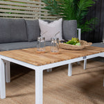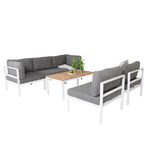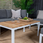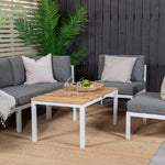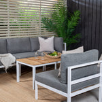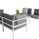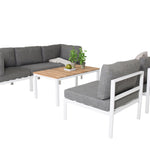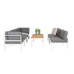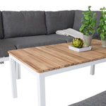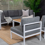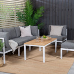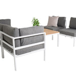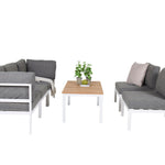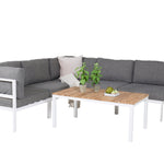 Rohový díl Copacabana - Bílý Alu / Šedý polštář + Brasilia sedací stůl 60*110*55
