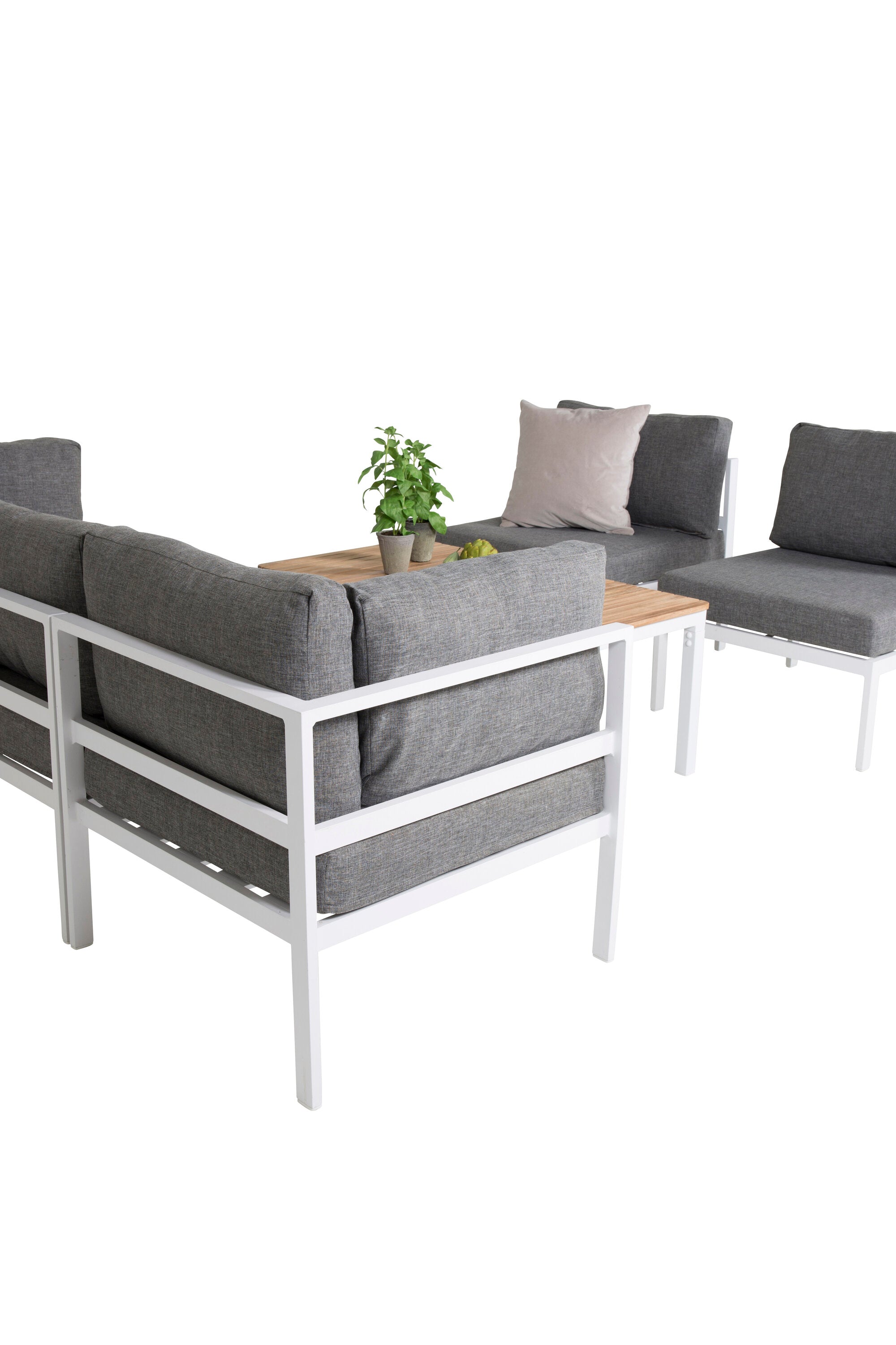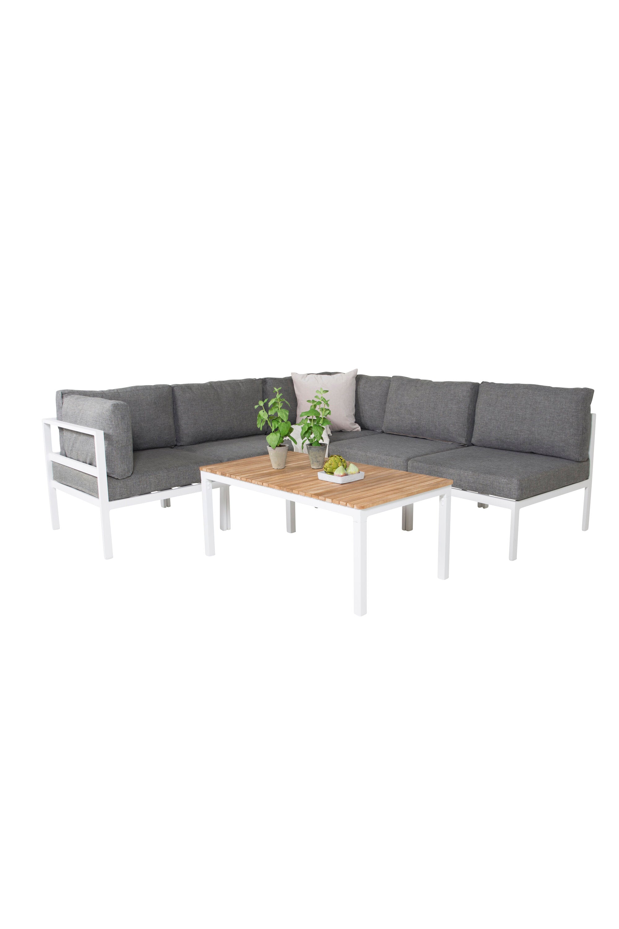 Sedací souprava v rovném, moderním a stylovém designu, která se perfektně hodí na vaši terasu. Sedací soupravu tvoří pohovka, která může být vyrobena jako rohová nebo jako pohovka se dvěma přidruženými křesly. Součástí pohovky je Sofbord ze série Brazil. Šedé měkké a dobře rostlé polštáře jsou součástí balení. Vytvořte něco pěkného se spoustou prostoru pro socializaci!