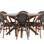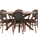 Tento jídelní set není jen funkčním venkovním nábytkem; je symbolem minimalistické elegance a pohodlí. Zažijte hřejivý a přízemní pocit s naší jídelní sadou Guarda a Rosario.