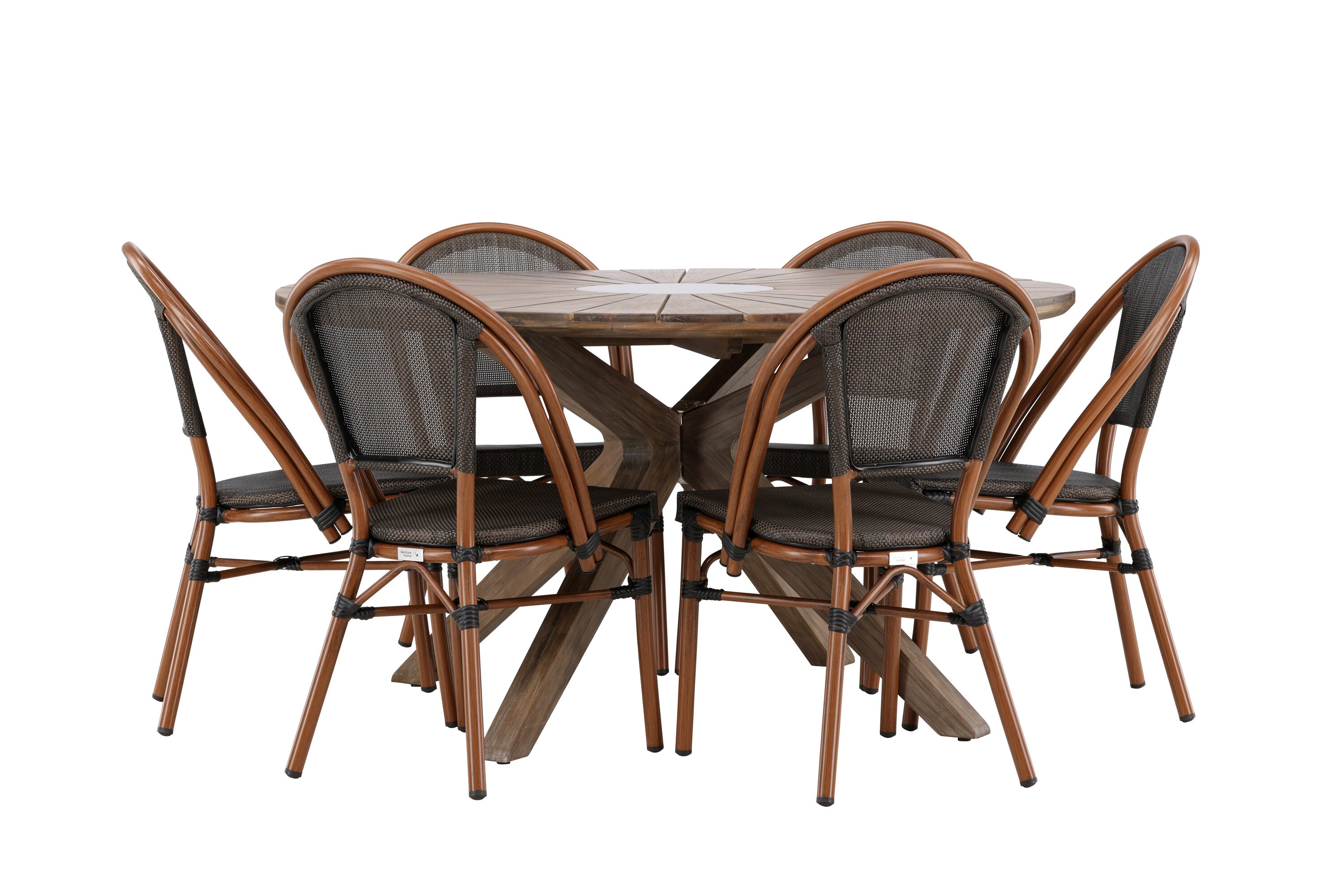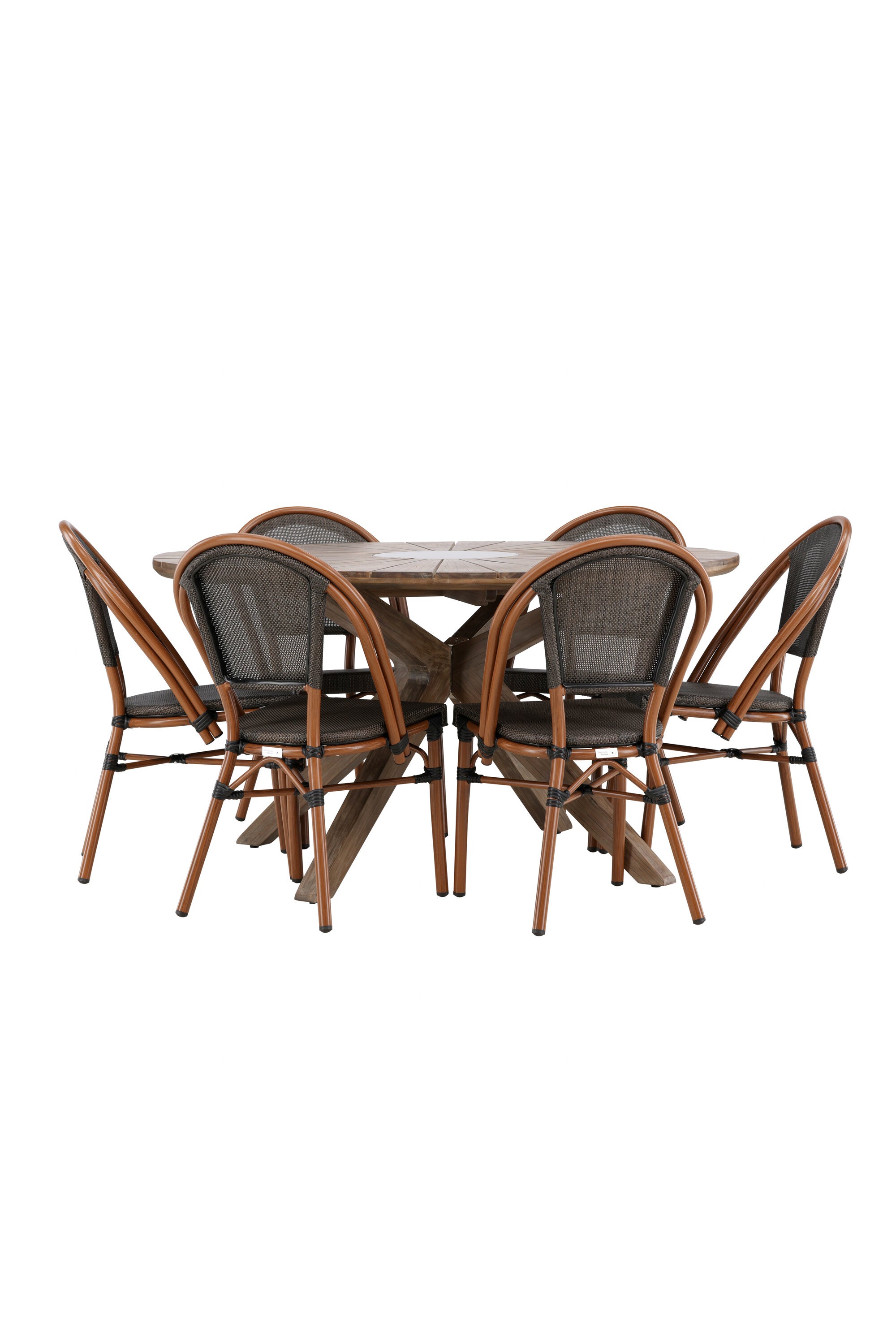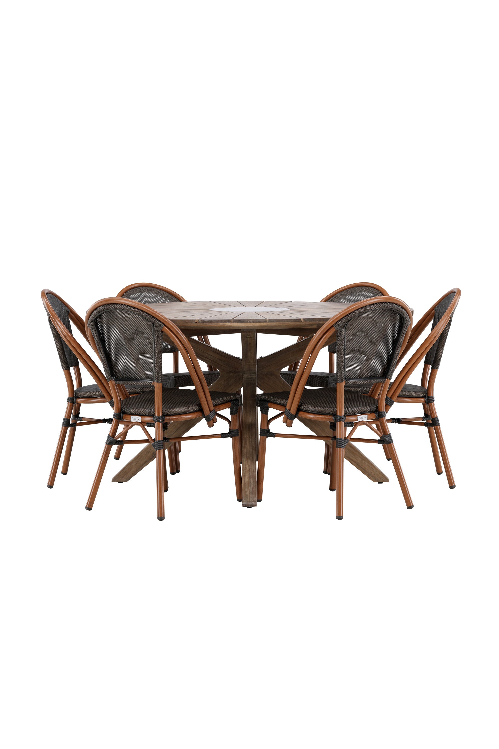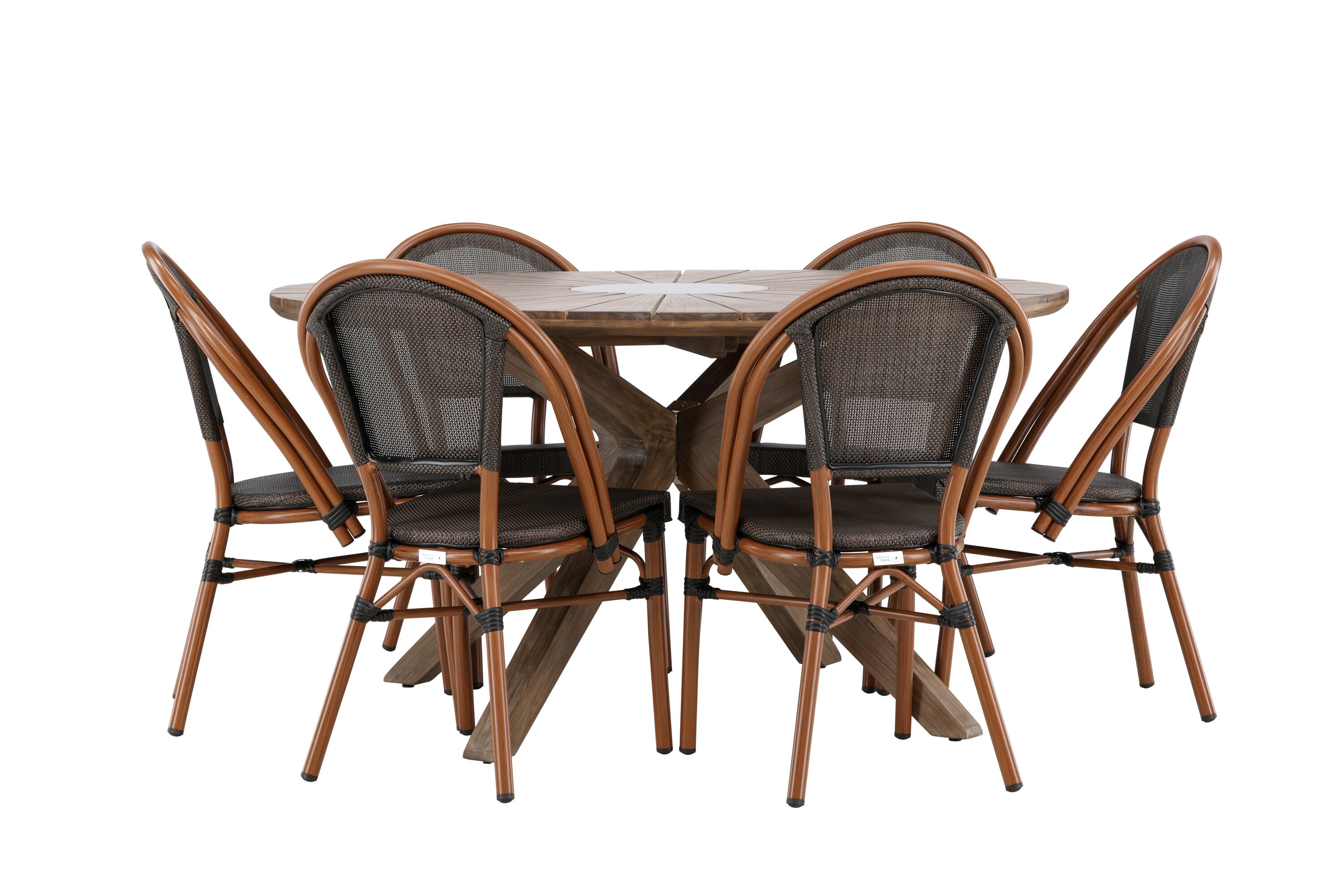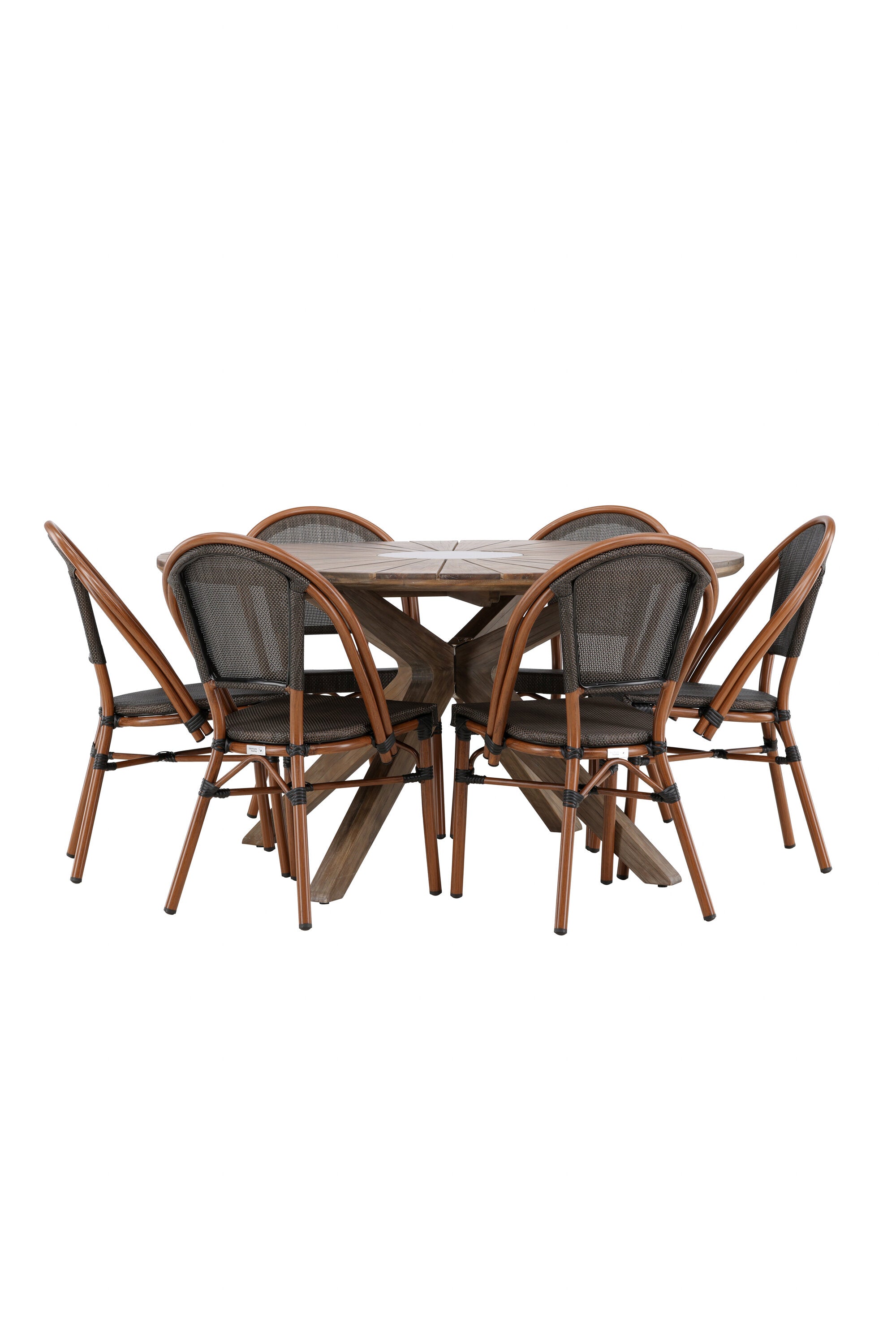Rosario Jídelní stůl- Teak Ø140 +Guarda Caféchair 2-balení - Hnědá/Černá _6