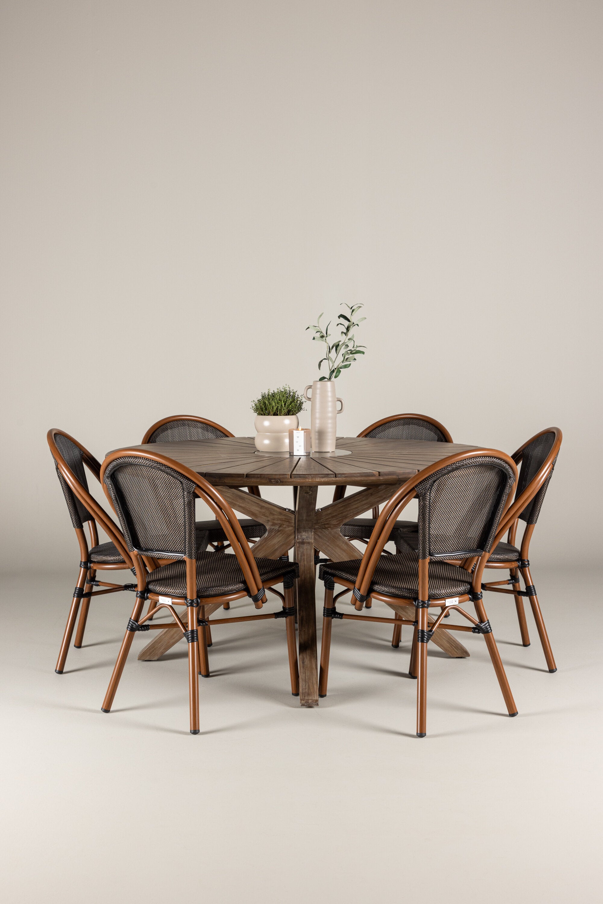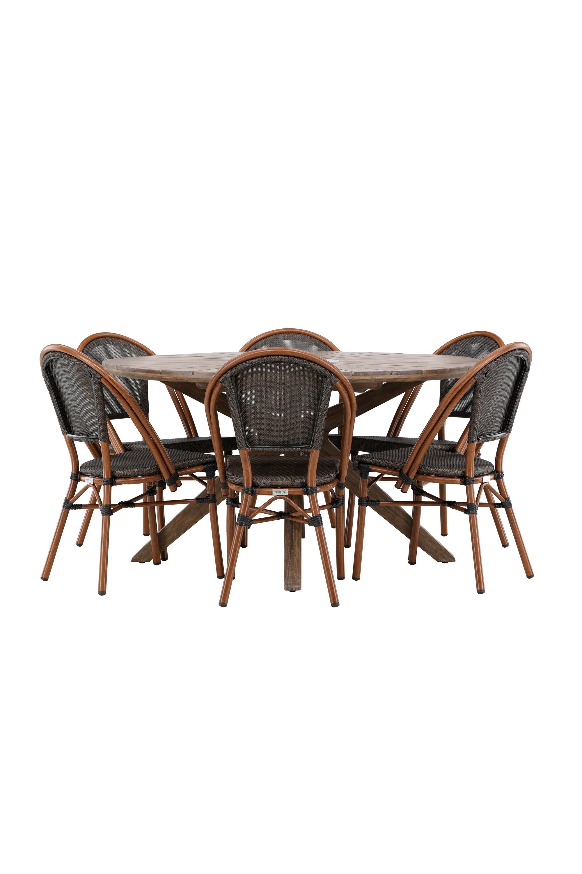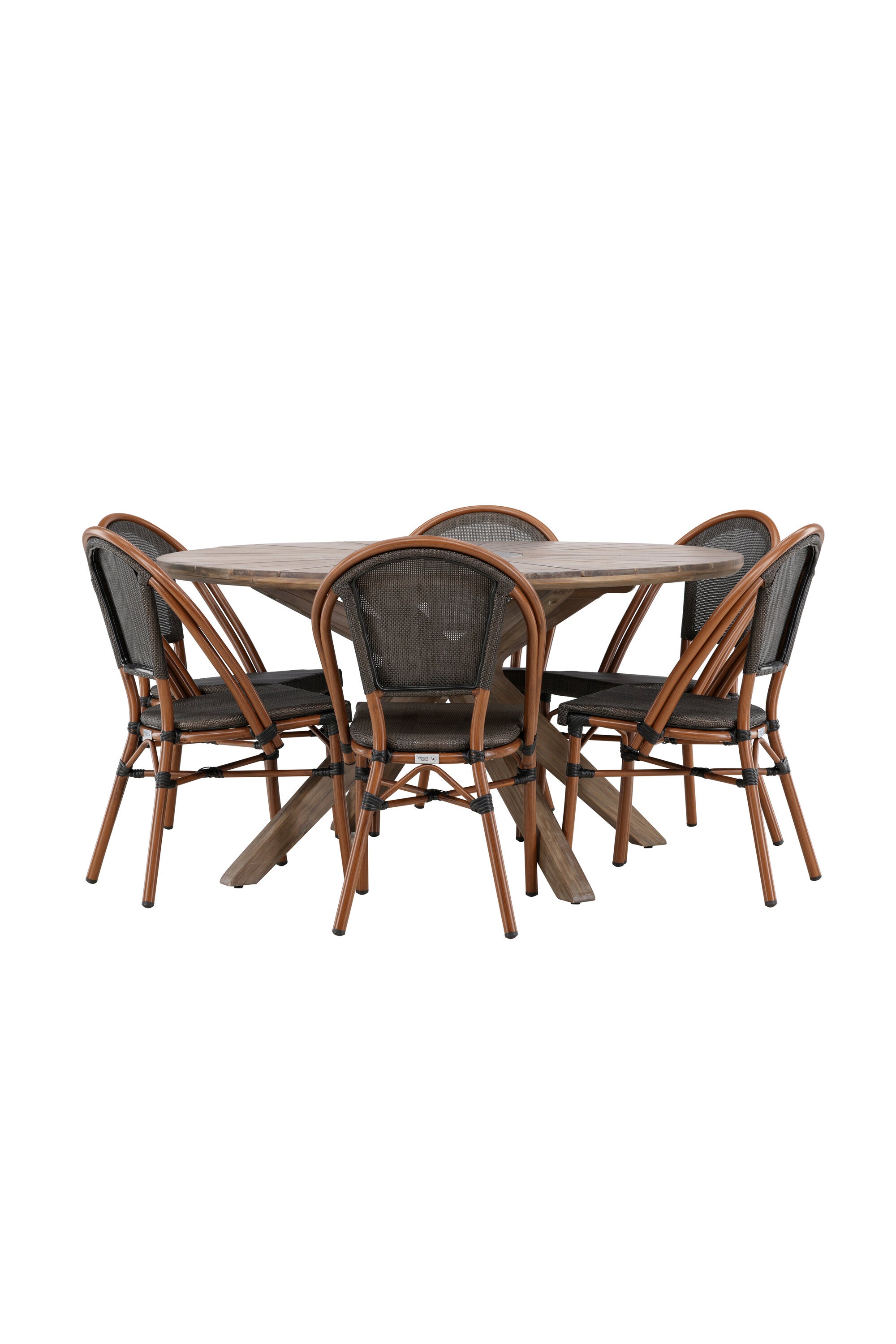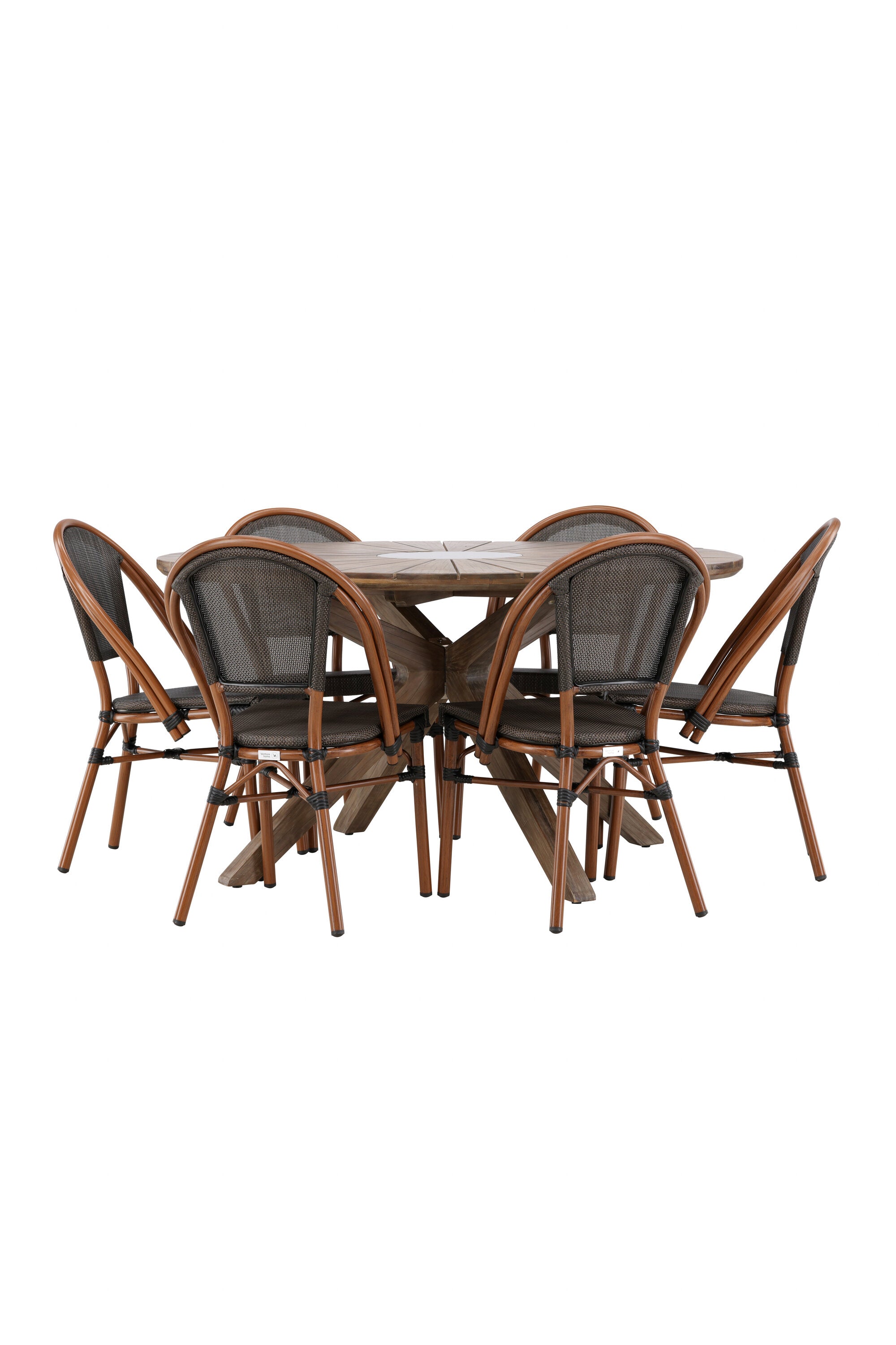 Rosario Jídelní stůl- Teak Ø140 +Guarda Caféchair 2-balení - Hnědá/Černá _6