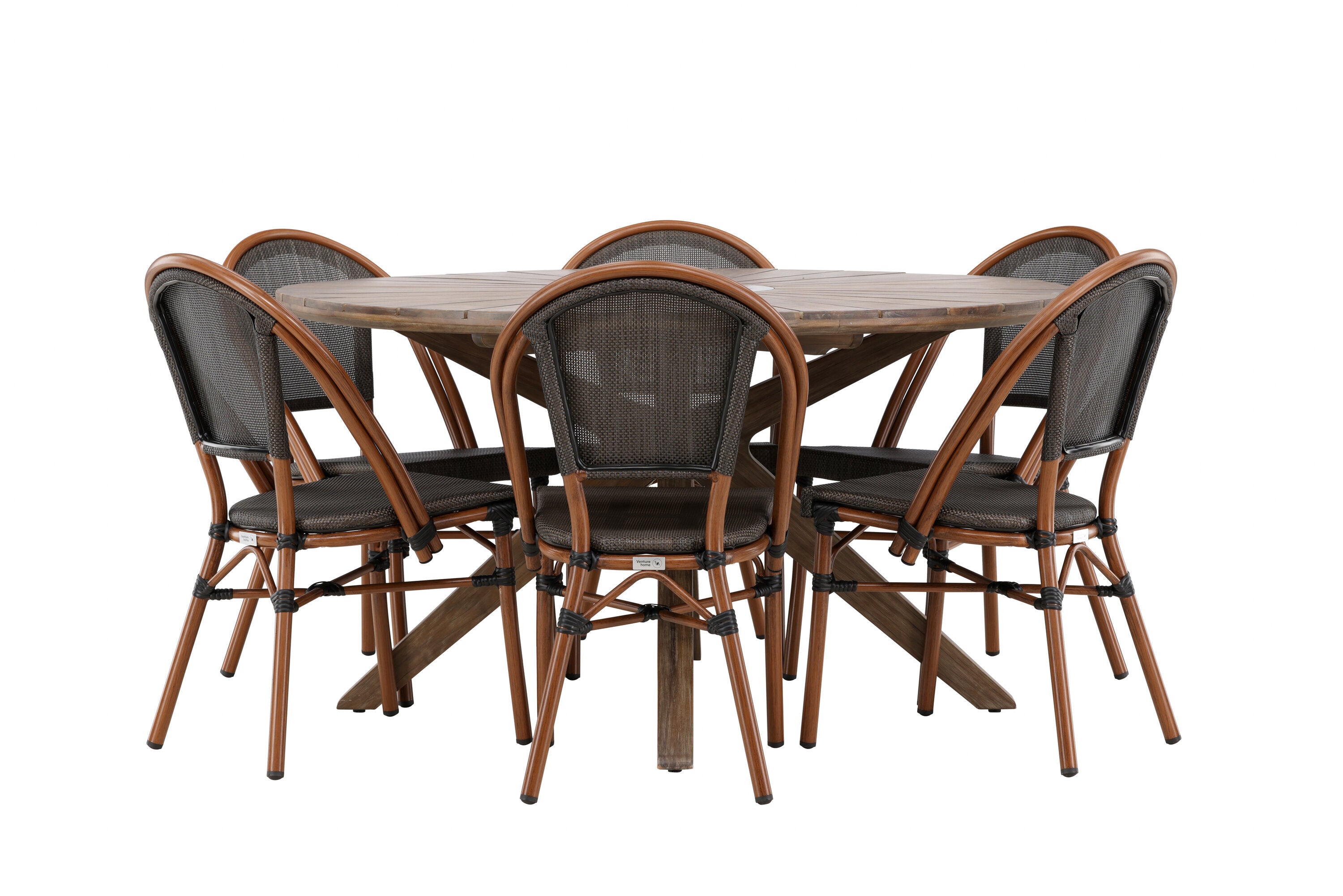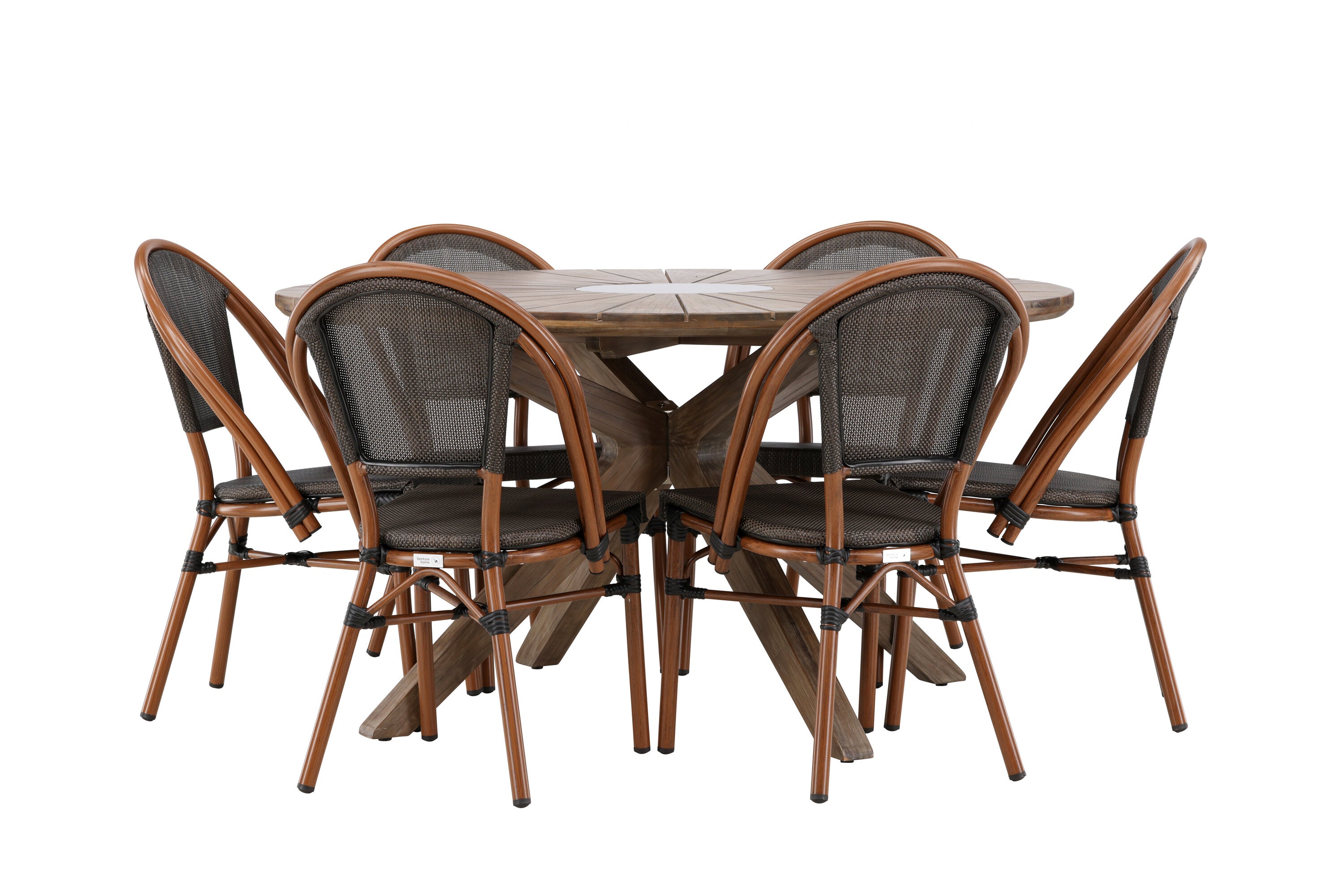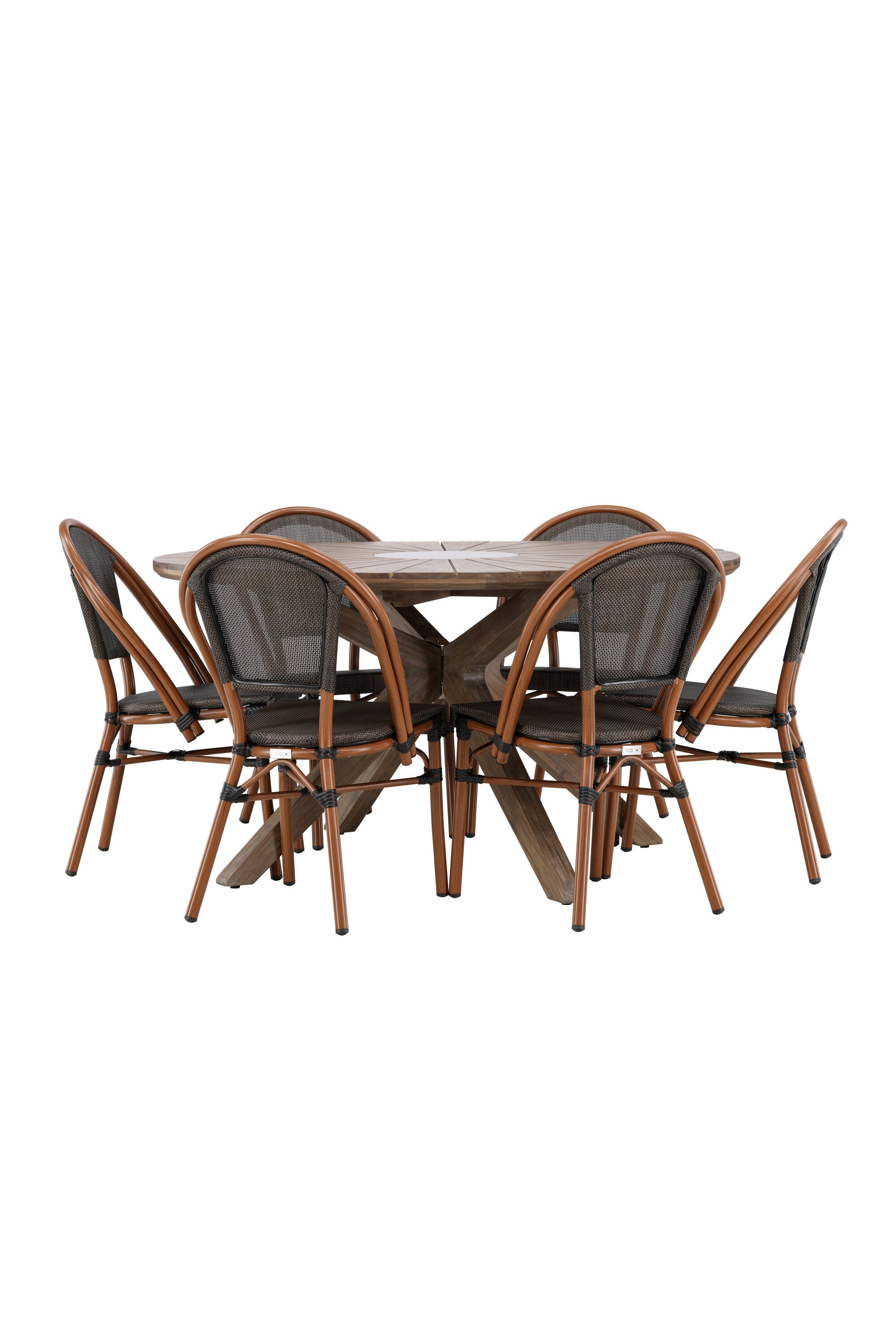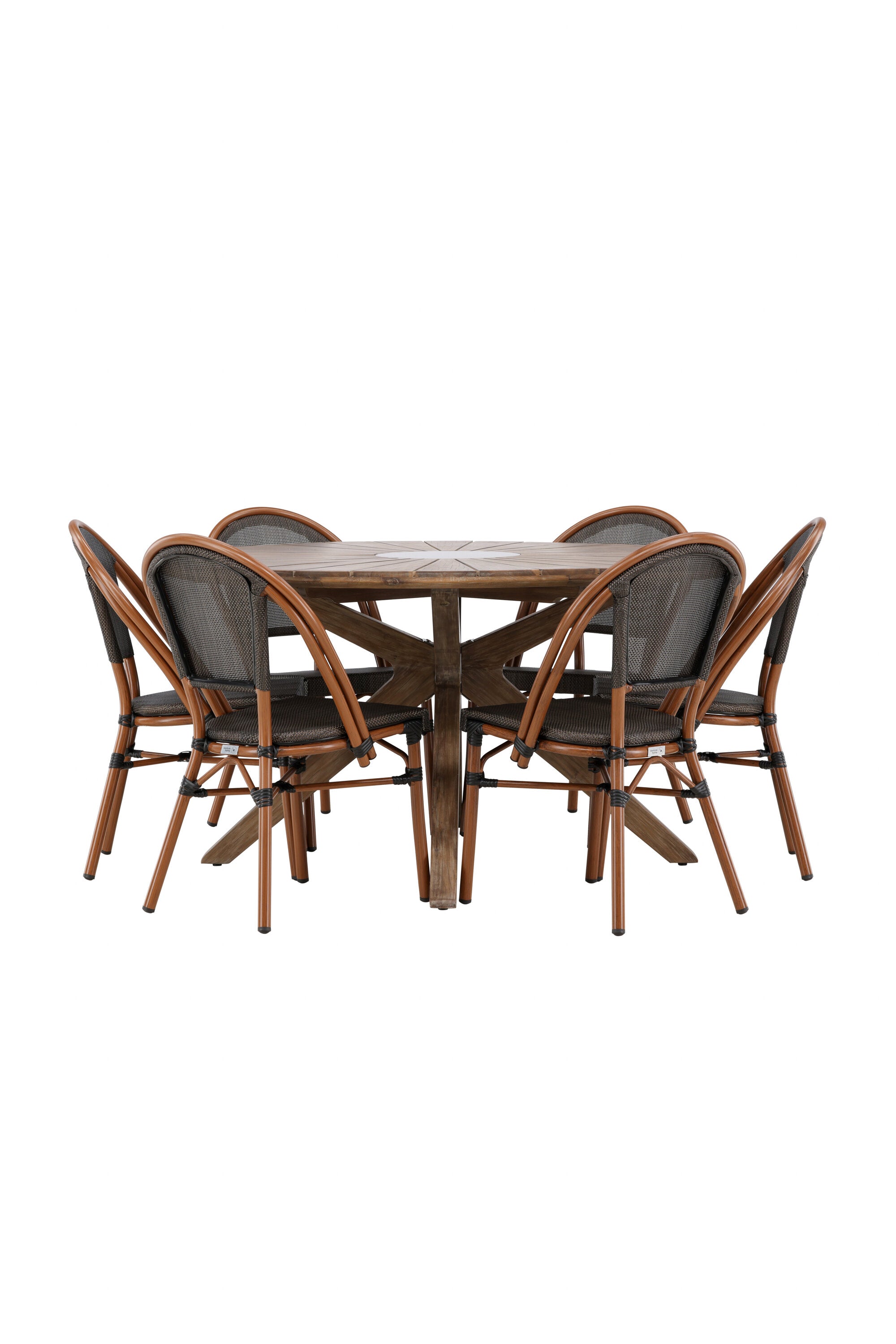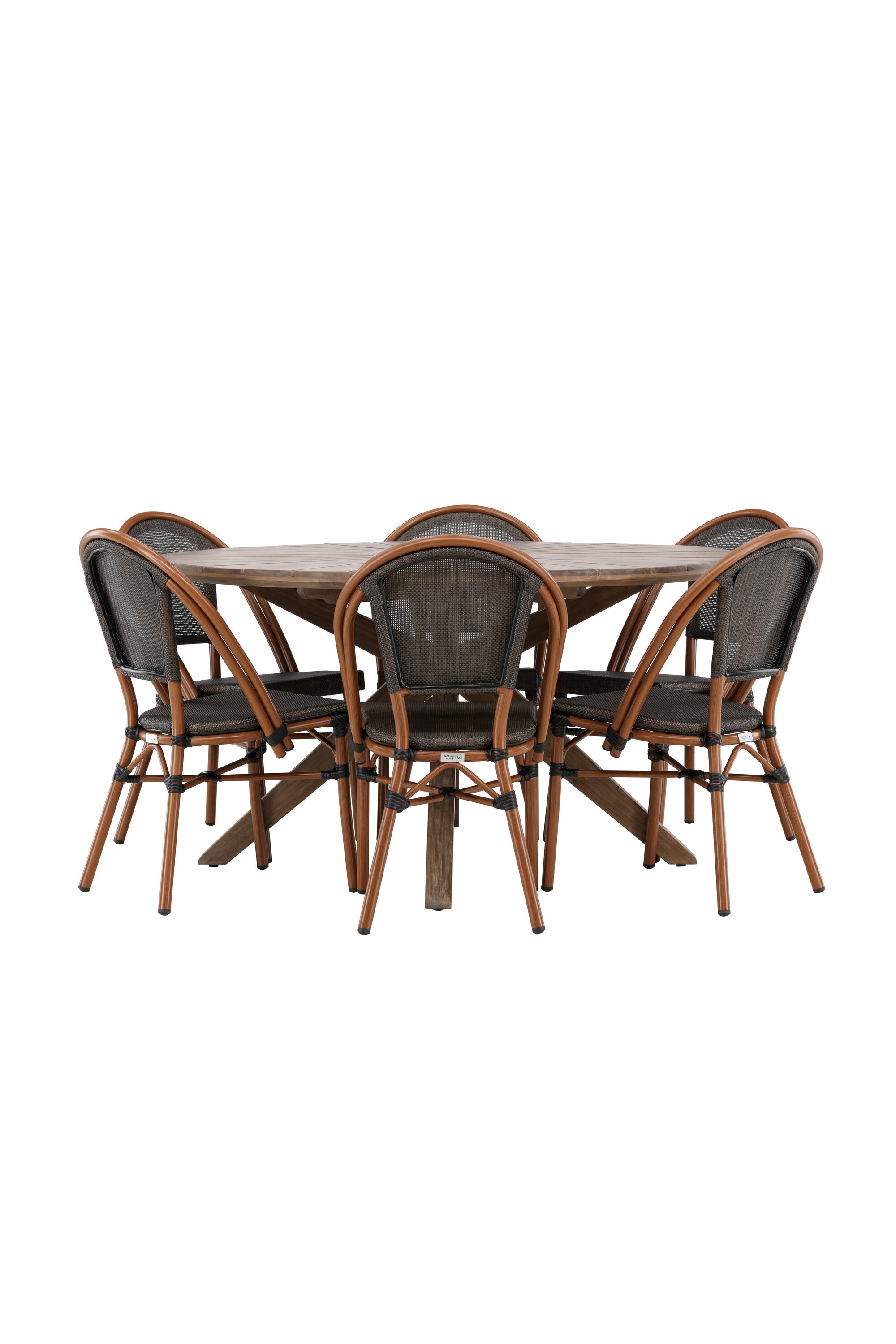 Rosario Jídelní stůl- Teak Ø140 +Guarda Caféchair 2-balení - Hnědá/Černá _6