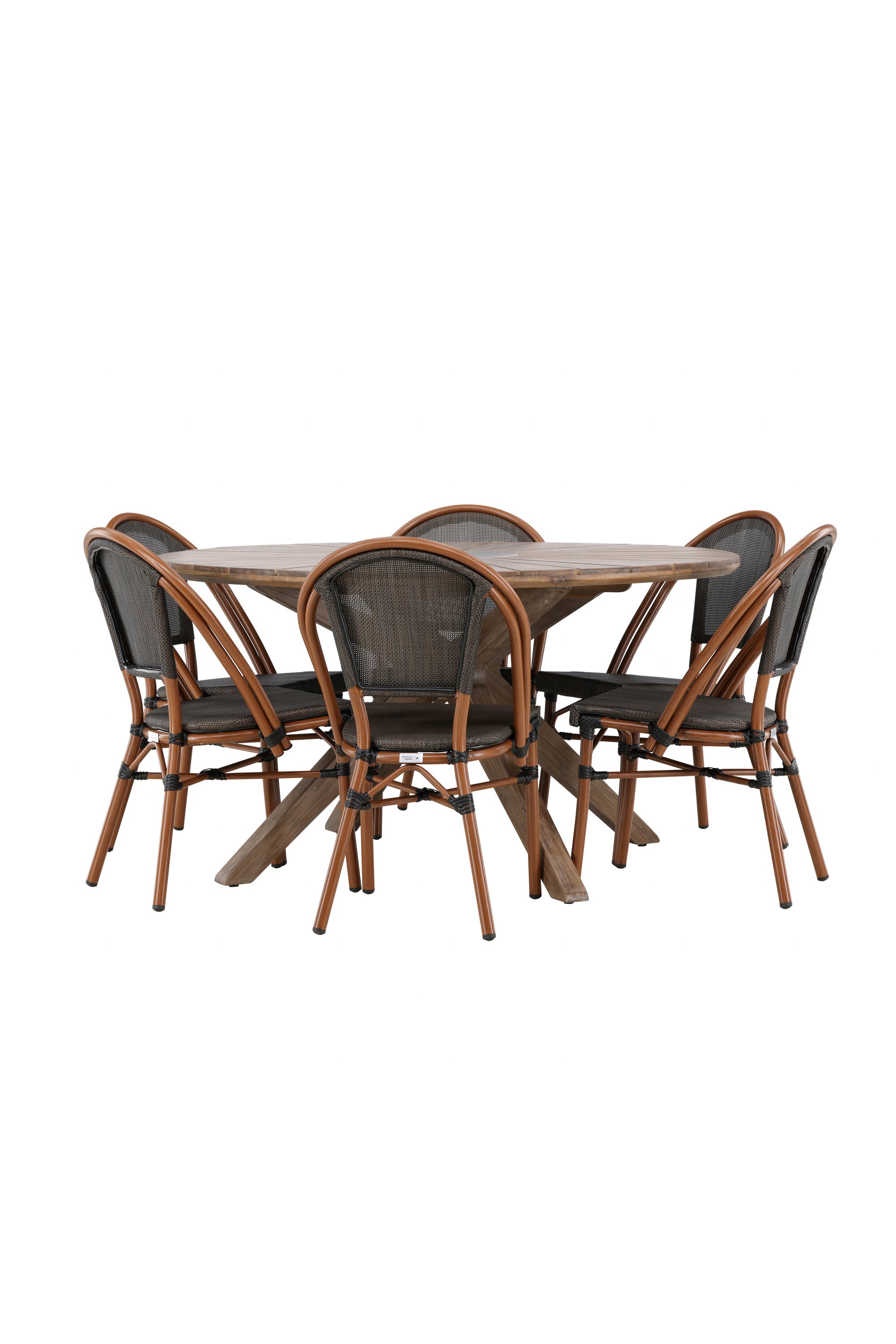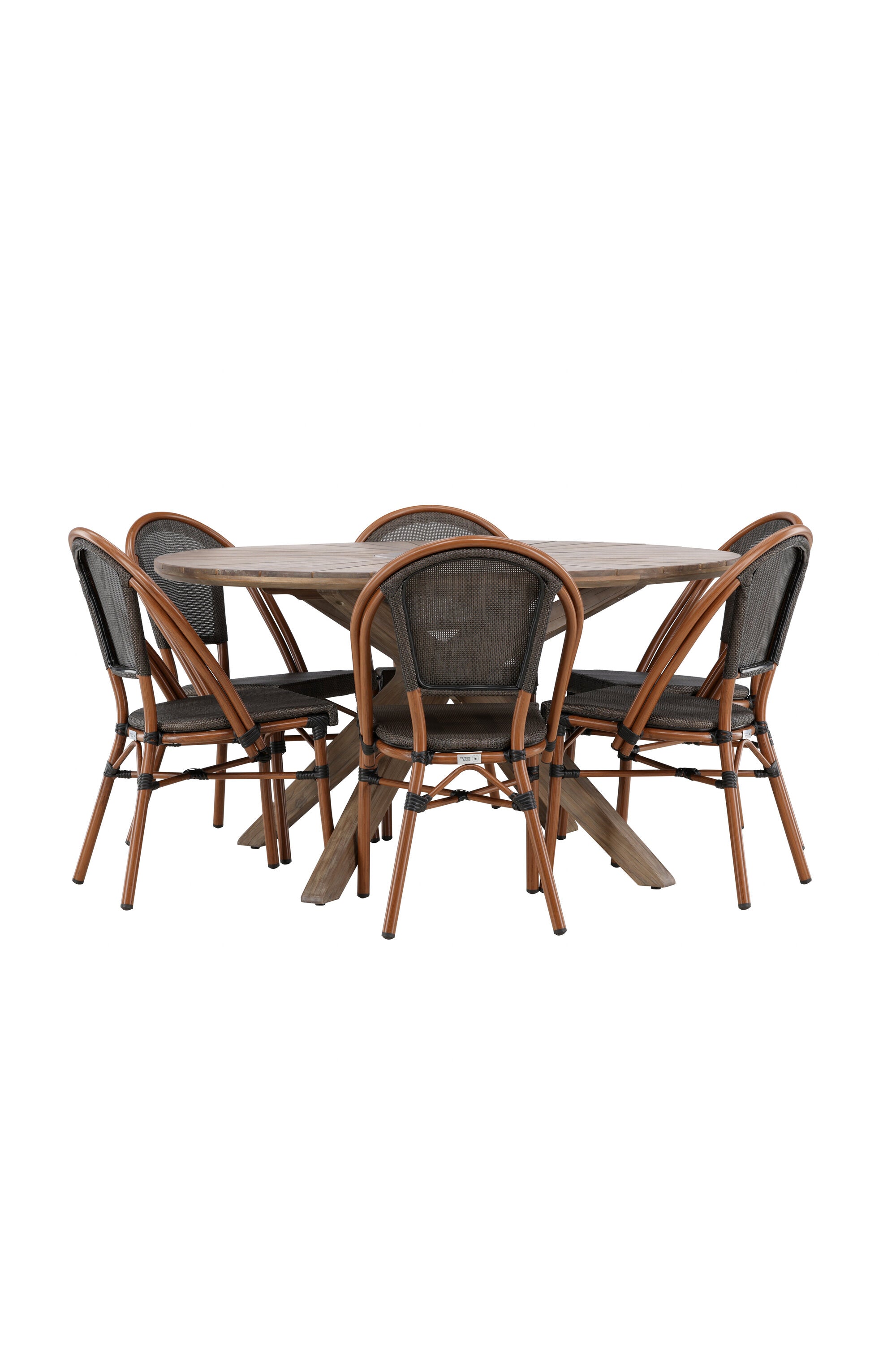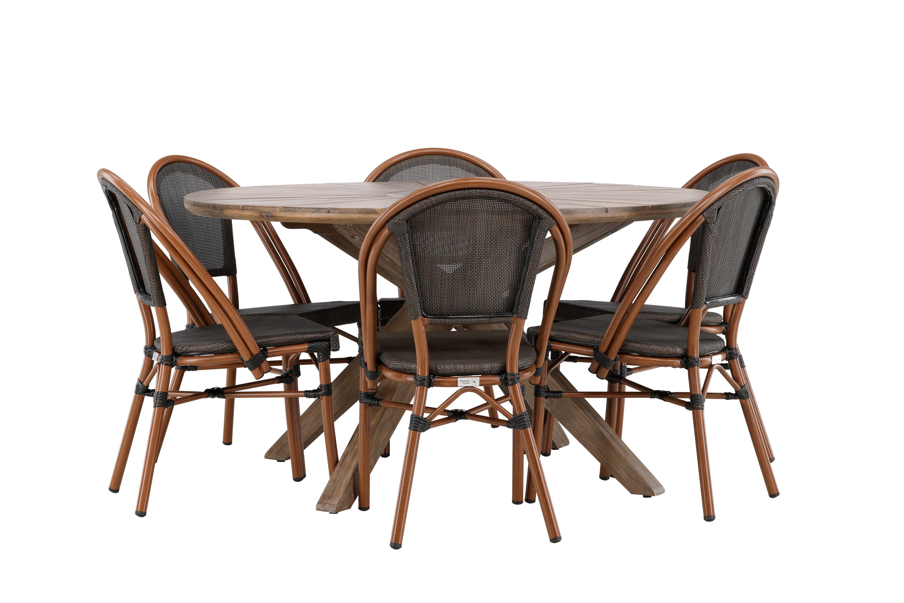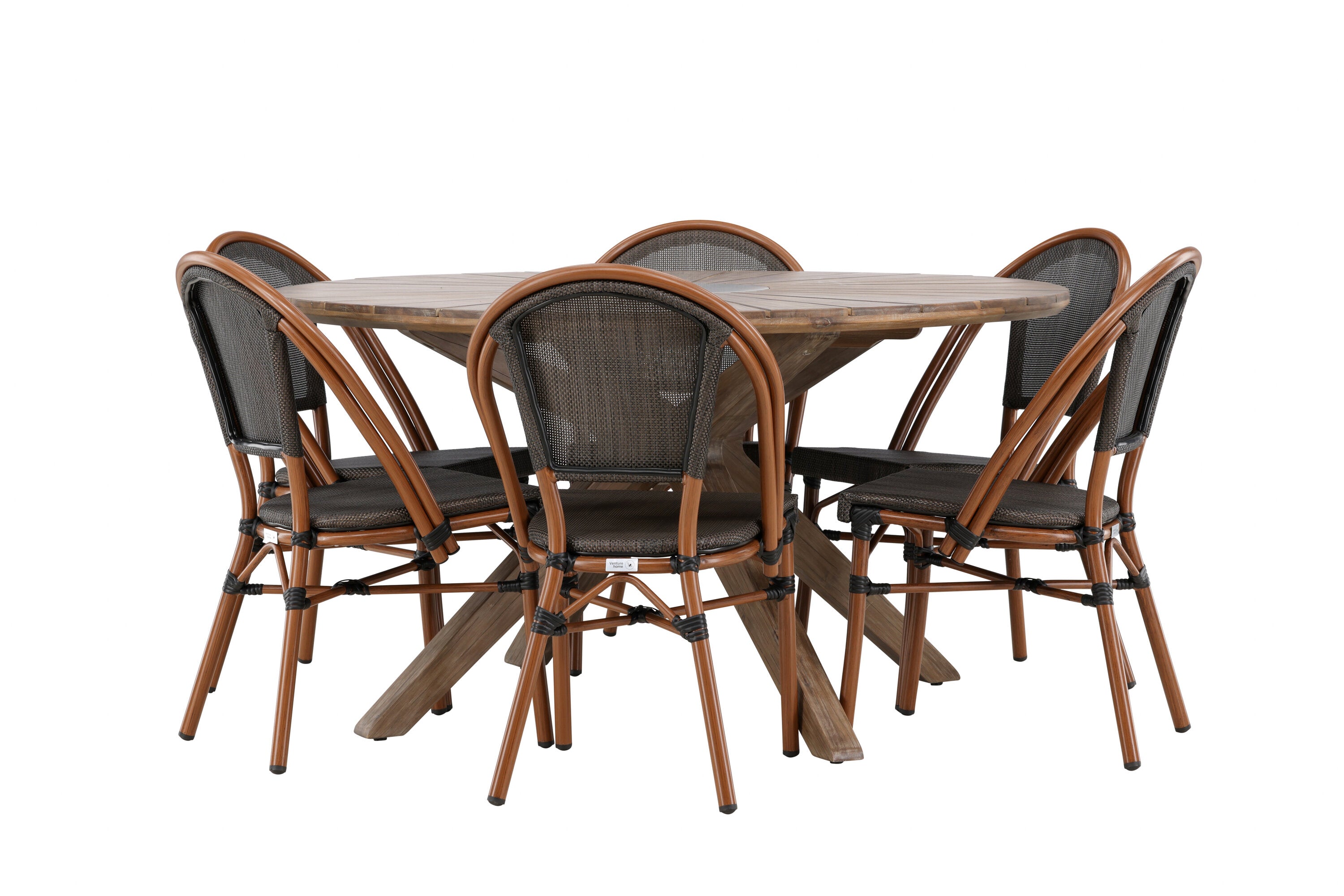 Rosario Jídelní stůl- Teak Ø140 +Guarda Caféchair 2-balení - Hnědá/Černá _6