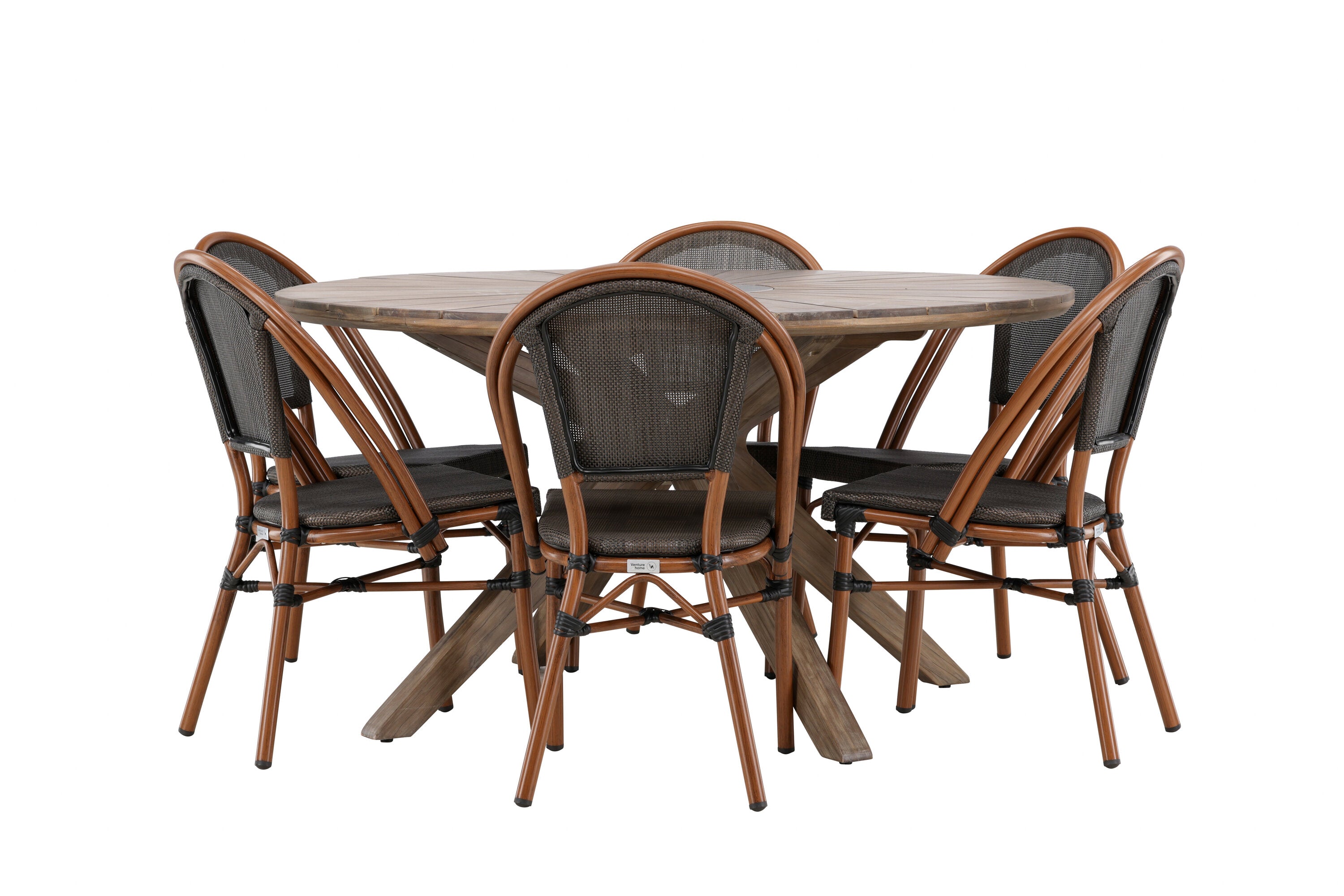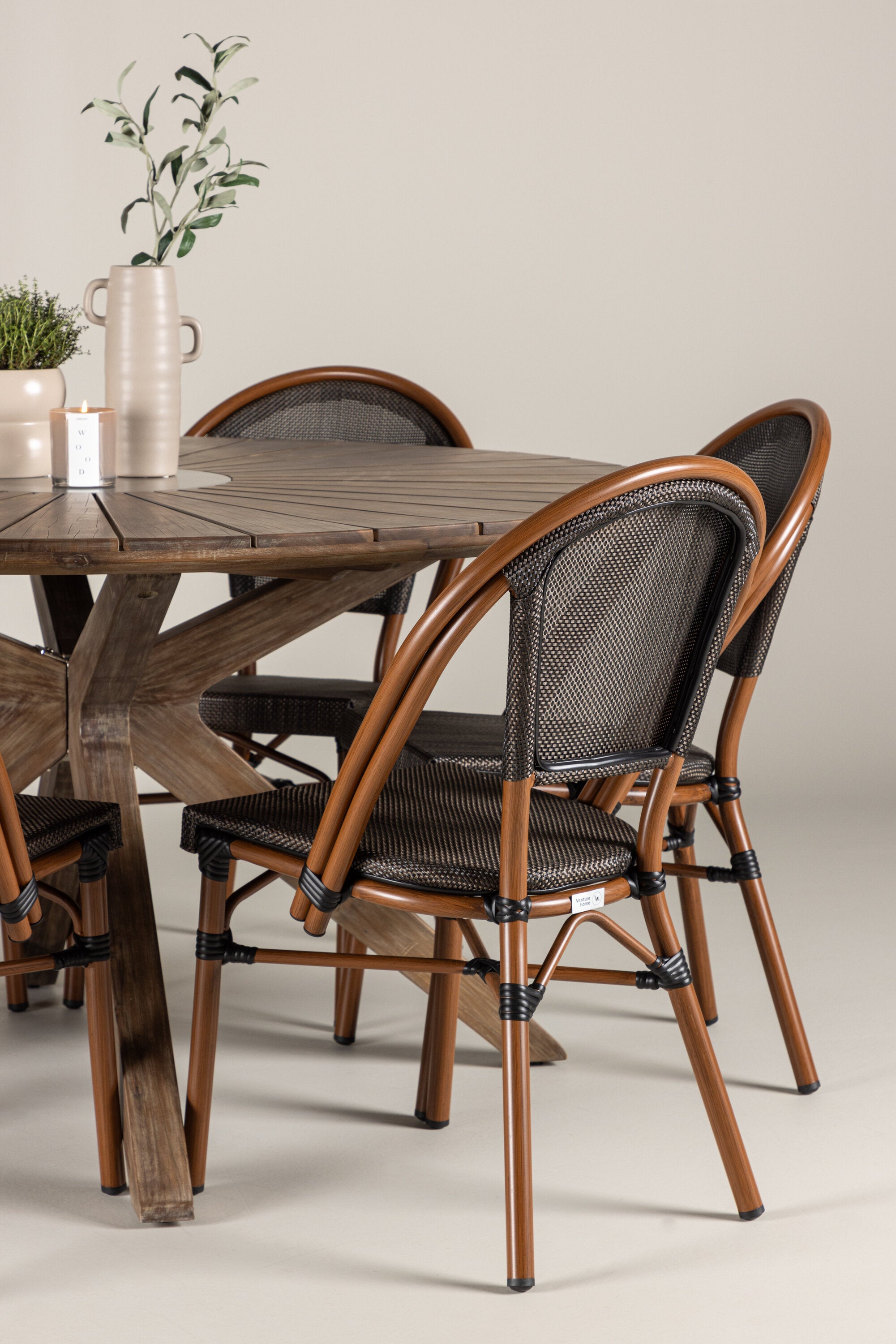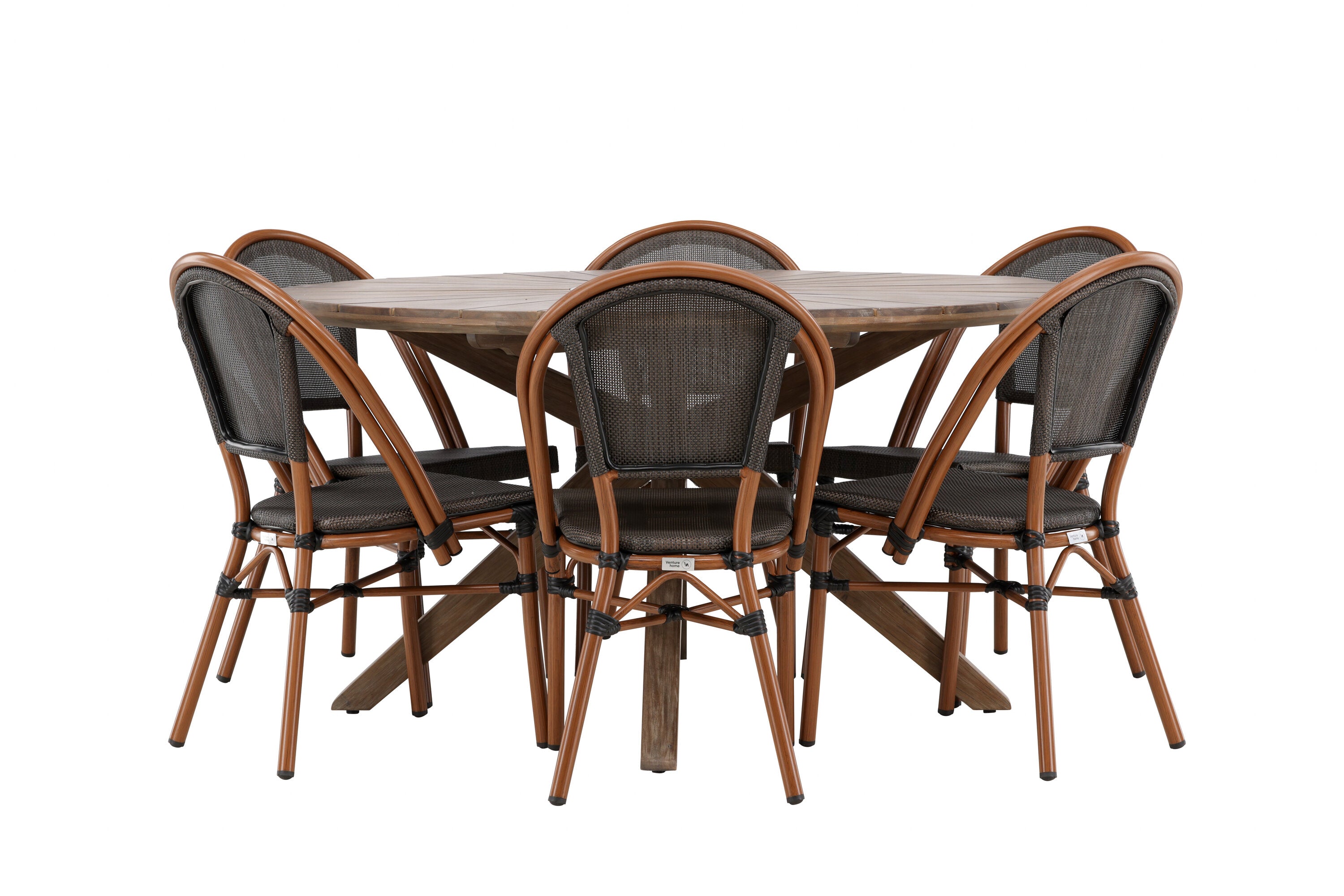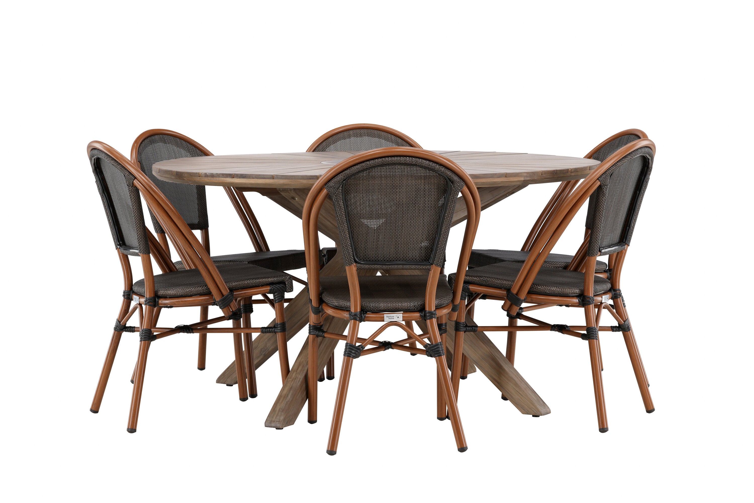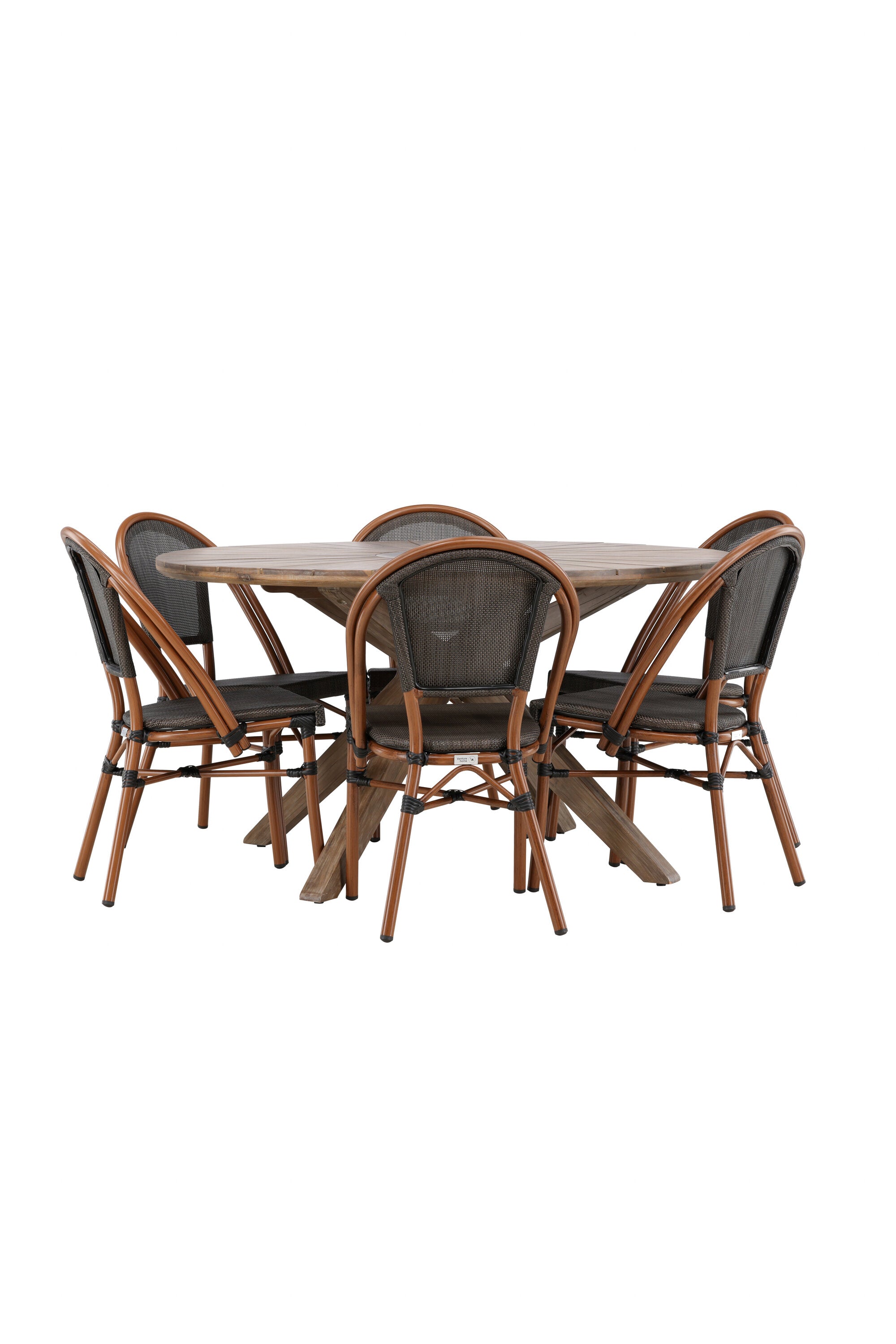 Rosario Jídelní stůl- Teak Ø140 +Guarda Caféchair 2-balení - Hnědá/Černá _6
