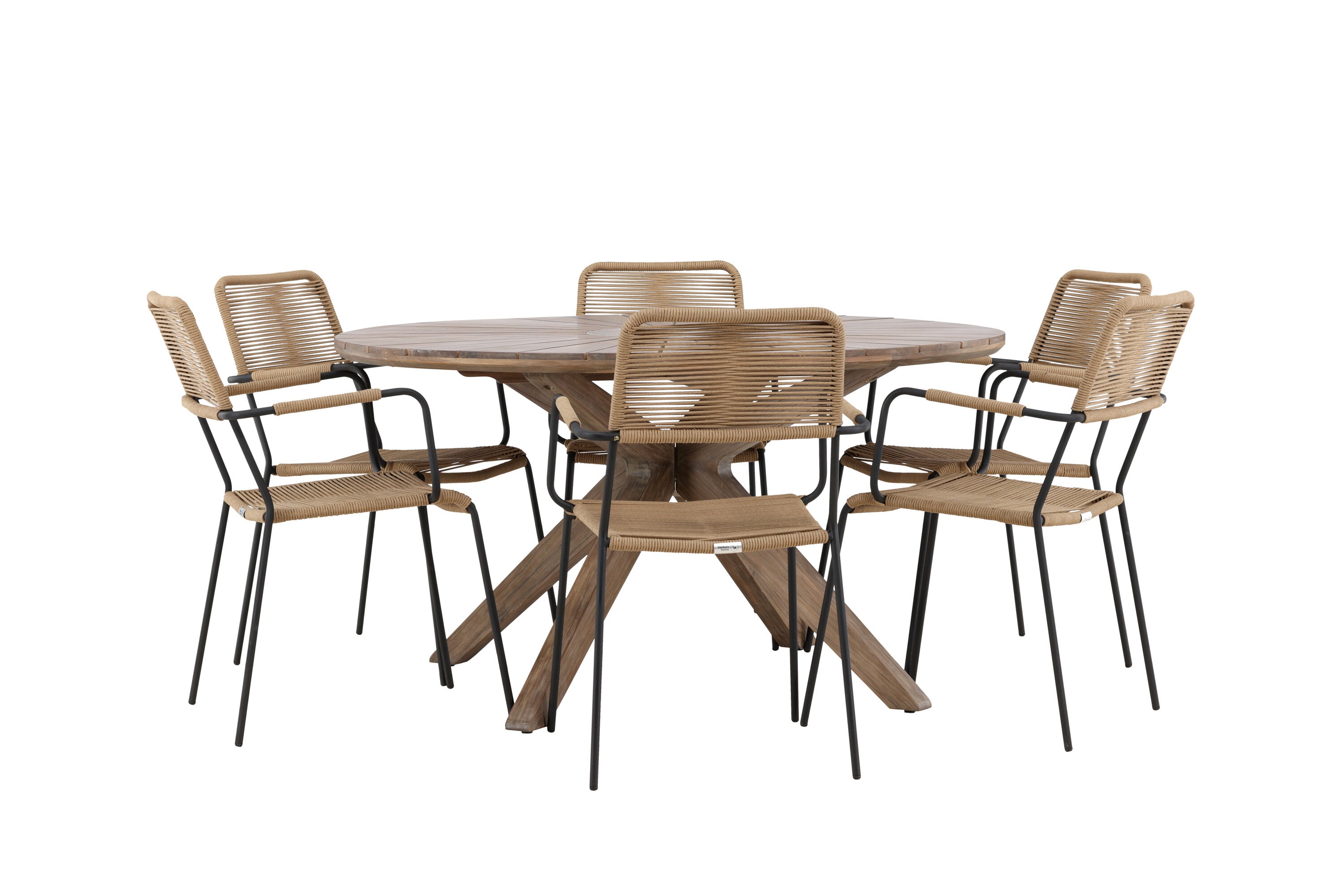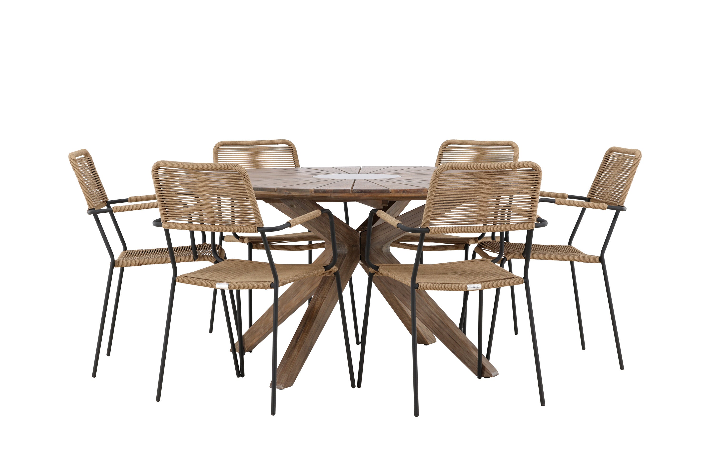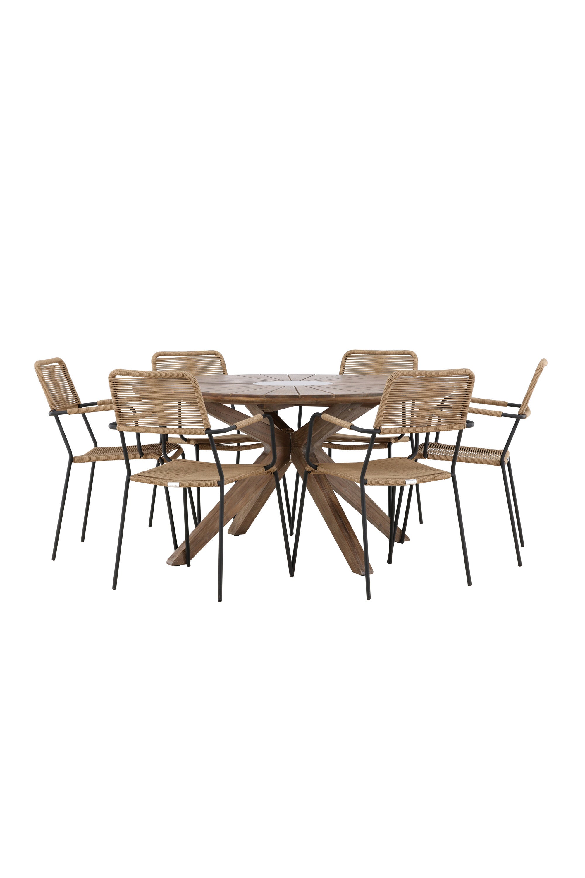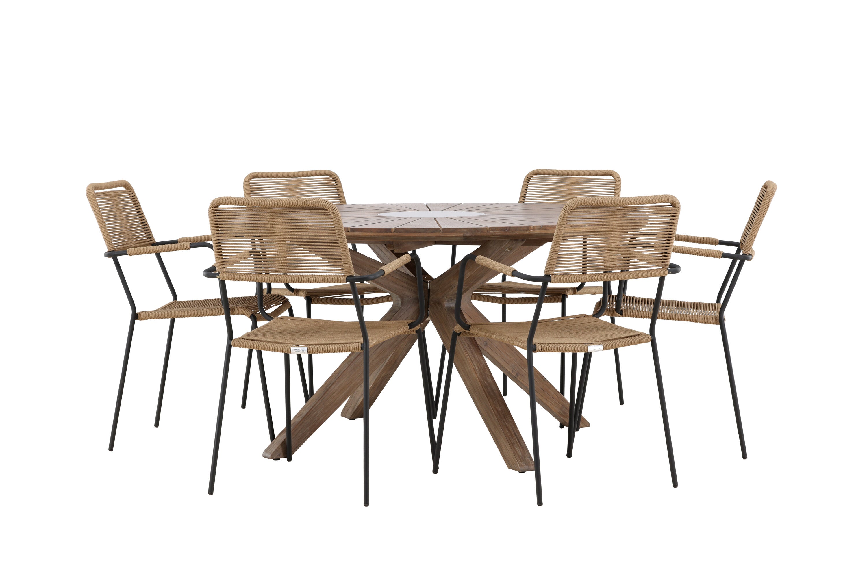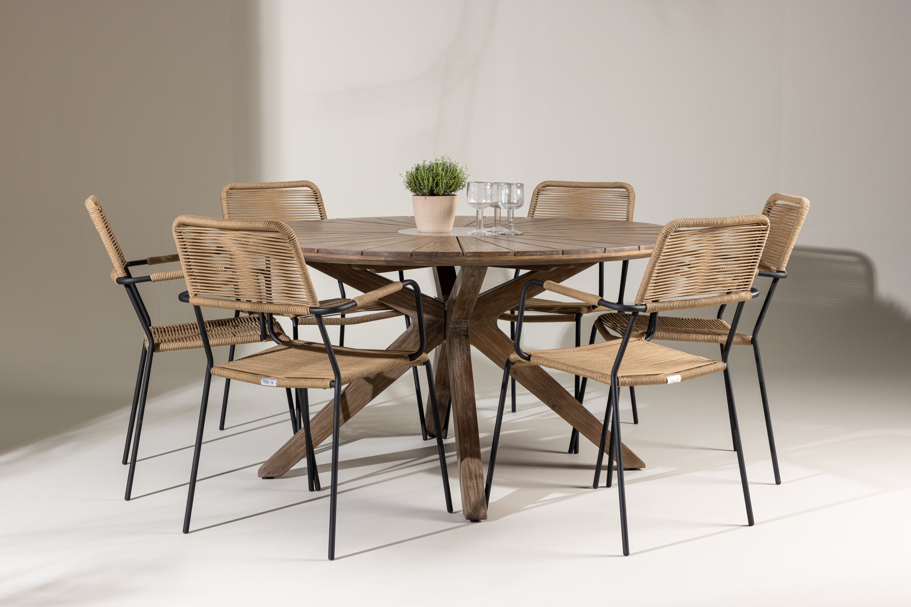 Rosario Jídelní stůl - Teak Ø140 +Lindos - Křeslo - Black Alu / Latte Latte _6