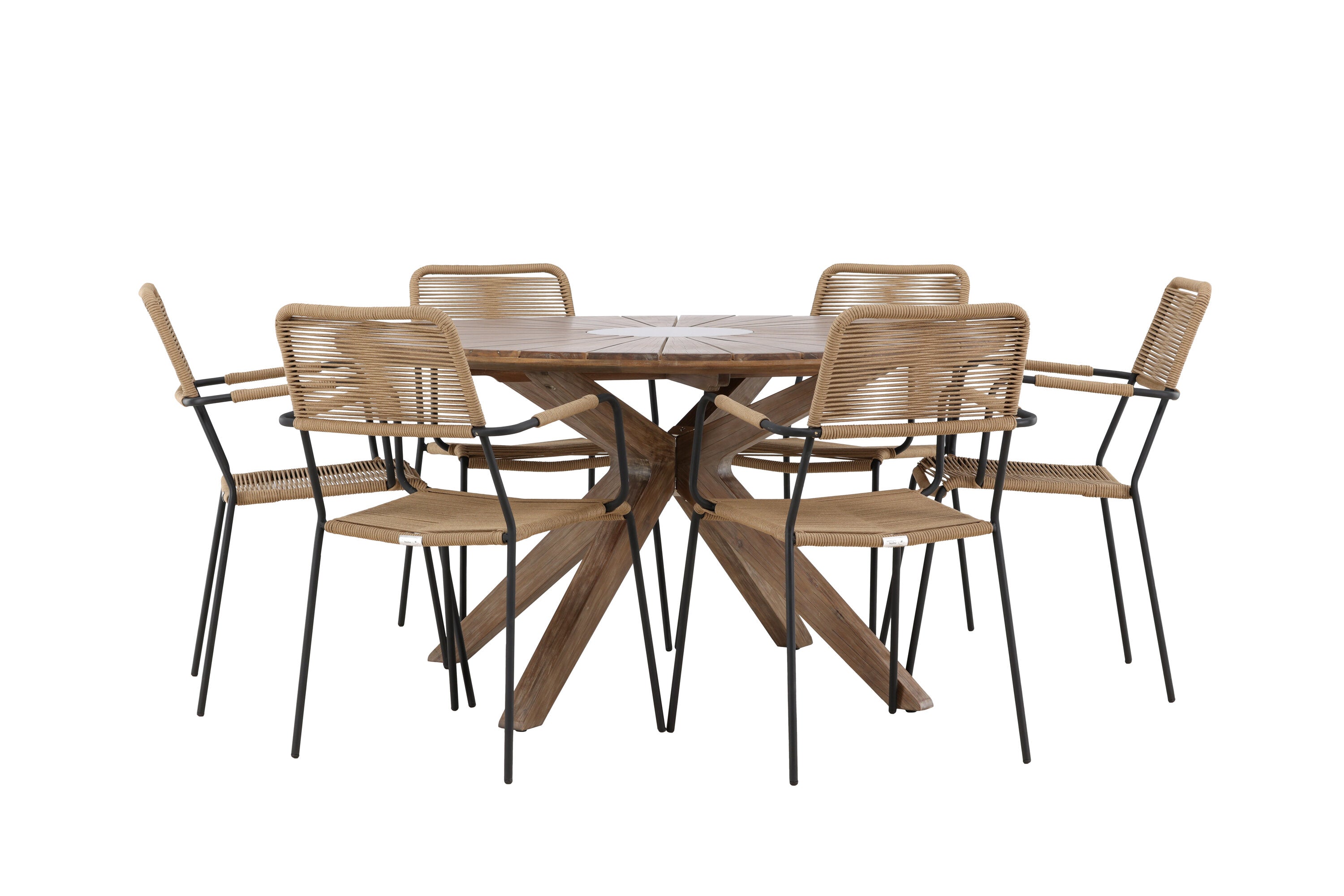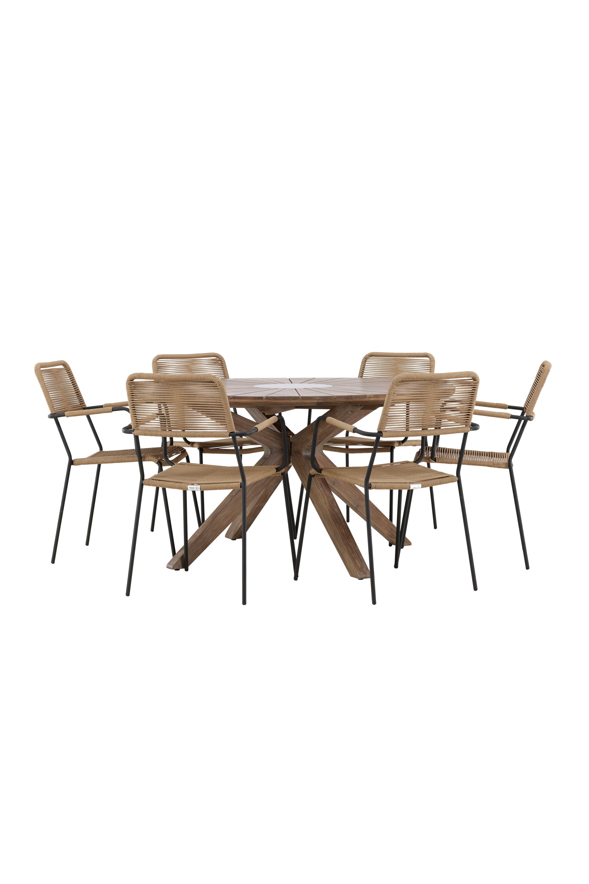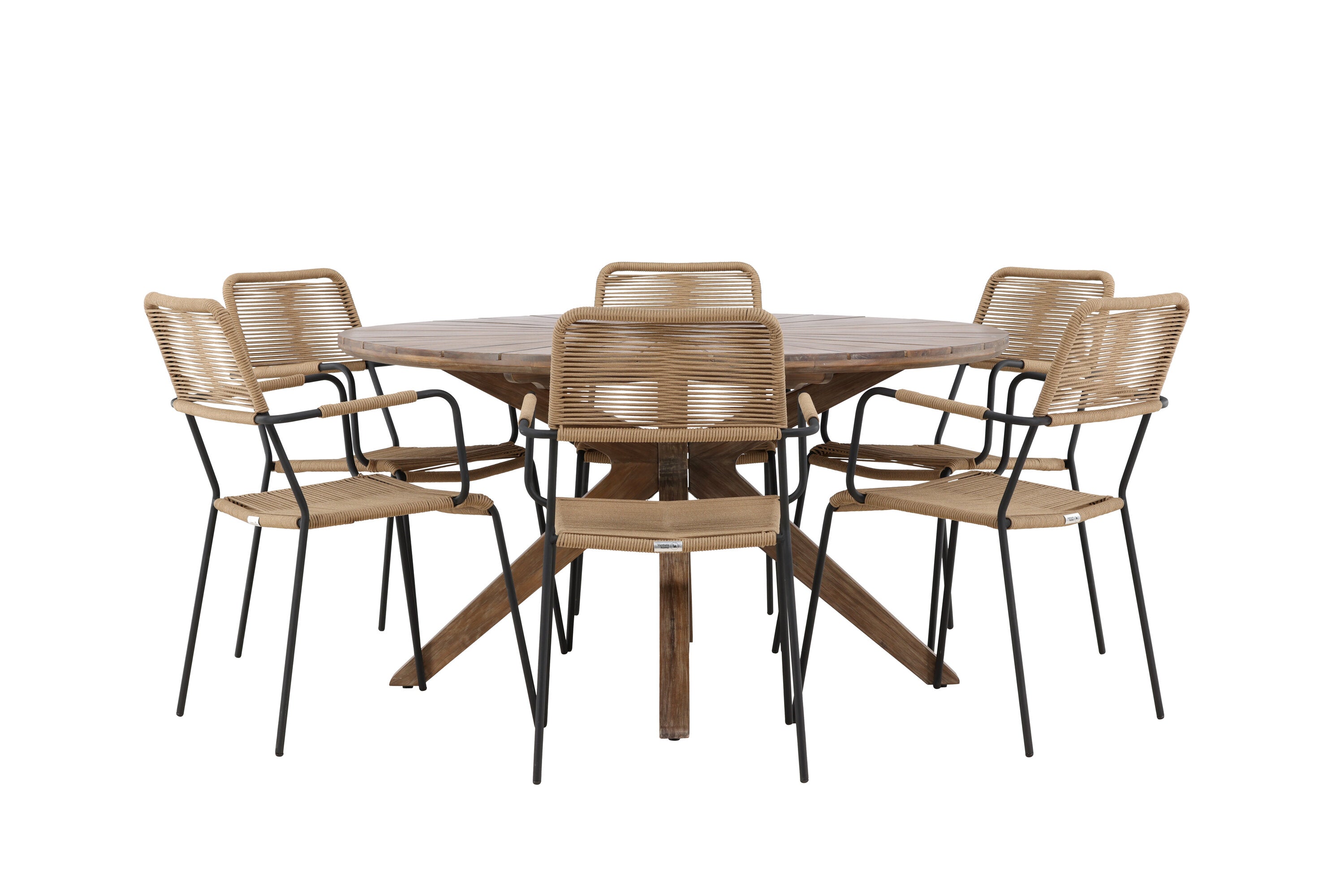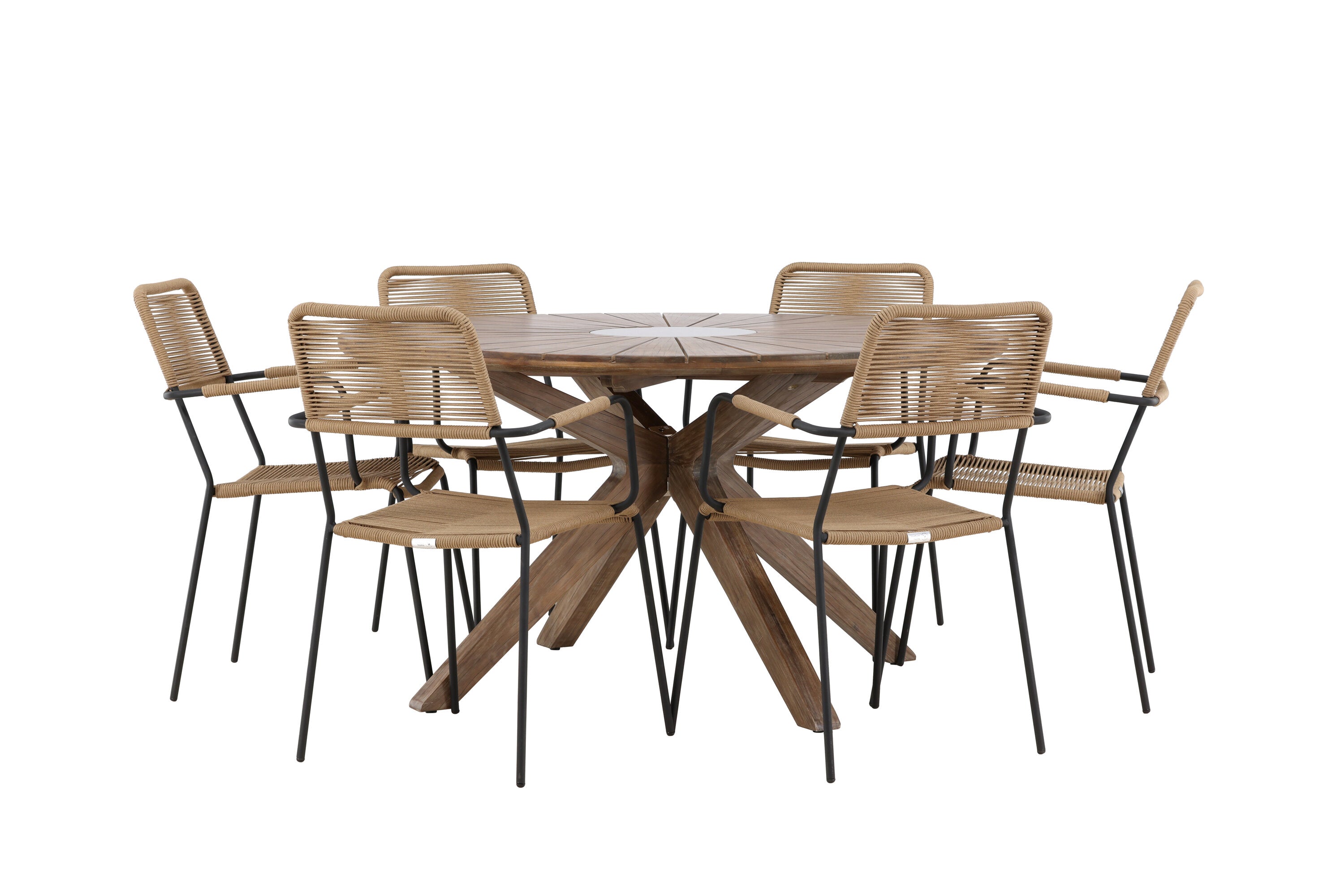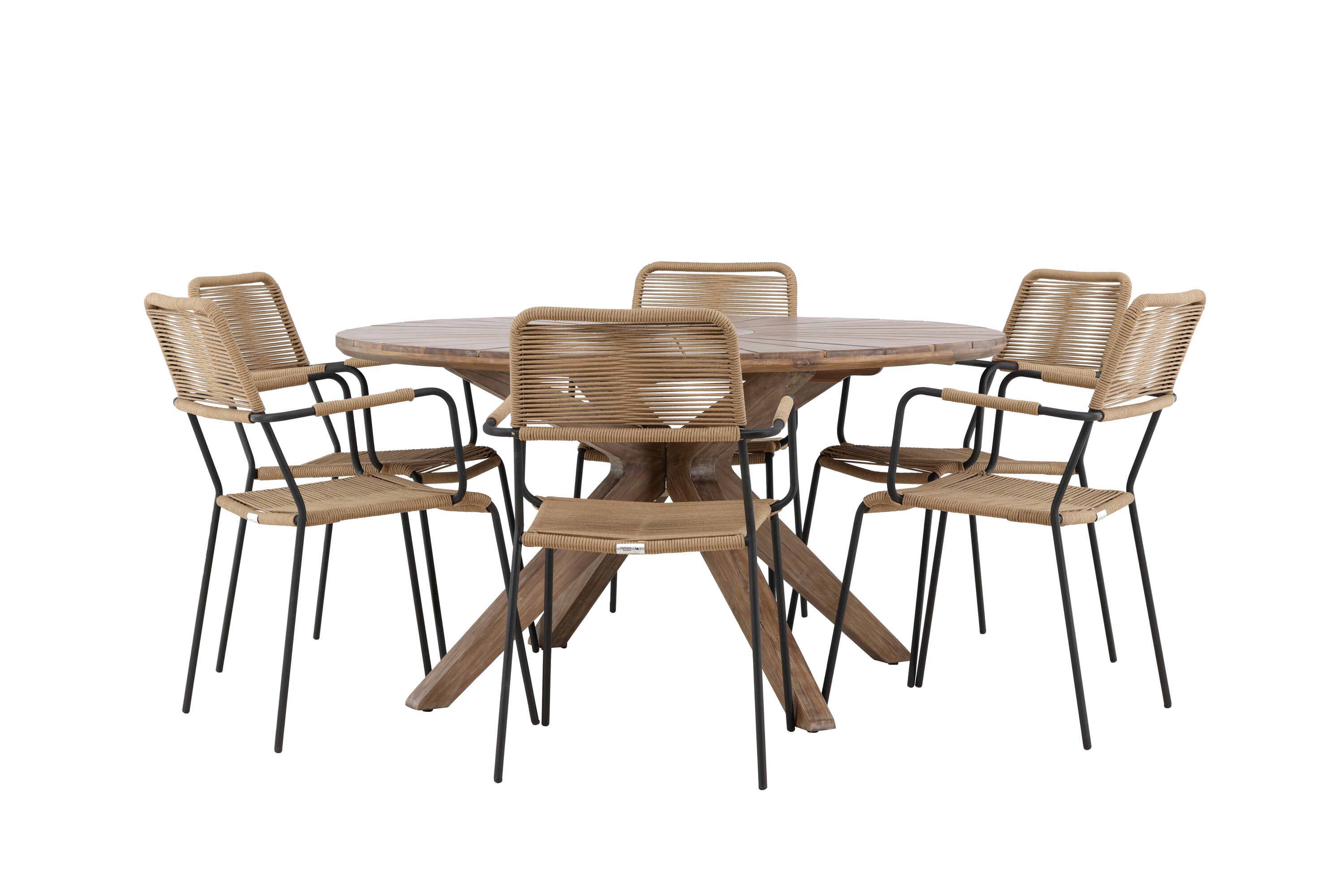 Rosario Jídelní stůl - Teak Ø140 +Lindos - Křeslo - Black Alu / Latte Latte _6