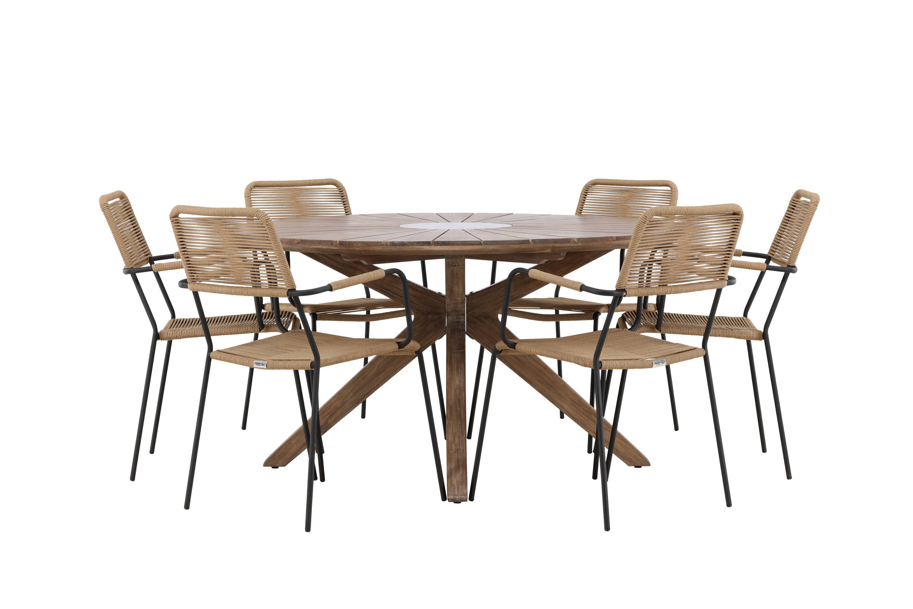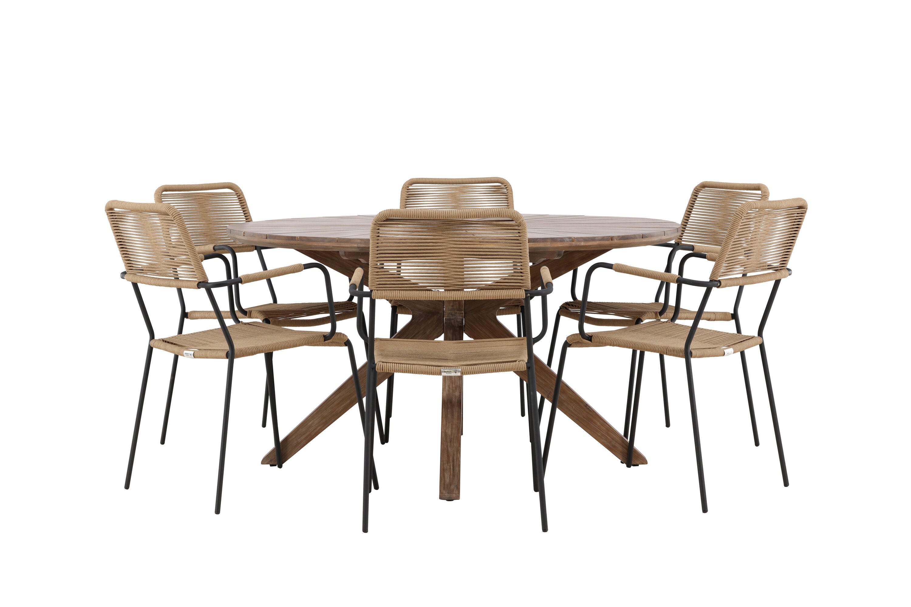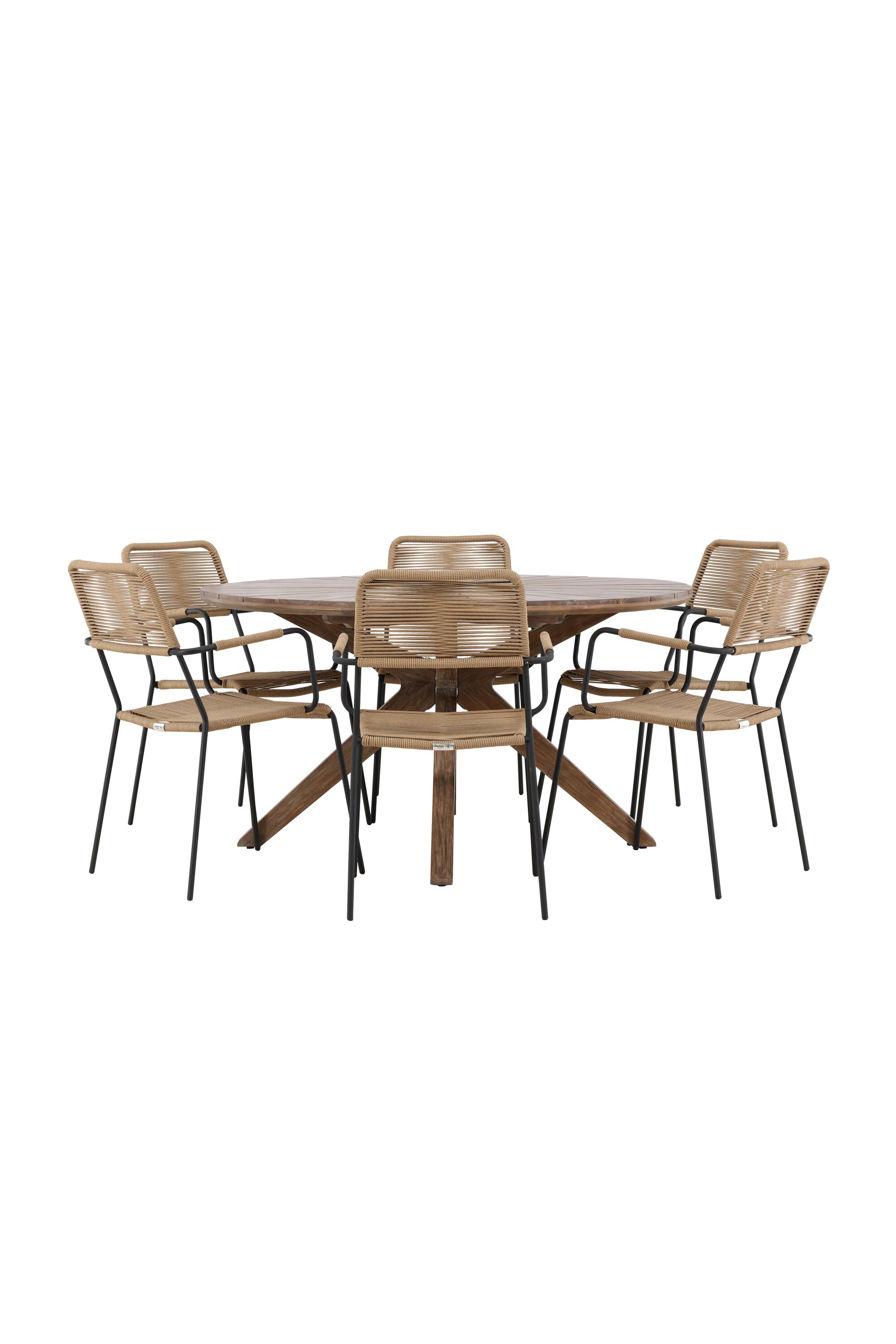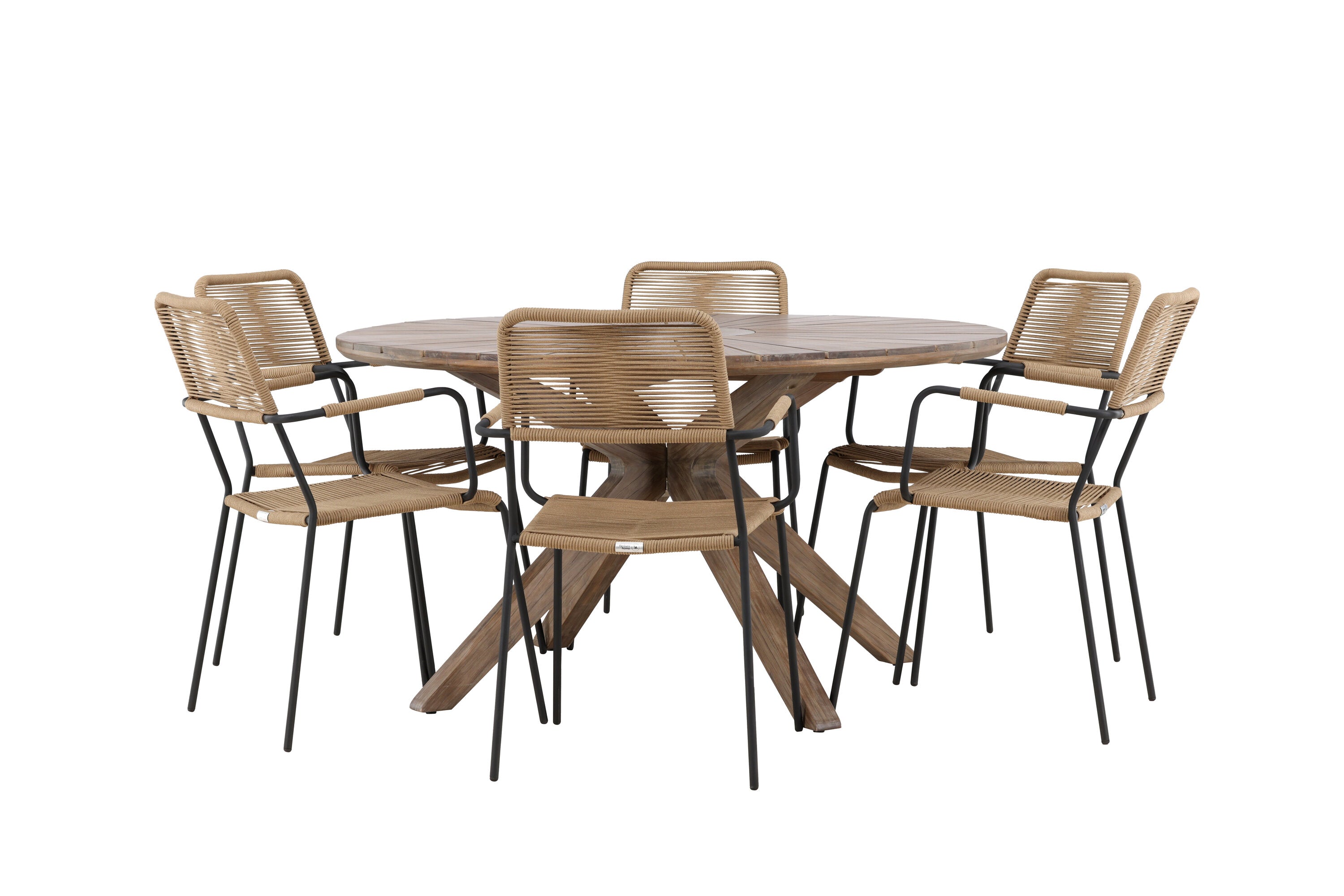 Rosario Jídelní stůl - Teak Ø140 +Lindos - Křeslo - Black Alu / Latte Latte _6