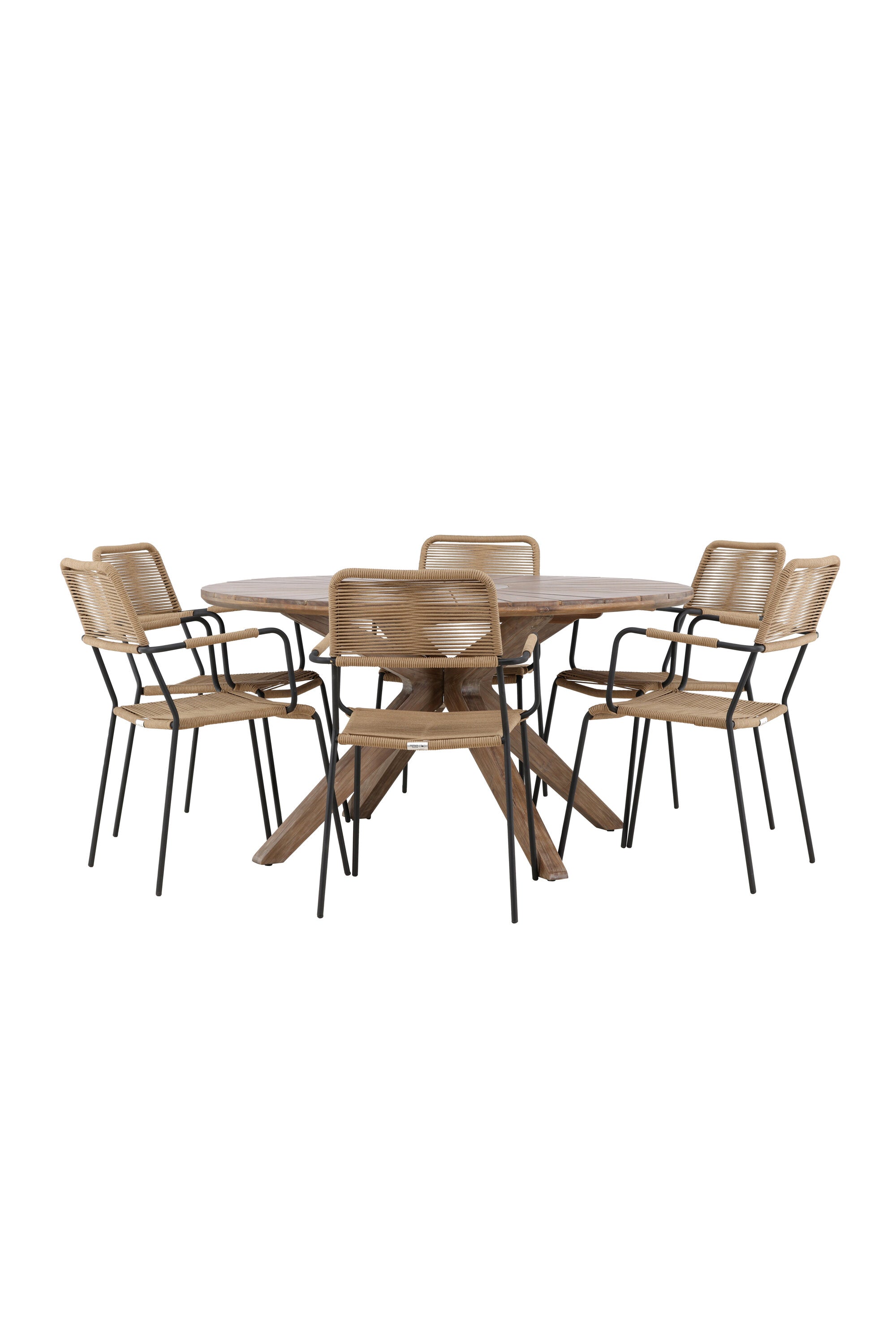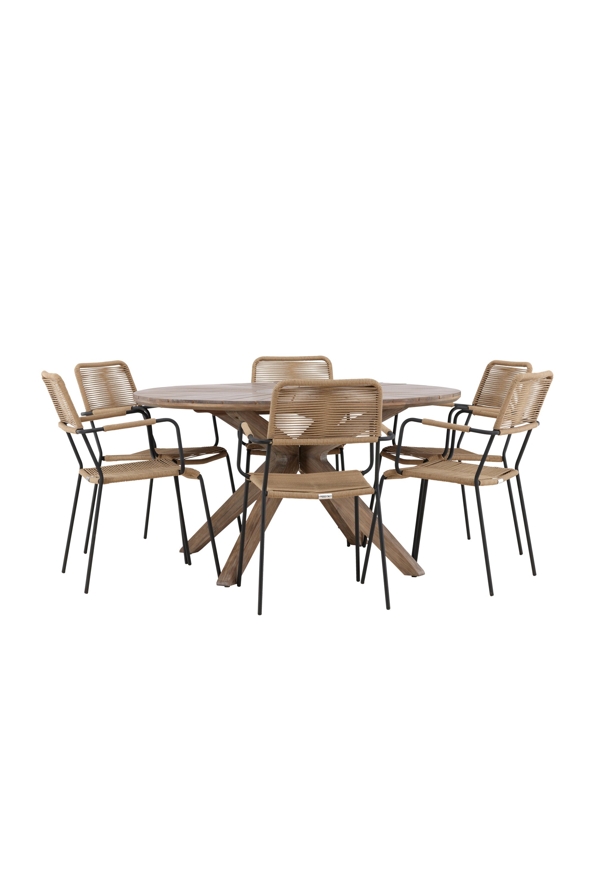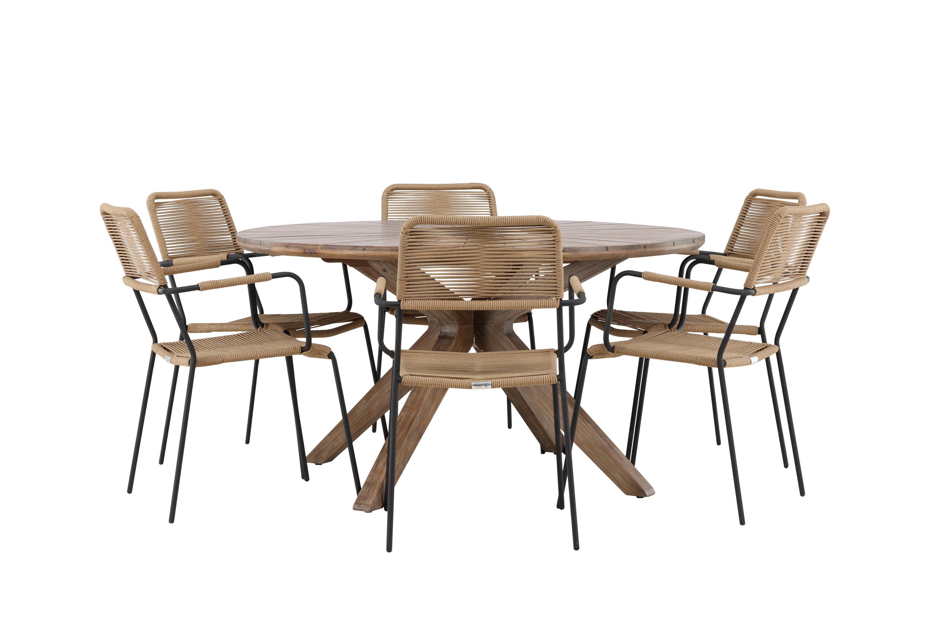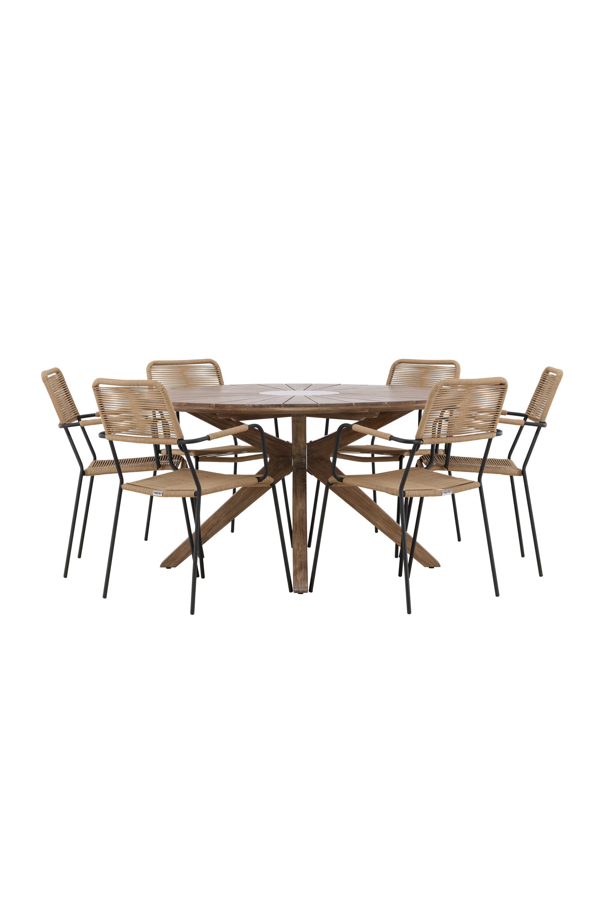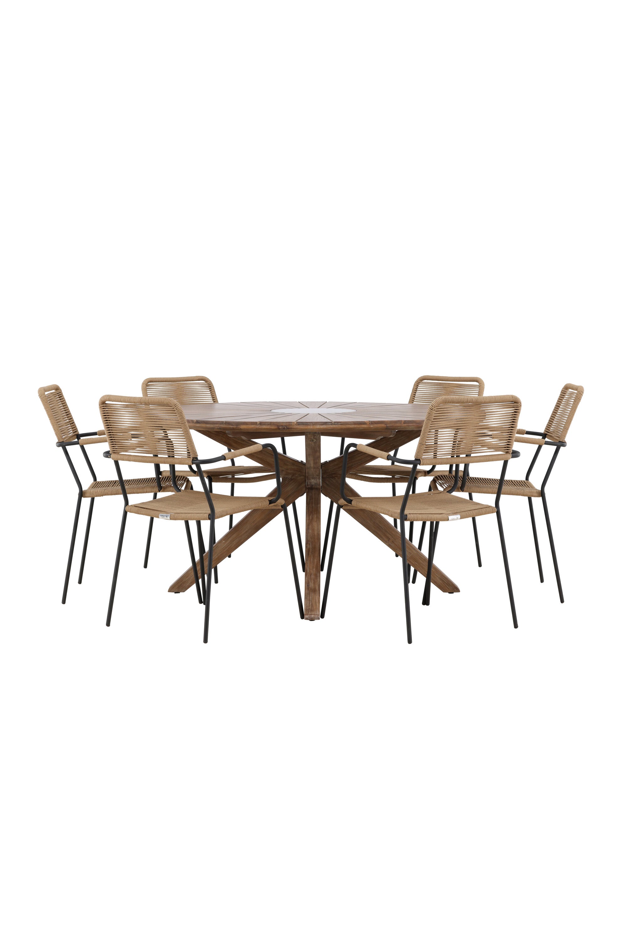 Rosario Jídelní stůl - Teak Ø140 +Lindos - Křeslo - Black Alu / Latte Latte _6