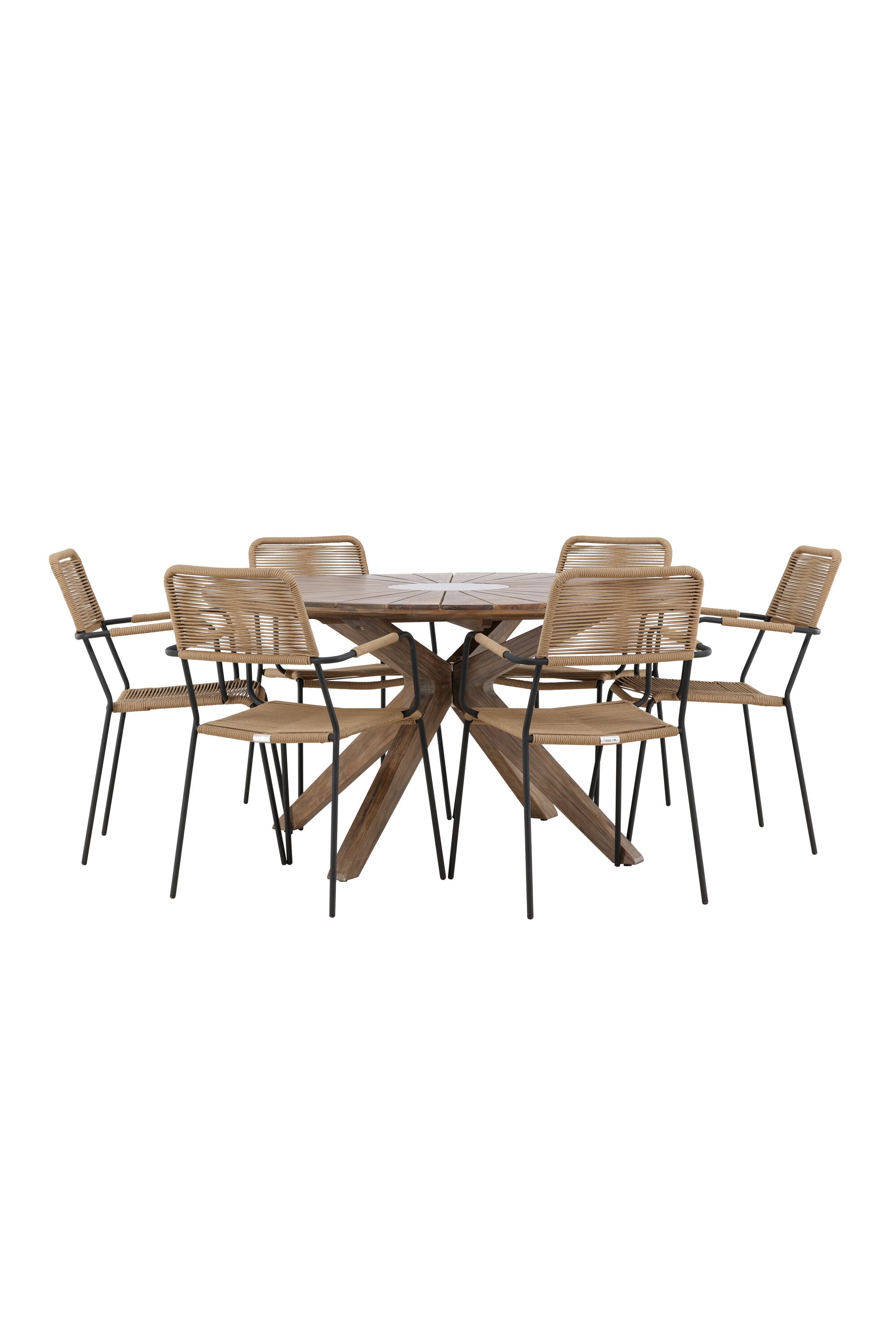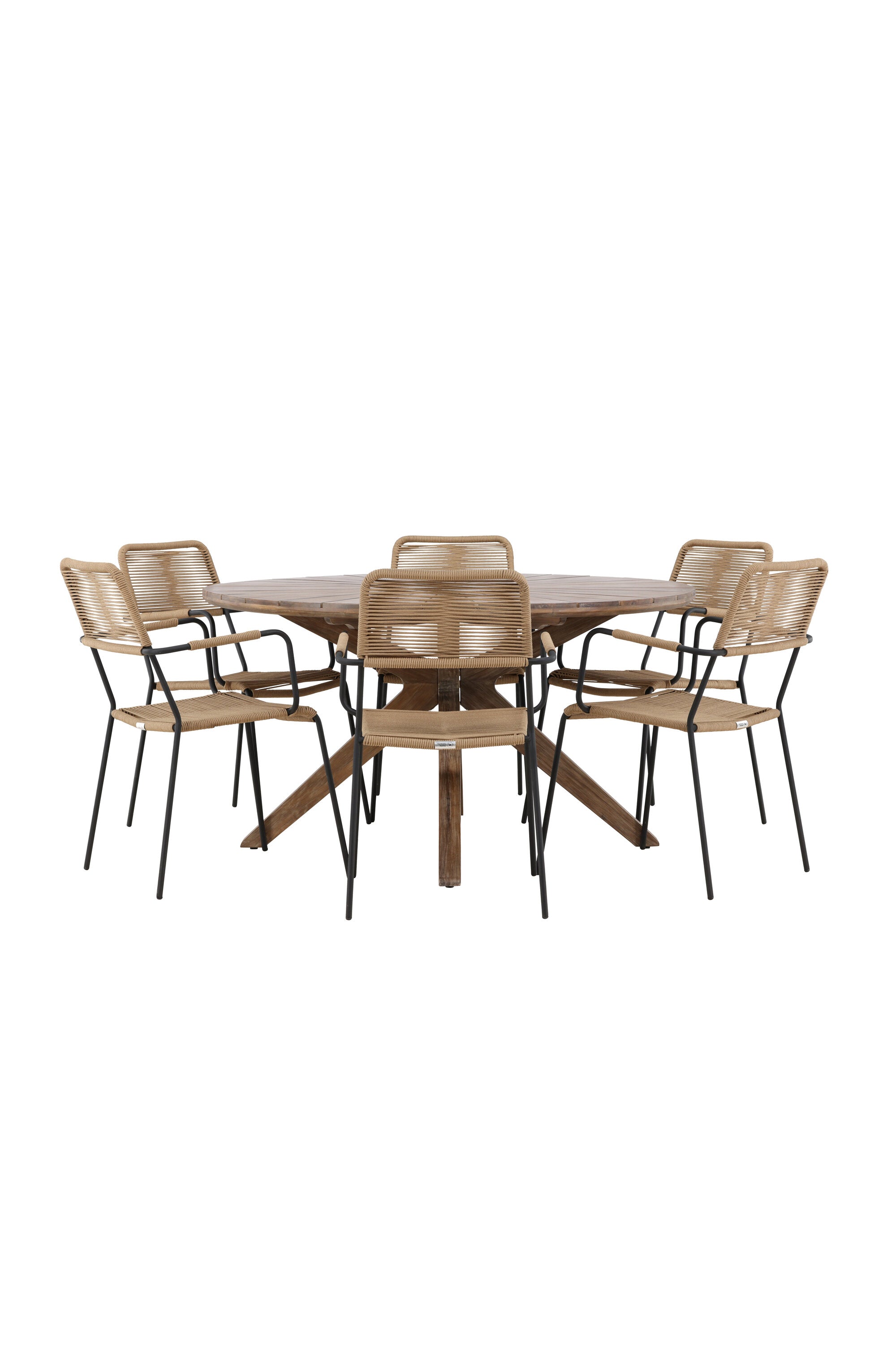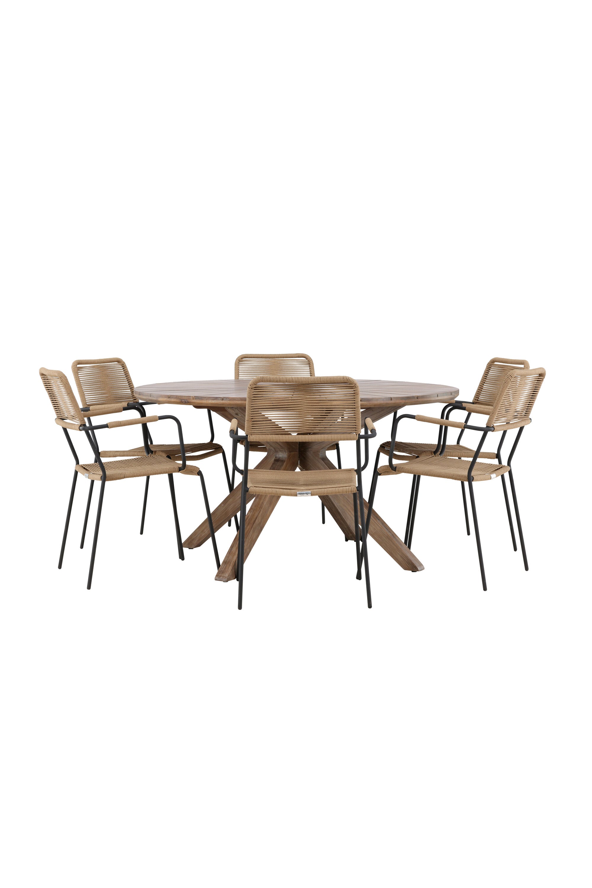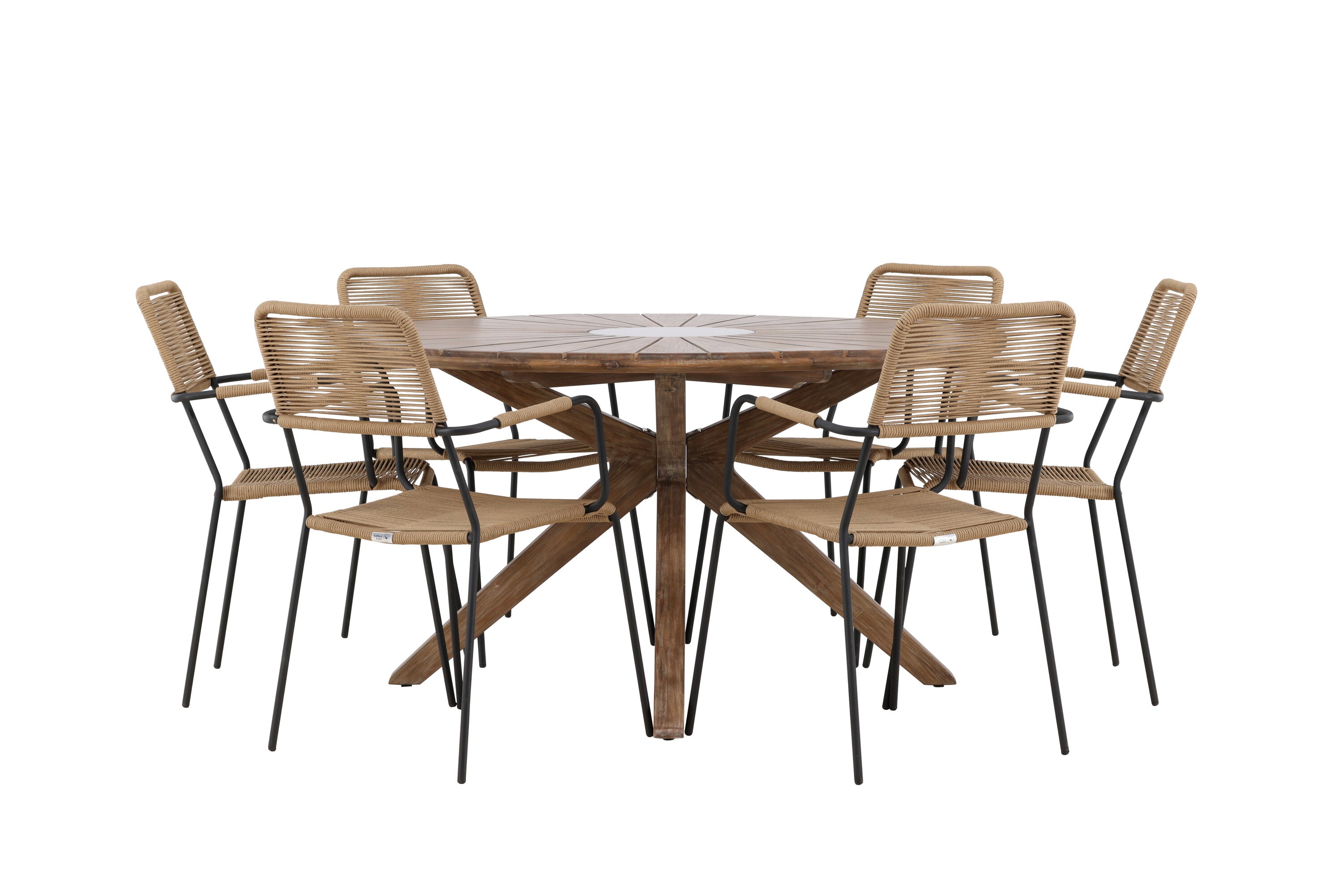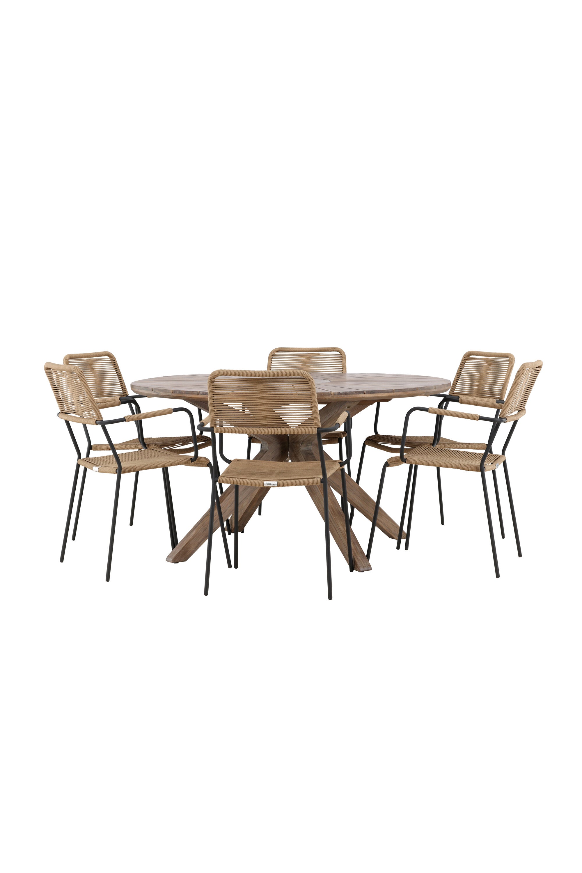 Rosario Jídelní stůl - Teak Ø140 +Lindos - Křeslo - Black Alu / Latte Latte _6