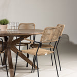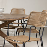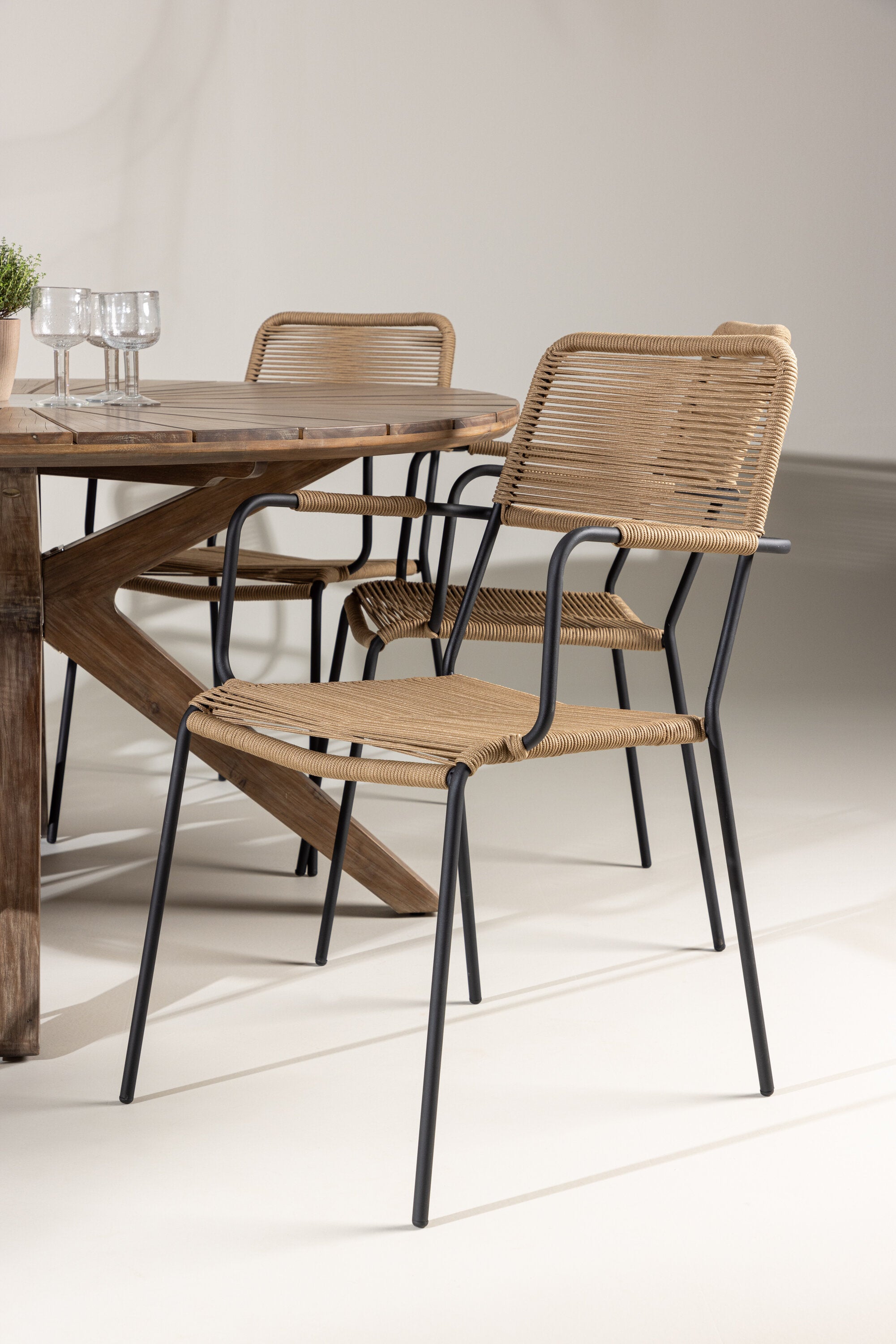 Židle Lindos se svými hnědými lanovými sedadly a černými ocelovými rámy nabízejí moderní vzhled. Jejich elegantní design plynule splyne s okolím a vytvoří harmonický základ pro vaše venkovní stolování.