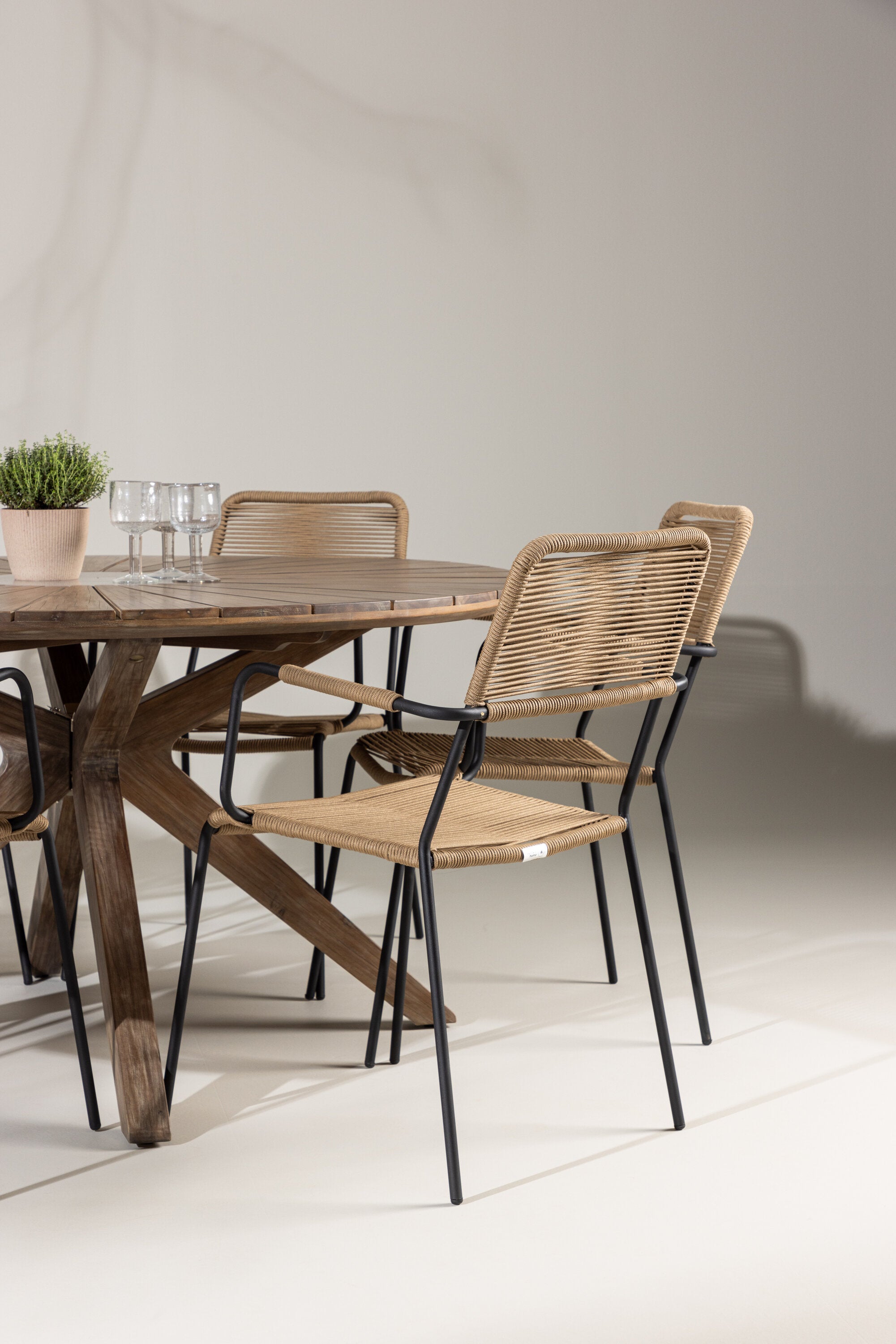 Objevte dokonalou kombinaci stylu a funkčnosti s naší exkluzivní jídelní sadou. Přivítejte židle Lindos a elegantní stůl Rosario ve svém venkovním prostoru pro působivou a promyšlenou atmosféru.