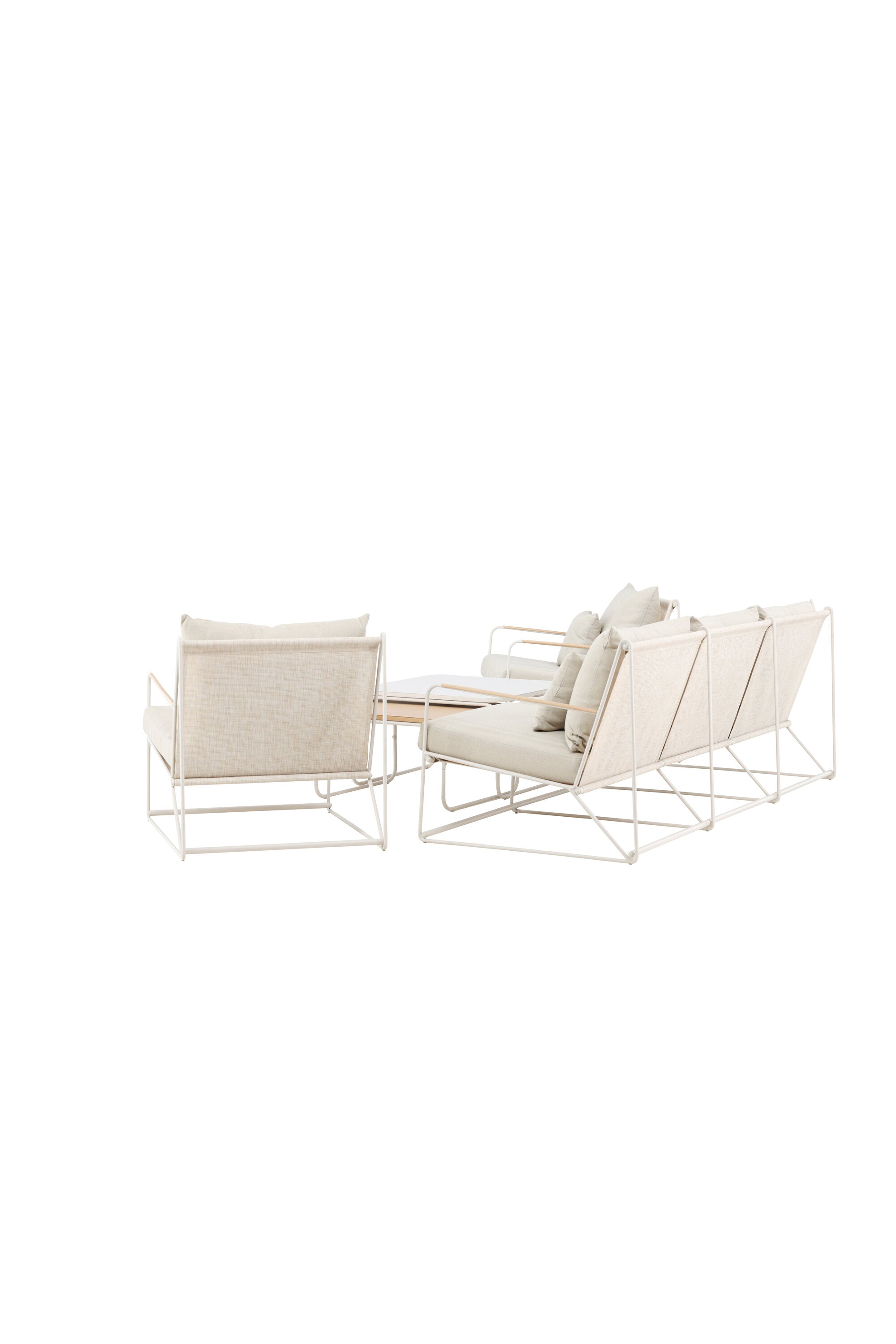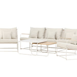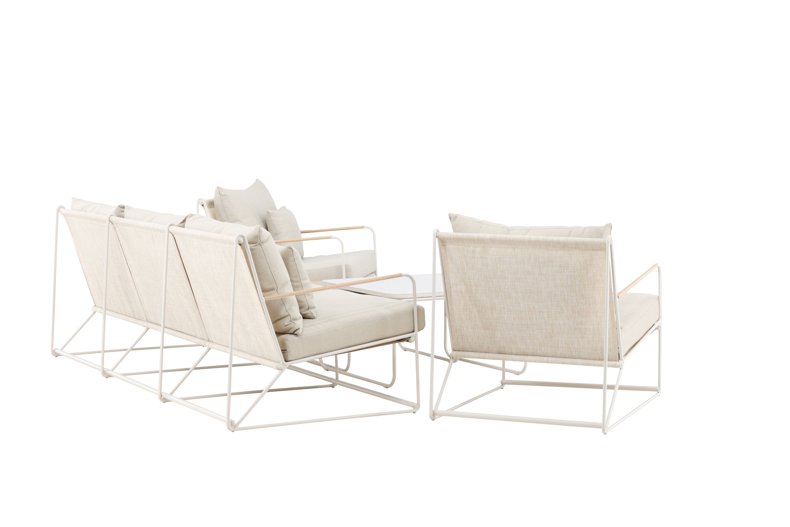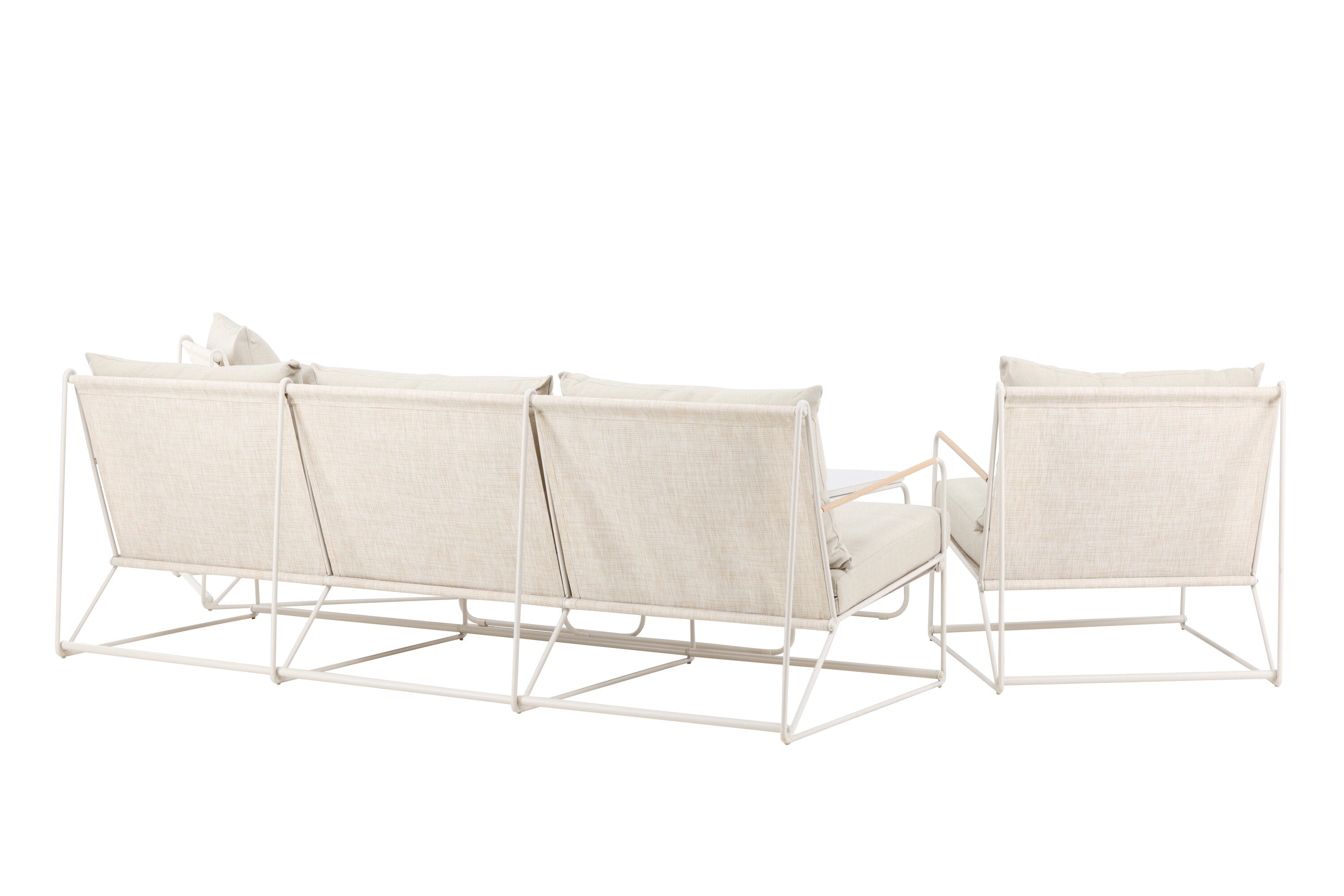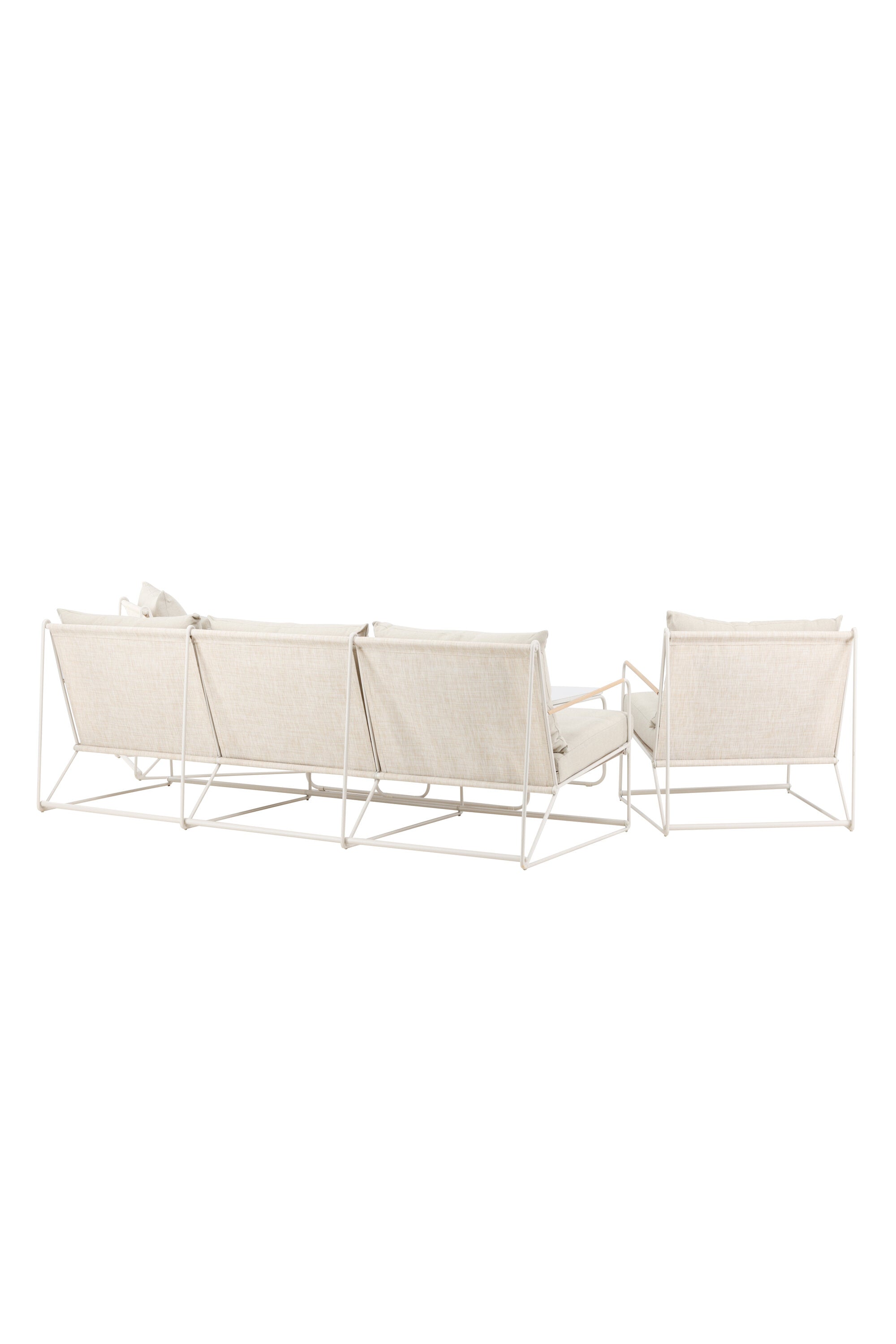 Sedací souprava Palazzo je elegantní a elegantní skupina venkovního nábytku, která dodá vaší terase luxusní atmosféru. Se dvěma pohodlnými křesly, prostornou pohovkou a odpovídajícím stolem je tato sada navržena tak, aby vytvořila příjemné místo pro setkání a užívání si teplých letních dnů. Pevný béžový ocelový rám poskytuje stabilitu a moderní vzhled, zatímco polštáře v jemném béžovém odstínu dodávají pohodlí i estetiku. Polštáře jsou vyrobeny z odolného textilu a polyesteru, takže jsou ideální pro venkovní použití a snadno se udržují. Sedací souprava Palazzo spojuje formu a funkci způsobem, který pozvedne vaši terasu do nových výšin.