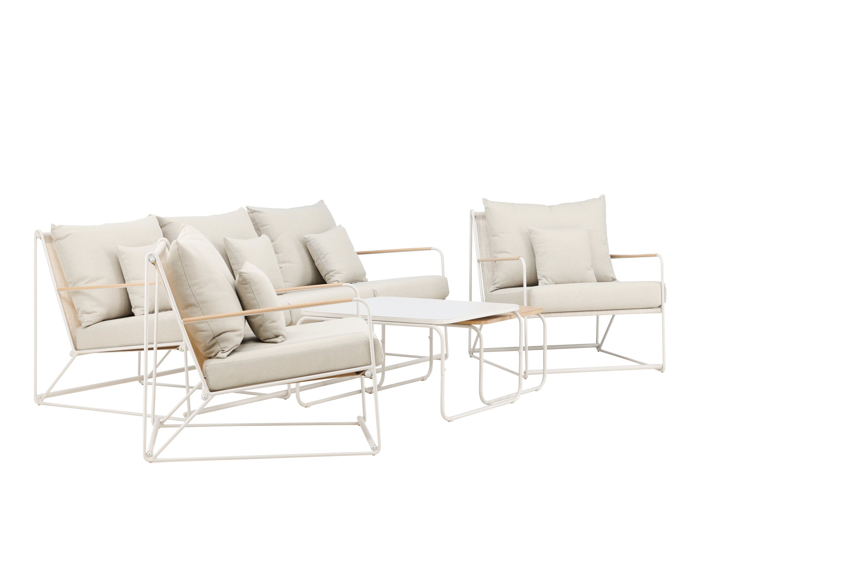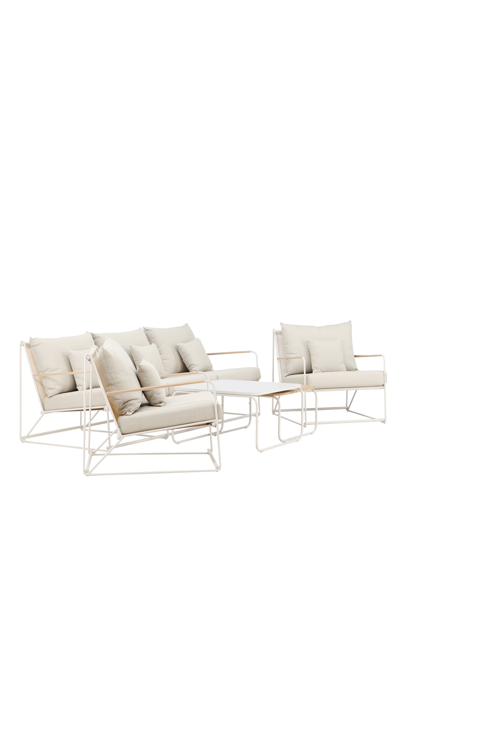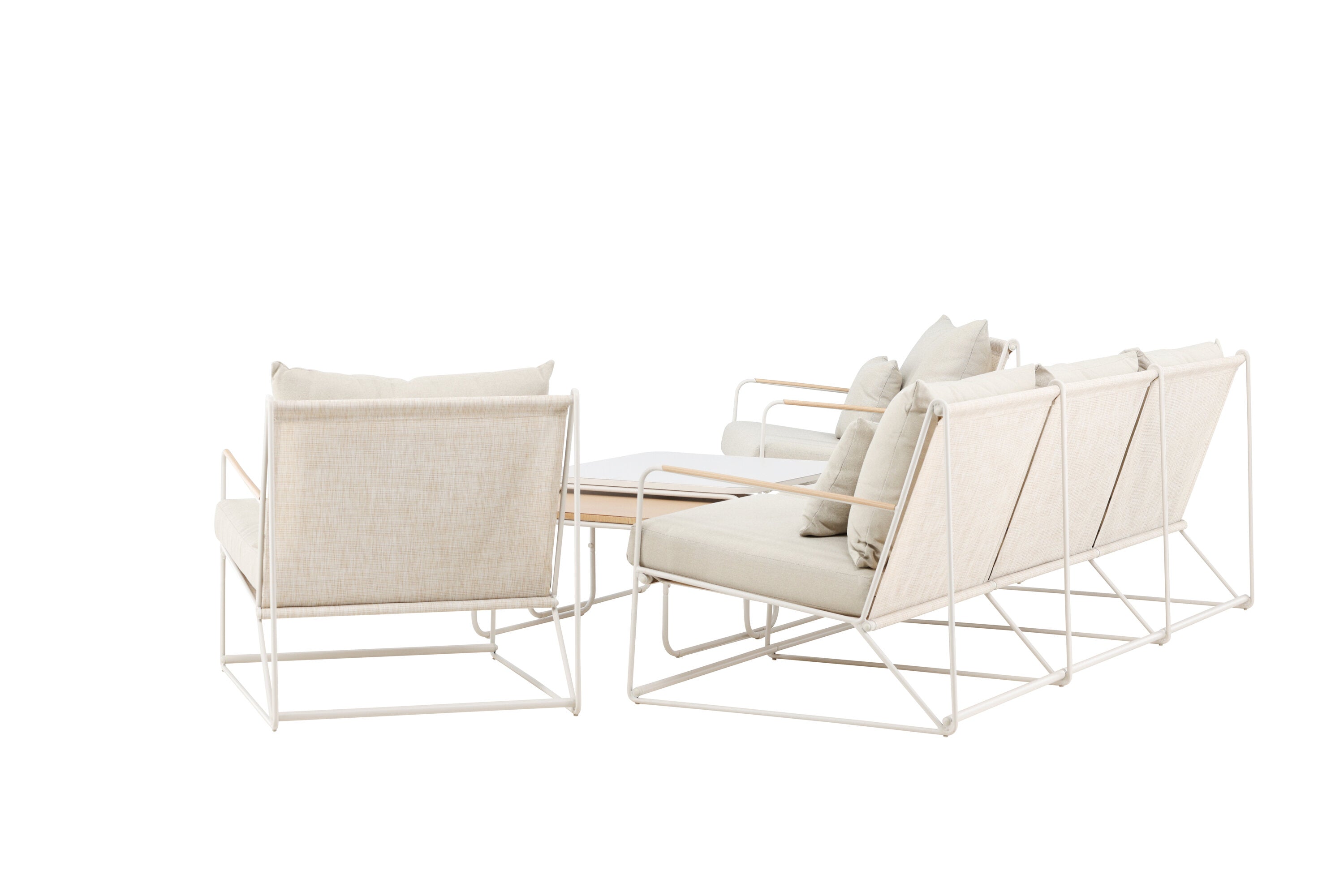 Sedací souprava Palazzo je elegantní a elegantní skupina venkovního nábytku, která dodá vaší terase luxusní atmosféru. Se dvěma pohodlnými křesly, prostornou pohovkou a odpovídajícím stolem je tato sada navržena tak, aby vytvořila příjemné místo pro setkání a užívání si teplých letních dnů. Pevný béžový ocelový rám poskytuje stabilitu a moderní vzhled, zatímco polštáře v jemném béžovém odstínu dodávají pohodlí i estetiku. Polštáře jsou vyrobeny z odolného textilu a polyesteru, takže jsou ideální pro venkovní použití a snadno se udržují. Sedací souprava Palazzo spojuje formu a funkci způsobem, který pozvedne vaši terasu do nových výšin.