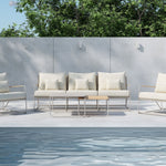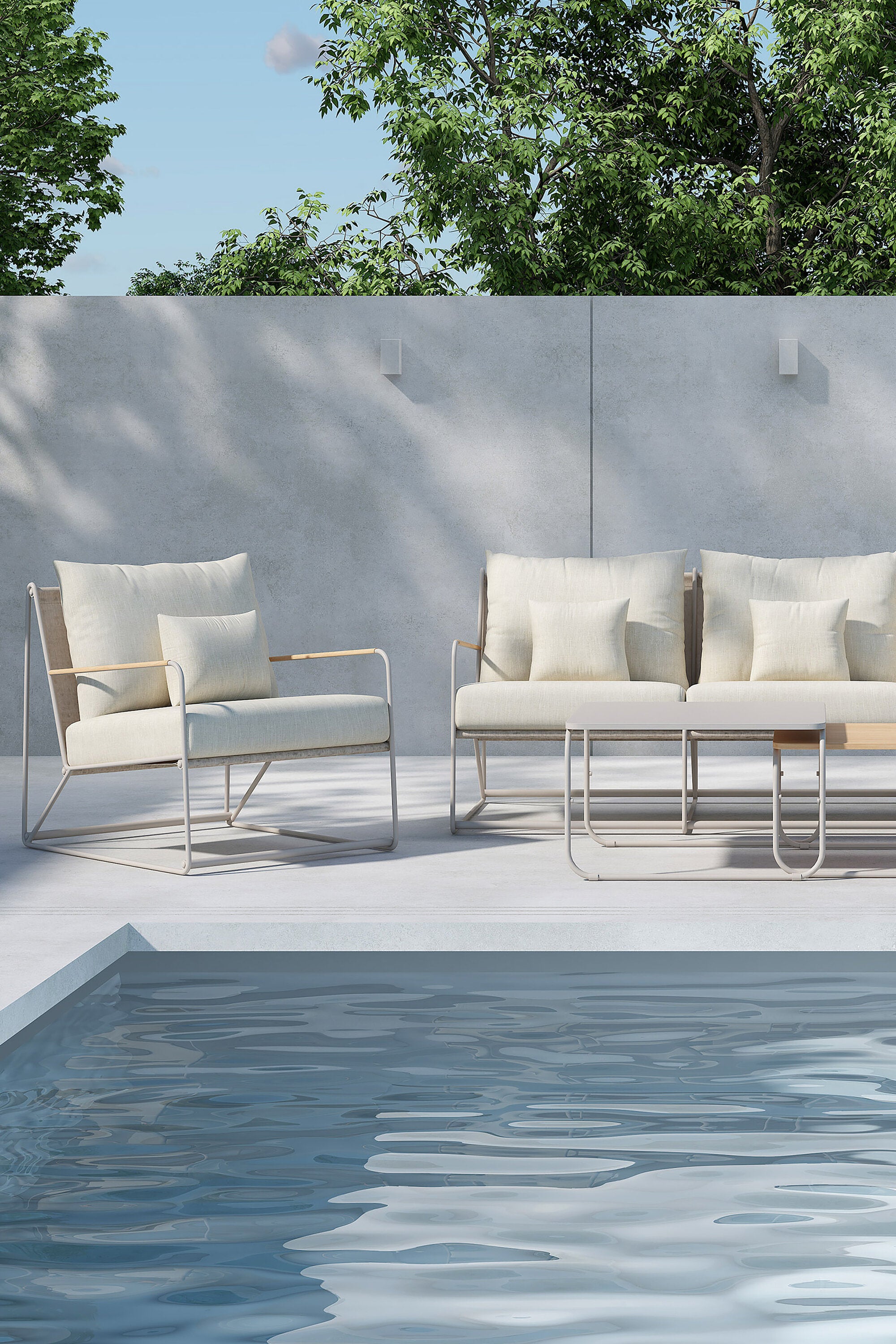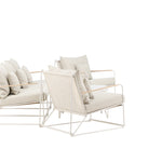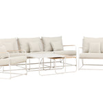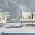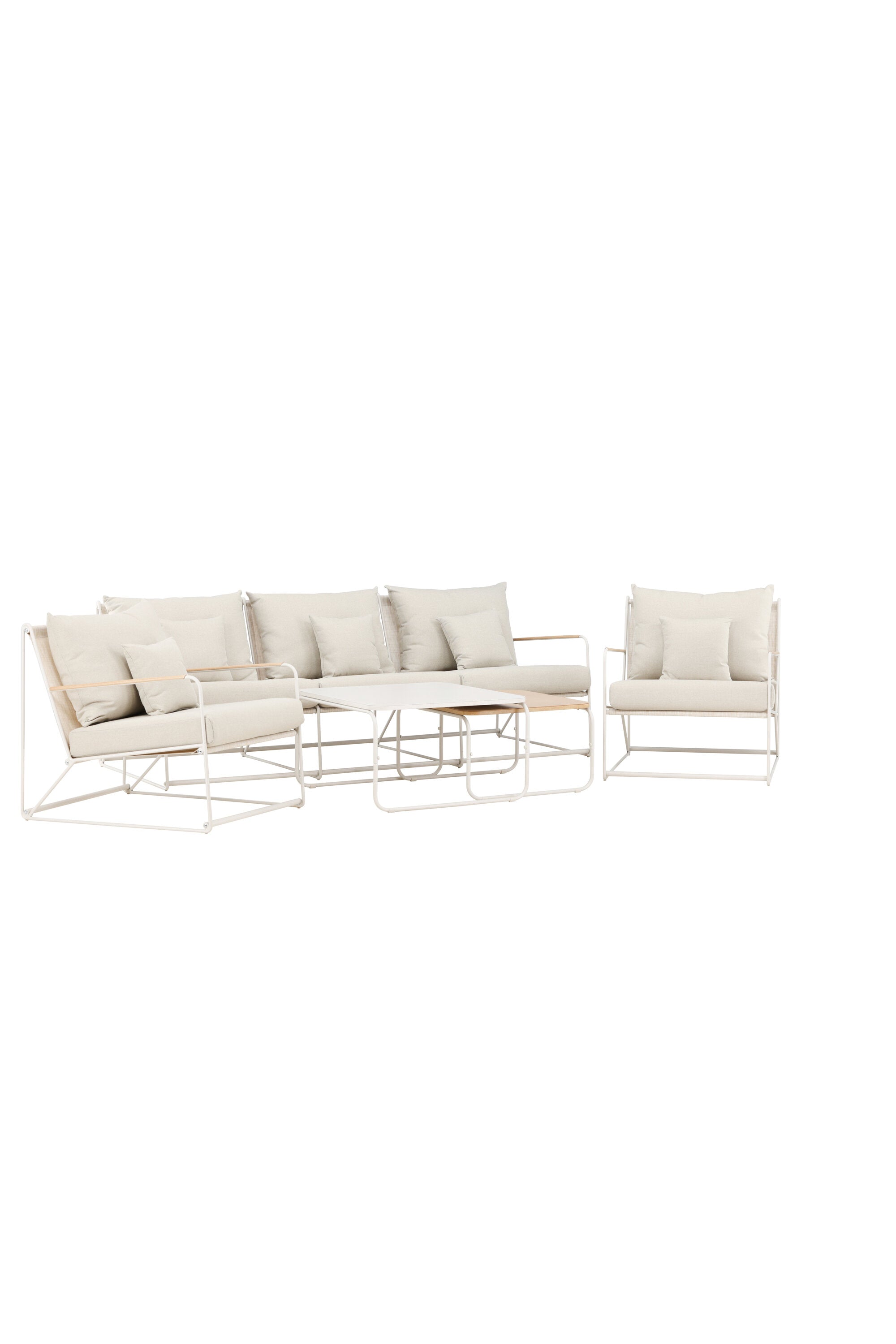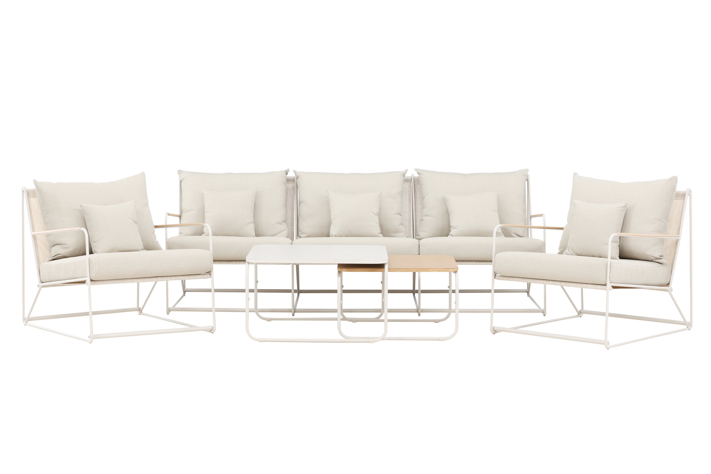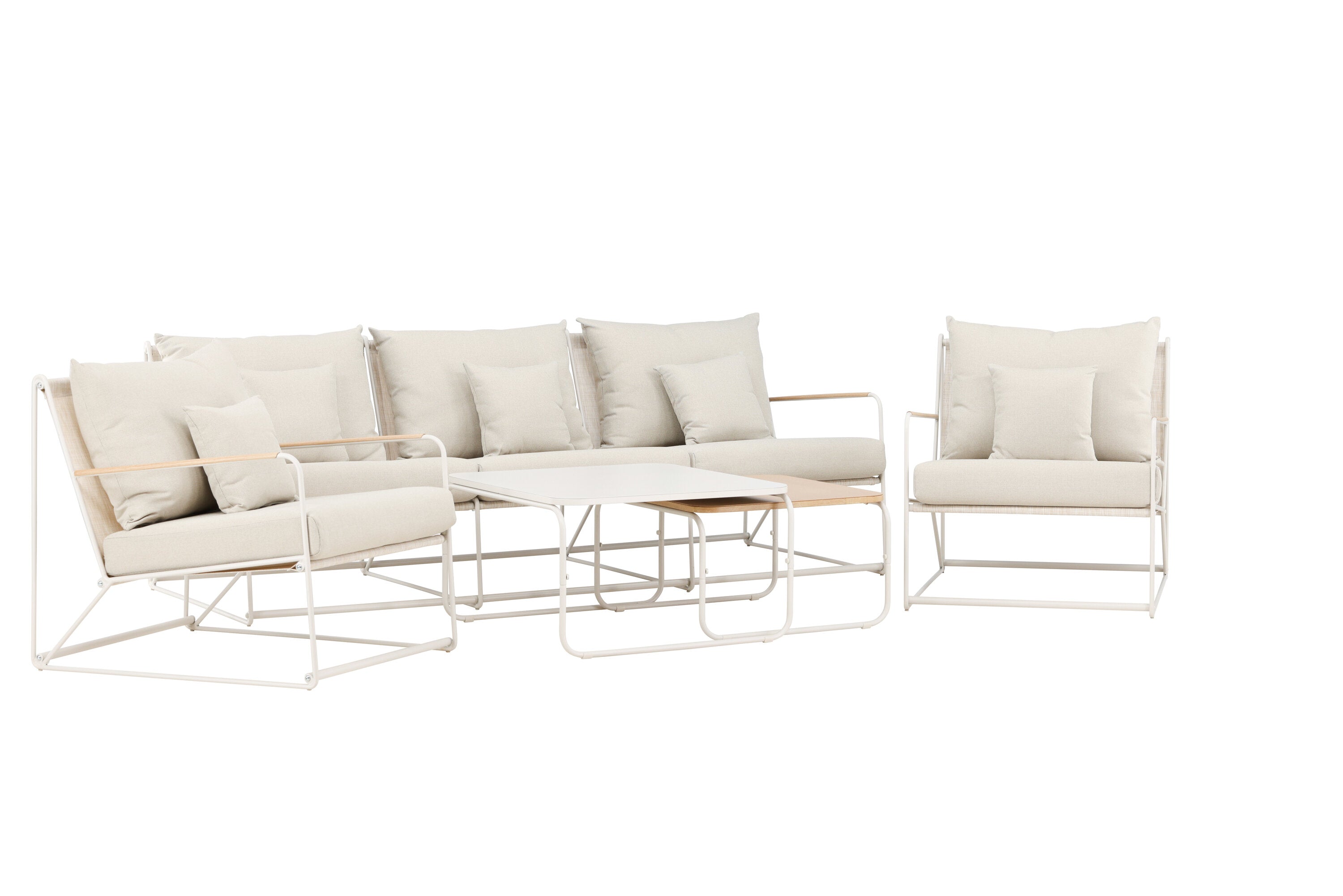 Sedací souprava Palazzo je elegantní a elegantní skupina venkovního nábytku, která dodá vaší terase luxusní atmosféru. Se dvěma pohodlnými křesly, prostornou pohovkou a odpovídajícím stolem je tato sada navržena tak, aby vytvořila příjemné místo pro setkání a užívání si teplých letních dnů. Pevný béžový ocelový rám poskytuje stabilitu a moderní vzhled, zatímco polštáře v jemném béžovém odstínu dodávají pohodlí i estetiku. Polštáře jsou vyrobeny z odolného textilu a polyesteru, takže jsou ideální pro venkovní použití a snadno se udržují. Sedací souprava Palazzo spojuje formu a funkci způsobem, který pozvedne vaši terasu do nových výšin.