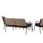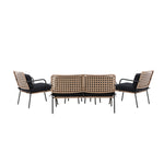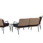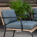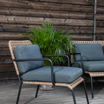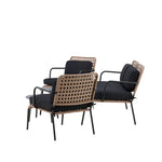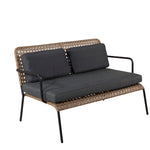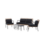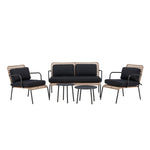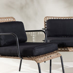 Sedací souprava Paola - Černá ocel / přírodní proutí / černý polštář