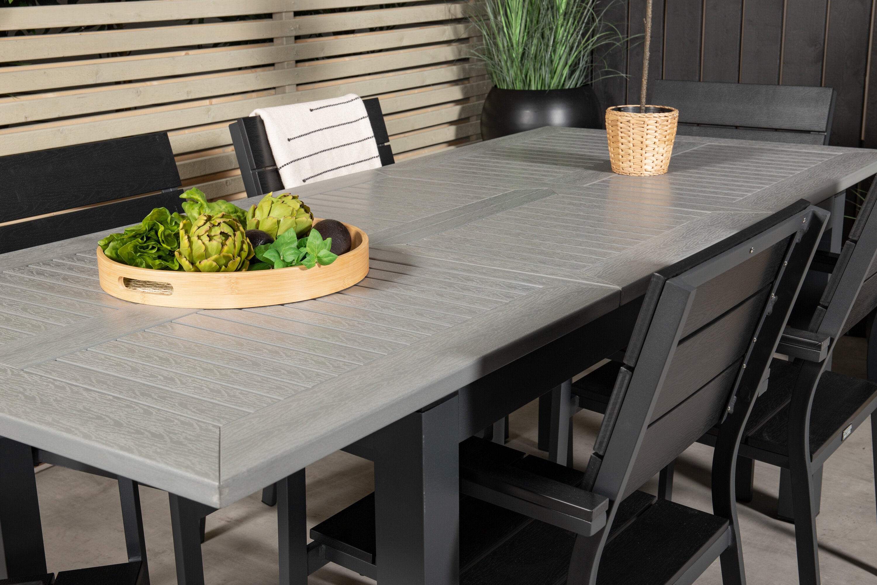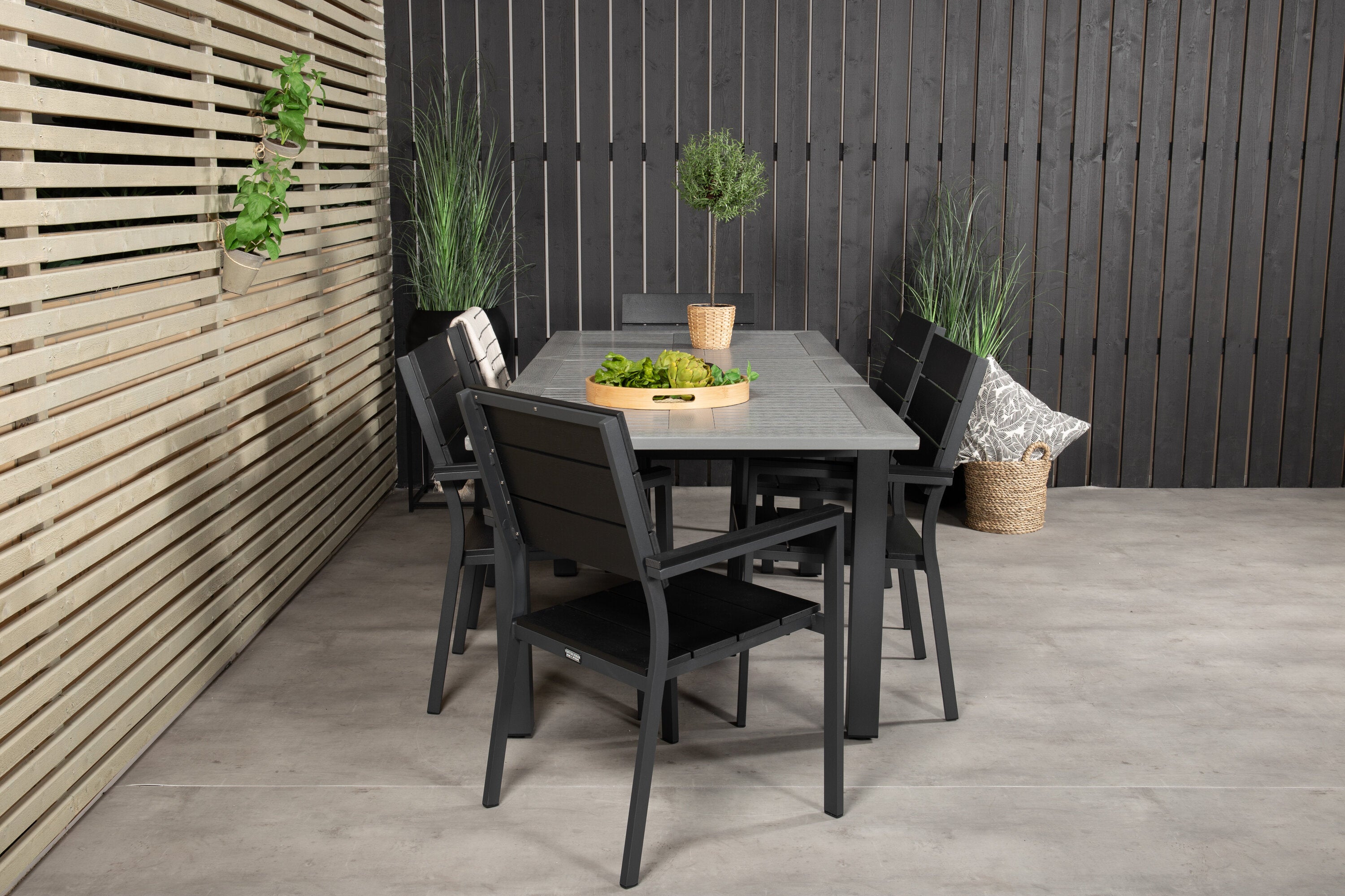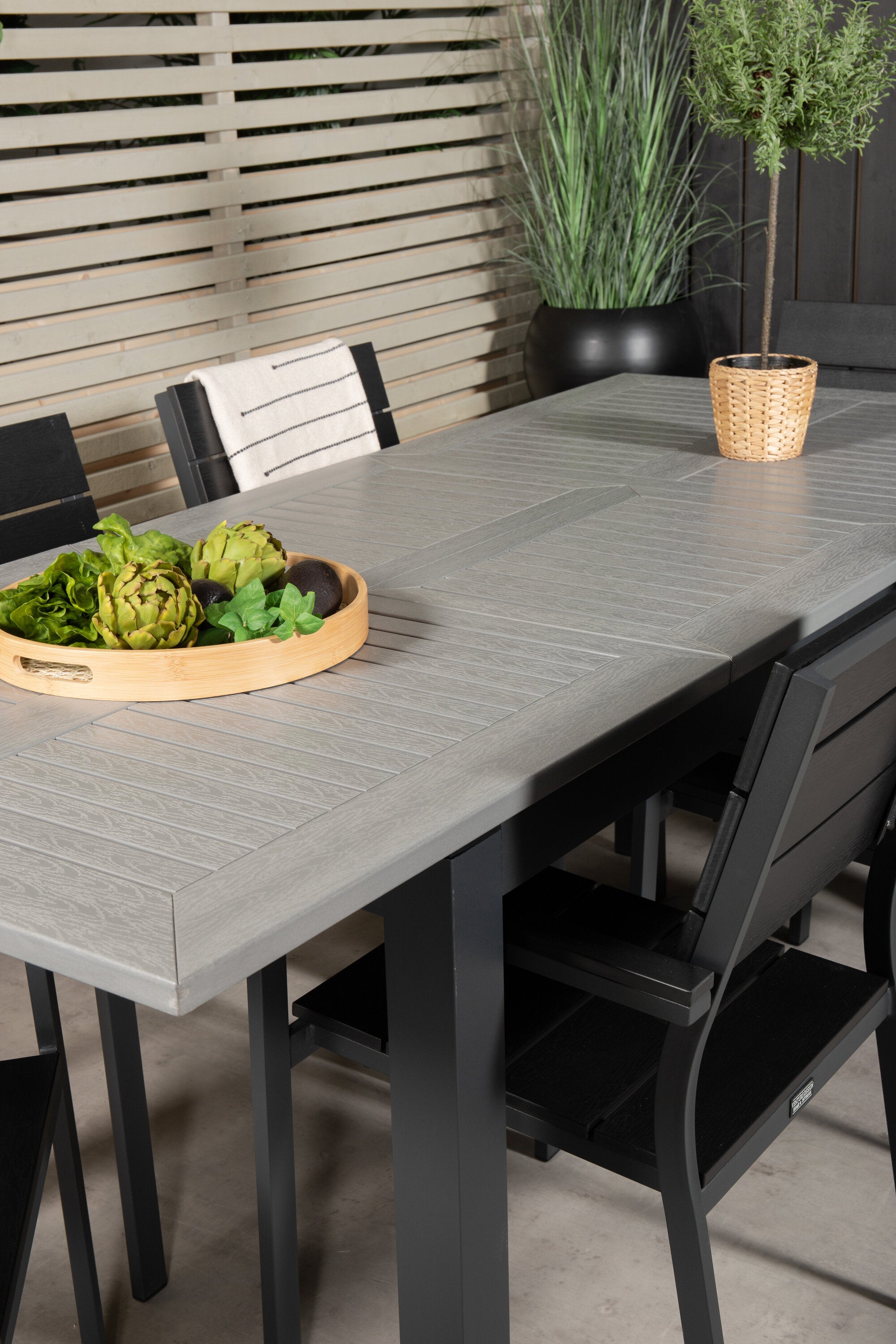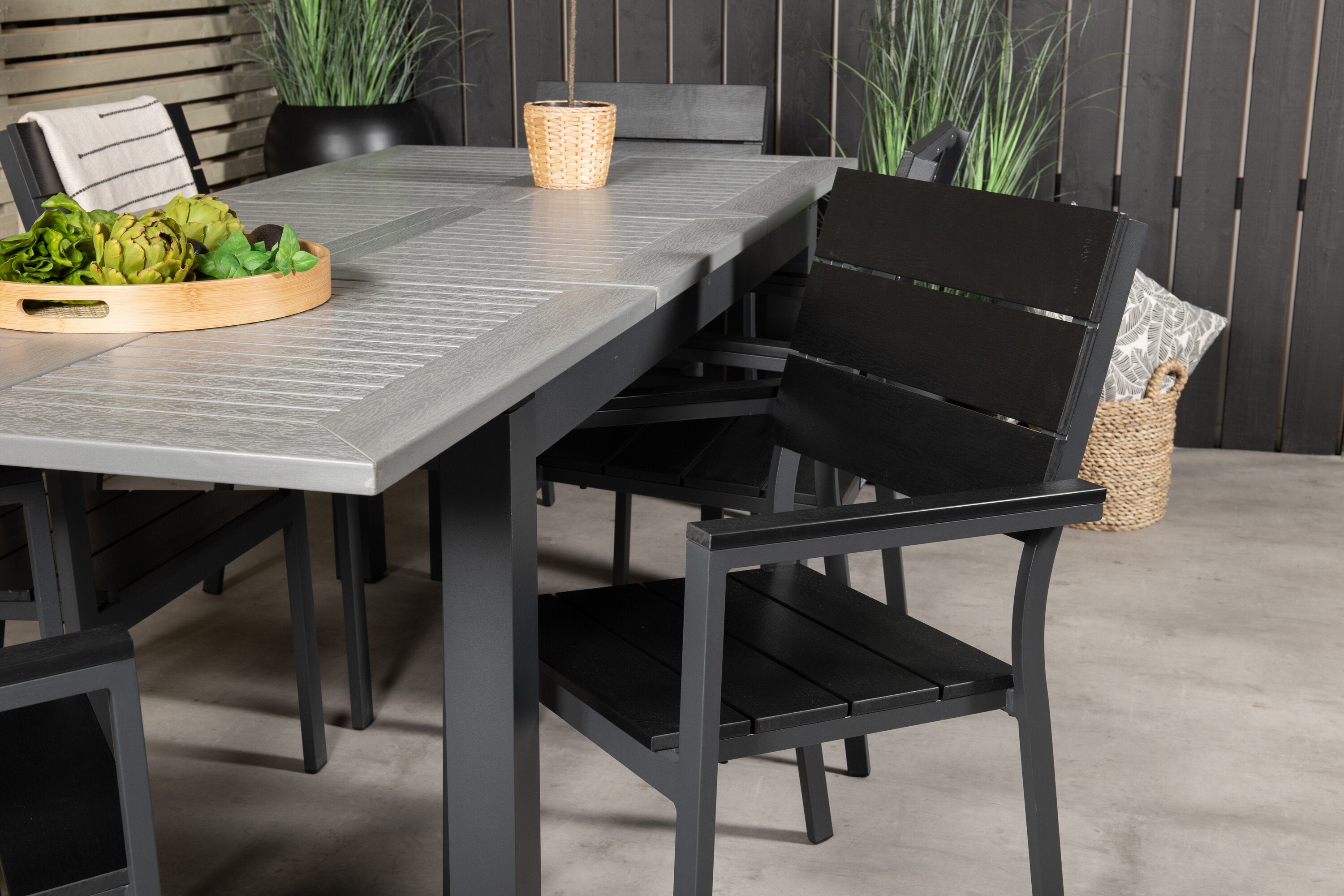 Stůl Albany - 152/210 - Černá/šedá - Židle Levels (stohovatelná) - Black Alu / Black Aintwood 6