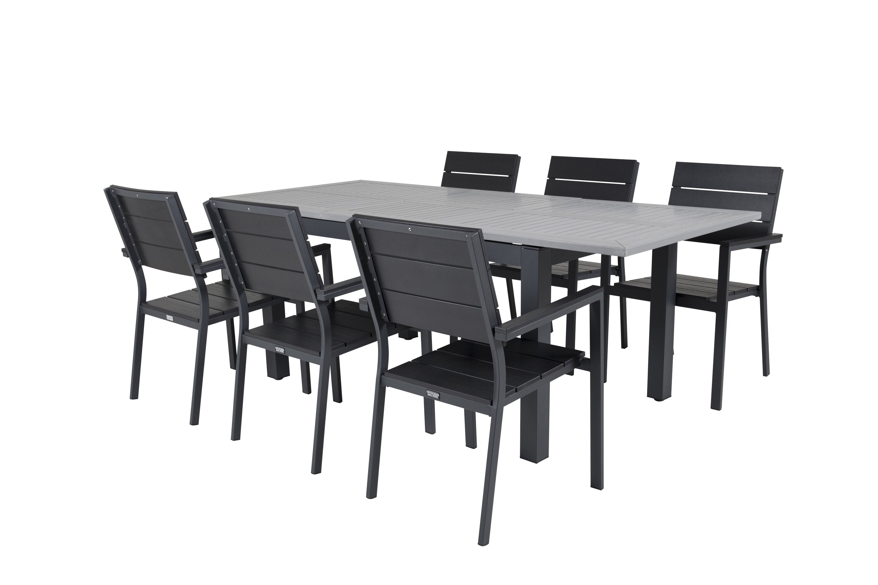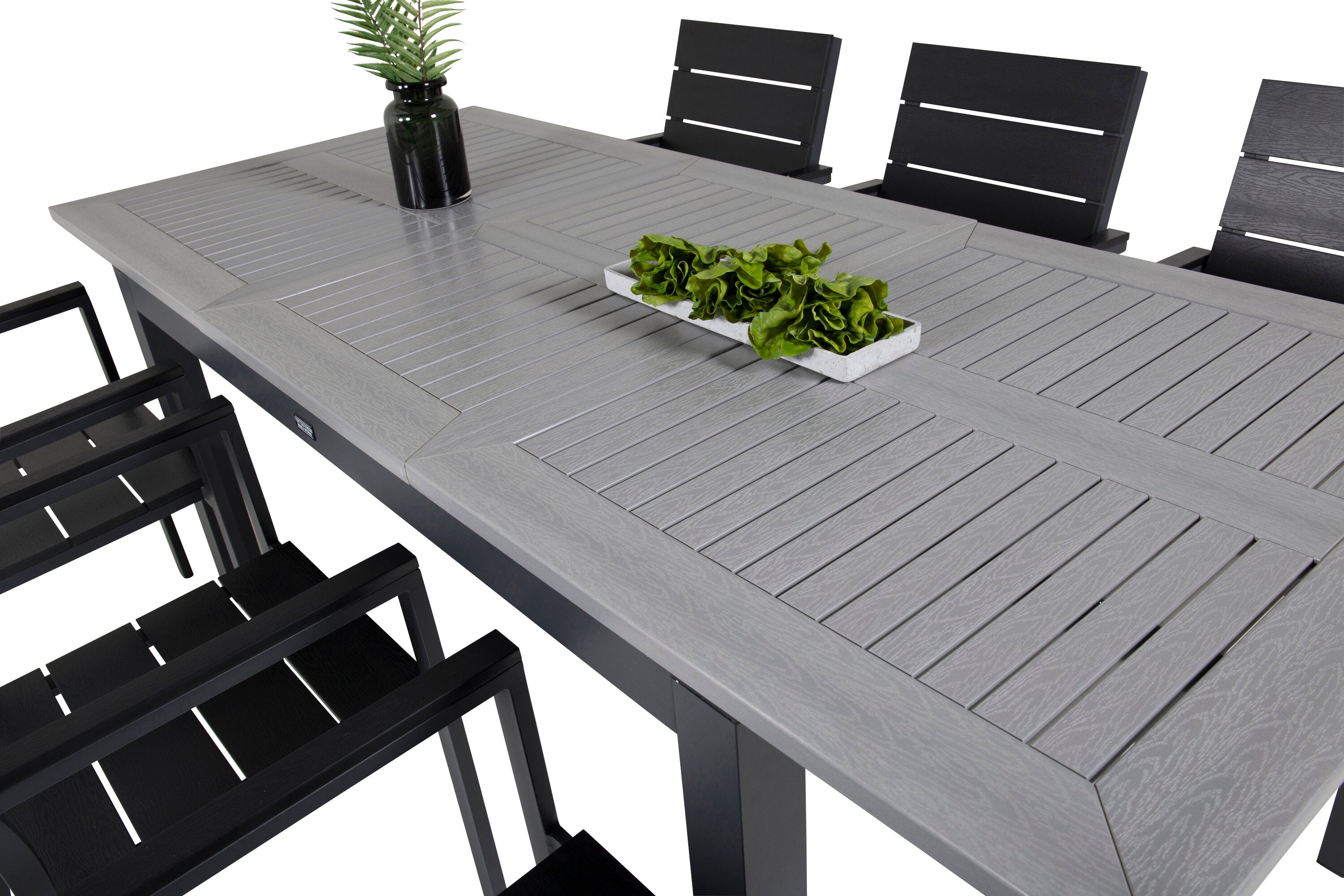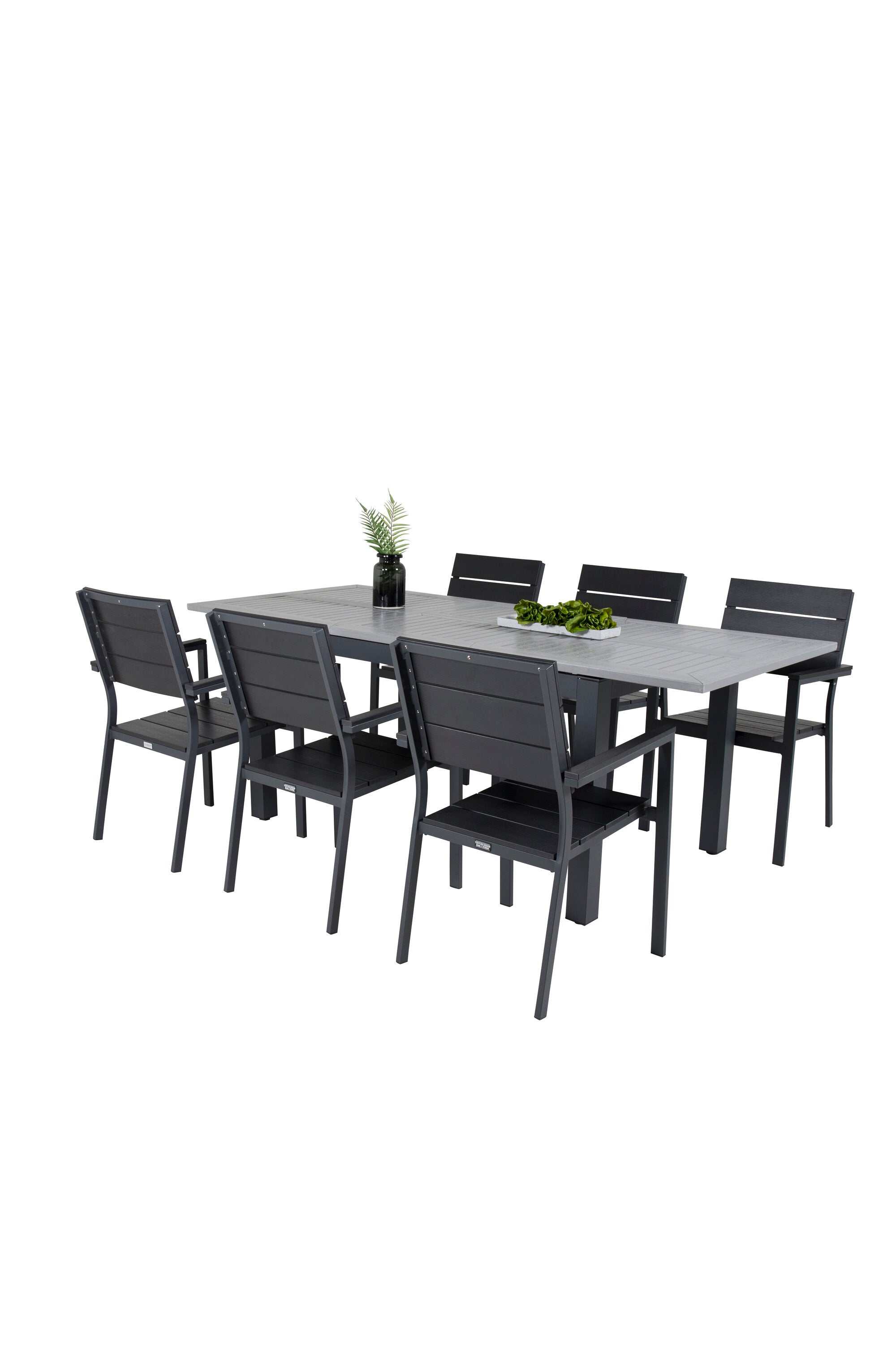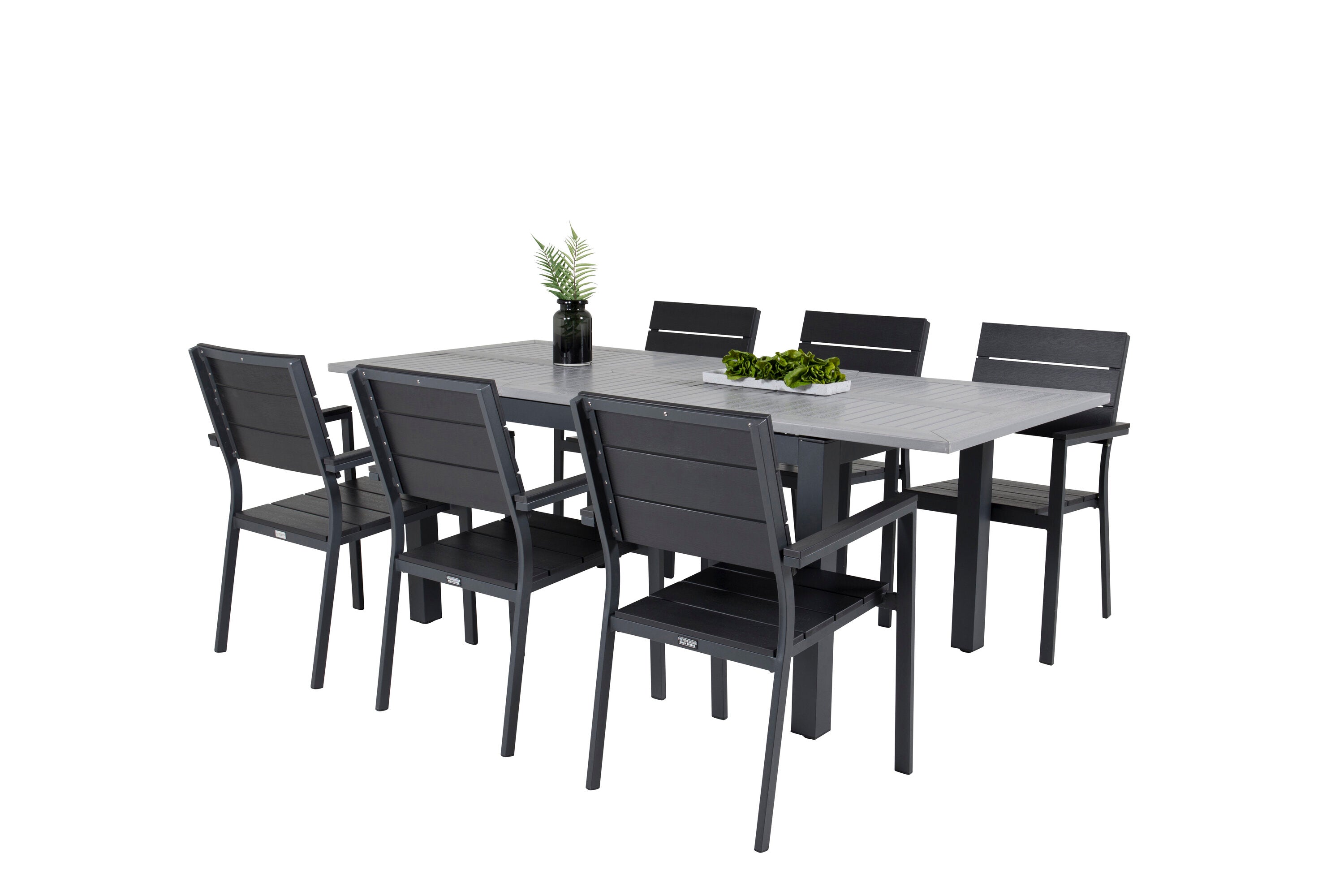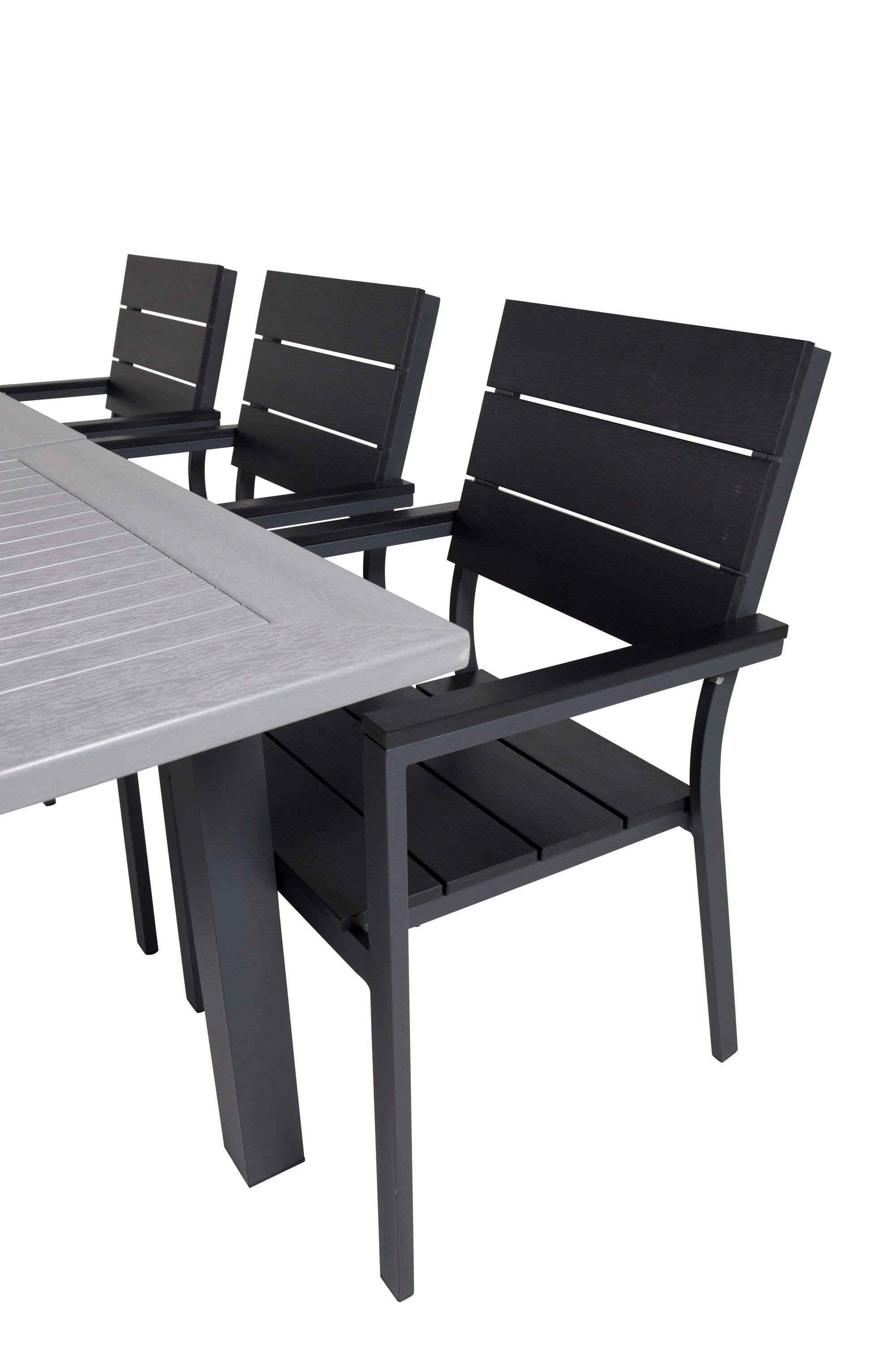 Stůl Albany - 152/210 - Černá/šedá - Židle Levels (stohovatelná) - Black Alu / Black Aintwood 6