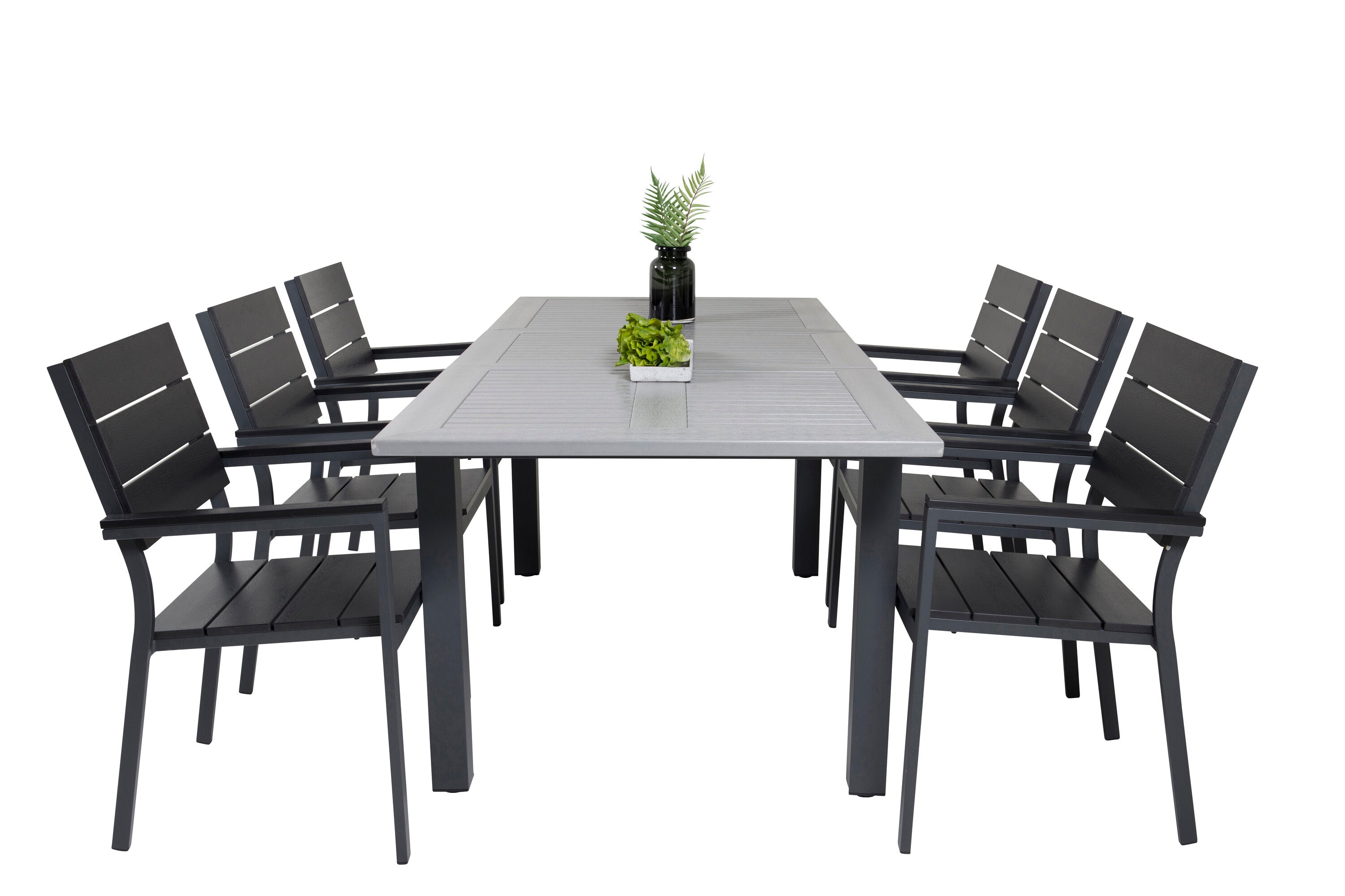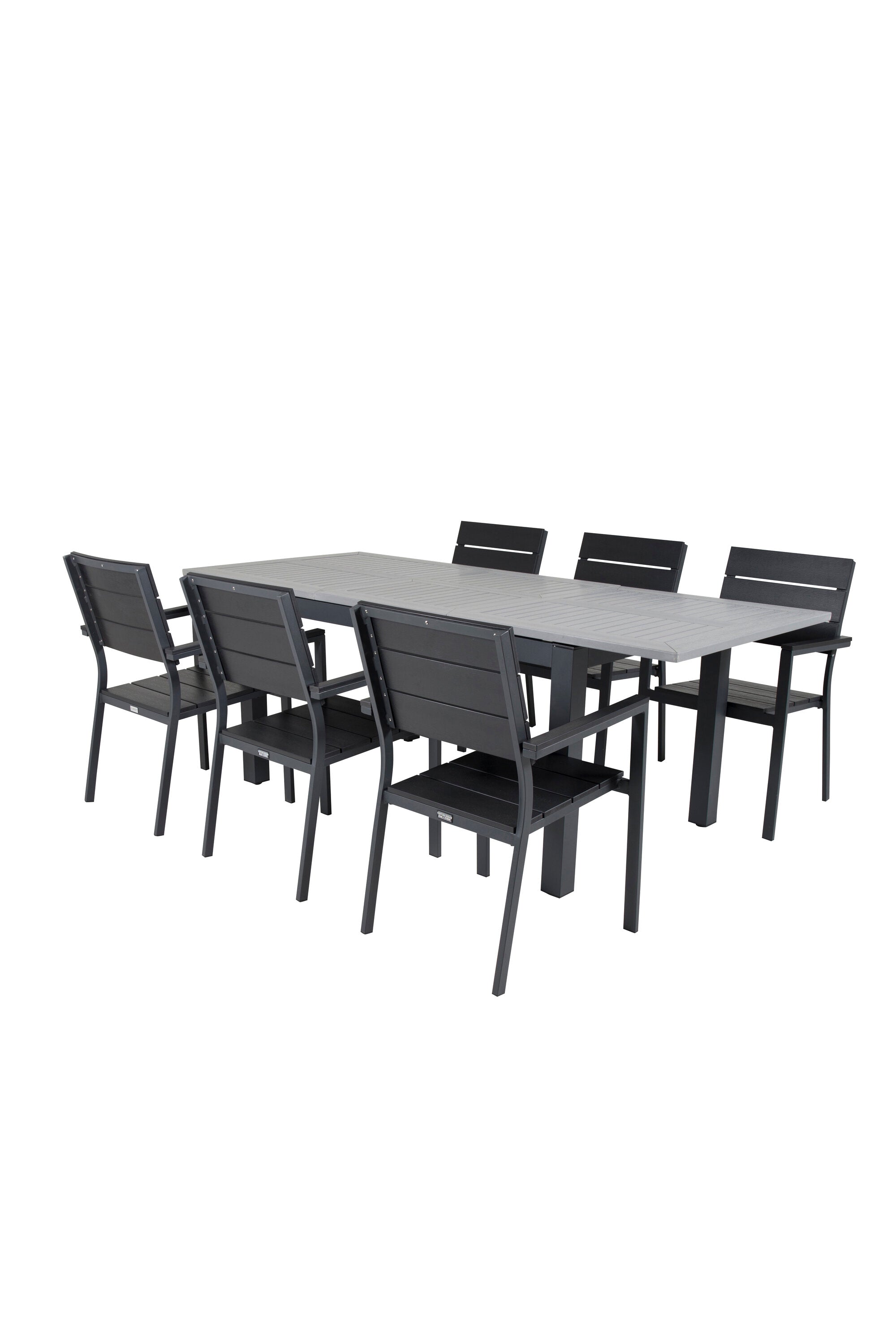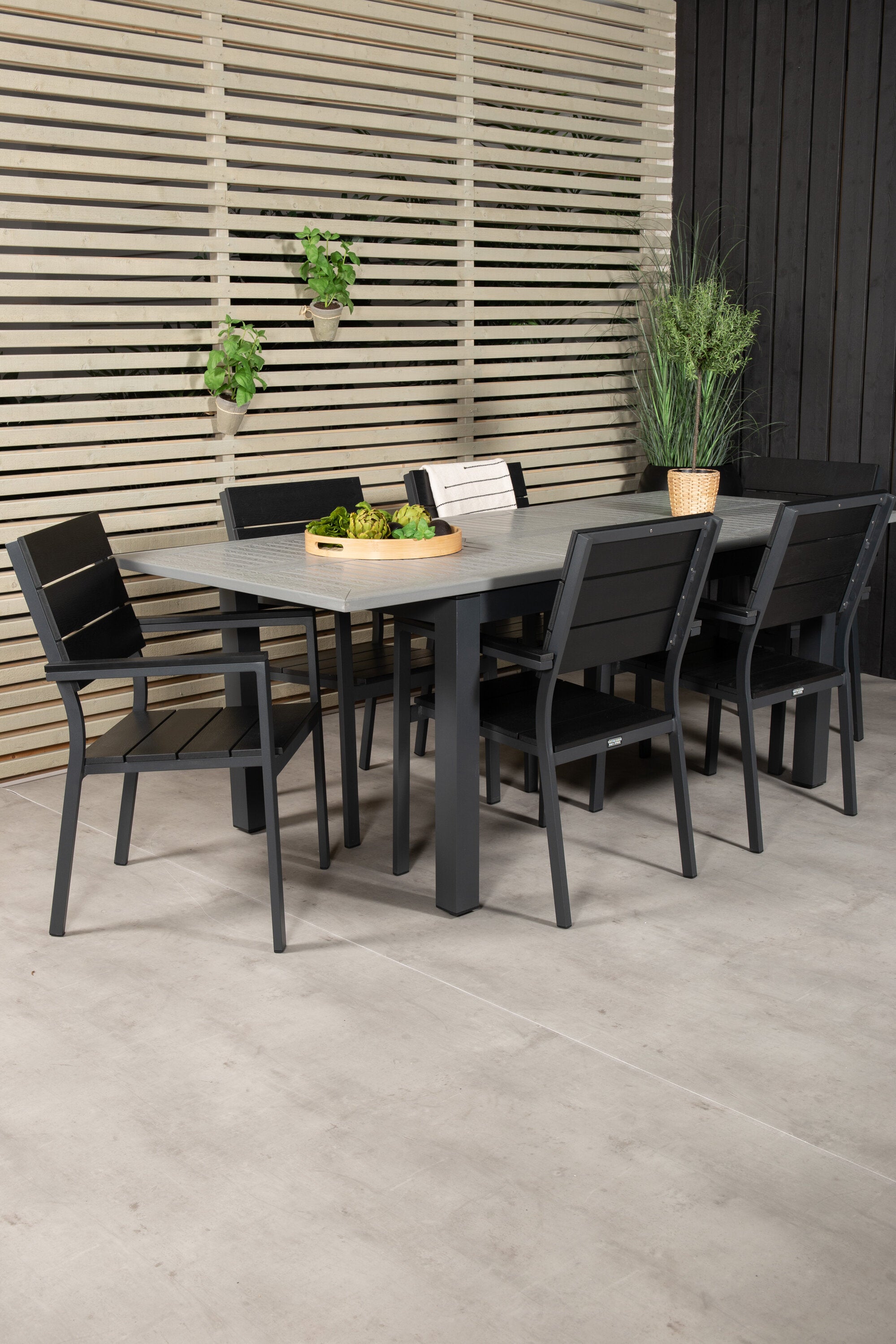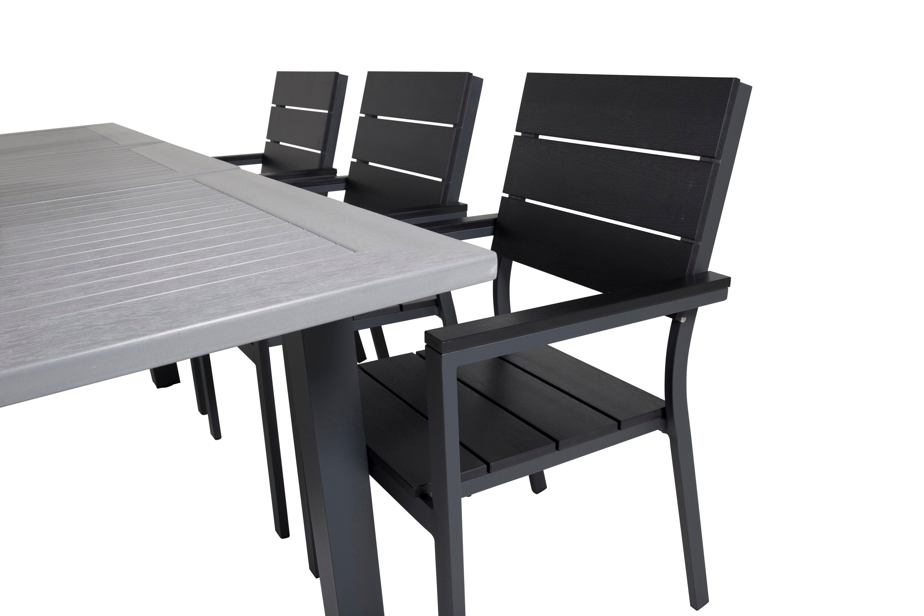 Stůl Albany - 152/210 - Černá/šedá - Židle Levels (stohovatelná) - Black Alu / Black Aintwood 6