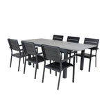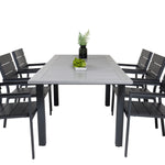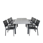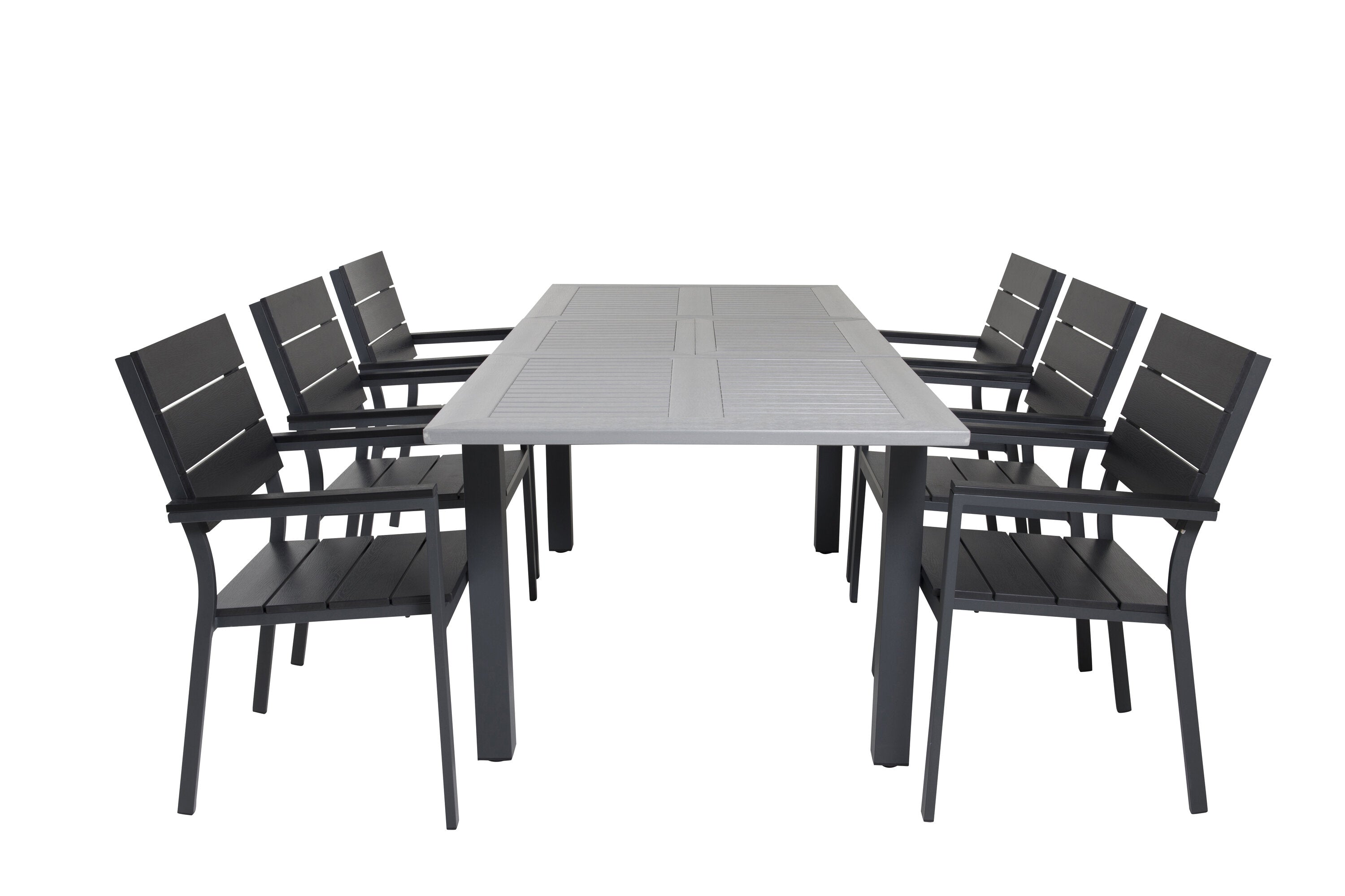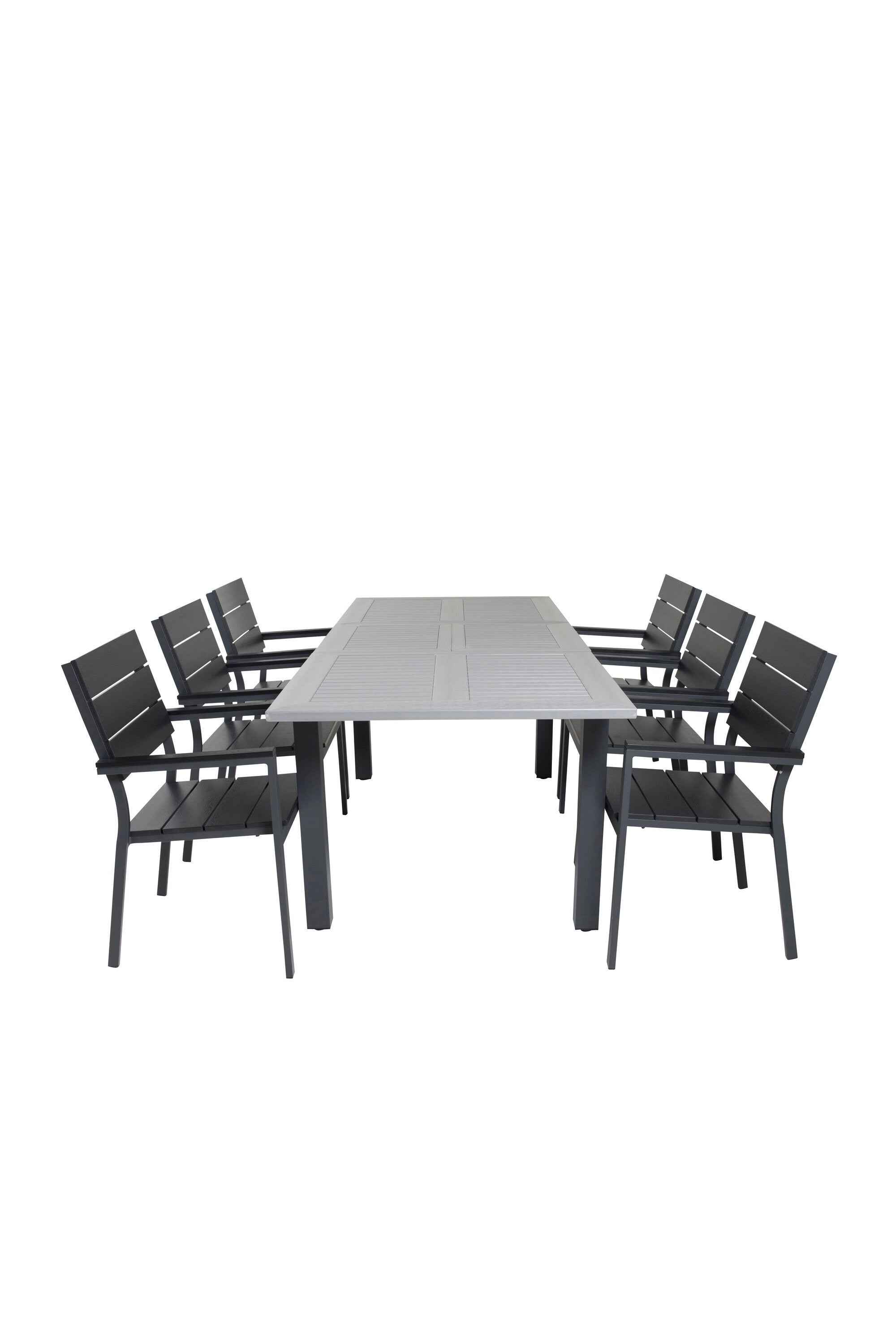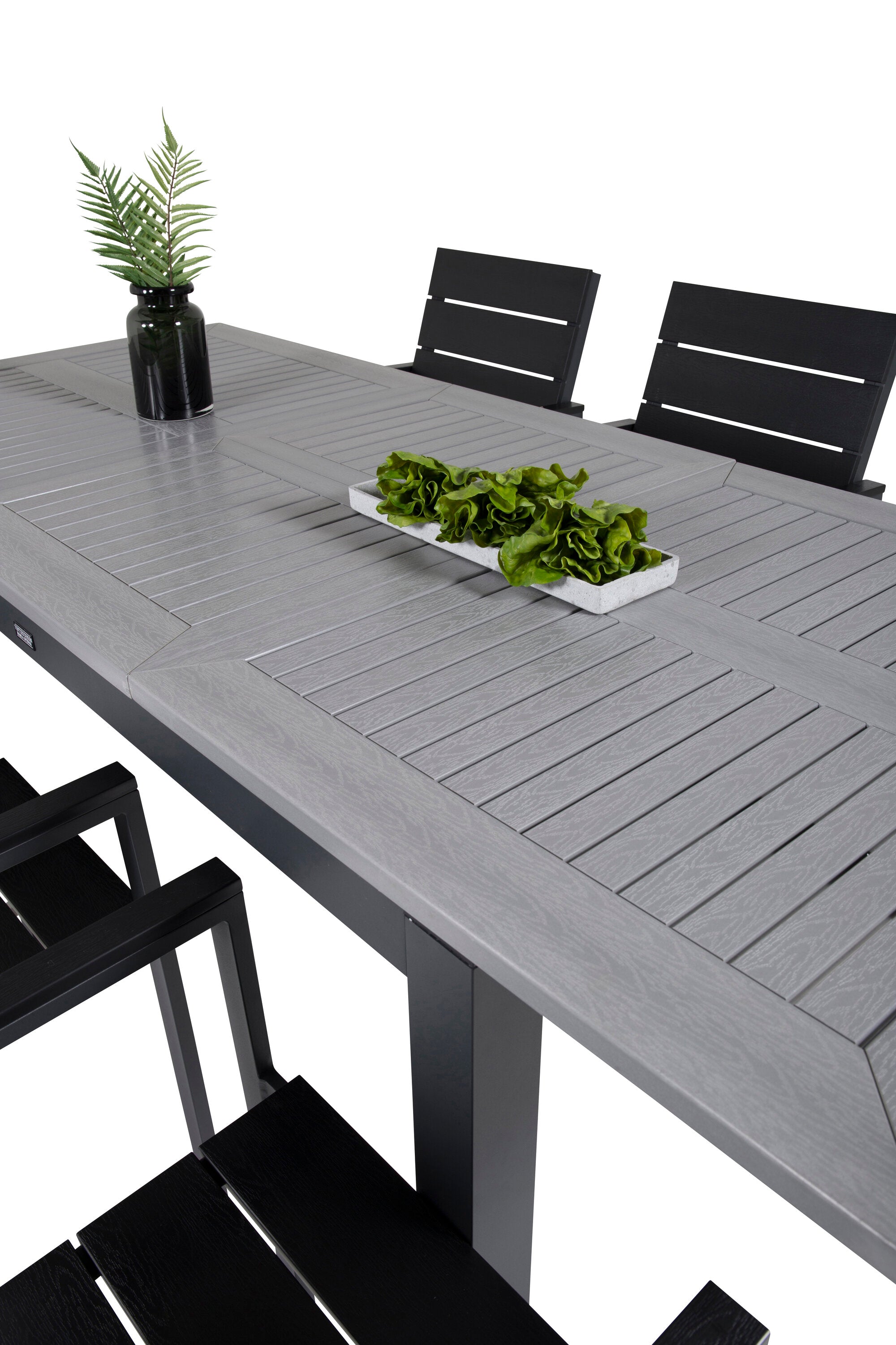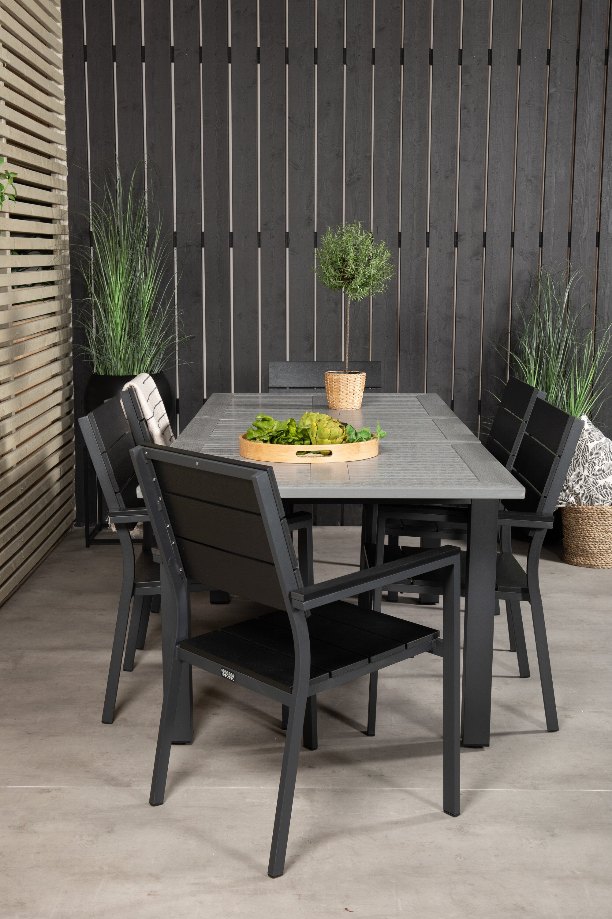 Stůl Albany - 152/210 - Černá/šedá - Židle Levels (stohovatelná) - Black Alu / Black Aintwood 6