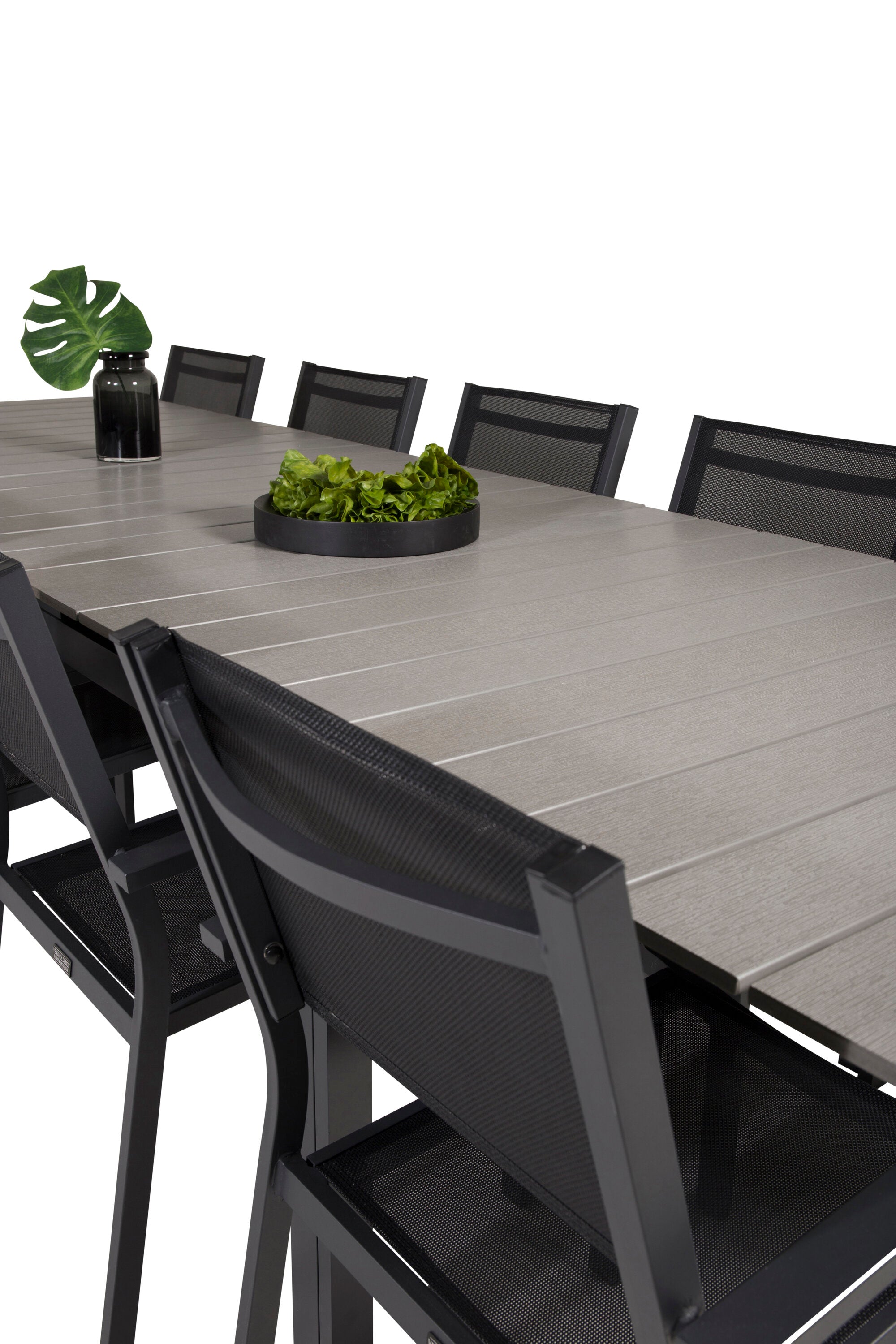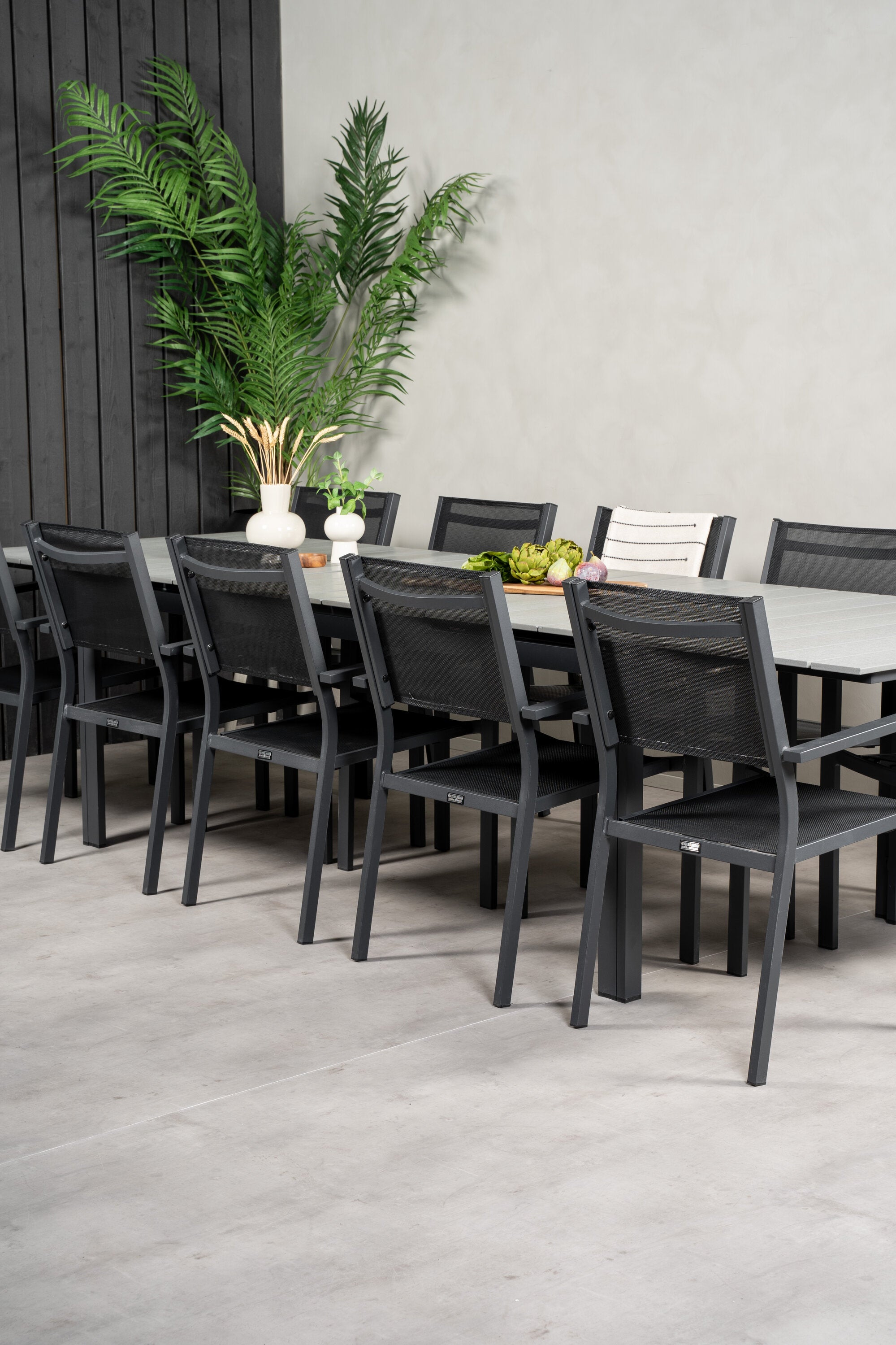 Stůl úrovní 229/310 – černá/šedá – stohovací židle Copacabana – černá/černá 10