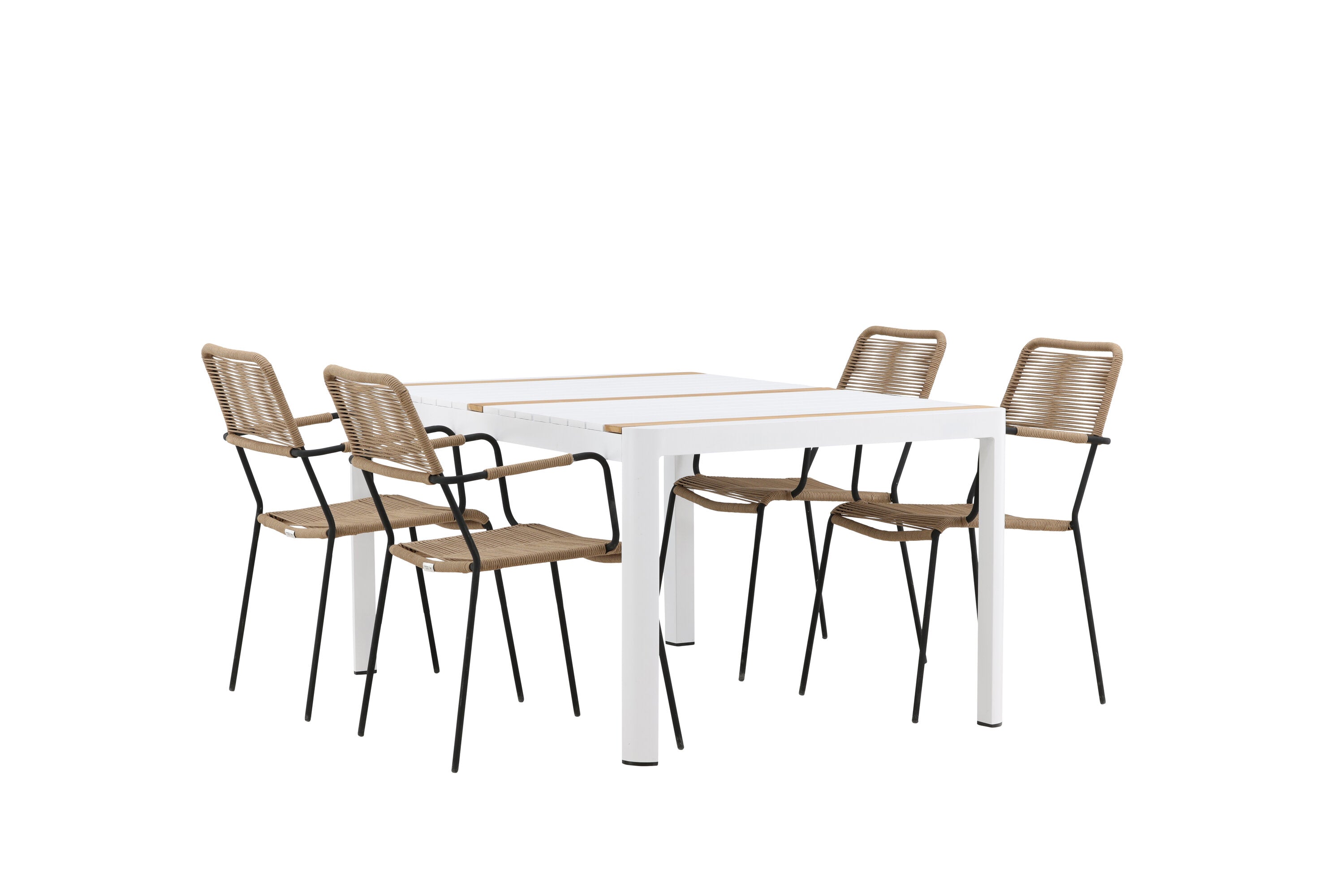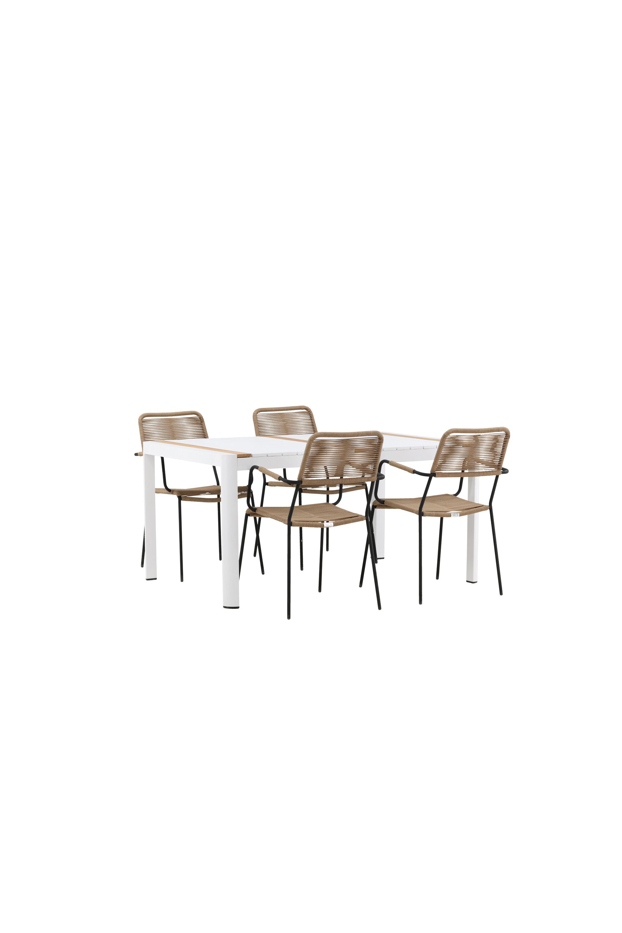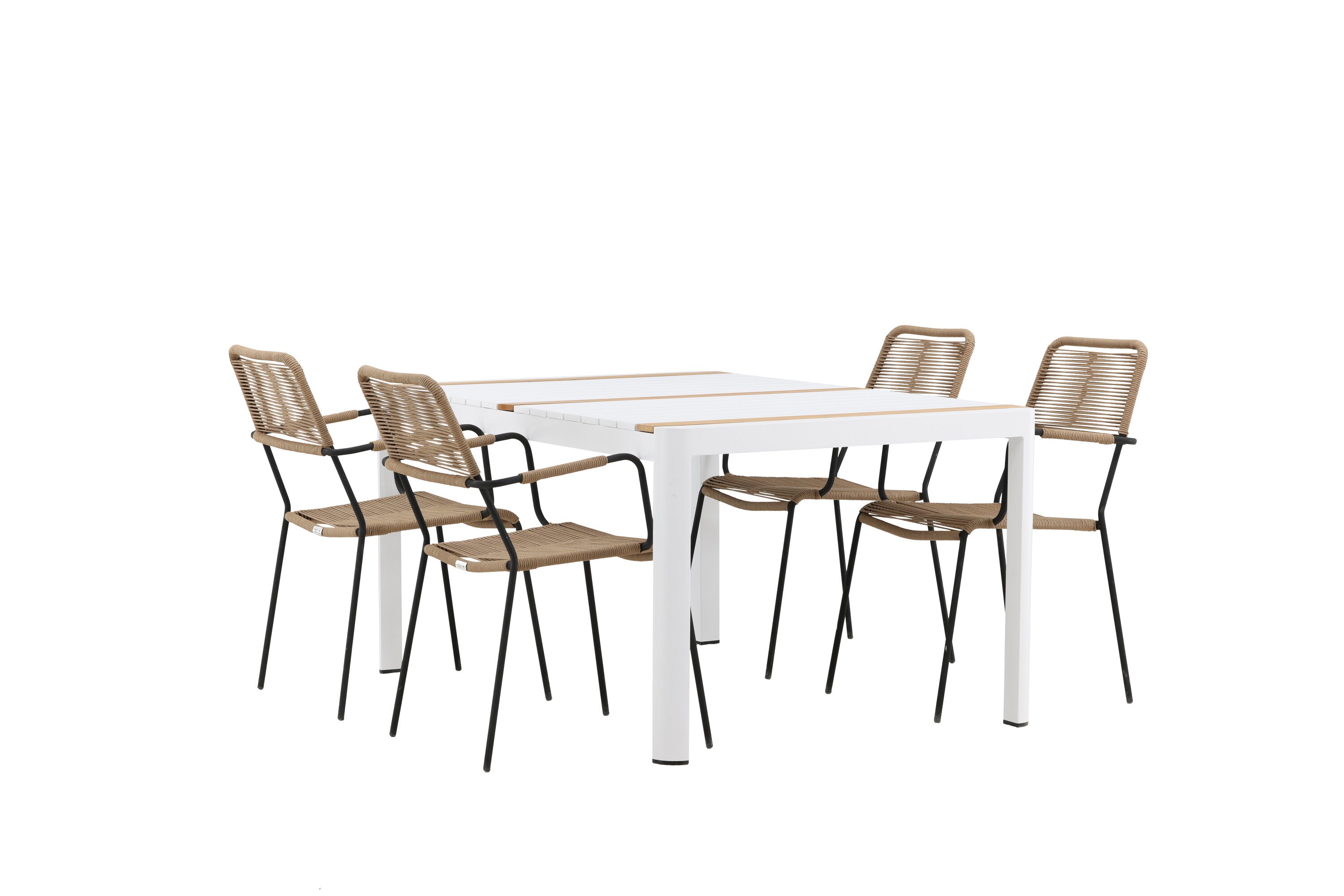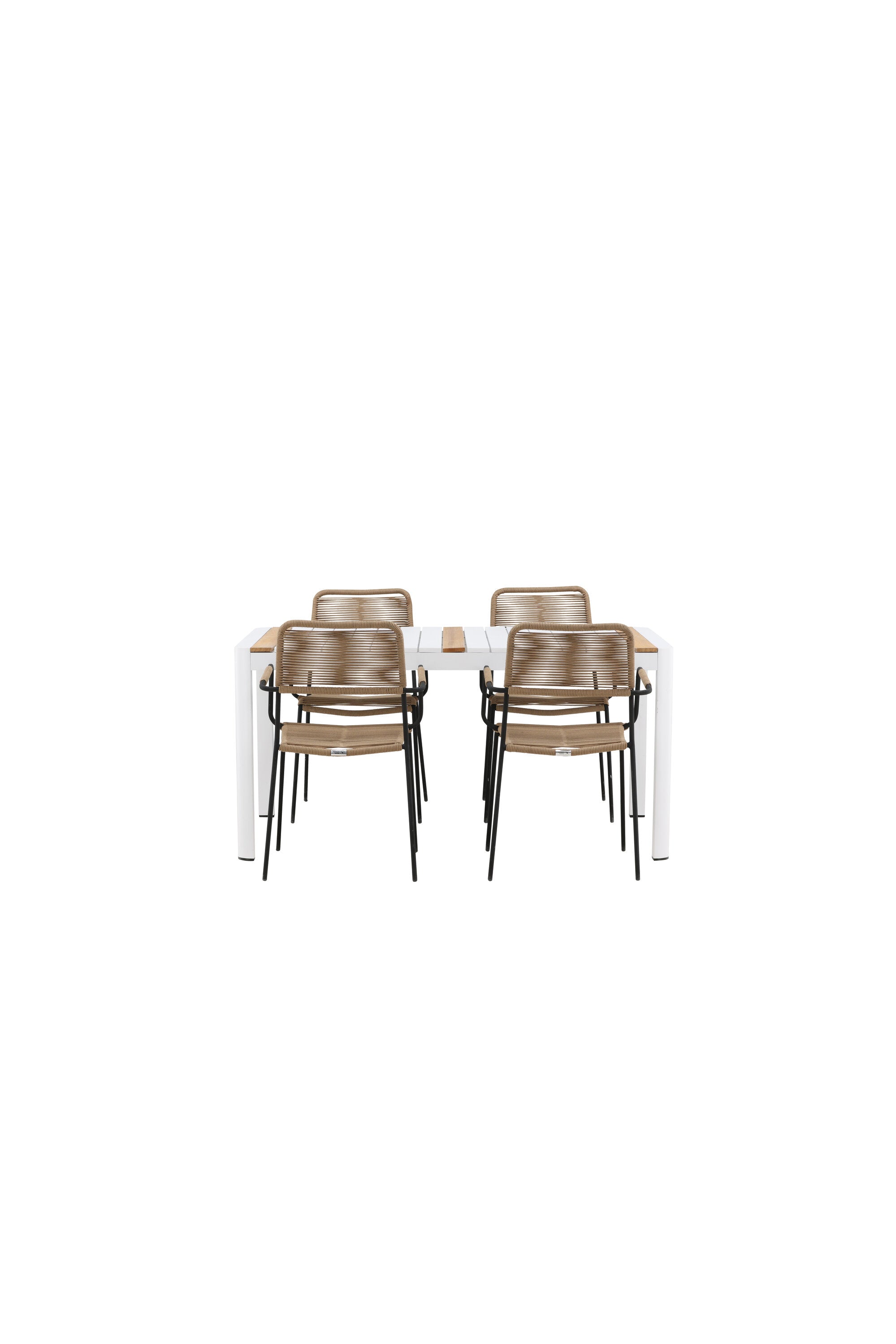 Togo - Jídelní stůl - Bílá / Teak - Allu / Teak - 150*100 _1+ Lindos - Křeslo - Black Alu / Latte Latte _4
