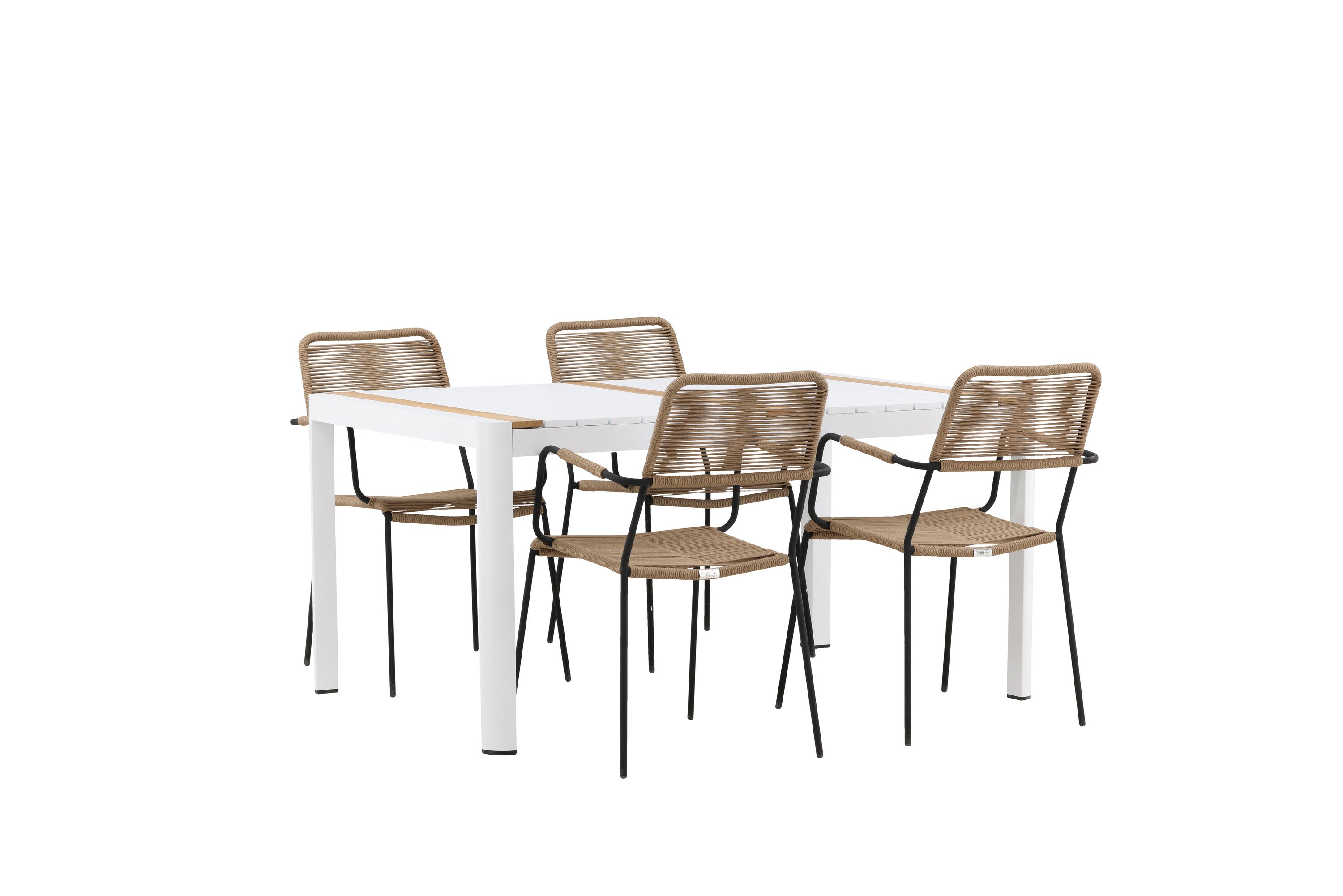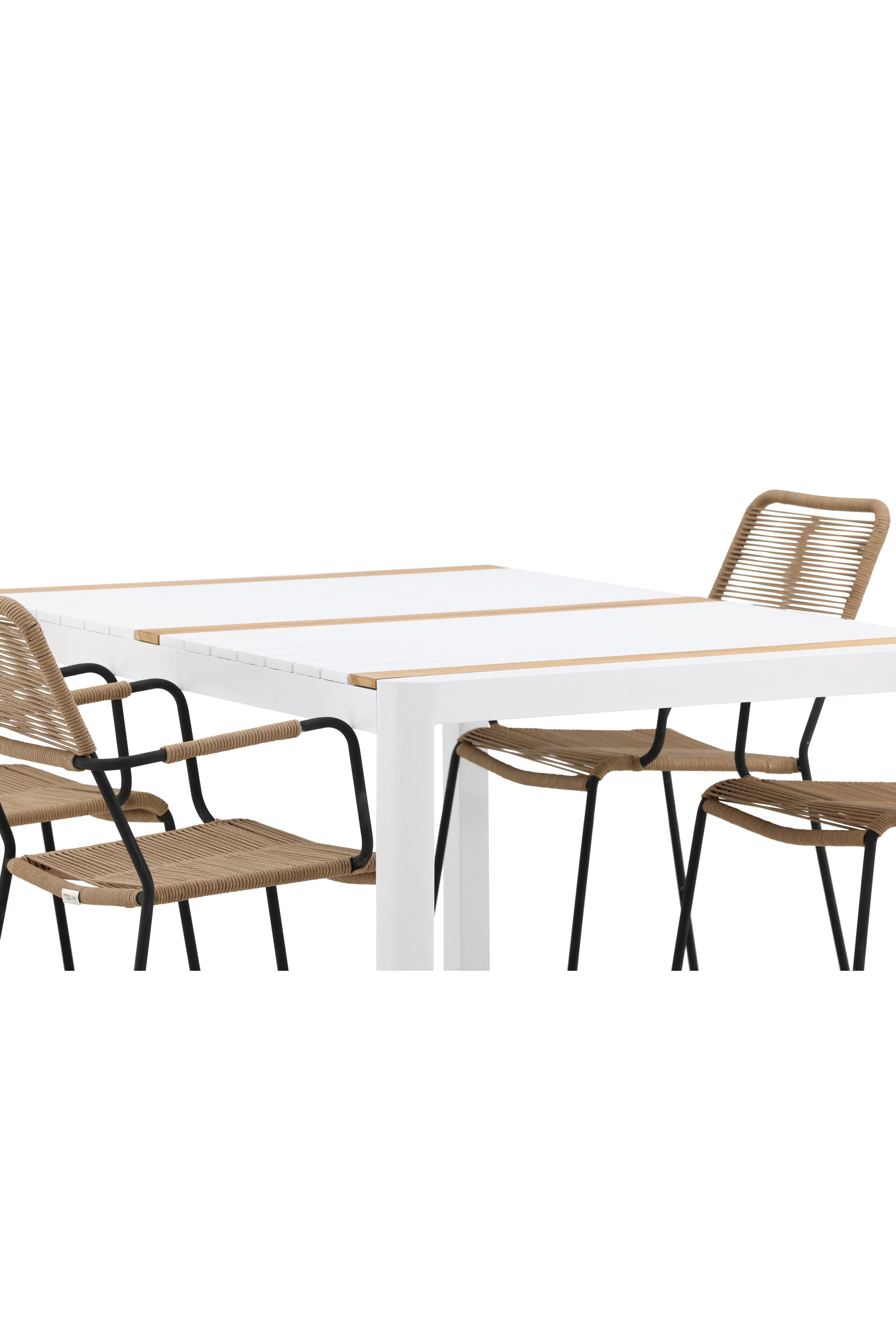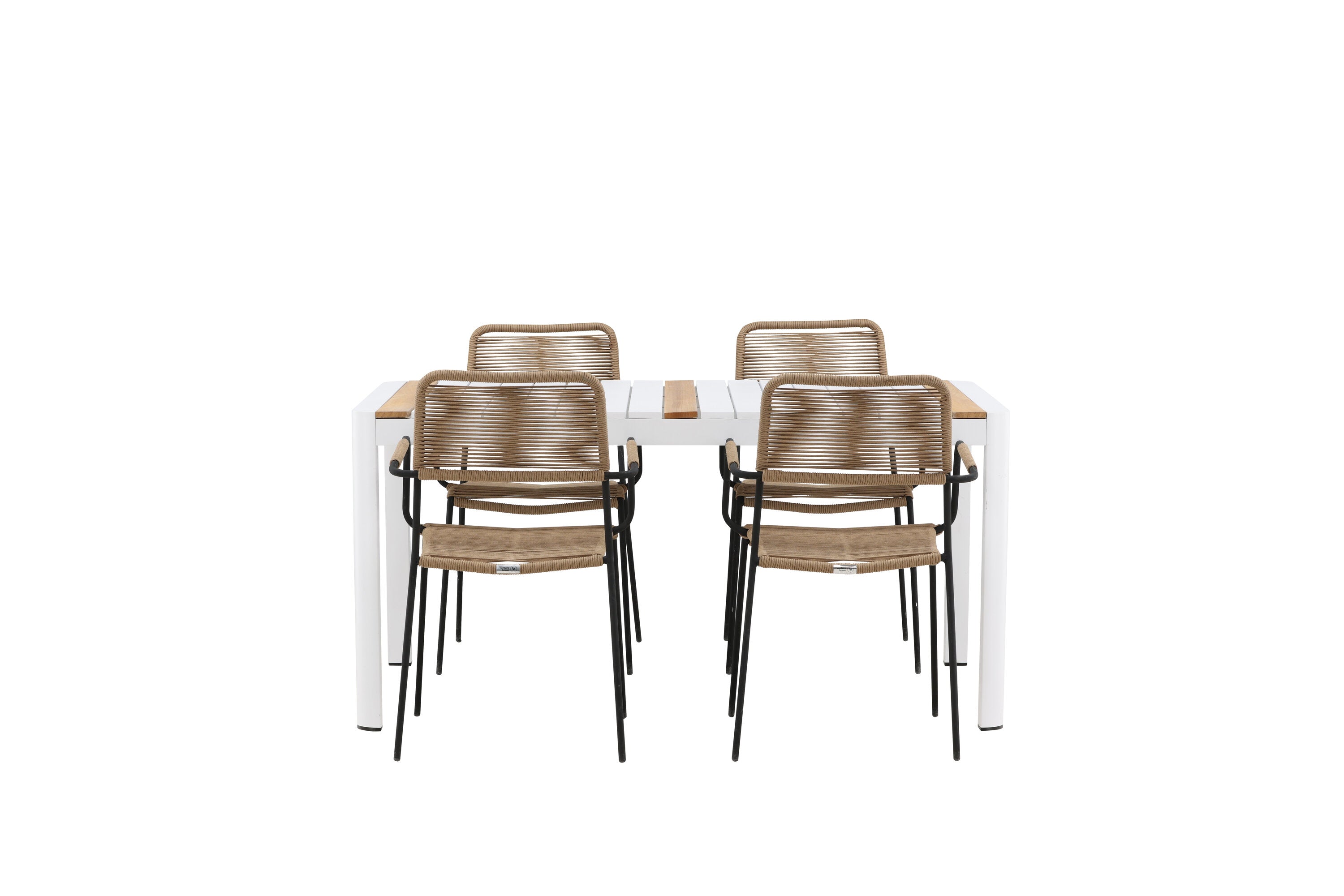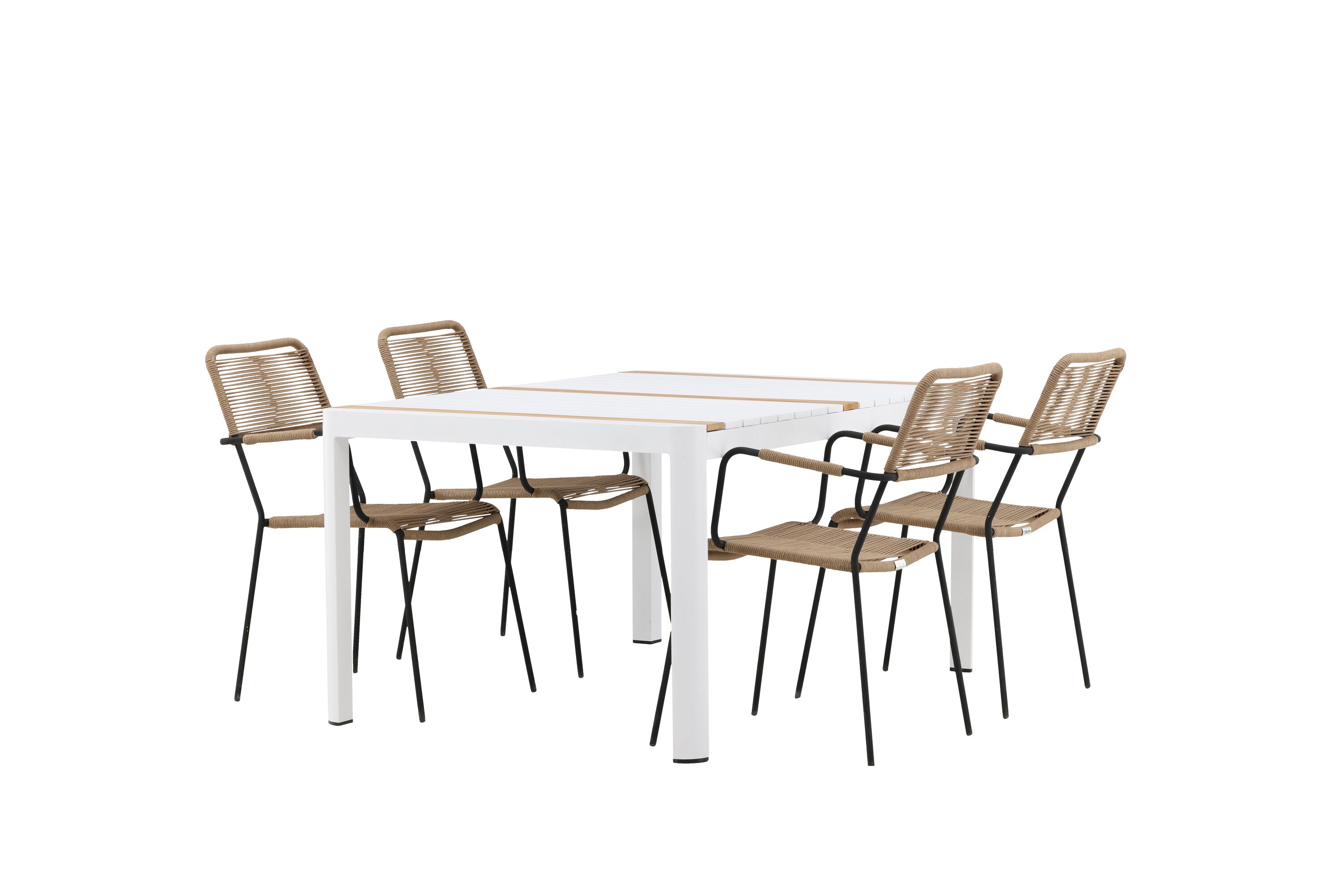 Togo - Jídelní stůl - Bílá / Teak - Allu / Teak - 150*100 _1+ Lindos - Křeslo - Black Alu / Latte Latte _4